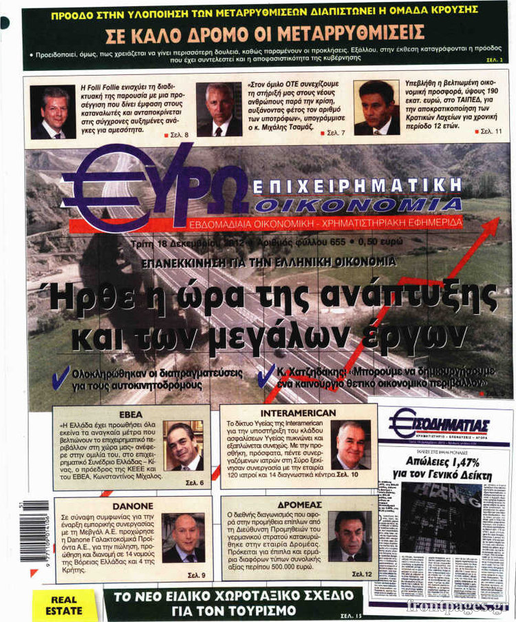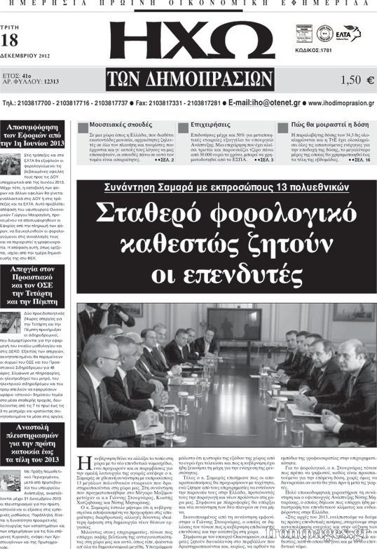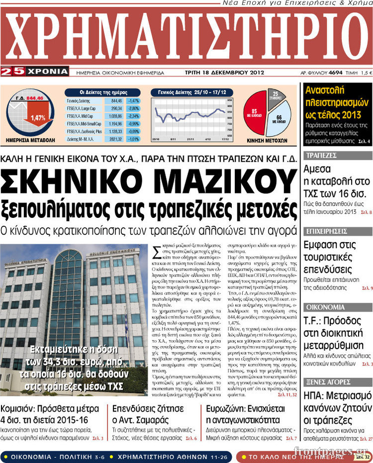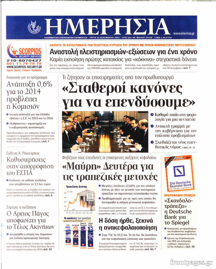 Οι οικονομικές εφημερίδες Enikos Newsroom 09:08, Τρίτη 18 Δεκεμβρίου 2012 Media Οι οικονομικές εφημερίδες ΕΦΗΜΕΡΙΔΕΣ ΠΡΩΤΟΣΕΛΙΔΑ ΟΙΚΟΝΟΜΙΚΕΣ ΕΦΗΜΕΡΙΔΕΣ ΠΡΩΤΟΣΕΛΙΔΑ Μοιράσου το: σχολίασε κι εσύ (0 σχόλια) Ακολουθήστε το enikos.gr στο Google News και μάθετε πρώτοι όλες τις ειδήσεις Δείτε όλες τις τελευταίες ειδήσεις από την Ελλάδα και τον Κόσμο στο enikos.gr Ειδήσεις Ροή Ειδήσεων 2 ώρες πριν Τρομοκρατική επίθεση στο Σίδνεϊ: Νεκροί 11 πολίτες και ένας δράστης – Εντοπίστηκε αυτοσχέδιος εκρηκτικός μηχανισμός 39 λεπτά πριν ΟΠΕΚΕΠΕ-Κρήτη: Προθεσμία να απολογηθούν από την Τρίτη έως την Πέμπτη έλαβαν οι 16 συλληφθέντες 4 ώρες πριν Σκληραίνουν τη στάση τους οι αγρότες: Αποφασίζουν τις δράσεις της εβδομάδας – Αύριο το συλλαλητήριο στα δικαστήρια της Λάρισας 6 ώρες πριν Κυριάκος Μητσοτάκης μετά το «όχι» των αγροτών: Διάλογος δεν γίνεται με τελεσίγραφα και οι λύσεις προκύπτουν μόνο από συζήτηση 1 ώρα πριν Πανεπιστήμιο Μπράουν: Υπό κράτηση ένα «άτομο ενδιαφέροντος» για το μακελειό με τους 2 νεκρούς και τους 9 τραυματίες 33 λεπτά πριν Τα 5 ζώδια που ευνοούνται στα ερωτικά τους έως τις 21 Δεκεμβρίου – «Η επόμενη σχέση σας θα είναι καθοριστική» 2 ώρες πριν Γεωλογική αποκάλυψη: Επιστήμονες εξηγούν πώς η Ιβηρική Χερσόνησος περιστρέφεται σαν… ρολόι 5 ώρες πριν Προπονήτρια ευεξίας που έχασε 24 κιλά αποκαλύπτει: «Αυτά είναι τα 6 ανησυχητικά σημάδια της υψηλής κορτιζόλης» 6 ώρες πριν Τα 8 πράγματα που τα ευτυχισμένα ζευγάρια δεν κάνουν ποτέ μπροστά στα παιδιά τους 10 λεπτά πριν Κρήτη: Χαμός σε ποδοσφαιρικό αγώνα – Προπονητής χτύπησε με κουτουλιά παίκτη της αντίπαλης ομάδας 18 λεπτά πριν Νετανιάχου για την επίθεση στο Σίδνεϊ: «Τους είχα προειδοποιήσει – Ρίχνουν λάδι στην φωτιά του αντισημιτισμού» 26 λεπτά πριν Ηλεία: Στον 62χρονο αγνοούμενο ανήκει η σορός που εντόπισε κυνηγός – Τραγικός επίλογος στις έρευνες 33 λεπτά πριν Τα 5 ζώδια που ευνοούνται στα ερωτικά τους έως τις 21 Δεκεμβρίου – «Η επόμενη σχέση σας θα είναι καθοριστική» 39 λεπτά πριν ΟΠΕΚΕΠΕ-Κρήτη: Προθεσμία να απολογηθούν από την Τρίτη έως την Πέμπτη έλαβαν οι 16 συλληφθέντες ENIKOS NETWORK Άσκηση ή περισσότερος ύπνος: Τι είναι πιο σημαντικό για την υγεία όταν δεν έχετε χρόνο και για τα δύο; Σπλαχνικό λίπος: 3 υδατάνθρακες που μπορεί να σας βοηθήσουν να το χάσετε, σύμφωνα με ειδικό ΔΥΠΑ: Οι καταβολές που θα γίνουν την ερχόμενη Τετάρτη ΕΚΤ: Τα οφέλη για νοικοκυριά και επιχειρήσεις από τα σταθερά επιτόκια για ολόκληρο το 2026 Σύγχρονος Νοστράδαμος: Προειδοποιεί για «μεγάλο γεγονός» τους επόμενους μήνες που θα συγκλονίσει τη Βρετανία και τον κόσμο Τεστ παρατηρητικότητας: Μπορείτε να βρείτε τις 3 διαφορές στις εικόνες με έναν πιγκουίνο σε 14 δευτερόλεπτα περισσότερα 15:07 , Κυριακή 14 Δεκεμβρίου 2025 IQ160: Η Μαρίνα στέλνει το φούτερ του Τηλέμαχου για το τεστ πατρότητας Η Πηνελόπη αποφασίζει να κάνει αμνιοπαρακέντηση, για να βεβαιωθεί για την υγεία του μωρού της ... 12:46 , Κυριακή 14 Δεκεμβρίου 2025 Η Realnews στο www.pressreader.com Διαβάστε την ψηφιακή έκδοση της εφημερίδας στην οθόνη του κινητού, του tablet και του υπολογισ... 10:07 , Κυριακή 14 Δεκεμβρίου 2025 Η γη της ελιάς: Η αρχή του τέλους του Δημοσθένη πλησιάζει Η δραματική σειρά του MEGA «Η γη της ελιάς» επιφυλάσσει ακόμα μεγαλύτερες ανατροπές. Κάθε επει... 08:15 , Κυριακή 14 Δεκεμβρίου 2025 Σήμερα με τη Realnews: Food & Travel μαζί Beaute και Μαστορέματα Σήμερα με τη Realnews: Food & Travel μαζί Beaute και Μαστορέματα Food & Travel Ετοιμάζ... ΤΕΛΕΥΤΑΙΕΣ ΕΙΔΗΣΕΙΣ 10 λε