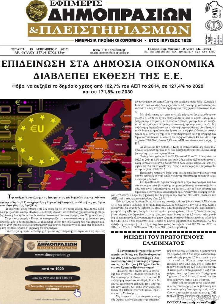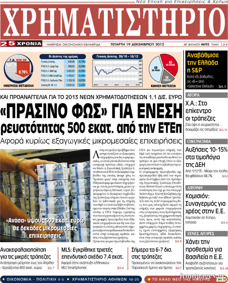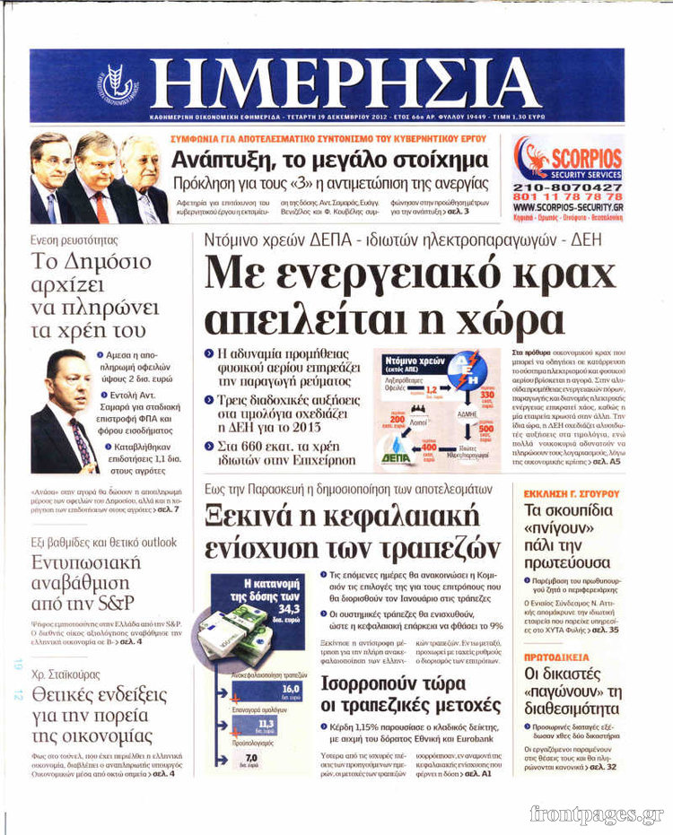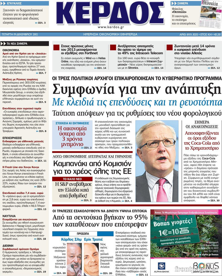 Οι οικονομικές εφημερίδες Enikos Newsroom 10:23, Τετάρτη 19 Δεκεμβρίου 2012 Media Οι οικονομικές εφημερίδες Τα πρωτοσέλιδα των οικονομικών εφημερίδων. ΕΦΗΜΕΡΙΔΕΣ ΟΙΚΟΝΟΜΙΚΕΣ ΕΦΗΜΕΡΙΔΕΣ ΠΡΩΤΟΣΕΛΙΔΑ Μοιράσου το: σχολίασε κι εσύ (0 σχόλια) Ακολουθήστε το enikos.gr στο Google News και μάθετε πρώτοι όλες τις ειδήσεις Δείτε όλες τις τελευταίες ειδήσεις από την Ελλάδα και τον Κόσμο στο enikos.gr Ειδήσεις Ροή Ειδήσεων 6 ώρες πριν Μακελειό στο Σίδνεϊ: Πατέρας και γιος οι δράστες της τρομοκρατικής επίθεσης – Γιατί η Αυστραλία βάζει στο στόχαστρο το Ιράν 7 ώρες πριν Μακελειό στην Αυστραλία: «Πέρασαν οι σφαίρες πάνω από το αυτοκίνητο» – Συγκλονίζει η μαρτυρία Έλληνα που ζει στο Σίδνεϊ 5 ώρες πριν Τρομοκρατική επίθεση στο Σίδνεϊ: «Το αναπόφευκτο συνέβη πλέον» – Πώς οι δράστες είχαν χάσει τον ανθρωπισμό τους πριν πατήσουν την σκανδάλη 5 ώρες πριν Όλα τα αιτήματα αγροτών, κτηνοτρόφων και μελισσοκόμων προς την κυβέρνηση – Παραμένουν στα μπλόκα και προαναγγέλλουν κλιμάκωση 8 ώρες πριν Λακωνία: Βίντεο ντοκουμέντο από την επιχείρηση διάσωσης της 13χρονης που έπεσε σε πηγάδι – Ποια ήταν τα πρώτα λόγια της 7 ώρες πριν Ύπνος: 5 λόγοι για τους οποίους ξυπνάτε κουρασμένοι το πρωί κατά τη διάρκεια του χειμώνα 10 ώρες πριν Οι 7 βραδινές συνήθειες που μαρτυρούν ότι κάποιος υποφέρει από βαθιά μοναξιά, σύμφωνα με την ψυχολογία 18 ώρες πριν Τα 8 πράγματα που τα ευτυχισμένα ζευγάρια δεν κάνουν ποτέ μπροστά στα παιδιά τους 9 ώρες πριν Κουζίνα: Η καθημερινή συνήθεια των ανθρώπων που την διατηρούν πάντα καθαρή 2 λεπτά πριν Τουλάχιστον 21 νεκροί από ξαφνικές πλημμύρες στο Μαρόκο – Οι χειρότερες της τελευταίας δεκαετίας 16 λεπτά πριν Νότια Κορέα: Ο πρώην πρόεδρος Γιούν Σουκ-Γέολ κατηγορείται για πρόκληση της Βόρειας Κορέας σε στρατιωτική επίθεση 32 λεπτά πριν Γιάννης Σμαραγδής: «Έχω αισθανθεί τον χρωματισμό της ψυχής του Καποδίστρια» 46 λεπτά πριν Δήμητρα Αλεξανδράκη: «Έκλεισε ένα κεφάλαιο της ζωής μου άγρια και άδικα» 1 ώρα πριν Δημήτρης Καπουράνης: «Ο παππούς και η γιαγιά μου ήταν οι γονείς μου» ENIKOS NETWORK 8 κορυφαίες συμβουλές για άνδρες που θέλουν φλογερή σεξουαλική ζωή, σύμφωνα με ειδικό Baby botox: Ποια τα οφέλη και οι κίνδυνοι του να ξεκινήσει κάποιος τις ενέσεις πριν εμφανιστούν ρυτίδες Τέλος οι διώξεις για χρέη σε Εφορία και ΕΦΚΑ – Τι προβλέπει νέα διάταξη μετά την πτώχευση Υπουργείο Αγροτικής Ανάπτυξης: Ενισχύσεις de minimis ύψους 2,1 εκατ. ευρώ – Οι δικαιούχοι Σύγχρονος Νοστράδαμος: Προειδοποιεί για «μεγάλο γεγονός» τους επόμενους μήνες που θα συγκλονίσει τη Βρετανία και τον κόσμο Τεστ παρατηρητικότητας: Μπορείτε να βρείτε τις 3 διαφορές στις εικόνες με έναν πιγκουίνο σε 14 δευτερόλεπτα περισσότερα 21:34 , Κυριακή 14 Δεκεμβρίου 2025 Ο Δικαστής: Η Λέττα είναι αποφασισμένη να αποκαλύψει την αλήθεια για το τροχαίο, απόψε στις 21:45 στον ΑΝΤ1 Ραγδαίες οι εξελίξεις στο νέο επεισόδιο της σειράς “Ο Δικαστής” απόψε στις 21:45 σ... 17:38 , Κυριακή 14 Δεκεμβρίου 2025 Τηλεθέαση (13/12): Τα ποσοστά για το βράδυ του Σαββάτου Η «μάχη» της prime time για την τηλεθέαση, συνεχίστηκε δυναμικά το βράδυ του Σαββάτου (13/12).... 16:32 , Κυριακή 14 Δεκεμβρίου 2025 Τηλεθέαση (13/12): Πώς κινήθηκαν οι εκπομπές στην πρωινή ζώνη το Σάββατο Με αμείωτη ένταση συνεχίστηκε η μάχη για την τηλεθέαση στην πρωινή ζώνη των τηλεοπτικών καναλι... 15:07 , Κυριακή 14 Δεκεμβρίου 2025 IQ160: Η Μαρίνα στέλνει το φούτερ του Τηλέμαχου για το τεστ πατρότητας Η Πηνελόπη αποφασίζει να κάνει αμνιο