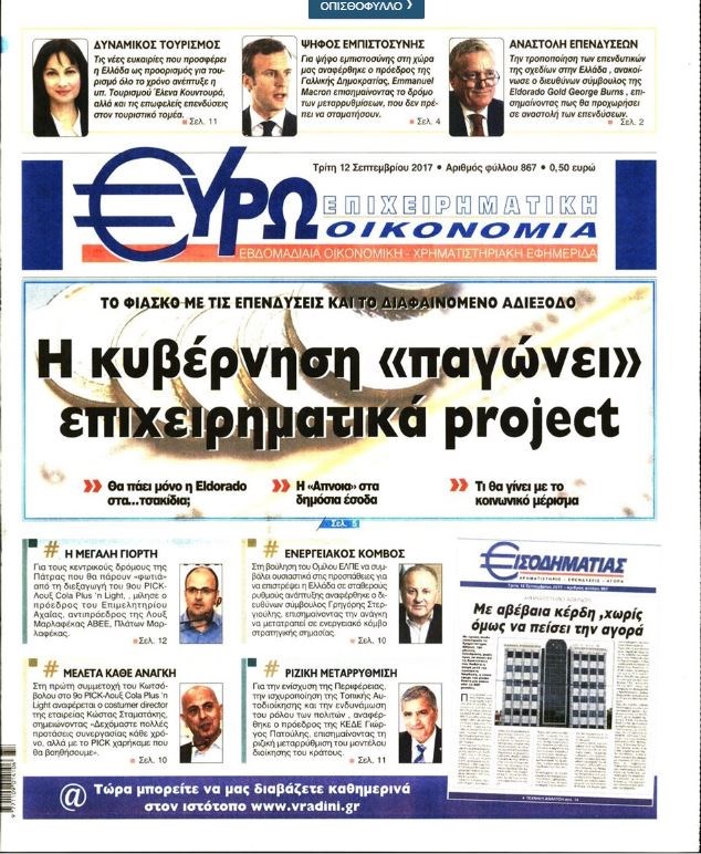 Οι οικονομικές εφημερίδες 12/9/2017 Κώστας Τεό 06:53, Τρίτη 12 Σεπτεμβρίου 2017 Media Διαβάστε τα σημερινά πρωτοσέλιδα των οικονομικών εφημερίδων: ΟΙΚΟΝΟΜΙΚΕΣ ΕΦΗΜΕΡΙΔΕΣ ΠΡΩΤΟΣΕΛΙΔΑ Μοιράσου το: σχολίασε κι εσύ (0 σχόλια) Ακολουθήστε το enikos.gr στο Google News και μάθετε πρώτοι όλες τις ειδήσεις Δείτε όλες τις τελευταίες ειδήσεις από την Ελλάδα και τον Κόσμο στο enikos.gr Ειδήσεις Ροή Ειδήσεων 1 ώρα πριν Ευρωπαϊκή Ένωση: Συμφωνία για δάνειο 90 δισ. ευρώ στην Ουκρανία τη διετία 2026-2027 6 ώρες πριν ΟΠΕΚΕΠΕ: Προφυλακιστέος ο φερόμενος αρχηγός και ο λογιστής της εγκληματικής οργάνωσης 7 ώρες πριν Αυξάνουν την πίεση προς την κυβέρνηση οι αγρότες: Κλείνουν παρακαμπτήριους και ανοίγουν διόδια – Τι θα γίνει τις γιορτές 7 ώρες πριν Φοινικούντα: Το Σάββατο απολογείται ο 30χρονος γιος γνωστού επιχειρηματία της Πλάκας που παραδόθηκε – Όσα είπε στους αστυνομικούς και ο ρόλος του στο έγκλημα 5 ώρες πριν ΑΕΚ – Κραϊόβα 3-2: Επική ανατροπή και πρόκριση στους «16» του Conference League η Ένωση 6 ώρες πριν Αρχαιολόγοι ανακάλυψαν ρωμαϊκά τεχνουργήματα από μια πόλη που δεν υπήρξε ποτέ – Τα τρία εντυπωσιακά κτίρια και ο αμφορέας με τις… σαρδέλες 7 ώρες πριν Ύπνος: Η απλή βραδινή ρουτίνα για να προστατεύσετε τα μαλλιά σας από το κρύο κατά τη διάρκεια του χειμώνα 8 ώρες πριν Manifesting: Πώς να συναντήσετε τον σύντροφο της ζωής σας, ανάλογα με τον μήνα γέννησής σας 2 ημέρες πριν 20 χρόνια τα Χριστούγεννα ξεκινούν στα Public με μεγάλη ποικιλία σε δώρα! 26 δευτερόλεπτα πριν Εφημερεύοντα φαρμακεία σε Αθήνα και Θεσσαλονίκη (19/12) 7 λεπτά πριν Η TikTok στις ΗΠΑ πωλείται σε Oracle, Silver Lake και MGX – Οι λεπτομέρειες του «deal» 15 λεπτά πριν Αλεξάντερ Λουκασένκο: Η Λευκορωσία βρίσκεται κοντά στην αποκατάσταση των σχέσεών της με τις ΗΠΑ 31 λεπτά πριν Αυστραλία: Κήρυξε την Κυριακή (21/12) ημέρα εθνικού πένθους για τη φονική επίθεση στην παραλία Μπόνταϊ 41 λεπτά πριν Ρόδος: Δάσκαλος καράτε καταδικάστηκε για ασέλγεια σε ανήλικες αθλήτριες – Μαρτυρίες για αγγίγματα σε ευαίσθητα σημεία ENIKOS NETWORK Σε περίοδο αυξημένης δραστηριότητας η γρίπη στην Ελλάδα-Μέτρα προστασίας από τον ΕΟΔΥ Σκέφτεστε συνέχεια συζητήσεις που έχετε κάνει; Τι σημαίνει αυτό, σύμφωνα με ειδικό Στεγαστικό: Τι λέει η ΠΟΜΙΔΑ για τα νέα μέτρα που ανακοίνωσε ο Κυριάκος Μητσοτάκης Λαγκάρντ: Αισιόδοξη για την ανάπτυξη της Ευρωζώνης, αβέβαιη για τον πληθωρισμό Χαρτογραφώντας το «σημείο χωρίς επιστροφή»: Για πρώτη φορά αποκαλύπτεται με λεπτομέρεια το ακανθώδες όριο της ατμόσφαιρας τ... Η Google καταργεί τη λειτουργία «dark web report» – Πώς θα μπορούν οι χρήστες να διαγράφουν τα δεδομένα τους περισσότερα 02:50 , Παρασκευή 19 Δεκεμβρίου 2025 GNTM: «Κλείδωσαν» οι τέσσερις φιναλίστ – Μεγάλη ανατροπή στις τελευταίες αποχωρήσεις Για προτελευταία φορά εμφανίστηκαν στο πλατό του GNTM οι φιναλίστ του φετινού κύκλου, το βράδυ... 17:45 , Πέμπτη 18 Δεκεμβρίου 2025 ROUK ZOUK: Εορταστικό επεισόδιο με καλεσμένους τους πρωταγωνιστές του «Γιατί ρε πατέρα» Το Σάββατο 20 Δεκεμβρίου στις 21:00, η Ζέτα Μακρυπούλια υποδέχεται εκλεκτούς ηθοποιούς που όλο... 17:20 , Πέμπτη 18 Δεκεμβρίου 2025 Άγιος έρωτας: Η Χριστίνα εξομολογείται στον πατέρα Νικόλαο, απόψε στις 21:00 στον Alpha Η Νότα αποφασίζει να εκδικηθεί τον Πέτρο και τον Στέφανο, για χάρη του Λούη, όμως τα πράγματα ... 16:50 , Πέμπτη 18 Δεκεμβρίου 2025 Να μ’ αγαπάς: Ζωή και Φωτεινή συμφιλιώνονται ως μάνα με κόρη, απόψε στις 20:00 Η ταυτότητα του Άγγελου αποκαλύπτεται στο νέο επεισόδιο της σειράς “Να 