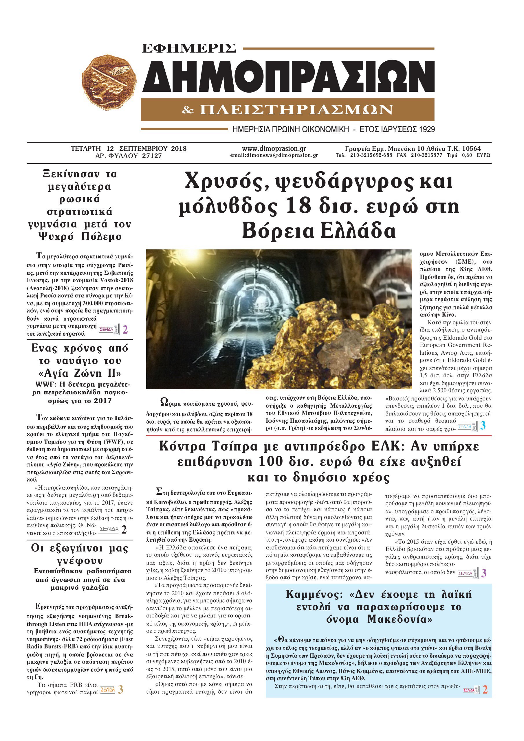 Οι οικονομικές εφημερίδες 12/9/2018 Enikos Newsroom 06:28, Τετάρτη 12 Σεπτεμβρίου 2018 Media Διαβάστε τα πρωτοσέλιδα: ΟΙΚΟΝΟΜΙΚΕΣ ΕΦΗΜΕΡΙΔΕΣ ΠΡΩΤΟΣΕΛΙΔΑ Μοιράσου το: σχολίασε κι εσύ (0 σχόλια) Ακολουθήστε το enikos.gr στο Google News και μάθετε πρώτοι όλες τις ειδήσεις Δείτε όλες τις τελευταίες ειδήσεις από την Ελλάδα και τον Κόσμο στο enikos.gr Ειδήσεις Ροή Ειδήσεων 45 λεπτά πριν Ευρωπαϊκή Ένωση: Χωρίς συμφωνία, για την μακροπρόθεσμη χρηματοδότηση της Ουκρανίας, ολοκληρώθηκε η Σύνοδος Κορυφής στις Βρυξέλλες 4 ώρες πριν ΟΠΕΚΕΠΕ: Προφυλακιστέος ο φερόμενος αρχηγός και ο λογιστής της εγκληματικής οργάνωσης 5 ώρες πριν Αυξάνουν την πίεση προς την κυβέρνηση οι αγρότες: Κλείνουν παρακαμπτήριους και ανοίγουν διόδια – Τι θα γίνει τις γιορτές 5 ώρες πριν Φοινικούντα: Το Σάββατο απολογείται ο 30χρονος γιος γνωστού επιχειρηματία της Πλάκας που παραδόθηκε – Όσα είπε στους αστυνομικούς και ο ρόλος του στο έγκλημα 4 ώρες πριν ΑΕΚ – Κραϊόβα 3-2: Επική ανατροπή και πρόκριση στους «16» του Conference League η Ένωση 5 ώρες πριν Αρχαιολόγοι ανακάλυψαν ρωμαϊκά τεχνουργήματα από μια πόλη που δεν υπήρξε ποτέ – Τα τρία εντυπωσιακά κτίρια και ο αμφορέας με τις… σαρδέλες 6 ώρες πριν Ύπνος: Η απλή βραδινή ρουτίνα για να προστατεύσετε τα μαλλιά σας από το κρύο κατά τη διάρκεια του χειμώνα 7 ώρες πριν Manifesting: Πώς να συναντήσετε τον σύντροφο της ζωής σας, ανάλογα με τον μήνα γέννησής σας 2 ημέρες πριν 20 χρόνια τα Χριστούγεννα ξεκινούν στα Public με μεγάλη ποικιλία σε δώρα! 42 δευτερόλεπτα πριν Στη Φλόριντα σήμερα οι διαβουλεύσεις σχετικά με τα επόμενα στάδια για τη Λωρίδα της Γάζας 5 λεπτά πριν Σίσσυ Τουμάση: «Είμαι ασθενοφοβική πάρα πολύ και με πιάνει μια παράνοια μ’ αυτό» 29 λεπτά πριν Ντόναλντ Τραμπ: Δεν χρειάζομαι την έγκριση του Κογκρέσου για να διατάξω στρατιωτικά πλήγματα στη Βενεζουέλα 45 λεπτά πριν Ευρωπαϊκή Ένωση: Χωρίς συμφωνία, για την μακροπρόθεσμη χρηματοδότηση της Ουκρανίας, ολοκληρώθηκε η Σύνοδος Κορυφής στις Βρυξέλλες 1 ώρα πριν GNTM: «Κλείδωσαν» οι τέσσερις φιναλίστ – Μεγάλη ανατροπή στις τελευταίες αποχωρήσεις ENIKOS NETWORK Σε περίοδο αυξημένης δραστηριότητας η γρίπη στην Ελλάδα-Μέτρα προστασίας από τον ΕΟΔΥ Σκέφτεστε συνέχεια συζητήσεις που έχετε κάνει; Τι σημαίνει αυτό, σύμφωνα με ειδικό Στεγαστικό: Τι λέει η ΠΟΜΙΔΑ για τα νέα μέτρα που ανακοίνωσε ο Κυριάκος Μητσοτάκης Λαγκάρντ: Αισιόδοξη για την ανάπτυξη της Ευρωζώνης, αβέβαιη για τον πληθωρισμό Χαρτογραφώντας το «σημείο χωρίς επιστροφή»: Για πρώτη φορά αποκαλύπτεται με λεπτομέρεια το ακανθώδες όριο της ατμόσφαιρας τ... Η Google καταργεί τη λειτουργία «dark web report» – Πώς θα μπορούν οι χρήστες να διαγράφουν τα δεδομένα τους περισσότερα 02:50 , Παρασκευή 19 Δεκεμβρίου 2025 GNTM: «Κλείδωσαν» οι τέσσερις φιναλίστ – Μεγάλη ανατροπή στις τελευταίες αποχωρήσεις Για προτελευταία φορά εμφανίστηκαν στο πλατό του GNTM οι φιναλίστ του φετινού κύκλου, το βράδυ... 17:45 , Πέμπτη 18 Δεκεμβρίου 2025 ROUK ZOUK: Εορταστικό επεισόδιο με καλεσμένους τους πρωταγωνιστές του «Γιατί ρε πατέρα» Το Σάββατο 20 Δεκεμβρίου στις 21:00, η Ζέτα Μακρυπούλια υποδέχεται εκλεκτούς ηθοποιούς που όλο... 17:20 , Πέμπτη 18 Δεκεμβρίου 2025 Άγιος έρωτας: Η Χριστίνα εξομολογείται στον πατέρα Νικόλαο, απόψε στις 21:00 στον Alpha Η Νότα αποφασίζει να εκδικηθεί τον Πέτρο και τον Στέφανο, για χάρη του Λούη, όμως τα πράγματα ... 16:50 , Πέμπτη 18 Δεκεμβρίου 2025 Να μ’ αγαπάς: Ζωή και Φωτεινή συμφιλιώνονται ως μάνα με κόρη, απόψε στις 20:0