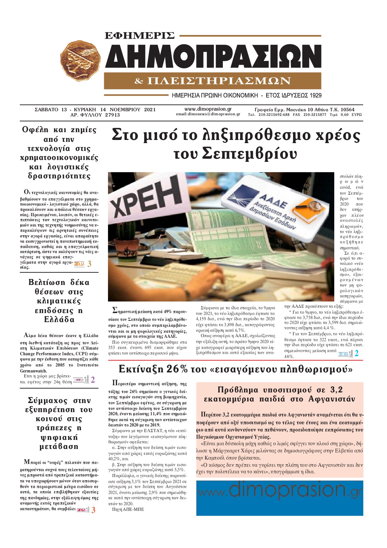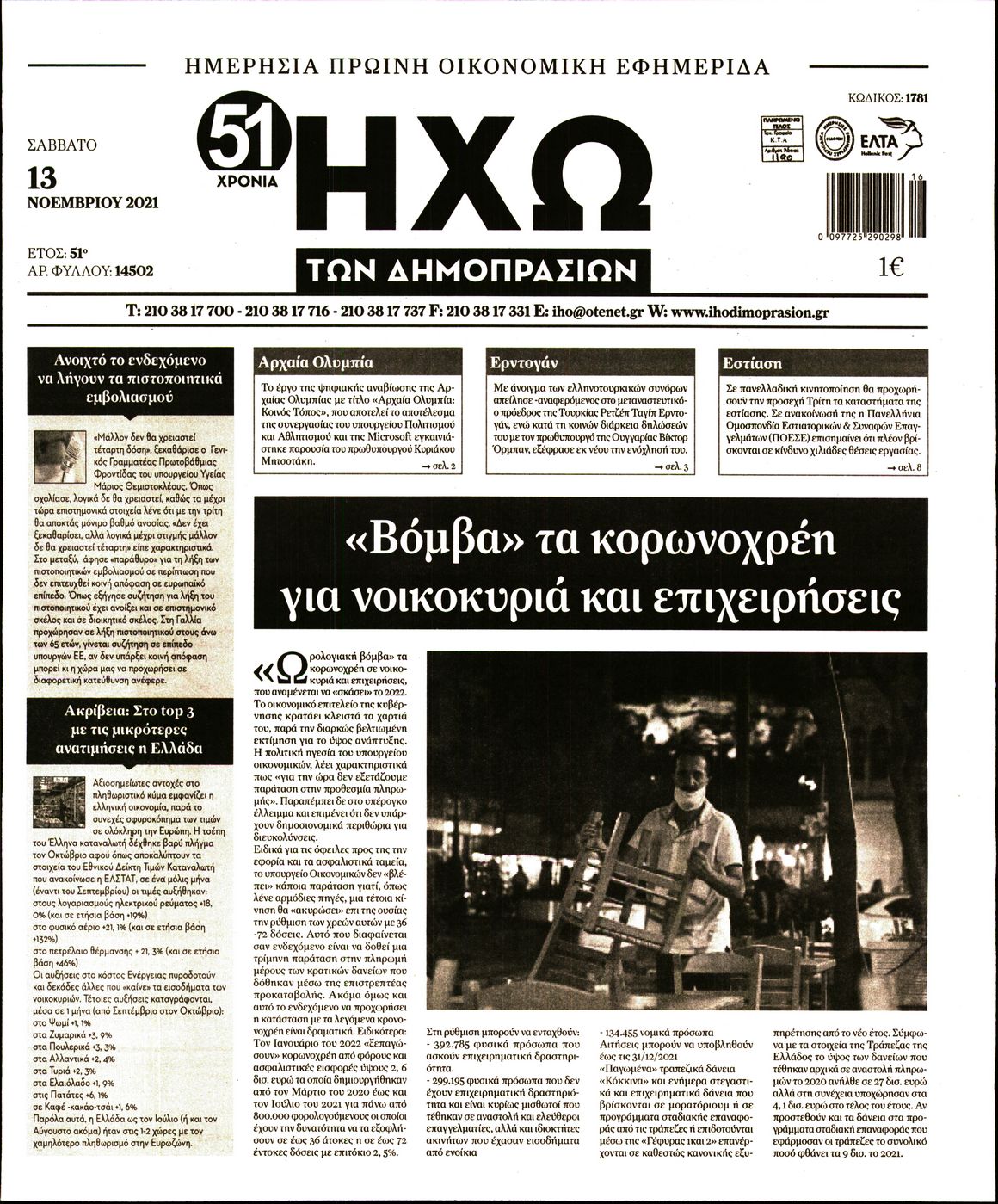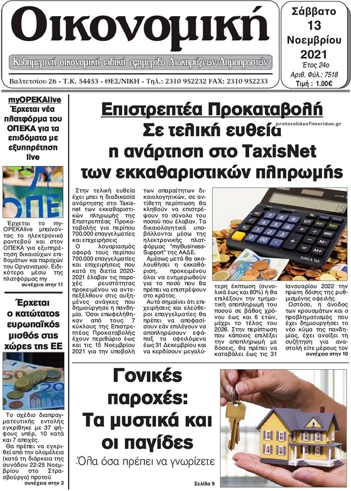 Οι οικονομικές εφημερίδες 13/11/2021 Διονύσης Νίκκας 07:30, Σάββατο 13 Νοεμβρίου 2021 Media Διαβάστε τα πρωτοσέλιδα από τις οικονομικές εφημερίδες… ΟΙΚΟΝΟΜΙΚΕΣ ΕΦΗΜΕΡΙΔΕΣ Μοιράσου το: σχολίασε κι εσύ (0 σχόλια) Ακολουθήστε το enikos.gr στο Google News και μάθετε πρώτοι όλες τις ειδήσεις Δείτε όλες τις τελευταίες ειδήσεις από την Ελλάδα και τον Κόσμο στο enikos.gr Ειδήσεις Ροή Ειδήσεων 52 λεπτά πριν Αγρότες: Πολύωροι αποκλεισμοί στα τελωνεία Προμαχώνα, Εξοχής, Ευζώνων και Νίκης – Κλείνουν τον κόμβο Φιλώτα οι παραγωγοί στη Δυτική Μακεδονία 22 λεπτά πριν Νίκος Παππάς: Ζητώ συγγνώμη για αυτό το επεισόδιο – Δεν τον γρονθοκόπησα 3 ώρες πριν Ευρωπαϊκό Συμβούλιο: Όλες οι λεπτομέρειες για το δάνειο των 90 δισ. ευρώ στην Ουκρανία – Τα συμπεράσματα της Συνόδου Κορυφής 2 ώρες πριν Αίγιο: 22χρονη κατήγγειλε ότι έπεσε θύμα βιασμού και ληστείας από συγγενικά της πρόσωπα 2 ώρες πριν Σφοδρές βροχές και καταιγίδες πλήττουν τα Ηνωμένα Αραβικά Εμιράτα: Ακυρώσεις πτήσεων, προβλήματα στην κυκλοφορία 1 ώρα πριν Αλλαγή σελίδας για 3 ζώδια – «Μία δύσκολη περίοδος φτάνει στο τέλος της» 3 ώρες πριν Πώς το αρχαίο DNA του κυνηγού – συλλέκτη ξεκλείδωσε τα μυστικά της μακροζωίας 2 ημέρες πριν 20 χρόνια τα Χριστούγεννα ξεκινούν στα Public με μεγάλη ποικιλία σε δώρα! 2 ώρες πριν Ο σύζυγός της συμπεριφέρεται όπως το παιδί τους – «Χρησιμοποιεί αστείες δικαιολογίες για να μην κάνει δουλειές και να ξοδεύει λεφτά» 4 λεπτά πριν Τομ Κρουζ: Χορεύει με ένα φτυάρι στη νέα ταινία του Αλεχάντρο Γκονζάλες Ινιάριτου, «Digger» 10 λεπτά πριν Γεμάτος νεροχύτης; 5 σοβαρές ευθύνες που «φοβίζουν» όσους αφήνουν άπλυτα πιάτα 14 λεπτά πριν Ρόδος: Επεισόδιο μεταξύ ανηλίκων έξω από σχολείο – Απείλησαν με σουγιά 12χρονο 19 λεπτά πριν Γιώργος Μαζωνάκης: Η πρώτη αντίδραση της οικογένειάς του μετά τη μήνυση του Στέφανου Παπαδόπουλου 22 λεπτά πριν Νίκος Παππάς: Ζητώ συγγνώμη για αυτό το επεισόδιο – Δεν τον γρονθοκόπησα ENIKOS NETWORK Καρκίνος του πνεύμονα: Έως 8.000 ζωές μπορούν να σωθούν με την έγκαιρη διάγνωση Καρδιοπαθείς: Οι νέες συστάσεις για τα εμβόλια που πρέπει να κάνουν τον χειμώνα Απειλή για τον Προϋπολογισμό τα ληξιπρόθεσμα χρέη των ιδιωτών προς την εφορία – Τι δείχνουν τα στοιχεία Συντάξεις: Οι κερδισμένοι και οι χαμένοι από τις αυξήσεις – Αναλυτικός οδηγός Χαρτογραφώντας το «σημείο χωρίς επιστροφή»: Για πρώτη φορά αποκαλύπτεται με λεπτομέρεια το ακανθώδες όριο της ατμόσφαιρας τ... Η Google καταργεί τη λειτουργία «dark web report» – Πώς θα μπορούν οι χρήστες να διαγράφουν τα δεδομένα τους περισσότερα 08:00 , Παρασκευή 19 Δεκεμβρίου 2025 Την Κυριακή με τη Realnews: Δωροεπιταγή 10€ Δωροεπιταγή αξίας 10€ για αγορές άνω των 60€ από τα πολυκαταστήματα FactoryOutlet H προσφορά ι... 05:48 , Παρασκευή 19 Δεκεμβρίου 2025 Οι οικονομικές εφημερίδες 19/12/2025 Διαβάστε τα πρωτοσέλιδα από τις οικονομικές εφημερίδες, σήμερα 19/12/2025. 05:43 , Παρασκευή 19 Δεκεμβρίου 2025 Οι αθλητικές εφημερίδες 19/12/2025 Διαβάστε τα πρωτοσέλιδα από τις αθλητικές εφημερίδες, σήμερα 19/12/2025. 05:38 , Παρασκευή 19 Δεκεμβρίου 2025 Οι πολιτικές εφημερίδες 19/12/2025 Διαβάστε τα πρωτοσέλιδα από τις πολιτικές εφημερίδες, σήμερα 19/12/2025. ΤΕΛΕΥΤΑΙΕΣ ΕΙΔΗΣΕΙΣ 4 λεπτά πριν Τομ Κρουζ: Χορεύει με ένα φτυάρι στη νέα ταινία του... 10 λεπτά πριν Γεμάτος νεροχύτης; 5 σοβαρές ευθύνες που «φοβίζουν»... 14 λεπτά πριν Ρόδος: Επεισόδιο μεταξύ ανηλίκων έξω από σχολείο –... 19 λεπτά πριν Γιώργος Μαζωνάκης: Η πρώτη αντίδραση της οικογένειάς... 22 λεπτά πριν Ν