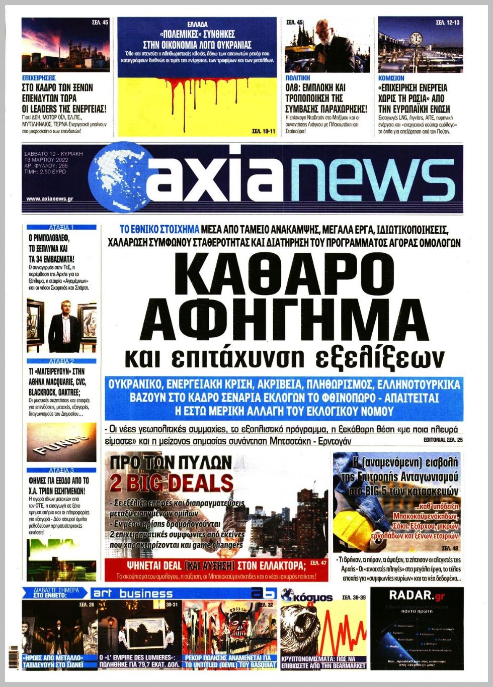 Οι οικονομικές εφημερίδες 13/3/2022 Διονύσης Νίκκας 07:19, Κυριακή 13 Μαρτίου 2022 Media Διαβάστε τα πρωτοσέλιδα από τις οικονομικές εφημερίδες… ΟΙΚΟΝΟΜΙΚΕΣ ΕΦΗΜΕΡΙΔΕΣ Μοιράσου το: Ουκρανία: Ήχησαν σειρήνες στο Κίεβο για αεροπορική επιδρομή Bild: Πολύωρη συνάντηση Σρέντερ-Πούτιν για τον πόλεμο στην Ουκρανία Βρετανία: Μηνιαίο επίδομα 350 λιρών για τη φιλοξενία προσφύγων από την Ουκρανία σχολίασε κι εσύ (0 σχόλια) Ακολουθήστε το enikos.gr στο Google News και μάθετε πρώτοι όλες τις ειδήσεις Δείτε όλες τις τελευταίες ειδήσεις από την Ελλάδα και τον Κόσμο στο enikos.gr Ειδήσεις Ροή Ειδήσεων 60 λεπτά πριν Δημοσκόπηση Metron Analysis: Στις 10 μονάδες η διαφορά ΝΔ-ΠΑΣΟΚ, στην 3η θέση η Πλεύση Ελευθερίας – 8 στους 10 στηρίζουν τον αγώνα των αγροτών 5 ώρες πριν Αγρότες: «Όχι στον διάλογο, μας εμπαίζει η κυβέρνηση» – Αποφάσισαν κλιμάκωση των κινητοποιήσεων, τι θα γίνει τα Χριστούγεννα 48 λεπτά πριν Νίκος Παππάς στον ΑΝΤ1: «Δεν κρύβομαι – Μετά το συμβάν ακολούθησα κανονικά το πρόγραμμά μου» – ΒΙΝΤΕΟ 2 ώρες πριν Αθήνα: Εξαρθρώθηκε εγκληματική οργάνωση που διακινούσε ναρκωτικά σε μορφή σοκολάτας – Δύο τράπερ ανάμεσα στους 4 συλληφθέντες – ΒΙΝΤΕΟ 41 λεπτά πριν Διαμαντής Καραναστάσης: Οδηγούσε υπό την επήρεια αλκοόλ – Του αφαιρέθηκε το δίπλωμα και του επιβλήθηκε πρόστιμο 350 ευρώ 1 ώρα πριν Manifesting: Πώς να συναντήσετε τον σύντροφο της ζωής σας, ανάλογα με τον μήνα γέννησής σας 3 ώρες πριν Γάμος: 11 ψυχρές αλλά ευγενικές φράσεις, που λέει ένας άνδρας όταν σκέφτεται τον χωρισμό 2 ώρες πριν Σφουγγάρισμα: Η συνήθεια που θα σας βοηθήσει να διατηρήσετε το σπίτι σας καθαρό και τακτοποιημένο 2 ημέρες πριν 20 χρόνια τα Χριστούγεννα ξεκινούν στα Public με μεγάλη ποικιλία σε δώρα! 3 λεπτά πριν Κλήρωση ΤΖΟΚΕΡ 18/12/2025: Αυτοί είναι οι τυχεροί αριθμοί 6 λεπτά πριν Τραμπ: Ζητεί από την Ουκρανία να “κινηθεί γρήγορα” στις διαπραγματεύσεις για το τέλος της σύγκρουσης 12 λεπτά πριν Ύπνος: Η απλή βραδινή ρουτίνα για να προστατεύσετε τα μαλλιά σας από το κρύο κατά τη διάρκεια του χειμώνα 19 λεπτά πριν Κατερίνα Καινούργιου: «Δεν θα αφήσω κανέναν να χαλάσει τη ζαχαρένια μου στην ομορφότερη περίοδο της ζωής μου» 26 λεπτά πριν Θεσσαλονίκη: Προθεσμία για την επόμενη εβδομάδα έλαβαν οι συλληφθέντες για το κύκλωμα trafficking – Οι οίκοι ανοχής, τα «φρουτάκια» και οι ρόλοι ENIKOS NETWORK Σε περίοδο αυξημένης δραστηριότητας η γρίπη στην Ελλάδα-Μέτρα προστασίας από τον ΕΟΔΥ Σκέφτεστε συνέχεια συζητήσεις που έχετε κάνει; Τι σημαίνει αυτό, σύμφωνα με ειδικό ΕΛΤΑ: Αυτό είναι το νέο σχέδιο μετασχηματισμού του Οργανισμού- Τι δήλωσαν Πιερρακάκης και Παπαστεργίου ΕΛΣΤΑΤ: Τι δείχνουν τα νέα στοιχεία για τον μόνιμο πληθυσμό στην Ελλάδα Χαρτογραφώντας το «σημείο χωρίς επιστροφή»: Για πρώτη φορά αποκαλύπτεται με λεπτομέρεια το ακανθώδες όριο της ατμόσφαιρας τ... Η Google καταργεί τη λειτουργία «dark web report» – Πώς θα μπορούν οι χρήστες να διαγράφουν τα δεδομένα τους περισσότερα 17:45 , Πέμπτη 18 Δεκεμβρίου 2025 ROUK ZOUK: Εορταστικό επεισόδιο με καλεσμένους τους πρωταγωνιστές του «Γιατί ρε πατέρα» Το Σάββατο 20 Δεκεμβρίου στις 21:00, η Ζέτα Μακρυπούλια υποδέχεται εκλεκτούς ηθοποιούς που όλο... 17:20 , Πέμπτη 18 Δεκεμβρίου 2025 Άγιος έρωτας: Η Χριστίνα εξομολογείται στον πατέρα Νικόλαο, απόψε στις 21:00 στον Alpha Η Νότα αποφασίζει να εκδικηθεί τον Πέτρο και τον Στέφανο, για χάρη του Λούη, όμως τα πράγματα ... 16:50 , Πέμπτη 18 Δεκεμβρίου 2025 Να μ’ αγαπάς: Ζωή και Φωτεινή συμφιλιώνονται ως μά
