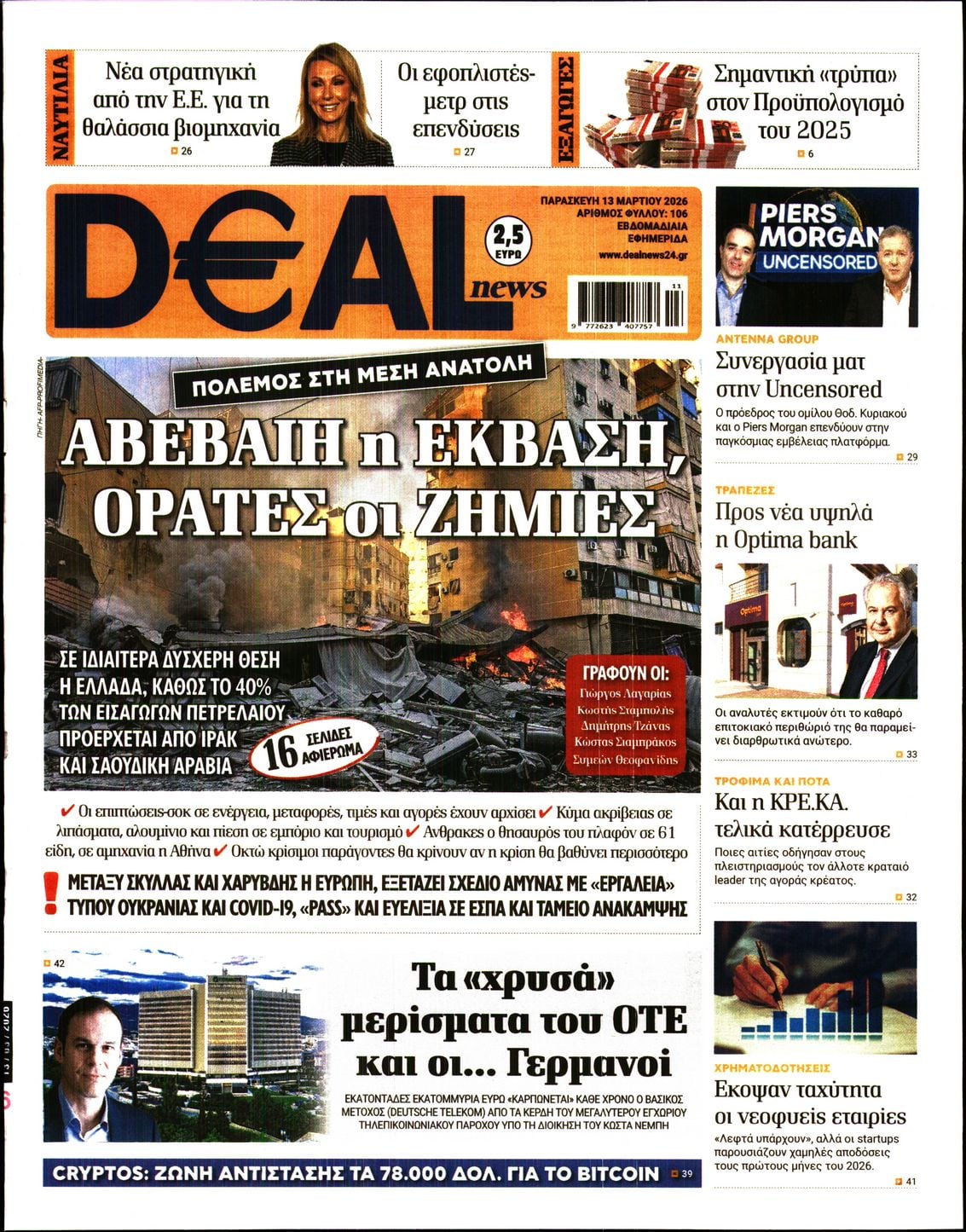 Οι οικονομικές εφημερίδες 13/3/2026 Γιωργος Λαμπρόπουλος 05:48, Παρασκευή 13 Μαρτίου 2026 Media Διαβάστε τα πρωτοσέλιδα από τις οικονομικές εφημερίδες, σήμερα 13/3/2026. ΕΦΗΜΕΡΙΔΕΣ ΟΙΚΟΝΟΜΙΚΕΣ ΕΦΗΜΕΡΙΔΕΣ ΠΡΩΤΟΣΕΛΙΔΑ Μοιράσου το: Οι ΗΠΑ έδωσαν προσωρινή άδεια για πώληση ρωσικού πετρελαίου Καγκελάριος Μερτς: Δεν υπάρχουν ενδείξεις για κίνδυνο επιθέσεων στο εσωτερικό – Ευχαριστίες του ομοσπονδιακού προέδρου στις χώρες του Κόλπου Η Αυστραλία διατάσσει την άμεση απομάκρυνση του διπλωματικού προσωπικού της από το Ισραήλ και τα ΗΑΕ σχολίασε κι εσύ (0 σχόλια) Ακολουθήστε το enikos.gr στο Google News και μάθετε πρώτοι όλες τις ειδήσεις Δείτε όλες τις τελευταίες ειδήσεις από την Ελλάδα και τον Κόσμο στο enikos.gr Ειδήσεις Ροή Ειδήσεων 23 ώρες πριν LIVE – 13η ημέρα πολέμου ΗΠΑ – Ισραήλ με Ιράν – Οι εξελίξεις 8 ώρες πριν Τραμπ: Γιατί δεν έχει εύκολες λύσεις για τον τερματισμό του πολέμου – Τα λάθη, η υποτίμηση του αντιπάλου και η κόλαση στο Ορμούζ 8 ώρες πριν Οδυσσέας Κωνσταντινόπουλος: Η πρώτη αντίδραση για τη διαγραφή του – «Το τελευταίο καταφύγιο μιας φοβικής ηγεσίας» 9 ώρες πριν Κατασκοπεία στη Σούδα: Βρέθηκαν φωτογραφίες πολεμικών πλοίων στο κινητό του Πολωνού – Αρνείται τις κατηγορίες ο ίδιος 10 ώρες πριν Παναθηναϊκός – Μπέτις 1-0: Μεγάλη νίκη και προβάδισμα για την πρόκριση 58 λεπτά πριν Οπτική ψευδαίσθηση: Μόνο αν είσαι ο Σέρλοκ Χολμς θα βρεις την λεοπάρδαλη σε 15 δευτερόλεπτα 1 ώρα πριν Έλλειψη βιταμίνης D: Πώς συνδέεται με τη χρόνια φλεγμονή, σύμφωνα με νέα μελέτη 4 ώρες πριν Ζώδια 13/3: Ημερήσιες προβλέψεις – Κριοί, φτιάχνετε κάτι που θα κρατήσει 9 ώρες πριν Παγκόσμια Ημέρα Ύπνου 2026: 5 απλές συνήθειες που θα σας βοηθήσουν να κοιμάστε καλύτερα 48 λεπτά πριν Αυτή την Κυριακή με τη Realnews: «Στις μυστικές υπηρεσίες της Μαρίας Αντουανέτας – Τα διαμάντια του θανάτου» – Μυστικά και ίντριγκες στα ανάκτορα των Βερσαλλιών – Από τον συγγραφέα Frédéric Lenormand 1 λεπτό πριν Οι αθλητικές μεταδόσεις της Παρασκευής 13/3/2026 – Παναθηναϊκός-Ολυμπιακός, Euroleague & Ποδόσφαιρο 13 λεπτά πριν Την Κυριακή με τη Realnews: Ό,τι και αν αγοράσεις, σκανάρεις και κερδίζεις! 21 λεπτά πριν UNESCO: Καταστροφές σε μνημεία παγκόσμιας πολιτιστικής κληρονομιάς στο Ιράν λόγω του πολέμου 38 λεπτά πριν ΔΕΔΔΗΕ: Διακοπές ρεύματος σήμερα (13/3) στην Αθήνα και σε άλλες 9 περιοχές της Αττικής ENIKOS NETWORK Είστε τόσο παρατηρητικοί ώστε να βρείτε τις 3 διαφορές στην εικόνα με τον ζωγράφο σε 79 δευτερόλεπτα; Το αρωματικό λαχανικό των Νεμεών που μπορεί να βελτιώσει τη χώνευση και να μειώσει τη φλεγμονή Πώς θα εφαρμοστεί το πλαφόν στα τρόφιμα – Αναλυτικά παραδείγματα Στουρνάρας: Στα επίπεδα του 2025 η ανάπτυξη αν η κρίση στη Μέση Ανατολή κρατήσει ένα μήνα Ευπάθεια στο moltbook ai αποκαλύπτει email, tokens σύνδεσης και api keys Αυτός είναι ο ρόλος της μικρής τρύπας στους νυχοκόπτες – «Είμαι ο μόνος που δεν το ήξερε;»» περισσότερα 07:11 , Παρασκευή 13 Μαρτίου 2026 Οι αθλητικές μεταδόσεις της Παρασκευής 13/3/2026 – Παναθηναϊκός-Ολυμπιακός, Euroleague & Ποδόσφαιρο Το ματς Παναθηναϊκός – Ολυμπιακός για τη Volley League Ανδρών, τα παιχνίδια της Ευρωλίγκας και... 05:38 , Παρασκευή 13 Μαρτίου 2026 Οι πολιτικές εφημερίδες 13/3/2026 Διαβάστε τα πρωτοσέλιδα από τις πολιτικές εφημερίδες, σήμερα 13/3/2026. 20:42 , Πέμπτη 12 Μαρτίου 2026 Μπαμπά, σ’ αγαπώ: Τι θα κάνουν τα «τρία μπαμπαδάκια» όταν η ζωή θα τους δώσει… λεμόνια; Στο νέο επεισόδιο της οικογενειακής σειράς του Alpha «Μπαμπά, σ’ αγαπώ» απόψε στις 21:00... 12:13 , Πέμπτη 12 Μ