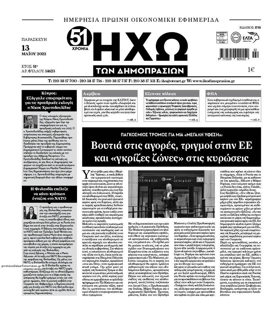 Οι οικονομικές εφημερίδες 13/5/2022 Σταύρος Ιωακείμ 06:33, Παρασκευή 13 Μαΐου 2022 Media Διαβάστε τα πρωτοσέλιδα από τις οικονομικές εφημερίδες… ΕΦΗΜΕΡΙΔΕΣ ΟΙΚΟΝΟΜΙΚΕΣ ΕΦΗΜΕΡΙΔΕΣ ΠΡΩΤΟΣΕΛΙΔΑ Μοιράσου το: Οι αθλητικές εφημερίδες 13/5/2022 Οι πολιτικές εφημερίδες 13/5/2022 Χιλή: Υπέκυψε 30χρονη δημοσιογράφος που είχε τραυματιστεί από σφαίρα σε επεισόδια την Πρωτομαγιά σχολίασε κι εσύ (0 σχόλια) Ακολουθήστε το enikos.gr στο Google News και μάθετε πρώτοι όλες τις ειδήσεις Δείτε όλες τις τελευταίες ειδήσεις από την Ελλάδα και τον Κόσμο στο enikos.gr Ειδήσεις Ροή Ειδήσεων 43 λεπτά πριν Πούτιν: «Ανοησίες» και «υστερίες» οι ισχυρισμοί της Ευρώπης για πιθανή σύγκρουση με τη Ρωσία – «Κάνουν πλύση εγκεφάλου» 5 ώρες πριν Έρευνα MRB: Η πρόθεση ψήφου και τα σημαντικότερα προβλήματα – Οι «λέξεις» που εκφράζουν τους πολίτες 1 ώρα πριν Κυψέλη: Στον ανακριτή η 16χρονη που μαχαίρωσε την 14χρονη – «Είχα το μαχαίρι για προστασία – Έχω θέμα με τα νεύρα μου» 33 λεπτά πριν Συνάντηση Μητσοτάκη με την Κ.Ο. της ΝΔ: Οι αφίξεις των βουλευτών, τα γλυκά και τα «πηγαδάκια» 2 ώρες πριν Αμοργός: «Θα προσπαθήσω να το κάνω κάθε μέρα» – Ποιος είναι ο αγρότης που έστησε μόνος του το πρώτο μπλόκο στο νησί 5 ώρες πριν Τα 4 ζώδια που ξαναβρίσκουν τον εαυτό τους – «Μπαίνετε επιτέλους στην ουσία των πραγμάτων» 6 ώρες πριν 20 χρόνια τα Χριστούγεννα ξεκινούν στα Public με μεγάλη ποικιλία σε δώρα! 4 ώρες πριν «Δεν είχα κλάψει από τότε που διαγνώστηκα με καρκίνο, ώσπου ένα τηλεφώνημα με έκανε να λυγίσω» – Η συγκλονιστική εξομολόγηση ενός άνδρα 3 ώρες πριν Τα 7 σπάνια χαρακτηριστικά που κάνουν κάποιους ανθρώπους ακαταμάχητους 2 λεπτά πριν Τζιτζικώστας από το Στρασβούργο: «Σανίδα σωτηρίας για την ευρωπαϊκή αυτοκινητοβιομηχανία η νέα δέσμη μέτρων που υιοθετήσαμε – Κινητήρες εσωτερικής καύσης και υβριδικά οχήματα και μετά το 2035» 5 λεπτά πριν Τροχαίο στην Αττική Οδό: Κλειστή η δεξιά λωρίδα μετά την έξοδο Μαραθώνος στο ρεύμα προς Αεροδρόμιο 12 λεπτά πριν Debate Καιρίδη – Γιαννούλη στον Realfm 97,8 για τη συζήτηση στη Βουλή, την ακρίβεια και τον πρωτογενή τομέα 17 λεπτά πριν Λίλι Κόλινς: Σχολίασε τη διαμάχη Μακρόν – Ρώμης για το «Emily in Paris» – «Γίναμε μέρος ενός ευρωπαϊκού πολιτικού ερωτικού τριγώνου» 22 λεπτά πριν Βουλή: Αντιπαράθεση Κωνσταντοπούλου – Μηταράκη με αφορμή δικογραφία κατά της προέδρου της Πλεύσης Ελευθερίας ENIKOS NETWORK 5 πράγματα που αποφεύγει γαστρεντερολόγος για να μειώσει τον κίνδυνο καρκίνου του εντέρου Ανησυχητική αύξηση της υπέρτασης στα παιδιά – Πώς θα τα προστατέψουμε; «IRIS Παντού»: Στην κορυφή της Ευρώπης η Ελλάδα με 120 εκατ. ευρώ συναλλαγές το 2025 – Η σύγκριση με τις άλλες χώρες της Ευ... Αδειοδωρόσημο Χριστουγέννων 2025: Πότε γίνεται η καταβολή του και σε ποιους Σύγχρονος Νοστράδαμος: Προειδοποιεί για «μεγάλο γεγονός» τους επόμενους μήνες που θα συγκλονίσει τη Βρετανία και τον κόσμο Τεστ παρατηρητικότητας: Μπορείτε να βρείτε τις 3 διαφορές στις εικόνες με έναν πιγκουίνο σε 14 δευτερόλεπτα περισσότερα 12:35 , Τετάρτη 17 Δεκεμβρίου 2025 Μίρκα Παπακωνσταντίνου: «Δεν ήμουν αισιόδοξη για τα νούμερα – Είμαι ρεαλίστρια» Στα γυρίσματα του εορταστικού επεισοδίου της αγαπημένης σειράς “Το Σόι Σου”, βρέθηκε η κάμερα ... 12:12 , Τετάρτη 17 Δεκεμβρίου 2025 Ακούστε την εκπομπή του Νίκου Χατζηνικολάου 17/12/2025 Ακούστε την εκπομπή του Νίκου Χατζηνικολάου στον ραδιοφωνικό σταθμό RealFm 97,8, την Τετάρτη 1... 11:35 , Τετάρτη 17 Δεκεμβρίου 2025 Home Alone: Το σπίτι τη