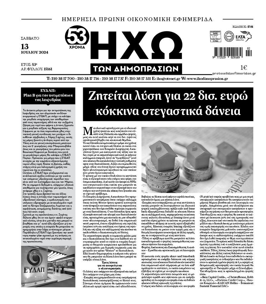 Οι οικονομικές εφημερίδες 13/7/2024 Γρηγόρης Αναγνώστου 07:20, Σάββατο 13 Ιουλίου 2024 Media Διαβάστε τα πρωτοσέλιδα από τις οικονομικές εφημερίδες, σήμερα 13/7/2024. ΕΦΗΜΕΡΙΔΕΣ ΟΙΚΟΝΟΜΙΚΕΣ ΕΦΗΜΕΡΙΔΕΣ ΠΡΩΤΟΣΕΛΙΔΑ Μοιράσου το: Εφημερεύοντα φαρμακεία σε Αθήνα και Θεσσαλονίκη (13/7) Bloomberg: Ο Έλον Μασκ δώρισε «μεγάλο ποσό» σε οργάνωση που εργάζεται για την εκλογή του Ντόναλντ Τραμπ Ο πρόεδρος των ΗΠΑ Μπάιντεν προσπαθεί να καθησυχάσει υποστηρικτές του στο Μίσιγκαν – «Σας υπόσχομαι ότι είμαι καλά» σχολίασε κι εσύ (0 σχόλια) Ακολουθήστε το enikos.gr στο Google News και μάθετε πρώτοι όλες τις ειδήσεις Δείτε όλες τις τελευταίες ειδήσεις από την Ελλάδα και τον Κόσμο στο enikos.gr Ειδήσεις Ροή Ειδήσεων 1 ώρα πριν Κυψέλη: Επεισόδιο με μαχαίρωμα μέσα σε σχολείο – Τραυματίστηκε 14χρονη 2 ώρες πριν Βουλή: Κατατέθηκε το νομοσχέδιο για την αναδιάρθρωση των Ενόπλων Δυνάμεων – Όλα όσα προβλέπει 2 ώρες πριν Παύλος Μαρινάκης: Στις 15:00 οι ανακοινώσεις Τσιάρα για τα αιτήματα των αγροτών – «Δεν γίνεται διάλογος με ταχυδρομικά περιστέρια» 3 ώρες πριν Σίδνεϊ: Τα ονόματα των θυμάτων από την τρομοκρατική επίθεση – Η 10χρονη Ματίλντα και ο επιζών του Ολοκαυτώματος που έσωσε τη γυναίκα του 5 ώρες πριν Δείτε LIVE το συνέδριο «Ελληνικός Τουρισμός, Μια Εθνική Υπόθεση!» 3 ώρες πριν Μακροζωία: 55χρονος που ισχυρίζεται ότι βιολογικά είναι 20 ετών μοιράζεται μια απλή συμβουλή για υγιή εγκέφαλο 5 ώρες πριν Τα 3 ζώδια που μπαίνουν σε μια νέα δυναμική εποχή – «Είστε έτοιμοι για όλα» 4 ώρες πριν Οι 8 φράσεις που δίνουν αμέσως την εντύπωση πως είστε δύσκολος άνθρωπος 6 ώρες πριν Κληρονόμησε 2,8 εκατ. ευρώ και φοβάται ότι οι άνδρες θα την πλησιάζουν για τα λεφτά – «Μήπως καλύτερα να το κρατήσω μυστικό;» 5 λεπτά πριν Λάρισα: «Πρωτοχρονιά στα μπλόκα αν δεν ικανοποιηθούν τα αιτήματά μας» – Συγκέντρωση αγροτών στην κεντρική πλατεία για τη δίκη δύο συναδέλφων τους 9 λεπτά πριν Παρίσι: Ακυρώθηκε η πρωτοχρονιάτικη συναυλία στα Ηλύσια Πεδία για «λόγους ασφαλείας» – Φόβοι για τρομοκρατικές ενέργειες και βίαια επεισόδια 15 λεπτά πριν Βελόπουλος: Προσυπογράφουμε ένα προς ένα τα αιτήματα των αγροτών – Σηκωθείτε, αγωνιστείτε, νικήστε 16 λεπτά πριν Βουλή: Κόντρα Λαζαρίδη – Δουδωνή για τις κουμπαριές 20 λεπτά πριν Τρίκαλα: Αγρότες απέκλεισαν συμβολικά για δύο ώρες γέφυρα στον Πηνειό ENIKOS NETWORK ΠΟΕΔΗΝ: Ανανέωση των συμβάσεων του ειδικού προγράμματος ΔΥΠΑ 55 ετών και άνω σε δομές Υγείας Γιατί τρώμε χωρίς να πεινάμε; Τα τρόφιμα που ανοίγουν την όρεξη ειδικά στους πιο νέους Πανελλαδικές Εξετάσεις 2026: Αυτό είναι το νέο ηλικιακό όριο εισαγωγής στις Σχολές της Αστυνομίας Ισπανία: Γιατί επιβάλλει η χώρα τσουχτερό πρόστιμο στην πλατφόρμα Airbnb Σύγχρονος Νοστράδαμος: Προειδοποιεί για «μεγάλο γεγονός» τους επόμενους μήνες που θα συγκλονίσει τη Βρετανία και τον κόσμο Τεστ παρατηρητικότητας: Μπορείτε να βρείτε τις 3 διαφορές στις εικόνες με έναν πιγκουίνο σε 14 δευτερόλεπτα περισσότερα 14:27 , Δευτέρα 15 Δεκεμβρίου 2025 Να μ’ αγαπάς: Η Φωτεινή αποφασίζει να δώσει τέλος στη ζωή της Η Φωτεινή βεβαιώνεται πως είναι έγκυος στο νέο επεισόδιο της σειράς “Να μ’ αγαπάς&... 14:08 , Δευτέρα 15 Δεκεμβρίου 2025 Grand Hotel: Η Μελίνα προσπαθεί να παρασύρει τον Χαραλάμπη και να τον μπλέξει στο σχέδιό της Ανατρεπτικό νέο επεισόδιο της σειράς “Grand Hotel” έρχεται απόψε στις 21:00 στον Α... 14:02 , Δευτέρα 15 Δεκεμβρίου 2025 Συνέδριο «Ελληνικός Τουρισμός 2025, Μια εθνική υπόθεση!» – Βιώσιμη 