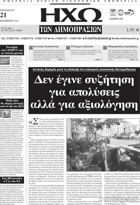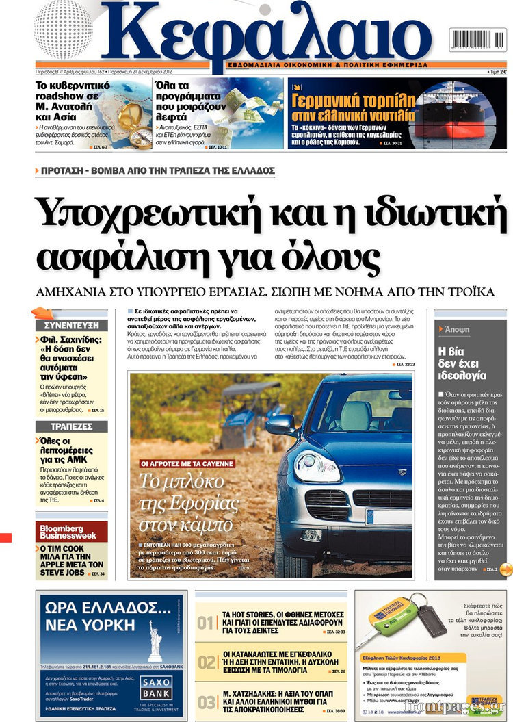 Οι οικονομικές εφημερίδες Enikos Newsroom 09:39, Παρασκευή 21 Δεκεμβρίου 2012 Media Οι οικονομικές εφημερίδες Τα πρωτοσέλιδα των οικονομικών εφημερίδων. ΕΦΗΜΕΡΙΔΕΣ ΟΙΚΟΝΟΜΙΚΕΣ ΕΦΗΜΕΡΙΔΕΣ ΠΡΩΤΟΣΕΛΙΔΑ Μοιράσου το: σχολίασε κι εσύ (0 σχόλια) Ακολουθήστε το enikos.gr στο Google News και μάθετε πρώτοι όλες τις ειδήσεις Δείτε όλες τις τελευταίες ειδήσεις από την Ελλάδα και τον Κόσμο στο enikos.gr Ειδήσεις Ροή Ειδήσεων 6 λεπτά πριν Κυψέλη: Επεισόδιο με μαχαίρωμα μέσα σε σχολείο – Τραυματίστηκε 14χρονη 1 ώρα πριν Βουλή: Κατατέθηκε το νομοσχέδιο για την αναδιάρθρωση των Ενόπλων Δυνάμεων – Όλα όσα προβλέπει 38 λεπτά πριν Παύλος Μαρινάκης: Στις 15:00 οι ανακοινώσεις Τσιάρα για τα αιτήματα των αγροτών – «Δεν γίνεται διάλογος με ταχυδρομικά περιστέρια» 3 ώρες πριν Σίδνεϊ: Τα ονόματα των θυμάτων από την τρομοκρατική επίθεση – Η 10χρονη Ματίλντα και ο επιζών του Ολοκαυτώματος που έσωσε τη γυναίκα του 4 ώρες πριν Δείτε LIVE το συνέδριο «Ελληνικός Τουρισμός, Μια Εθνική Υπόθεση!» 2 ώρες πριν Μακροζωία: 55χρονος που ισχυρίζεται ότι βιολογικά είναι 20 ετών μοιράζεται μια απλή συμβουλή για υγιή εγκέφαλο 4 ώρες πριν Τα 3 ζώδια που μπαίνουν σε μια νέα δυναμική εποχή – «Είστε έτοιμοι για όλα» 3 ώρες πριν Οι 8 φράσεις που δίνουν αμέσως την εντύπωση πως είστε δύσκολος άνθρωπος 5 ώρες πριν Κληρονόμησε 2,8 εκατ. ευρώ και φοβάται ότι οι άνδρες θα την πλησιάζουν για τα λεφτά – «Μήπως καλύτερα να το κρατήσω μυστικό;» 1 λεπτό πριν Κουτσούμπας: Πραγματικός ξεσηκωμός ο μεγαλειώδης αγώνας των αγροτών – Δώστε λύσεις τώρα κι αφήστε την κοροϊδία 6 λεπτά πριν Κυψέλη: Επεισόδιο με μαχαίρωμα μέσα σε σχολείο – Τραυματίστηκε 14χρονη 7 λεπτά πριν Σκέρτσος: Η μη υπαγωγή του ΟΠΕΚΕΠΕ στην ΑΑΔΕ θα φέρει ιδιότυπο αγροτικό Grexit 12 λεπτά πριν Θεσσαλονίκη: Δύσκολη… πίστα για τους αστυνομικούς ένα αγριογούρουνο – Έδωσαν αγώνα για να το πιάσουν – ΒΙΝΤΕΟ 17 λεπτά πριν Porto Leone: Στη γειτονιά με τα κόκκινα φανάρια – Στο τμήμα Γαλήνη και Γρηγόρης, ο Ντίνος Βούλγαρης σε σοκ ENIKOS NETWORK ΠΟΕΔΗΝ: Ανανέωση των συμβάσεων του ειδικού προγράμματος ΔΥΠΑ 55 ετών και άνω σε δομές Υγείας Γιατί τρώμε χωρίς να πεινάμε; Τα τρόφιμα που ανοίγουν την όρεξη ειδικά στους πιο νέους ΕΛΣΤΑΤ: Αύξηση 8,1% στο διαθέσιμο εισόδημα των νοικοκυριών και 5% στην κατανάλωση -Δείτε αναλυτικά τα στοιχεία Συνολικά 150 μόνιμες προσλήψεις στην ΕΑΒ: Ποιοι μπορούν να υποβάλουν αίτηση και μέχρι πότε Σύγχρονος Νοστράδαμος: Προειδοποιεί για «μεγάλο γεγονός» τους επόμενους μήνες που θα συγκλονίσει τη Βρετανία και τον κόσμο Τεστ παρατηρητικότητας: Μπορείτε να βρείτε τις 3 διαφορές στις εικόνες με έναν πιγκουίνο σε 14 δευτερόλεπτα περισσότερα 13:38 , Δευτέρα 15 Δεκεμβρίου 2025 Porto Leone: Στη γειτονιά με τα κόκκινα φανάρια – Στο τμήμα Γαλήνη και Γρηγόρης, ο Ντίνος Βούλγαρης σε σοκ Συγκλονιστική η συνέχεια της μεγάλης δραματικής σειράς του Apha «Porto Leone: Στη γειτονιά με ... 13:12 , Δευτέρα 15 Δεκεμβρίου 2025 Συνέδριο «Ελληνικός Τουρισμός 2025, Μια εθνική υπόθεση!» – Πώς χτίζεται το τουριστικό προϊόν του αύριο Τον καθοριστικό ρόλο των επενδύσεων, των στρατηγικών υποδομών και της ανάπτυξης του θεματικού ... 12:27 , Δευτέρα 15 Δεκεμβρίου 2025 Συνέδριο «Ελληνικός Τουρισμός 2025, Μια εθνική υπόθεση!» – Όλγα Κεφαλογιάννη: Στα 23,5 δισ. ευρώ τα τουριστικά έσοδα για το 2025 Τον πήχη στα 23,5 δισ. ευρώ σε ό,τι αφορά τις ταξιδιωτικές εισπράξεις για το 2025 έθεσε η υπου... 11:59 , Δευτέρα 15 Δεκεμβρίου 2025 Γιατί καθυστερεί η πρεμιέρα του «Survivor» 