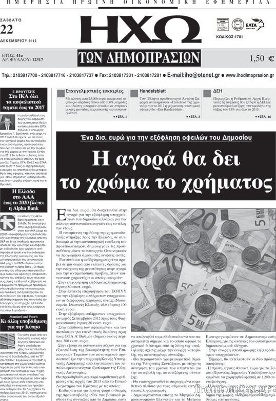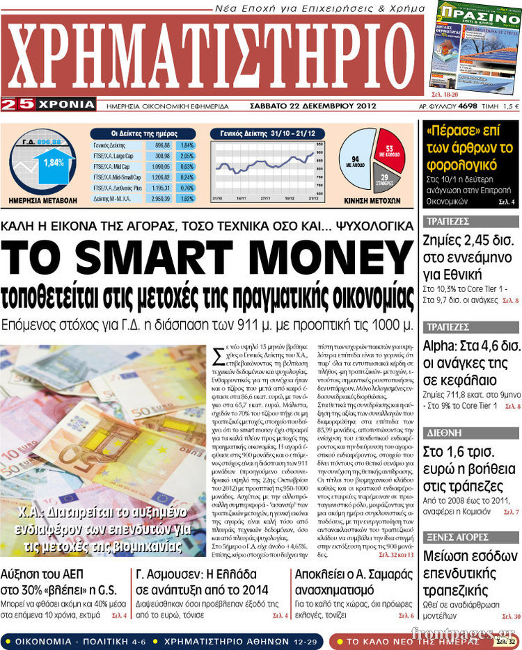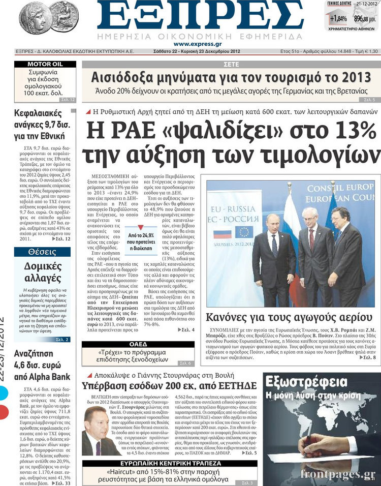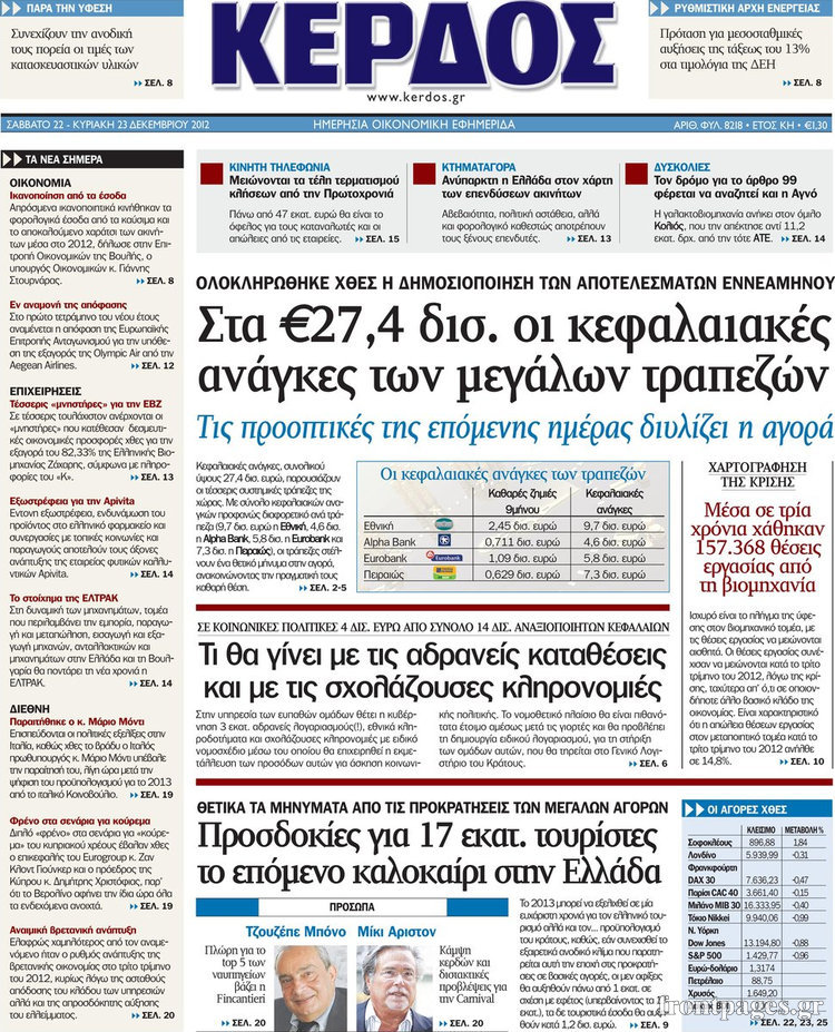 Οι οικονομικές εφημερίδες Enikos Newsroom 10:08, Σάββατο 22 Δεκεμβρίου 2012 Media Οι οικονομικές εφημερίδες ΟΙΚΟΝΟΜΙΚΕΣ ΕΦΗΜΕΡΙΔΕΣ Μοιράσου το: σχολίασε κι εσύ (0 σχόλια) Ακολουθήστε το enikos.gr στο Google News και μάθετε πρώτοι όλες τις ειδήσεις Δείτε όλες τις τελευταίες ειδήσεις από την Ελλάδα και τον Κόσμο στο enikos.gr Ειδήσεις Ροή Ειδήσεων 18 λεπτά πριν Αυστραλία: Σχέσεις με το ISIS εκτιμάται πως είχαν οι δράστες της τρομοκρατικής επίθεσης στο Σίδνεϊ 23 λεπτά πριν Αγρότες: Αμετακίνητοι από τα μπλόκα σε τελωνεία και εθνικές οδούς – Ο χάρτης των κινητοποιήσεων και τα αιτήματά τους 28 λεπτά πριν Σοκ στο Χόλιγουντ: Νεκροί από μαχαιριές ο σκηνοθέτης Ρομπ Ράινερ και η σύζυγός του – Αναφορές ότι τους σκότωσε ο γιος τους 33 λεπτά πριν Δολοφονία στη Φοινικούντα: Απολογούνται σήμερα οι δύο συλληφθέντες – Στο «κάδρο» και δύο γυναίκες 1 ώρα πριν Δάνεια σε ελβετικό φράγκο: Ανακοινώνεται η ρύθμιση – Ποιοι και πόσο όφελος θα έχουν 38 λεπτά πριν Κάτω από παλάτι κρυβόταν ένα άλλο μνημειώδες ανάκτορο: Οι ανασκαφές σε αρχαία πόλη αποκάλυψαν τα ερείπια και τα μυστικά του 2 ώρες πριν Οπτική ψευδαίσθηση: Μόνο το 1% των ανθρώπων θα βρει το ψάρι σε 12 δευτερόλεπτα 3 ώρες πριν Διατροφή: Γιατρός προειδοποιεί για 2 απλά λάθη που αυξάνουν τον κίνδυνο χρόνιων παθήσεων 3 ώρες πριν Τα ζώδια σήμερα, Δευτέρα 15 Δεκεμβρίου: Ιχθύες, ξεκινήστε από εκεί που η παρουσία σας έχει σημασία 4 λεπτά πριν Πάνω από ένας τόνος κοκαΐνης κατασχέθηκε στο λιμάνι του Πειραιά – Τέσσερις συλλήψεις 8 λεπτά πριν Συνταγή για τραγανή και πεντανόστιμη πίτσα στο air fryer – Είναι έτοιμη μέσα σε 20 λεπτά 13 λεπτά πριν «Ενέσεις» ρευστότητας στους αγρότες 18 λεπτά πριν Αυστραλία: Σχέσεις με το ISIS εκτιμάται πως είχαν οι δράστες της τρομοκρατικής επίθεσης στο Σίδνεϊ 18 λεπτά πριν Αθηνά Οικονομάκου – Μπρούνο Τσερέλα: Χριστούγεννα στην Αθήνα, Πρωτοχρονιά στο Μπουένος Αϊρες ENIKOS NETWORK Αυτή την Κυριακή με τη Realnews: Instyle μαζί Drive και Realnews Geopolitics Καρκίνος του παγκρέατος: Οι επιστήμονες αποκάλυψαν γιατί εξαπλώνεται τόσο γρήγορα Δάνεια σε ελβετικό φράγκο: Ανακοινώνεται η ρύθμιση- Ποιοι και πόσο θα έχουν όφελος – Όλες οι λεπτομέρειες Τέλος οι διώξεις για χρέη σε Εφορία και ΕΦΚΑ – Τι προβλέπει νέα διάταξη μετά την πτώχευση Σύγχρονος Νοστράδαμος: Προειδοποιεί για «μεγάλο γεγονός» τους επόμενους μήνες που θα συγκλονίσει τη Βρετανία και τον κόσμο Τεστ παρατηρητικότητας: Μπορείτε να βρείτε τις 3 διαφορές στις εικόνες με έναν πιγκουίνο σε 14 δευτερόλεπτα περισσότερα 07:42 , Δευτέρα 15 Δεκεμβρίου 2025 Την Κυριακή με τη Realnews: Δωροεπιταγή10€ Δωροεπιταγή αξίας 10€ για αγορές άνω των 60€ από τα πολυκαταστήματα FactoryOutlet H προσφορά ι... 07:17 , Δευτέρα 15 Δεκεμβρίου 2025 Αυτή την Κυριακή με τη Realnews: Instyle, μαζί Drive και Realnews Geopolitics Αυτή την Κυριακή με τη Realnews: Instyle, μαζί Drive και Realnews Geopolitics Instyle Η Άννα Ρ... 05:49 , Δευτέρα 15 Δεκεμβρίου 2025 Οι οικονομικές εφημερίδες 15/12/2025 Διαβάστε τα πρωτοσέλιδα από τις οικονομικές εφημερίδες, σήμερα 15/12/2025. 05:43 , Δευτέρα 15 Δεκεμβρίου 2025 Οι αθλητικές εφημερίδες 15/12/2025 Διαβάστε τα πρωτοσέλιδα από τις αθλητικές εφημερίδες, σήμερα 15/12/2025. ΤΕΛΕΥΤΑΙΕΣ ΕΙΔΗΣΕΙΣ 4 λεπτά πριν Πάνω από ένας τόνος κοκαΐνης κατασχέθηκε στο λιμάνι... 8 λεπτά πριν Συνταγή για τραγανή και πεντανόστιμη πίτσα στο air fryer... 13 λεπτά πριν «Ενέσεις» ρευστότητας στους αγρότες 18 λεπτά πριν Αυστραλία: Σχέσεις με το ISIS εκτιμάται πως είχαν οι... 18 λεπτά πριν Αθηνά Οικονομάκου – Μπρούνο Τσερέλα: Χριστούγεννα