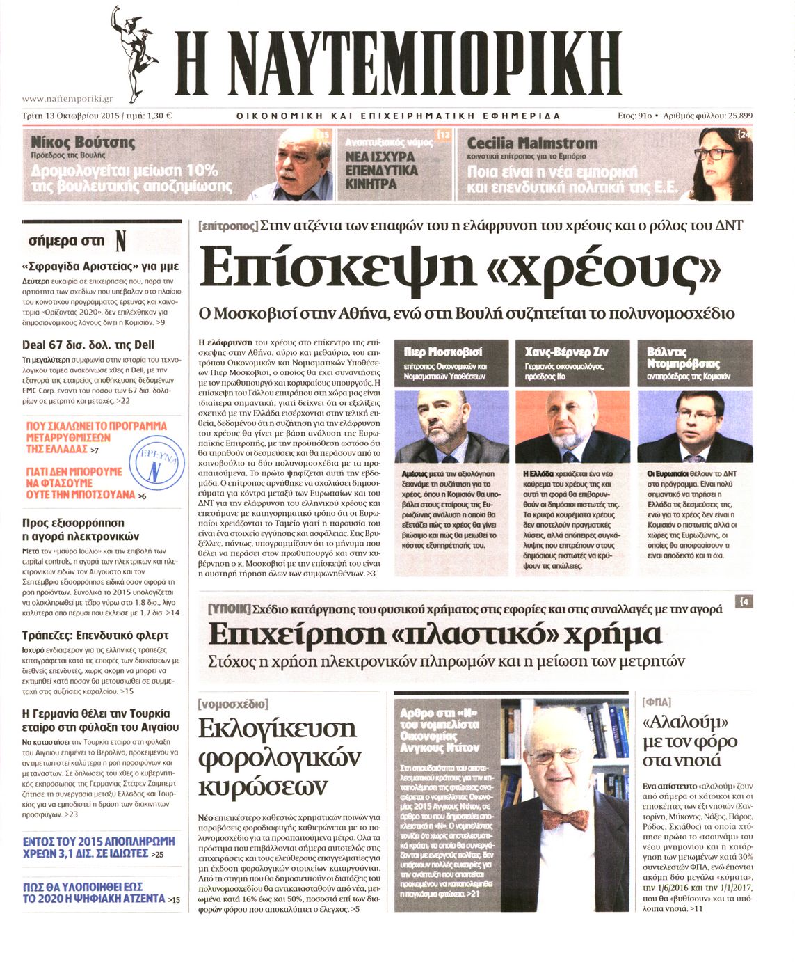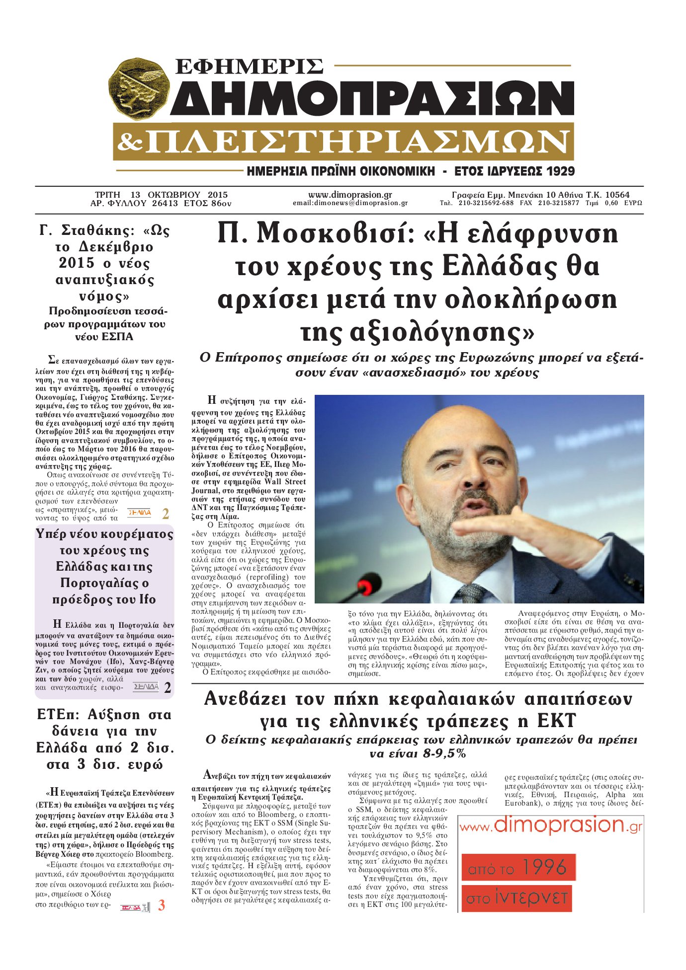 Οι οικονομικές εφημερίδες 13/10/2015 Enikos Newsroom 06:43, Τρίτη 13 Οκτωβρίου 2015 Media Διαβάστε τα σημερινά πρωτοσέλιδα των οικονομικών εφημερίδων: ΟΙΚΟΝΟΜΙΚΕΣ ΕΦΗΜΕΡΙΔΕΣ ΠΡΩΤΟΣΕΛΙΔΑ Μοιράσου το: σχολίασε κι εσύ (0 σχόλια) Ακολουθήστε το enikos.gr στο Google News και μάθετε πρώτοι όλες τις ειδήσεις Δείτε όλες τις τελευταίες ειδήσεις από την Ελλάδα και τον Κόσμο στο enikos.gr Ειδήσεις Ροή Ειδήσεων 13 λεπτά πριν Κλιμακώνουν από σήμερα τις κινητοποιήσεις οι αγρότες: Νέα μπλόκα, κλείσιμο παρακαμπτηρίων και άνοιγμα διοδίων – Το νέο μήνυμα Μητσοτάκη 40 λεπτά πριν Συντάξεις: Οι κερδισμένοι και οι χαμένοι από τις αυξήσεις – Αναλυτικός οδηγός και παραδείγματα 4 ώρες πριν Ευρωπαϊκή Ένωση: Συμφωνία για δάνειο 90 δισ. ευρώ στην Ουκρανία τη διετία 2026-2027 – Μητσοτάκης: Η λύση που προκρίθηκε είναι η ενδεδειγμένη 60 λεπτά πριν Θανατηφόρο τροχαίο στη Νέα Φιλαδέλφεια: Νεκρός 27χρονος οδηγός μηχανής ύστερα από σύγκρουση με τρόλεϊ 8 ώρες πριν ΟΠΕΚΕΠΕ: Προφυλακιστέος ο φερόμενος αρχηγός και ο λογιστής της εγκληματικής οργάνωσης 2 ώρες πριν Οπτική ψευδαίσθηση: Μόνο αν έχεις αετίσια ματιά θα βρεις τον παπαγάλο σε 12 δευτερόλεπτα 2 ώρες πριν Κρύα χέρια και πόδια: Γιατρός εξηγεί ποια είναι η αίτια και πότε πρέπει να ανησυχήσετε 3 ώρες πριν Τα ζώδια σήμερα, Παρασκευή 19 Δεκεμβρίου: Τοξότες, με τη Νέα Σελήνη έρχεται η προσωπική ανανέωσή σας 2 ημέρες πριν 20 χρόνια τα Χριστούγεννα ξεκινούν στα Public με μεγάλη ποικιλία σε δώρα! 15 δευτερόλεπτα πριν Την Κυριακή με τη Realnews: Δωροεπιταγή 10€ 6 λεπτά πριν Πανεπιστήμιο Μπράουν: Νεκρός ο ύποπτος για την επίθεση 12 λεπτά πριν Τέμπη: Συνεχίζεται σήμερα η δίκη για τη διαχείριση του βιντεοληπτικού υλικού 13 λεπτά πριν Κλιμακώνουν από σήμερα τις κινητοποιήσεις οι αγρότες: Νέα μπλόκα, κλείσιμο παρακαμπτηρίων και άνοιγμα διοδίων – Το νέο μήνυμα Μητσοτάκη 21 λεπτά πριν e-ΕΦΚΑ και ΔΥΠΑ: Τελευταία ημέρα πληρωμών σήμερα ENIKOS NETWORK Άνοια: Ειδικοί προειδοποιούν για 5 κοινές συνήθειες που μπορεί να αυξήσουν τον κίνδυνο 6 Χριστουγεννιάτικα δώρα για όσους τα έχουν όλα – Θα τους εκπλήξουν Συντάξεις: Οι κερδισμένοι και οι χαμένοι από τις αυξήσεις – Αναλυτικός οδηγός Στεγαστικό: Τι λέει η ΠΟΜΙΔΑ για τα νέα μέτρα που ανακοίνωσε ο Κυριάκος Μητσοτάκης Χαρτογραφώντας το «σημείο χωρίς επιστροφή»: Για πρώτη φορά αποκαλύπτεται με λεπτομέρεια το ακανθώδες όριο της ατμόσφαιρας τ... Η Google καταργεί τη λειτουργία «dark web report» – Πώς θα μπορούν οι χρήστες να διαγράφουν τα δεδομένα τους περισσότερα 05:48 , Παρασκευή 19 Δεκεμβρίου 2025 Οι οικονομικές εφημερίδες 19/12/2025 Διαβάστε τα πρωτοσέλιδα από τις οικονομικές εφημερίδες, σήμερα 19/12/2025. 05:43 , Παρασκευή 19 Δεκεμβρίου 2025 Οι αθλητικές εφημερίδες 19/12/2025 Διαβάστε τα πρωτοσέλιδα από τις αθλητικές εφημερίδες, σήμερα 19/12/2025. 05:38 , Παρασκευή 19 Δεκεμβρίου 2025 Οι πολιτικές εφημερίδες 19/12/2025 Διαβάστε τα πρωτοσέλιδα από τις πολιτικές εφημερίδες, σήμερα 19/12/2025. 02:50 , Παρασκευή 19 Δεκεμβρίου 2025 GNTM: «Κλείδωσαν» οι τέσσερις φιναλίστ – Μεγάλη ανατροπή στις τελευταίες αποχωρήσεις Για προτελευταία φορά εμφανίστηκαν στο πλατό του GNTM οι φιναλίστ του φετινού κύκλου, το βράδυ... ΤΕΛΕΥΤΑΙΕΣ ΕΙΔΗΣΕΙΣ 6 λεπτά πριν Πανεπιστήμιο Μπράουν: Νεκρός ο ύποπτος για την επίθεση 12 λεπτά πριν Τέμπη: Συνεχίζεται σήμερα η δίκη για τη διαχείριση του... 13 λεπτά πριν Κλιμακώνουν από σήμερα τις κινητοποιήσεις οι αγρότες:... 21 λεπτά πριν e-ΕΦΚΑ και ΔΥΠΑ: Τελευταία ημέρα πληρωμών σήμερα 28 λεπτά πριν Καιρός: Ηλι