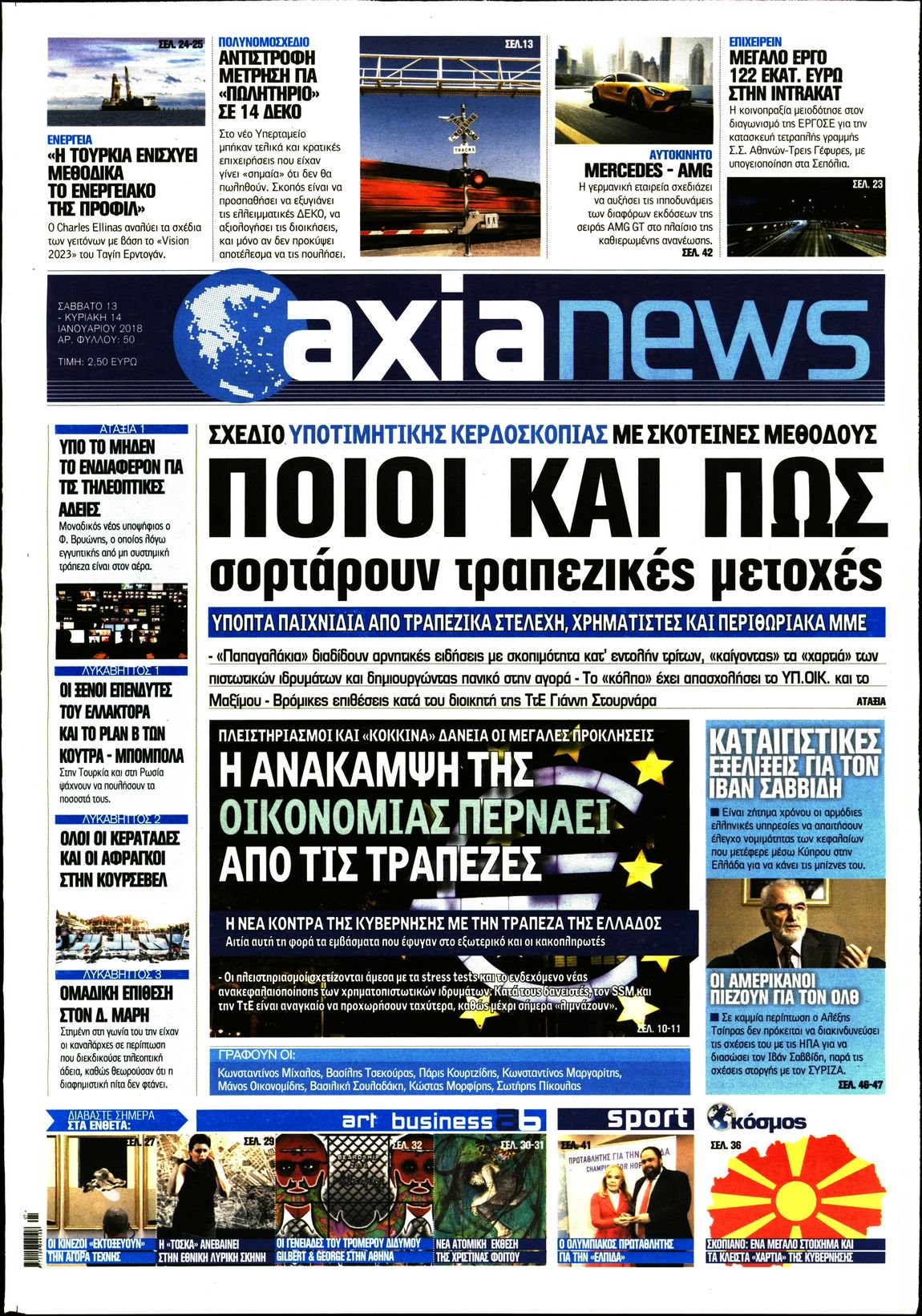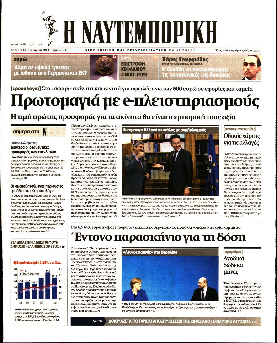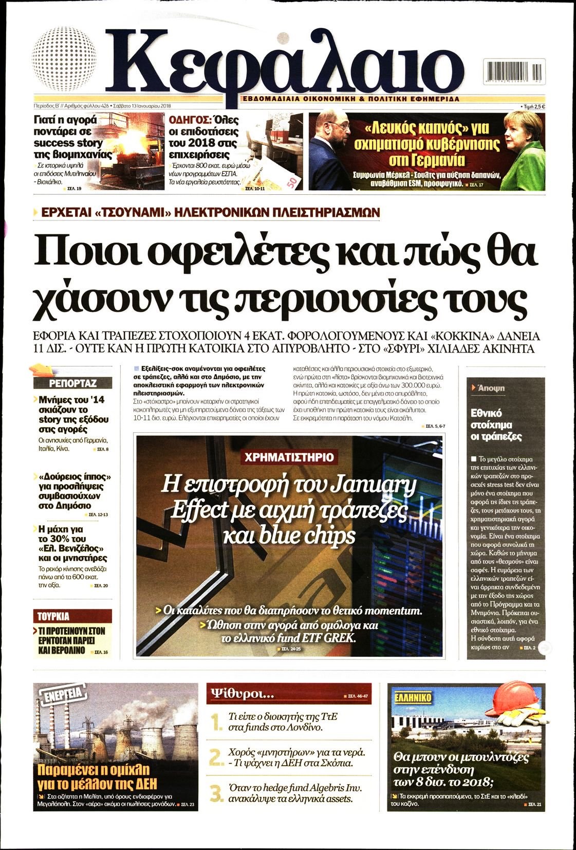 Οι οικονομικές εφημερίδες 13/1/2018 Enikos Newsroom 07:48, Σάββατο 13 Ιανουαρίου 2018 Media Διαβάστε τα σημερινά πρωτοσέλιδα των οικονομικών εφημερίδων: ΟΙΚΟΝΟΜΙΚΕΣ ΕΦΗΜΕΡΙΔΕΣ ΠΡΩΤΟΣΕΛΙΔΑ Μοιράσου το: σχολίασε κι εσύ (0 σχόλια) Ακολουθήστε το enikos.gr στο Google News και μάθετε πρώτοι όλες τις ειδήσεις Δείτε όλες τις τελευταίες ειδήσεις από την Ελλάδα και τον Κόσμο στο enikos.gr Ειδήσεις Ροή Ειδήσεων 1 ώρα πριν Αυξάνουν την πίεση προς την κυβέρνηση οι αγρότες: Κλείνουν παρακαμπτήριους και ανοίγουν διόδια – Τι θα γίνει τις γιορτές 7 λεπτά πριν ΟΠΕΚΕΠΕ: Προφυλακιστέος ο φερόμενος αρχηγός και ο λογιστής της εγκληματικής οργάνωσης 1 ώρα πριν Φοινικούντα: Το Σάββατο απολογείται ο 30χρονος γιος γνωστού επιχειρηματία της Πλάκας που παραδόθηκε – Όσα είπε στους αστυνομικούς και ο ρόλος του στο έγκλημα 48 λεπτά πριν Μπορεί ο Μαδούρο να αντέξει τον αποκλεισμό του Τραμπ; Τι θα χρειαστεί η Ουάσινγκτον για να τον ανατρέψει 2 ώρες πριν Πρίγκιπας Ουίλιαμ – Κέιτ: Η νέα οικογενειακή φωτογραφία για τις Χριστουγεννιάτικες κάρτες του 2025 2 ώρες πριν Ύπνος: Η απλή βραδινή ρουτίνα για να προστατεύσετε τα μαλλιά σας από το κρύο κατά τη διάρκεια του χειμώνα 3 ώρες πριν Manifesting: Πώς να συναντήσετε τον σύντροφο της ζωής σας, ανάλογα με τον μήνα γέννησής σας 2 ημέρες πριν 20 χρόνια τα Χριστούγεννα ξεκινούν στα Public με μεγάλη ποικιλία σε δώρα! 52 λεπτά πριν Αρχαιολόγοι ανακάλυψαν ρωμαϊκά τεχνουργήματα από μια πόλη που δεν υπήρξε ποτέ – Τα τρία εντυπωσιακά κτίρια και ο αμφορέας με τις… σαρδέλες 7 λεπτά πριν ΟΠΕΚΕΠΕ: Προφυλακιστέος ο φερόμενος αρχηγός και ο λογιστής της εγκληματικής οργάνωσης 17 λεπτά πριν Αθηνά Μαξίμου: Η τρυφερή ανάρτηση για τα γενέθλια του Αιμίλιου Χειλάκη – «Είναι η εκλεκτική συγγένειά μου, η επιλογή και η ευθύνη μου» 32 λεπτά πριν Παναθηναϊκός – Χάποελ Τελ Αβίβ 93-82: Με… φόρα από την Κωνσταντινούπολη 48 λεπτά πριν Μπορεί ο Μαδούρο να αντέξει τον αποκλεισμό του Τραμπ; Τι θα χρειαστεί η Ουάσινγκτον για να τον ανατρέψει 52 λεπτά πριν Αρχαιολόγοι ανακάλυψαν ρωμαϊκά τεχνουργήματα από μια πόλη που δεν υπήρξε ποτέ – Τα τρία εντυπωσιακά κτίρια και ο αμφορέας με τις… σαρδέλες ENIKOS NETWORK Σε περίοδο αυξημένης δραστηριότητας η γρίπη στην Ελλάδα-Μέτρα προστασίας από τον ΕΟΔΥ Σκέφτεστε συνέχεια συζητήσεις που έχετε κάνει; Τι σημαίνει αυτό, σύμφωνα με ειδικό Στεγαστικό: Τι λέει η ΠΟΜΙΔΑ για τα νέα μέτρα που ανακοίνωσε ο Κυριάκος Μητσοτάκης Λαγκάρντ: Αισιόδοξη για την ανάπτυξη της Ευρωζώνης, αβέβαιη για τον πληθωρισμό Χαρτογραφώντας το «σημείο χωρίς επιστροφή»: Για πρώτη φορά αποκαλύπτεται με λεπτομέρεια το ακανθώδες όριο της ατμόσφαιρας τ... Η Google καταργεί τη λειτουργία «dark web report» – Πώς θα μπορούν οι χρήστες να διαγράφουν τα δεδομένα τους περισσότερα 17:45 , Πέμπτη 18 Δεκεμβρίου 2025 ROUK ZOUK: Εορταστικό επεισόδιο με καλεσμένους τους πρωταγωνιστές του «Γιατί ρε πατέρα» Το Σάββατο 20 Δεκεμβρίου στις 21:00, η Ζέτα Μακρυπούλια υποδέχεται εκλεκτούς ηθοποιούς που όλο... 17:20 , Πέμπτη 18 Δεκεμβρίου 2025 Άγιος έρωτας: Η Χριστίνα εξομολογείται στον πατέρα Νικόλαο, απόψε στις 21:00 στον Alpha Η Νότα αποφασίζει να εκδικηθεί τον Πέτρο και τον Στέφανο, για χάρη του Λούη, όμως τα πράγματα ... 16:50 , Πέμπτη 18 Δεκεμβρίου 2025 Να μ’ αγαπάς: Ζωή και Φωτεινή συμφιλιώνονται ως μάνα με κόρη, απόψε στις 20:00 Η ταυτότητα του Άγγελου αποκαλύπτεται στο νέο επεισόδιο της σειράς “Να μ’ αγαπάς... 15:52 , Πέμπτη 18 Δεκεμβρίου 2025 Το Σπίτι Δίπλα Στο Ποτάμι: Το κ