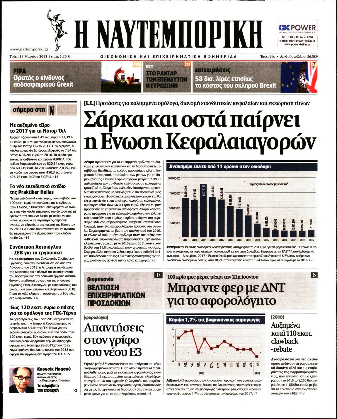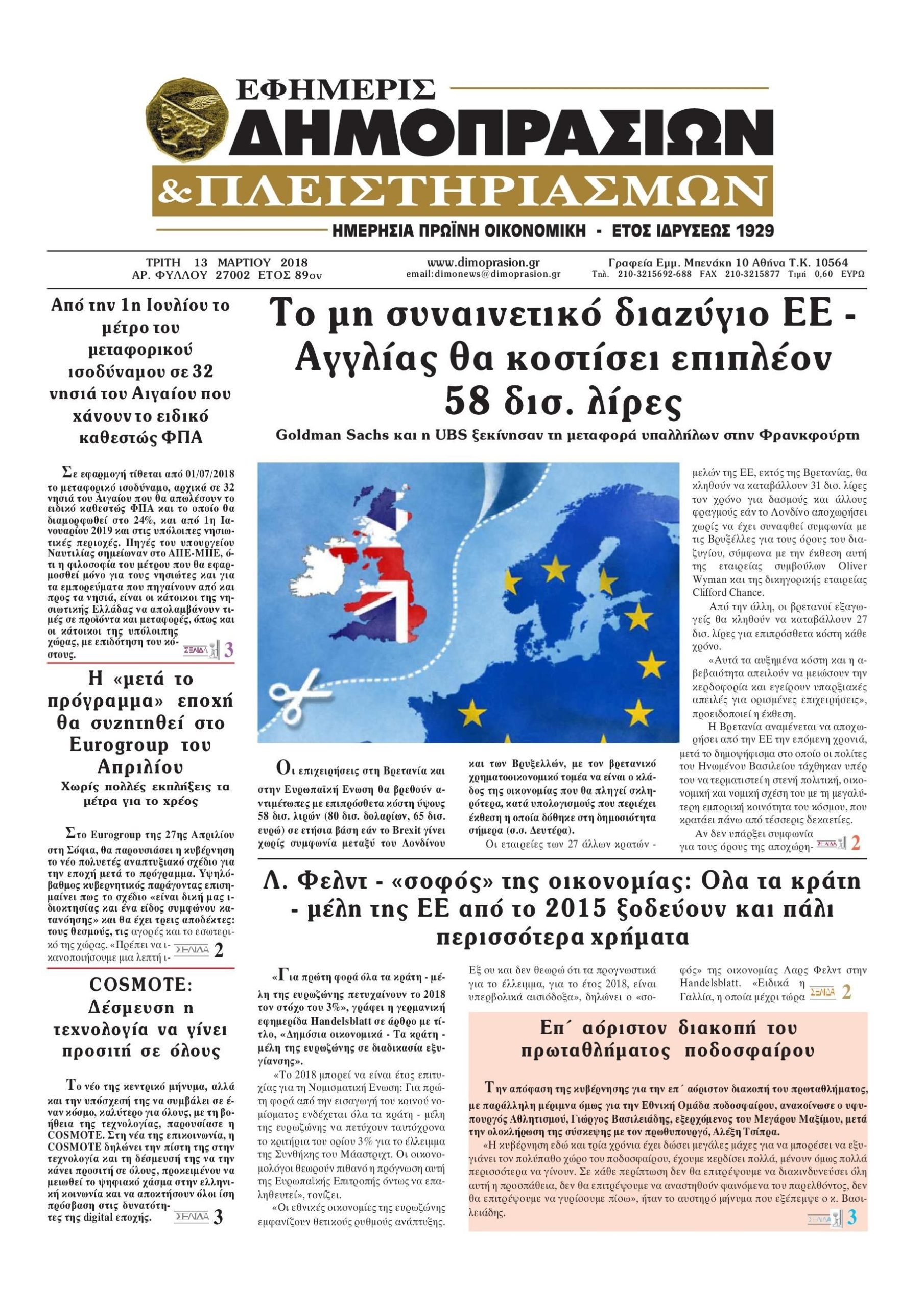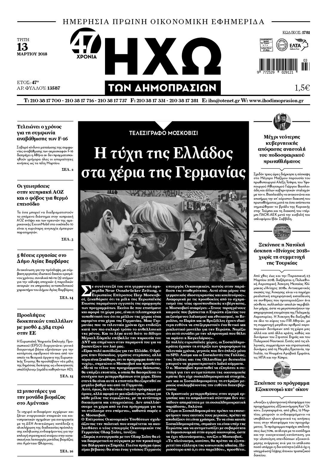 Οι οικονομικές εφημερίδες 13/3/2018 Κώστας Τεό 06:47, Τρίτη 13 Μαρτίου 2018 Media Διαβάστε τα σημερινά πρωτοσέλιδα των οικονομικών εφημερίδων: ΟΙΚΟΝΟΜΙΚΕΣ ΕΦΗΜΕΡΙΔΕΣ ΠΡΩΤΟΣΕΛΙΔΑ Μοιράσου το: σχολίασε κι εσύ (0 σχόλια) Ακολουθήστε το enikos.gr στο Google News και μάθετε πρώτοι όλες τις ειδήσεις Δείτε όλες τις τελευταίες ειδήσεις από την Ελλάδα και τον Κόσμο στο enikos.gr Ειδήσεις Ροή Ειδήσεων 1 ώρα πριν Σύνοδος Κορυφής: Συνεχίζεται το θρίλερ στις Βρυξέλλες για την χρηματοδότηση της Ουκρανίας 5 ώρες πριν ΟΠΕΚΕΠΕ: Προφυλακιστέος ο φερόμενος αρχηγός και ο λογιστής της εγκληματικής οργάνωσης 6 ώρες πριν Αυξάνουν την πίεση προς την κυβέρνηση οι αγρότες: Κλείνουν παρακαμπτήριους και ανοίγουν διόδια – Τι θα γίνει τις γιορτές 6 ώρες πριν Φοινικούντα: Το Σάββατο απολογείται ο 30χρονος γιος γνωστού επιχειρηματία της Πλάκας που παραδόθηκε – Όσα είπε στους αστυνομικούς και ο ρόλος του στο έγκλημα 4 ώρες πριν ΑΕΚ – Κραϊόβα 3-2: Επική ανατροπή και πρόκριση στους «16» του Conference League η Ένωση 5 ώρες πριν Αρχαιολόγοι ανακάλυψαν ρωμαϊκά τεχνουργήματα από μια πόλη που δεν υπήρξε ποτέ – Τα τρία εντυπωσιακά κτίρια και ο αμφορέας με τις… σαρδέλες 6 ώρες πριν Ύπνος: Η απλή βραδινή ρουτίνα για να προστατεύσετε τα μαλλιά σας από το κρύο κατά τη διάρκεια του χειμώνα 7 ώρες πριν Manifesting: Πώς να συναντήσετε τον σύντροφο της ζωής σας, ανάλογα με τον μήνα γέννησής σας 2 ημέρες πριν 20 χρόνια τα Χριστούγεννα ξεκινούν στα Public με μεγάλη ποικιλία σε δώρα! 2 λεπτά πριν Ευρωπαϊκή Ένωση: Συμφωνία για δάνειο 90 δισ. ευρώ στην Ουκρανία τη διετία 2026-2027 25 λεπτά πριν Αιματηρή βομβιστική επίθεση στην Υεμένη: Τουλάχιστον τρεις νεκροί και 13 τραυματίες 29 λεπτά πριν Στη Φλόριντα σήμερα οι διαβουλεύσεις σχετικά με τα επόμενα στάδια για τη Λωρίδα της Γάζας 33 λεπτά πριν Σίσσυ Τουμάση: «Είμαι ασθενοφοβική πάρα πολύ και με πιάνει μια παράνοια μ’ αυτό» 57 λεπτά πριν Ντόναλντ Τραμπ: Δεν χρειάζομαι την έγκριση του Κογκρέσου για να διατάξω στρατιωτικά πλήγματα στη Βενεζουέλα ENIKOS NETWORK Σε περίοδο αυξημένης δραστηριότητας η γρίπη στην Ελλάδα-Μέτρα προστασίας από τον ΕΟΔΥ Σκέφτεστε συνέχεια συζητήσεις που έχετε κάνει; Τι σημαίνει αυτό, σύμφωνα με ειδικό Στεγαστικό: Τι λέει η ΠΟΜΙΔΑ για τα νέα μέτρα που ανακοίνωσε ο Κυριάκος Μητσοτάκης Λαγκάρντ: Αισιόδοξη για την ανάπτυξη της Ευρωζώνης, αβέβαιη για τον πληθωρισμό Χαρτογραφώντας το «σημείο χωρίς επιστροφή»: Για πρώτη φορά αποκαλύπτεται με λεπτομέρεια το ακανθώδες όριο της ατμόσφαιρας τ... Η Google καταργεί τη λειτουργία «dark web report» – Πώς θα μπορούν οι χρήστες να διαγράφουν τα δεδομένα τους περισσότερα 02:50 , Παρασκευή 19 Δεκεμβρίου 2025 GNTM: «Κλείδωσαν» οι τέσσερις φιναλίστ – Μεγάλη ανατροπή στις τελευταίες αποχωρήσεις Για προτελευταία φορά εμφανίστηκαν στο πλατό του GNTM οι φιναλίστ του φετινού κύκλου, το βράδυ... 17:45 , Πέμπτη 18 Δεκεμβρίου 2025 ROUK ZOUK: Εορταστικό επεισόδιο με καλεσμένους τους πρωταγωνιστές του «Γιατί ρε πατέρα» Το Σάββατο 20 Δεκεμβρίου στις 21:00, η Ζέτα Μακρυπούλια υποδέχεται εκλεκτούς ηθοποιούς που όλο... 17:20 , Πέμπτη 18 Δεκεμβρίου 2025 Άγιος έρωτας: Η Χριστίνα εξομολογείται στον πατέρα Νικόλαο, απόψε στις 21:00 στον Alpha Η Νότα αποφασίζει να εκδικηθεί τον Πέτρο και τον Στέφανο, για χάρη του Λούη, όμως τα πράγματα ... 16:50 , Πέμπτη 18 Δεκεμβρίου 2025 Να μ’ αγαπάς: Ζωή και Φωτεινή συμφιλιώνονται ως μάνα με κόρη, απόψε στις 20:00 Η ταυτότητα του Άγγελου αποκαλύπτεται στο νέο επεισόδιο της σειράς 