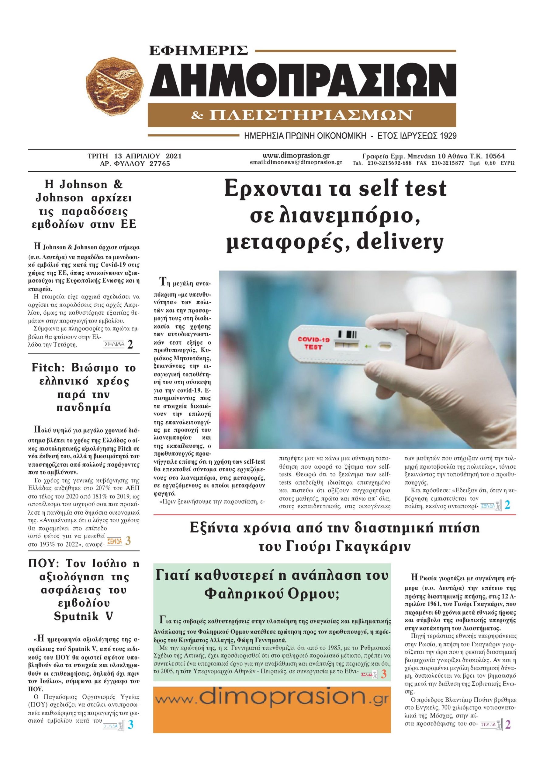 Οι οικονομικές εφημερίδες 13/4/2021 Διονύσης Νίκκας 06:34, Τρίτη 13 Απριλίου 2021 Media Διαβάστε τα πρωτοσέλιδα των οικονομικών εφημερίδων… ΟΙΚΟΝΟΜΙΚΕΣ ΕΦΗΜΕΡΙΔΕΣ Μοιράσου το: σχολίασε κι εσύ (0 σχόλια) Ακολουθήστε το enikos.gr στο Google News και μάθετε πρώτοι όλες τις ειδήσεις Δείτε όλες τις τελευταίες ειδήσεις από την Ελλάδα και τον Κόσμο στο enikos.gr Ειδήσεις Ροή Ειδήσεων 1 ώρα πριν Δημοσκόπηση Metron Analysis: Στις 10 μονάδες η διαφορά ΝΔ-ΠΑΣΟΚ, στην 3η θέση η Πλεύση Ελευθερίας – 8 στους 10 στηρίζουν τον αγώνα των αγροτών 6 ώρες πριν Αγρότες: «Όχι στον διάλογο, μας εμπαίζει η κυβέρνηση» – Αποφάσισαν κλιμάκωση των κινητοποιήσεων, τι θα γίνει τα Χριστούγεννα 1 ώρα πριν Νίκος Παππάς στον ΑΝΤ1: «Δεν κρύβομαι – Μετά το συμβάν ακολούθησα κανονικά το πρόγραμμά μου» – ΒΙΝΤΕΟ 3 ώρες πριν Αθήνα: Εξαρθρώθηκε εγκληματική οργάνωση που διακινούσε ναρκωτικά σε μορφή σοκολάτας – Δύο τράπερ ανάμεσα στους 4 συλληφθέντες – ΒΙΝΤΕΟ 1 ώρα πριν Διαμαντής Καραναστάσης: Οδηγούσε υπό την επήρεια αλκοόλ – Του αφαιρέθηκε το δίπλωμα και του επιβλήθηκε πρόστιμο 350 ευρώ 2 ώρες πριν Manifesting: Πώς να συναντήσετε τον σύντροφο της ζωής σας, ανάλογα με τον μήνα γέννησής σας 4 ώρες πριν Γάμος: 11 ψυχρές αλλά ευγενικές φράσεις, που λέει ένας άνδρας όταν σκέφτεται τον χωρισμό 3 ώρες πριν Σφουγγάρισμα: Η συνήθεια που θα σας βοηθήσει να διατηρήσετε το σπίτι σας καθαρό και τακτοποιημένο 2 ημέρες πριν 20 χρόνια τα Χριστούγεννα ξεκινούν στα Public με μεγάλη ποικιλία σε δώρα! 4 λεπτά πριν Ελισάβετ Κωνσταντινίδου για τον Γεράσιμο Μιχελή και την Πόπη Χριστοδούλου: «Ξέρω ότι έχουν πάει απλώς κάπου αλλού, ότι δεν είναι ο θάνατος έτσι όπως τον έχουμε στο μυαλό μας» 8 λεπτά πριν Κρήτη: Νέες αποκαλύψεις για τον 54χρονο που κατηγορείται ότι εξαπάτησε τους γονείς του 33χρονου – Ζητούσε τρίχες αγνοουμένων 15 λεπτά πριν Τσιάρας: Δεν θα κινδυνέψουν οι πληρωμές των αγροτών – Χρειαζόμαστε μια νέα πολιτική, ένα restart 22 λεπτά πριν Δέσποινα Βανδή: Το βίντεο που δημοσίευσε με τον Γιώργο Νικολαΐδη – «Έχουμε καταστραφεί από τα μελομακάρονά σου» 27 λεπτά πριν Κλήρωση ΤΖΟΚΕΡ 18/12/2025: Αυτοί είναι οι τυχεροί αριθμοί ENIKOS NETWORK Σε περίοδο αυξημένης δραστηριότητας η γρίπη στην Ελλάδα-Μέτρα προστασίας από τον ΕΟΔΥ Σκέφτεστε συνέχεια συζητήσεις που έχετε κάνει; Τι σημαίνει αυτό, σύμφωνα με ειδικό ΑΣΕΠ 2ΓΒ/2025: Σήμερα αρχίζει η υποβολή ενστάσεων – Πότε θα βγουν τα οριστικά αποτελέσματα ΕΛΤΑ: Αυτό είναι το νέο σχέδιο μετασχηματισμού του Οργανισμού- Τι δήλωσαν Πιερρακάκης και Παπαστεργίου Χαρτογραφώντας το «σημείο χωρίς επιστροφή»: Για πρώτη φορά αποκαλύπτεται με λεπτομέρεια το ακανθώδες όριο της ατμόσφαιρας τ... Η Google καταργεί τη λειτουργία «dark web report» – Πώς θα μπορούν οι χρήστες να διαγράφουν τα δεδομένα τους περισσότερα 17:45 , Πέμπτη 18 Δεκεμβρίου 2025 ROUK ZOUK: Εορταστικό επεισόδιο με καλεσμένους τους πρωταγωνιστές του «Γιατί ρε πατέρα» Το Σάββατο 20 Δεκεμβρίου στις 21:00, η Ζέτα Μακρυπούλια υποδέχεται εκλεκτούς ηθοποιούς που όλο... 17:20 , Πέμπτη 18 Δεκεμβρίου 2025 Άγιος έρωτας: Η Χριστίνα εξομολογείται στον πατέρα Νικόλαο, απόψε στις 21:00 στον Alpha Η Νότα αποφασίζει να εκδικηθεί τον Πέτρο και τον Στέφανο, για χάρη του Λούη, όμως τα πράγματα ... 16:50 , Πέμπτη 18 Δεκεμβρίου 2025 Να μ’ αγαπάς: Ζωή και Φωτεινή συμφιλιώνονται ως μάνα με κόρη, απόψε στις 20:00 Η ταυτότητα του Άγγελου αποκαλύπτεται στο νέο επεισόδιο της σειράς “Να μ’ αγαπάς... 15:52 , Πέμπτη 18 Δεκεμβρίου 2025 Το Σπίτι Δίπλα Σ
