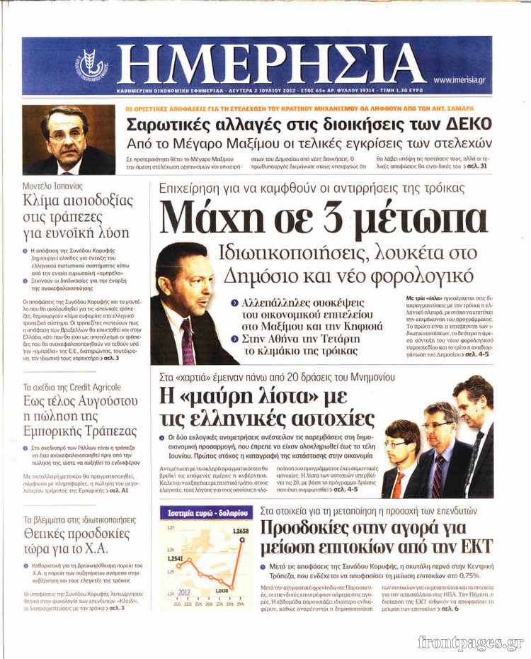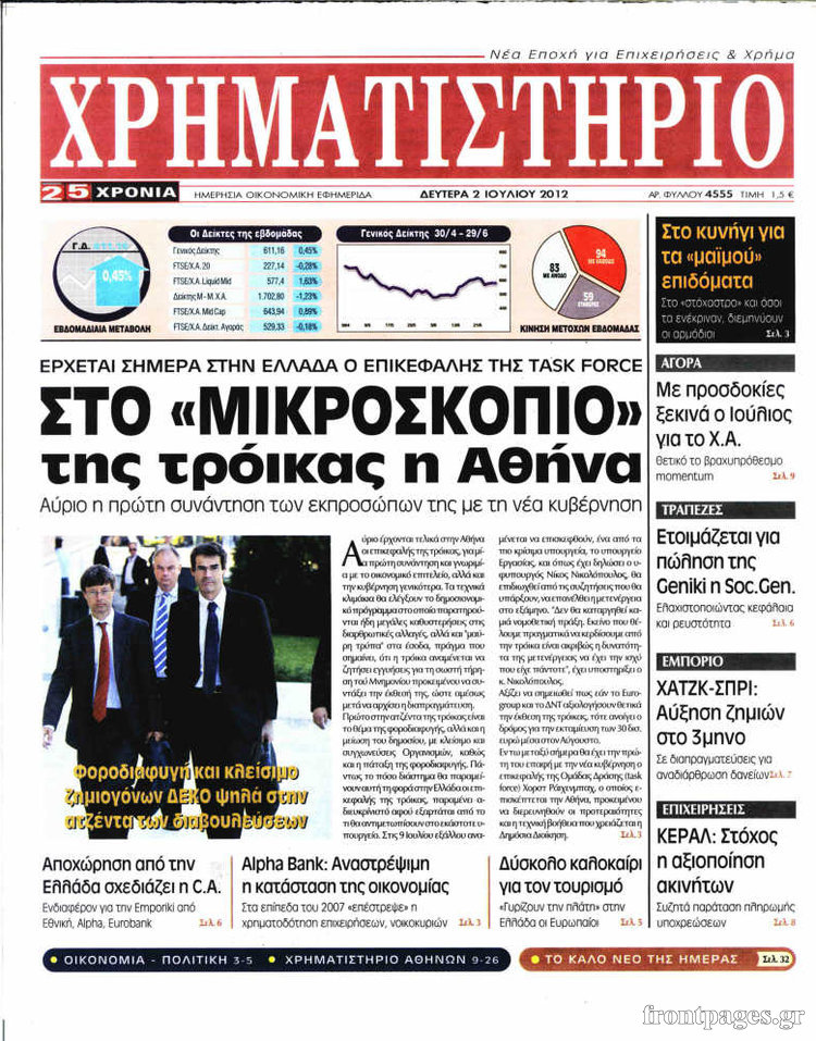 Οι οικονομικές εφημερίδες Enikos Newsroom 09:33, Δευτέρα 02 Ιουλίου 2012 Media ΕΦΗΜΕΡΙΔΕΣ Μοιράσου το: σχολίασε κι εσύ (0 σχόλια) Ακολουθήστε το enikos.gr στο Google News και μάθετε πρώτοι όλες τις ειδήσεις Δείτε όλες τις τελευταίες ειδήσεις από την Ελλάδα και τον Κόσμο στο enikos.gr Ειδήσεις Ροή Ειδήσεων 2 ώρες πριν Αυξάνουν την πίεση προς την κυβέρνηση οι αγρότες: Κλείνουν παρακαμπτήριους και ανοίγουν διόδια – Τι θα γίνει τις γιορτές 59 λεπτά πριν ΟΠΕΚΕΠΕ: Προφυλακιστέος ο φερόμενος αρχηγός και ο λογιστής της εγκληματικής οργάνωσης 2 ώρες πριν Φοινικούντα: Το Σάββατο απολογείται ο 30χρονος γιος γνωστού επιχειρηματία της Πλάκας που παραδόθηκε – Όσα είπε στους αστυνομικούς και ο ρόλος του στο έγκλημα 2 ώρες πριν Μπορεί ο Μαδούρο να αντέξει τον αποκλεισμό του Τραμπ; Τι θα χρειαστεί η Ουάσινγκτον για να τον ανατρέψει 3 ώρες πριν Πρίγκιπας Ουίλιαμ – Κέιτ: Η νέα οικογενειακή φωτογραφία για τις Χριστουγεννιάτικες κάρτες του 2025 3 ώρες πριν Ύπνος: Η απλή βραδινή ρουτίνα για να προστατεύσετε τα μαλλιά σας από το κρύο κατά τη διάρκεια του χειμώνα 4 ώρες πριν Manifesting: Πώς να συναντήσετε τον σύντροφο της ζωής σας, ανάλογα με τον μήνα γέννησής σας 2 ημέρες πριν 20 χρόνια τα Χριστούγεννα ξεκινούν στα Public με μεγάλη ποικιλία σε δώρα! 2 ώρες πριν Αρχαιολόγοι ανακάλυψαν ρωμαϊκά τεχνουργήματα από μια πόλη που δεν υπήρξε ποτέ – Τα τρία εντυπωσιακά κτίρια και ο αμφορέας με τις… σαρδέλες 14 λεπτά πριν Βαθμολογία UEFA: Η Πολωνία προσπέρασε την Ελλάδα 30 λεπτά πριν Conference League: Οι ομάδες που προκρίθηκαν στους «16» και τα «ζευγαρώματα» στα νοκ άουτ 38 λεπτά πριν ΑΕΚ – Κραϊόβα 3-2: Επική ανατροπή και πρόκριση στους «16» του Conference League η Ένωση 59 λεπτά πριν ΟΠΕΚΕΠΕ: Προφυλακιστέος ο φερόμενος αρχηγός και ο λογιστής της εγκληματικής οργάνωσης 1 ώρα πριν Αθηνά Μαξίμου: Η τρυφερή ανάρτηση για τα γενέθλια του Αιμίλιου Χειλάκη – «Είναι η εκλεκτική συγγένειά μου, η επιλογή και η ευθύνη μου» ENIKOS NETWORK Σε περίοδο αυξημένης δραστηριότητας η γρίπη στην Ελλάδα-Μέτρα προστασίας από τον ΕΟΔΥ Σκέφτεστε συνέχεια συζητήσεις που έχετε κάνει; Τι σημαίνει αυτό, σύμφωνα με ειδικό Στεγαστικό: Τι λέει η ΠΟΜΙΔΑ για τα νέα μέτρα που ανακοίνωσε ο Κυριάκος Μητσοτάκης Λαγκάρντ: Αισιόδοξη για την ανάπτυξη της Ευρωζώνης, αβέβαιη για τον πληθωρισμό Χαρτογραφώντας το «σημείο χωρίς επιστροφή»: Για πρώτη φορά αποκαλύπτεται με λεπτομέρεια το ακανθώδες όριο της ατμόσφαιρας τ... Η Google καταργεί τη λειτουργία «dark web report» – Πώς θα μπορούν οι χρήστες να διαγράφουν τα δεδομένα τους περισσότερα 17:45 , Πέμπτη 18 Δεκεμβρίου 2025 ROUK ZOUK: Εορταστικό επεισόδιο με καλεσμένους τους πρωταγωνιστές του «Γιατί ρε πατέρα» Το Σάββατο 20 Δεκεμβρίου στις 21:00, η Ζέτα Μακρυπούλια υποδέχεται εκλεκτούς ηθοποιούς που όλο... 17:20 , Πέμπτη 18 Δεκεμβρίου 2025 Άγιος έρωτας: Η Χριστίνα εξομολογείται στον πατέρα Νικόλαο, απόψε στις 21:00 στον Alpha Η Νότα αποφασίζει να εκδικηθεί τον Πέτρο και τον Στέφανο, για χάρη του Λούη, όμως τα πράγματα ... 16:50 , Πέμπτη 18 Δεκεμβρίου 2025 Να μ’ αγαπάς: Ζωή και Φωτεινή συμφιλιώνονται ως μάνα με κόρη, απόψε στις 20:00 Η ταυτότητα του Άγγελου αποκαλύπτεται στο νέο επεισόδιο της σειράς “Να μ’ αγαπάς... 15:52 , Πέμπτη 18 Δεκεμβρίου 2025 Το Σπίτι Δίπλα Στο Ποτάμι: Το καθηλωτικό τελευταίο επεισόδιο για το 2025 απόψε στις 22:30 Καθηλώνει το σημερινό επεισόδιο της σειράς “Το Σπίτι Δίπλα Στο Ποτάμι” που έρχεται... ΤΕΛΕΥΤΑΙΕΣ ΕΙΔΗΣΕΙΣ 14 λεπτά πριν Βαθμολογία UEFA: Η Πολωνία προσπέρασε τ