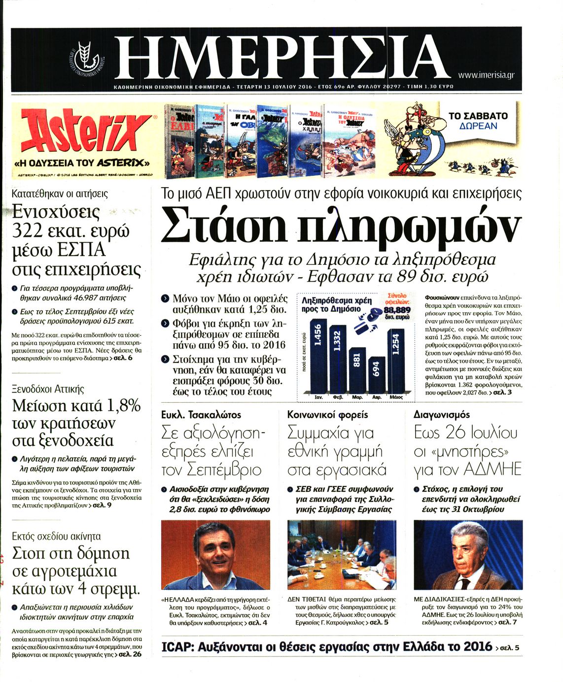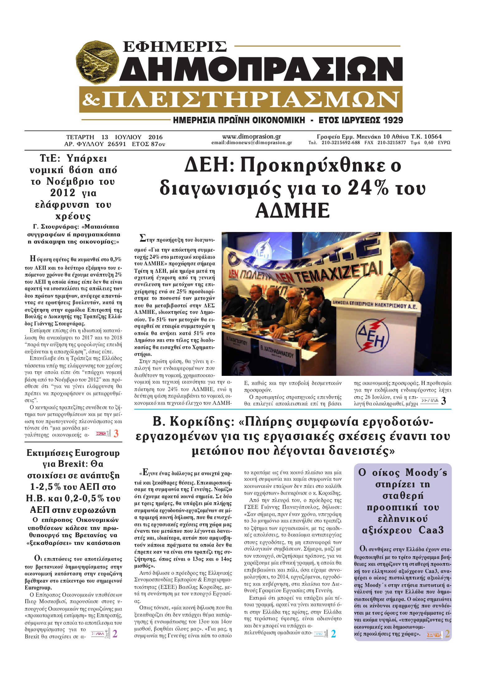 Oι οικονομικές εφημερίδες 13/7/2016 Enikos Newsroom 05:10, Τετάρτη 13 Ιουλίου 2016 Media Διαβάστε τα σημερινά πρωτοσέλιδα των οικονομικών εφημερίδων: ΟΙΚΟΝΟΜΙΚΕΣ ΕΦΗΜΕΡΙΔΕΣ ΠΡΩΤΟΣΕΛΙΔΑ Μοιράσου το: σχολίασε κι εσύ (0 σχόλια) Ακολουθήστε το enikos.gr στο Google News και μάθετε πρώτοι όλες τις ειδήσεις Δείτε όλες τις τελευταίες ειδήσεις από την Ελλάδα και τον Κόσμο στο enikos.gr Ειδήσεις Ροή Ειδήσεων 2 ώρες πριν Αγρότες: «Όχι στον διάλογο, μας εμπαίζει η κυβέρνηση» – Αποφάσισαν κλιμάκωση των κινητοποιήσεων, τι θα γίνει τα Χριστούγεννα 3 ώρες πριν Την πρώτη Belharra παρέλαβε η χώρα μας, υψώθηκε η ελληνική σημαία στη φρεγάτα «Κίμων» – Δένδιας: «Το ισχυρότερο Πολεμικό Ναυτικό που είχε ποτέ ο ελληνισμός» 27 λεπτά πριν Γιώργος Μαζωνάκης: «Έχει υποστεί ένα σωρό εκβιαστικές πρακτικές – Του είπαν ότι θα του βάλουν τον συγκεκριμένο άνθρωπο να τον καταγγείλει» 2 ώρες πριν Μιχάλης Χουρδάκης: «Είμαι διαθέσιμος να συμβάλω στην προσωρινή κάλυψη του ιατρείου της Ψερίμου» – Η επιστολή στον Άδωνι Γεωργιάδη 2 ώρες πριν Εξώδικο Γεωργιάδη στην Κωνσταντοπούλου – «Με κατηγόρησε ότι έχω καταδικαστεί για παιδεραστία» 3 ώρες πριν Τα 5 ζώδια που θα ευνοηθούν στα οικονομικά τους το 2026 – «Τραβούν το χρήμα σαν μαγνήτες» 8 ώρες πριν Αν κάνετε συνεχώς αυτά τα 8 πράγματα με τα κατοικίδιά σας, σας λείπει η ανθρώπινη επαφή 4 ώρες πριν Αυτό που κρύβεται κάτω από τη Γροιλανδία θα μπορούσε να ανατρέψει όσα γνωρίζουμε για την άνοδο της στάθμης των θαλασσών 1 ημέρα πριν 20 χρόνια τα Χριστούγεννα ξεκινούν στα Public με μεγάλη ποικιλία σε δώρα! 5 λεπτά πριν Σωκράτης Φάμελλος: Τα γλυκά στους δημοσιογράφους, το «πάμε όλοι μαζί να ρίξουμε τον Μητσοτάκη» και η ατάκα για τον Τσίπρα 10 λεπτά πριν Εξαφάνιση 14χρονης από χώρο φιλοξενίας στην Αθήνα – ΦΩΤΟ 16 λεπτά πριν Η πρώτη αντίδραση της κυβέρνησης μετά την απόφαση των αγροτών – «Όχι στην κλιμάκωση και ταλαιπωρία της κοινωνίας» 23 λεπτά πριν Ευγενία Σαμαρά, Λάμπρος Φισφής και Βασίλης Μαυρογεωργίου γίνονται μέρος της πιο φωτεινής χριστουγεννιάτικης πρωτοβουλίας – Mε τα Ευχοστολίδια του ΟΠΑΠ κάνουμε πραγματικότητα τις ευχές παιδιών που έχουν ανάγκη 27 λεπτά πριν Γιώργος Μαζωνάκης: «Έχει υποστεί ένα σωρό εκβιαστικές πρακτικές – Του είπαν ότι θα του βάλουν τον συγκεκριμένο άνθρωπο να τον καταγγείλει» ENIKOS NETWORK Ξεκίνησε η «επέλαση» της γρίπης στην Ελλάδα-Ποιοι κινδυνεύουν ΕΟΔΥ: Δωρεάν τεστ για HIV, Ηπατίτιδες, Σύφιλη, Χλαμύδια, Γονόρροια Προσλήψεις σε Δήμο: Ποιοι μπορούν να κάνουν αίτηση έως αύριο – Οι ειδικότητες Αμετάβλητα για τέταρτη συνεχόμενη φορά τα επιτόκια της ΕΚΤ – Ποιες είναι οι προβλέψεις για τον πληθωρισμό και την οικονομία... Χαρτογραφώντας το «σημείο χωρίς επιστροφή»: Για πρώτη φορά αποκαλύπτεται με λεπτομέρεια το ακανθώδες όριο της ατμόσφαιρας τ... Η Google καταργεί τη λειτουργία «dark web report» – Πώς θα μπορούν οι χρήστες να διαγράφουν τα δεδομένα τους περισσότερα 17:45 , Πέμπτη 18 Δεκεμβρίου 2025 ROUK ZOUK: Εορταστικό επεισόδιο με καλεσμένους τους πρωταγωνιστές του «Γιατί ρε πατέρα» Το Σάββατο 20 Δεκεμβρίου στις 21:00, η Ζέτα Μακρυπούλια υποδέχεται εκλεκτούς ηθοποιούς που όλο... 17:20 , Πέμπτη 18 Δεκεμβρίου 2025 Άγιος έρωτας: Η Χριστίνα εξομολογείται στον πατέρα Νικόλαο, απόψε στις 21:00 στον Alpha Η Νότα αποφασίζει να εκδικηθεί τον Πέτρο και τον Στέφανο, για χάρη του Λούη, όμως τα πράγματα ... 16:50 , Πέμπτη 18 Δεκεμβρίου 2025 Να μ’ αγαπάς: Ζωή και Φωτεινή συμφιλιώνονται ως μάνα με κόρη, απόψε στις 20:00