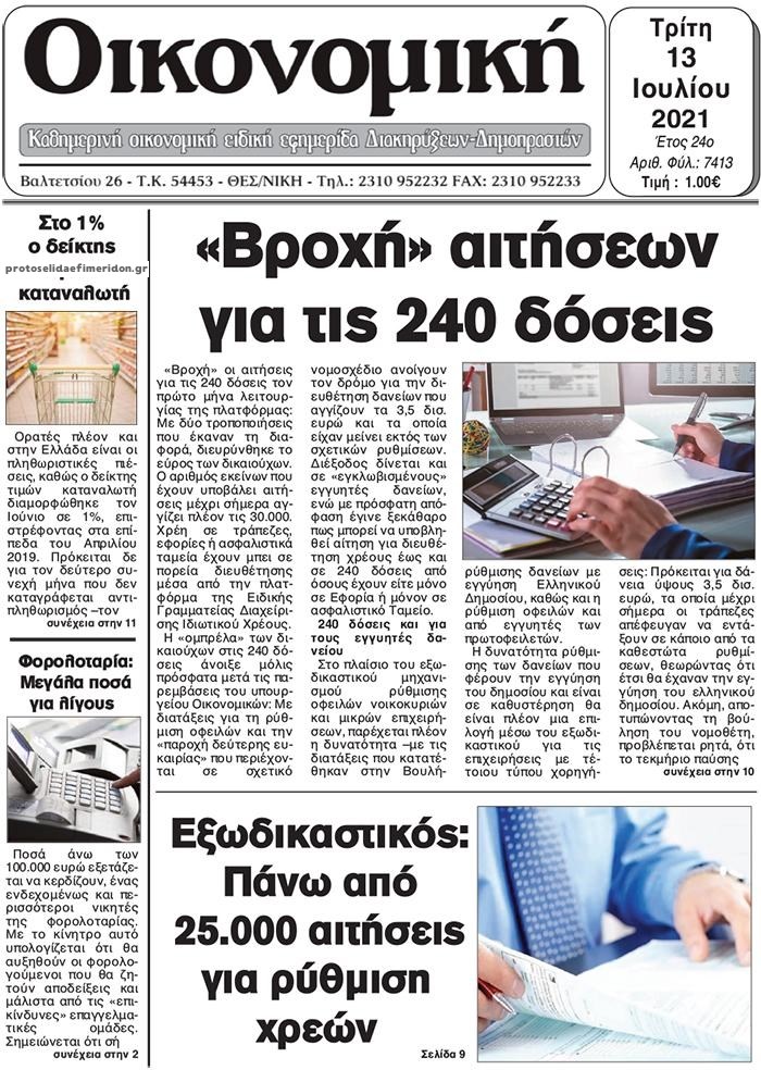 Οι οικονομικές εφημερίδες 13/7/2021 Σήφης Γαρυφαλάκης 06:18, Τρίτη 13 Ιουλίου 2021 Media Διαβάστε τα πρωτοσέλιδα των οικονομικών εφημερίδων. ΕΦΗΜΕΡΙΔΕΣ ΟΙΚΟΝΟΜΙΚΕΣ ΕΦΗΜΕΡΙΔΕΣ ΠΡΩΤΟΣΕΛΙΔΑ ΠΡΩΤΟΣΕΛΙΔΑ ΕΦΗΜΕΡΙΔΩΝ Μοιράσου το: σχολίασε κι εσύ (0 σχόλια) Ακολουθήστε το enikos.gr στο Google News και μάθετε πρώτοι όλες τις ειδήσεις Δείτε όλες τις τελευταίες ειδήσεις από την Ελλάδα και τον Κόσμο στο enikos.gr Ειδήσεις Ροή Ειδήσεων 4 ώρες πριν Εκτός ευρωομάδας ΣΥΡΙΖΑ ο Νίκος Παππάς μετά την επίθεση στον δημοσιογράφο Νίκο Γιαννόπουλο – Η μήνυση και οι νέες δηλώσεις 4 ώρες πριν «Αγριεύουν» οι αγρότες: «Δεν συντρέχει λόγος συνάντησης με τον πρωθυπουργό» – Ώρα αποφάσεων στη σύσκεψη της Πέμπτης 4 ώρες πριν Κυψέλη: Χωρίς την οικογένειά της δίπλα της απολογήθηκε η 16χρονη – «Της είχε επιτεθεί κάποιος για να την βιάσει, φοβήθηκε και κυκλοφορούσε με μαχαίρι» 4 ώρες πριν Politico: Το πρόβλημα της Ευρώπης δεν είναι το Βέλγιο αλλά ο Ντόναλντ Τραμπ 5 ώρες πριν Αλεξανδρούπολη: Πολυοργανική ανεπάρκεια λόγω υποσιτισμού η αιτία θανάτου του 3χρονου αγοριού 4 ώρες πριν Μυστήριο με τεράστιες κυκλικές πέτρες 200 κιλών – Ανακαλύφθηκαν τυχαία κατά τη διάρκεια οδικών έργων και κανείς δεν ξέρει από πού προέρχονται 5 ώρες πριν Ύπνος: Ειδικός εξηγεί τον πραγματικό λόγο που ξυπνάτε στις 4 τα ξημερώματα – Ο ρόλος των ορμονών και του κιρκάδιου ρυθμού 6 ώρες πριν Αριθμολογία: Οι άνθρωποι που έχουν γεννηθεί αυτές τις 4 ημερομηνίες, είναι τρυφεροί και αγαπούν ανιδιοτελώς 18 ώρες πριν 20 χρόνια τα Χριστούγεννα ξεκινούν στα Public με μεγάλη ποικιλία σε δώρα! 15 λεπτά πριν Σουδάν: Επιδρομή drone σε χωριό του Νότιου Κορντοφάν – Οκτώ νεκροί 30 λεπτά πριν Αλ Τσαντίρι Νιουζ: Η κόρη της Πάολα στο κοινό – Η ατάκα Λαζόπουλου που την έκανε να «κοκκινήσει» 45 λεπτά πριν Ρωσία: Ουκρανικές δυνάμεις έπληξαν πλοίο στο λιμάνι του Ροστόφ – Αναφορές για θύματα 1 ώρα πριν Βρυξέλλες: Νυχτερινό… μπλόκο αγροτών μπροστά από το κτίριο της Ευρωπαϊκής Επιτροπής – Πάνω από 100 τρακτέρ απέκλεισαν την λεωφόρο 1 ώρα πριν Euroleague: Απρόσμενη ήττα για την Μονακό του Βασίλη Σπανούλη – Η βαθμολογία μετά το τέλος της 16ης αγωνιστικής ENIKOS NETWORK Αϋπνία: Το κόλπο που θα σας βοηθήσει να κοιμηθείτε απόψε – Είναι απλό και έχει αποτέλεσμα 2,6 εκατομμύρια πολίτες έχουν ήδη εμβολιαστεί κατά της γρίπης ΕΛΣΤΑΤ: Τι δείχνουν τα νέα στοιχεία για τις ηλεκτρονικές παραγγελίες των επιχειρήσεων ΚΕΠΕ: Οι 3 διακριτές συμβολές των ΜμΕ και της μεταποίησης στην ελληνική οικονομία Χαρτογραφώντας το «σημείο χωρίς επιστροφή»: Για πρώτη φορά αποκαλύπτεται με λεπτομέρεια το ακανθώδες όριο της ατμόσφαιρας τ... Η Google καταργεί τη λειτουργία «dark web report» – Πώς θα μπορούν οι χρήστες να διαγράφουν τα δεδομένα τους περισσότερα 02:30 , Πέμπτη 18 Δεκεμβρίου 2025 Αλ Τσαντίρι Νιουζ: Η κόρη της Πάολα στο κοινό – Η ατάκα Λαζόπουλου που την έκανε να «κοκκινήσει» Γιορτινή διάθεση και ευχάριστες στιγμές γέμισε η αποψινή, τελευταία για το 2025, εκπομπή του «... 22:24 , Τετάρτη 17 Δεκεμβρίου 2025 Το Σπίτι Δίπλα Στο Ποτάμι: Σε κίνδυνο η υγεία του Απόστολου – Τι θα δούμε απόψε “Το Σπίτι Δίπλα στο Ποτάμι” ξετυλίγει το νήμα της ζωής των πέντε αδελφών με καταισ... 21:14 , Τετάρτη 17 Δεκεμβρίου 2025 Παιχνίδια Εκδίκησης: Θα καταφέρει ο Χρήστος να κλονίσει την εμπιστοσύνη της Μάγιας απέναντι στον Άγη; Τα «Παιχνίδια Εκδίκησης» έρχονται απόψε στις 22:30, στον Αντ1, με το τελευταίο επεισόδιο της χ... 20:57 , Τετάρτη 17 Δεκεμβρίου 2025 Άγιος Έρωτ