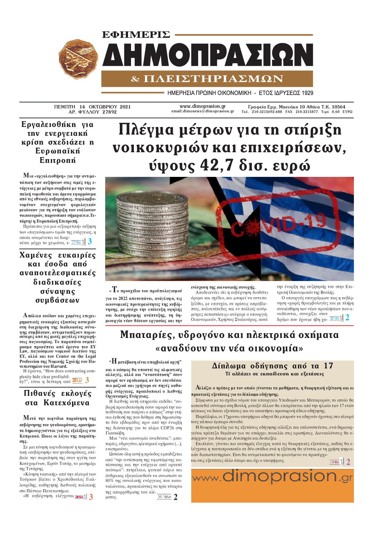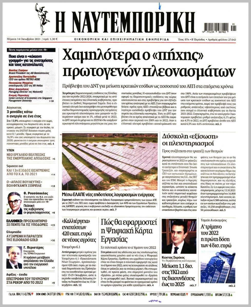 Οι οικονομικές εφημερίδες 14/10/2021 Διονύσης Νίκκας 06:50, Πέμπτη 14 Οκτωβρίου 2021 Media Διαβάστε τα πρωτοσέλιδα από τις οικονομικές εφημερίδες… ΟΙΚΟΝΟΜΙΚΕΣ ΕΦΗΜΕΡΙΔΕΣ Μοιράσου το: σχολίασε κι εσύ (0 σχόλια) Ακολουθήστε το enikos.gr στο Google News και μάθετε πρώτοι όλες τις ειδήσεις Δείτε όλες τις τελευταίες ειδήσεις από την Ελλάδα και τον Κόσμο στο enikos.gr Ειδήσεις Ροή Ειδήσεων 11 λεπτά πριν Θεσσαλονίκη: Βίντεο από τη στιγμή της έκρηξης σε υποκατάστημα τράπεζας στον Εύοσμο – Δεν προηγήθηκε τηλεφώνημα από τους δράστες 3 ώρες πριν Πόλεμος στην Ουκρανία: Γιατί η Ρωσία αναμένεται να απορρίψει το νέο ειρηνευτικό σχέδιο – Τα 2 σημεία που δεν κάνει πίσω ο Πούτιν 30 λεπτά πριν Σέρρες: Σαρώνουν πεδιάδα και βουνό για την εξαφάνιση του πυροσβέστη – Άκαρπες οι έρευνες – ΒΙΝΤΕΟ 4 ώρες πριν Τροχαίο στην Ημαθία: Θρήνος για τον θάνατο του 22χρονου – Συγκλονίζουν οι εικόνες από το σημείο της τραγωδίας 5 ώρες πριν Φρικτός θάνατος για 2χρονη: Έπεσε σε ποτάμι και την κατασπάραξαν πιράνχας 1 ώρα πριν Τα 5 ζώδια που θα δουν επιτέλους βελτίωση στα ερωτικά τους τον Ιανουάριο του 2026 – «Θα ζήσετε μία ουσιαστική και σταθερή αγάπη» 6 ώρες πριν Νιώθετε περισσότερη μοναξιά τα Χριστούγεννα; Η ψυχολογία αποκαλύπτει τα 7 χαρακτηριστικά που μάλλον διαθέτετε 5 ώρες πριν Γυναίκα που διαγνώστηκε με καρκίνο του παχέος εντέρου προειδοποιεί: «Αυτή είναι η πιο ύπουλη πτυχή της νόσου» 2 ώρες πριν Το μυστικό του Αϊνστάιν σε ένα μικροτσίπ: Ανακαλύφθηκε η κρυφή γεωμετρία που «δαμάζει» τα ηλεκτρόνια όπως η βαρύτητα 4 λεπτά πριν Ζαχάροβα: Υπάρχει «αργή αλλά σταθερή πρόοδος» στις ειρηνευτικές συνομιλίες με τις ΗΠΑ 11 λεπτά πριν Θεσσαλονίκη: Βίντεο από τη στιγμή της έκρηξης σε υποκατάστημα τράπεζας στον Εύοσμο – Δεν προηγήθηκε τηλεφώνημα από τους δράστες 20 λεπτά πριν Κουίζ για την παλιά Αθήνα: Αναγνωρίζετε την οδό; Έχετε περάσει 100% από εκεί 22 λεπτά πριν Λάκης Γαβαλάς: Είχα την αξιοπρέπειά μου στη φυλακή, έβγαινα να προαυλιστώ και έκαναν οι κρατούμενοι στην άκρη για να περάσω 30 λεπτά πριν Σέρρες: Σαρώνουν πεδιάδα και βουνό για την εξαφάνιση του πυροσβέστη – Άκαρπες οι έρευνες – ΒΙΝΤΕΟ ENIKOS NETWORK 12 Χριστουγεννιάτικες υπερτροφές που πρέπει να συμπεριλάβετε στο γιορτινό τραπέζι – Είναι νόστιμες και θα σας χορτάσουν Οι επιστήμονες βρήκαν το μυστικό της μακροζωίας – Ποιοι μπορεί να ξεπεράσουν τα 100, σύμφωνα με μελέτη Χειμερινές εκπτώσεις 2026: Πότε κάνουν πρεμιέρα και τι πρέπει να γνωρίζουν οι καταναλωτές για τις αγορές τους στα καταστήμα... ΔΥΠΑ: Έρχονται 2.000 νέες θέσεις εργασίας για ανέργους σε δήμους- Όλες οι λεπτομέρειες Ο Google Assistant θα παραμείνει λίγο περισσότερο για ορισμένους χρήστες Android Τεστ προσωπικότητας: Το βάζο που θα επιλέξετε αποκαλύπτει πώς λύνετε προβλήματα στη ζωή σας περισσότερα 14:14 , Πέμπτη 25 Δεκεμβρίου 2025 Την Κυριακή με τη Realnews: Ό,τι και αν αγοράσεις, σκανάρεις και κερδίζεις! Την Κυριακή με τη Realnews: Ό,τι και αν αγοράσεις, σκανάρεις και κερδίζεις! Με το PADU app, το... 11:58 , Πέμπτη 25 Δεκεμβρίου 2025 Ρεκόρ Γκίνες: Το White Christmas το πιο επιτυχημένο single όλων των εποχών σε φυσική μορφή – Βίντεο Το «White Christmas» είναι το πιο επιτυχημένο single όλων των εποχών σε φυσική μορφή, με περίπ... 10:11 , Πέμπτη 25 Δεκεμβρίου 2025 Αυτή την Κυριακή με τη Realnews: Το μυστήριο των Χριστουγέννων – Οι γιορτές στη Νέα Υόρκη παίρνουν μια αναπάντεχη τροπή, σε ένα συγκλονιστικό θρίλερ από τη συγγραφέα Vicki Delany Αυτή την Κυριακή με τη Realnews: Το μυστήριο τω