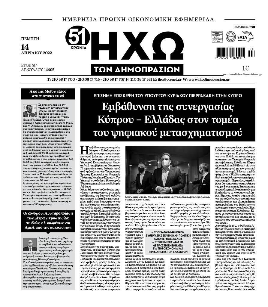 Οι οικονομικές εφημερίδες 14/4/2022 Σταύρος Ιωακείμ 06:10, Πέμπτη 14 Απριλίου 2022 Media Διαβάστε τα πρωτοσέλιδα από τις οικονομικές εφημερίδες… ΕΦΗΜΕΡΙΔΕΣ ΟΙΚΟΝΟΜΙΚΕΣ ΕΦΗΜΕΡΙΔΕΣ ΠΡΩΤΟΣΕΛΙΔΑ Μοιράσου το: Οι οικονομικές εφημερίδες 13/4/2022 Οι οικονομικές εφημερίδες 12/4/2022 Οι οικονομικές εφημερίδες 11/4/2022 σχολίασε κι εσύ (0 σχόλια) Ακολουθήστε το enikos.gr στο Google News και μάθετε πρώτοι όλες τις ειδήσεις Δείτε όλες τις τελευταίες ειδήσεις από την Ελλάδα και τον Κόσμο στο enikos.gr Ειδήσεις Ροή Ειδήσεων 48 λεπτά πριν Ευρωπαϊκή Ένωση: Συμφωνία για δάνειο 90 δισ. ευρώ στην Ουκρανία τη διετία 2026-2027 5 ώρες πριν ΟΠΕΚΕΠΕ: Προφυλακιστέος ο φερόμενος αρχηγός και ο λογιστής της εγκληματικής οργάνωσης 6 ώρες πριν Αυξάνουν την πίεση προς την κυβέρνηση οι αγρότες: Κλείνουν παρακαμπτήριους και ανοίγουν διόδια – Τι θα γίνει τις γιορτές 6 ώρες πριν Φοινικούντα: Το Σάββατο απολογείται ο 30χρονος γιος γνωστού επιχειρηματία της Πλάκας που παραδόθηκε – Όσα είπε στους αστυνομικούς και ο ρόλος του στο έγκλημα 5 ώρες πριν ΑΕΚ – Κραϊόβα 3-2: Επική ανατροπή και πρόκριση στους «16» του Conference League η Ένωση 6 ώρες πριν Αρχαιολόγοι ανακάλυψαν ρωμαϊκά τεχνουργήματα από μια πόλη που δεν υπήρξε ποτέ – Τα τρία εντυπωσιακά κτίρια και ο αμφορέας με τις… σαρδέλες 7 ώρες πριν Ύπνος: Η απλή βραδινή ρουτίνα για να προστατεύσετε τα μαλλιά σας από το κρύο κατά τη διάρκεια του χειμώνα 8 ώρες πριν Manifesting: Πώς να συναντήσετε τον σύντροφο της ζωής σας, ανάλογα με τον μήνα γέννησής σας 2 ημέρες πριν 20 χρόνια τα Χριστούγεννα ξεκινούν στα Public με μεγάλη ποικιλία σε δώρα! 12 λεπτά πριν Αυστραλία: Κήρυξε την Κυριακή (21/12) ημέρα εθνικού πένθους για τη φονική επίθεση στην παραλία Μπόνταϊ 22 λεπτά πριν Ρόδος: Δάσκαλος καράτε καταδικάστηκε για ασέλγεια σε ανήλικες αθλήτριες – Μαρτυρίες για αγγίγματα σε ευαίσθητα σημεία 36 λεπτά πριν Γουατεμάλα: Εξαρθρώθηκε κύκλωμα διακίνησης μεταναστών προς τις ΗΠΑ – Συνελήφθησαν 14 άτομα 41 λεπτά πριν Βουλγαρία: Χιλιάδες πολίτες στους δρόμους κατά της απερχόμενης κυβέρνησης και της διαφθοράς 48 λεπτά πριν Ευρωπαϊκή Ένωση: Συμφωνία για δάνειο 90 δισ. ευρώ στην Ουκρανία τη διετία 2026-2027 ENIKOS NETWORK Σε περίοδο αυξημένης δραστηριότητας η γρίπη στην Ελλάδα-Μέτρα προστασίας από τον ΕΟΔΥ Σκέφτεστε συνέχεια συζητήσεις που έχετε κάνει; Τι σημαίνει αυτό, σύμφωνα με ειδικό Στεγαστικό: Τι λέει η ΠΟΜΙΔΑ για τα νέα μέτρα που ανακοίνωσε ο Κυριάκος Μητσοτάκης Λαγκάρντ: Αισιόδοξη για την ανάπτυξη της Ευρωζώνης, αβέβαιη για τον πληθωρισμό Χαρτογραφώντας το «σημείο χωρίς επιστροφή»: Για πρώτη φορά αποκαλύπτεται με λεπτομέρεια το ακανθώδες όριο της ατμόσφαιρας τ... Η Google καταργεί τη λειτουργία «dark web report» – Πώς θα μπορούν οι χρήστες να διαγράφουν τα δεδομένα τους περισσότερα 02:50 , Παρασκευή 19 Δεκεμβρίου 2025 GNTM: «Κλείδωσαν» οι τέσσερις φιναλίστ – Μεγάλη ανατροπή στις τελευταίες αποχωρήσεις Για προτελευταία φορά εμφανίστηκαν στο πλατό του GNTM οι φιναλίστ του φετινού κύκλου, το βράδυ... 17:45 , Πέμπτη 18 Δεκεμβρίου 2025 ROUK ZOUK: Εορταστικό επεισόδιο με καλεσμένους τους πρωταγωνιστές του «Γιατί ρε πατέρα» Το Σάββατο 20 Δεκεμβρίου στις 21:00, η Ζέτα Μακρυπούλια υποδέχεται εκλεκτούς ηθοποιούς που όλο... 17:20 , Πέμπτη 18 Δεκεμβρίου 2025 Άγιος έρωτας: Η Χριστίνα εξομολογείται στον πατέρα Νικόλαο, απόψε στις 21:00 στον Alpha Η Νότα αποφασίζει να εκδικηθεί τον Πέτρο και τον Στέφανο, για χάρη του Λούη, όμως τα πράγματα ... 16:50 , Πέμπτη 18 Δεκεμβρίου 2025 Να 