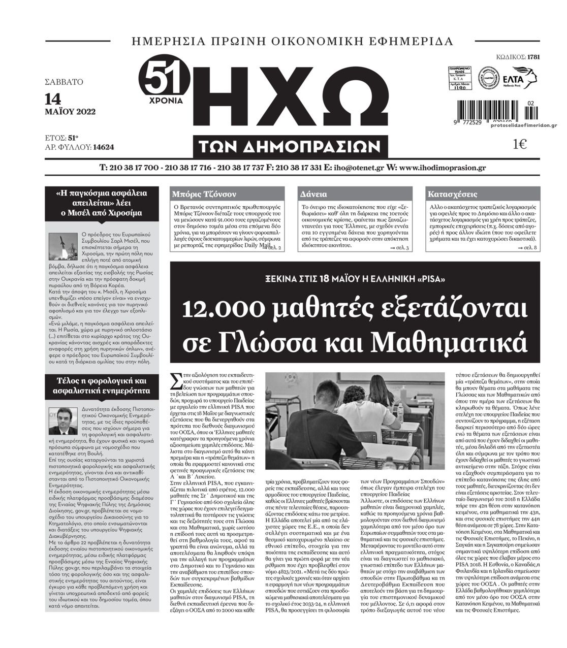 Οι οικονομικές εφημερίδες 14/5/2022 Σταύρος Ιωακείμ 07:44, Σάββατο 14 Μαΐου 2022 Media Διαβάστε τα πρωτοσέλιδα από τις οικονομικές εφημερίδες… ΕΦΗΜΕΡΙΔΕΣ ΟΙΚΟΝΟΜΙΚΕΣ ΕΦΗΜΕΡΙΔΕΣ ΠΡΩΤΟΣΕΛΙΔΑ Μοιράσου το: Πάτρα: Τα οργισμένα μηνύματα μεταξύ Ρούλας Πισπιρίγκου και Μάνου Δασκαλάκη που “δένουν” με τις μαρτυρίες Χαμός στα Φάρσαλα: «Γκρέμισαν τα τείχη» στην επιστροφή του Γιώργου Κατσαούνη – ΦΩΤΟ “Ο Δάκης είναι λίγο δύσκολα με την υγεία του” – Όσα αποκάλυψε η Μπέσσυ Αργυράκη σχολίασε κι εσύ (0 σχόλια) Ακολουθήστε το enikos.gr στο Google News και μάθετε πρώτοι όλες τις ειδήσεις Δείτε όλες τις τελευταίες ειδήσεις από την Ελλάδα και τον Κόσμο στο enikos.gr Ειδήσεις Ροή Ειδήσεων 2 ώρες πριν Κύκλωμα διακίνησης ναρκωτικών σε σχολεία: Βίντεο ντοκουμέντο από τα βασανιστήρια στους ανήλικους – Συζητούσαν για το πώς θα κάνουν «ξέπλυμα χρήματος» 38 λεπτά πριν Κλιμακώνουν τις κινητοποιήσεις τους οι αγρότες: Κλείνουν τη Δευτέρα τις σήραγγες των Τεμπών για τα φορτηγά – Ανοίγουν την Τρίτη τους δρόμους για τους εκδρομείς 2 ώρες πριν Αιματηρό επεισόδιο στον Άγιο Παντελεήμονα – Δύο τραυματίες, αναζητείται ο δράστης 46 λεπτά πριν ΗΠΑ: Αυξάνουν την πίεση στην Βενεζουέλα – Το νέο ρεσάλτο σε τάνκερ και ο στόχος του Τραμπ 1 ώρα πριν Κασσελάκης για παραίτηση Μάλαμα: «Η πορεία μας δεν θα καθοριστεί από μεμονωμένα πρόσωπα, μηχανισμούς και προσωπικές ατζέντες» 2 ώρες πριν Ύπνος: Τι είναι ο «κανόνας 3-3-3» που χρησιμοποιεί ένας γιατρός για να ξεχωρίσει την κόπωση από την αϋπνία 3 ώρες πριν Αριθμολογία: Οι άνθρωποι που έχουν γεννηθεί αυτές τις 4 ημερομηνίες, είναι οι πιο πιστοί και αφοσιωμένοι σύντροφοι 34 λεπτά πριν Αρχαιολογικό θρίλερ στην καρδιά της Ευρώπης: Παράξενο θραύσμα με ανάγλυφα και σφηνοειδή γραφή ανακαλύφθηκε σε μέρος που δεν περίμενε κανείς 2 ημέρες πριν Enerwave: Το νέο «ρεύμα» στη λιανική ενέργειας που αλλάζει την εμπειρία του καταναλωτή 14 λεπτά πριν Super League: Καλά… ΑΕΚούγεννα με «κιτρινόμαυρη» κορυφή, σε απόσταση αναπνοής ο Ολυμπιακός, στο -2 ο ΠΑΟΚ – Τα αποτελέσματα και η βαθμολογία 30 λεπτά πριν ΑΕΚ – ΟΦΗ 2-1: Γιορτές στην κορυφή με… ανατροπή 34 λεπτά πριν Αρχαιολογικό θρίλερ στην καρδιά της Ευρώπης: Παράξενο θραύσμα με ανάγλυφα και σφηνοειδή γραφή ανακαλύφθηκε σε μέρος που δεν περίμενε κανείς 38 λεπτά πριν Κλιμακώνουν τις κινητοποιήσεις τους οι αγρότες: Κλείνουν τη Δευτέρα τις σήραγγες των Τεμπών για τα φορτηγά – Ανοίγουν την Τρίτη τους δρόμους για τους εκδρομείς 39 λεπτά πριν Γουίτκοφ: «Εποικοδομητικές και παραγωγικές» οι συνομιλίες στο Μαϊάμι ENIKOS NETWORK Οι γυναίκες έχουν βρει μια νέα απόλαυση στην κρεβατοκάμαρα που οι περισσότεροι άνδρες αγνοούν Christmas glow: 5 χρυσές συμβουλές για επιδερμίδα που λάμπει από ομορφιά τα Χριστούγεννα Νέο έτος ρεκόρ για τον ελληνικό τουρισμό το 2025: «Είμαστε μέσα στους 10 πλέον επισκέψιμους προορισμούς παγκοσμίως» λέει η ... Τιμές καυσίμων: Πόσο θα πληρώσουν οι εκδρομείς των Χριστουγέννων – Το κόστος μετακινήσεων σε δημοφιλείς προορισμούς Χαρτογραφώντας το «σημείο χωρίς επιστροφή»: Για πρώτη φορά αποκαλύπτεται με λεπτομέρεια το ακανθώδες όριο της ατμόσφαιρας τ... Η Google καταργεί τη λειτουργία «dark web report» – Πώς θα μπορούν οι χρήστες να διαγράφουν τα δεδομένα τους περισσότερα 21:30 , Κυριακή 21 Δεκεμβρίου 2025 Ο Δικαστής: Στα χέρια της Αστυνομίας βίντεο, που ανατρέπει όλα τα δεδομένα – Στενεύει ο κλοιός γύρω από τον Δικαστή Καταιγιστικές εξελίξεις στο τελευταίο
