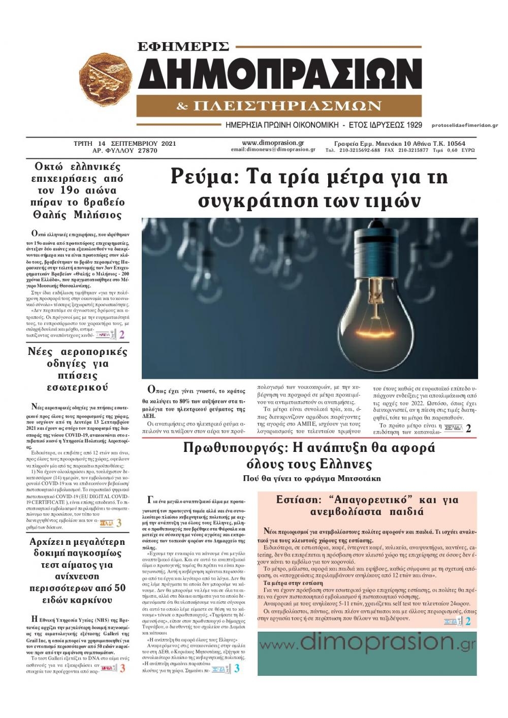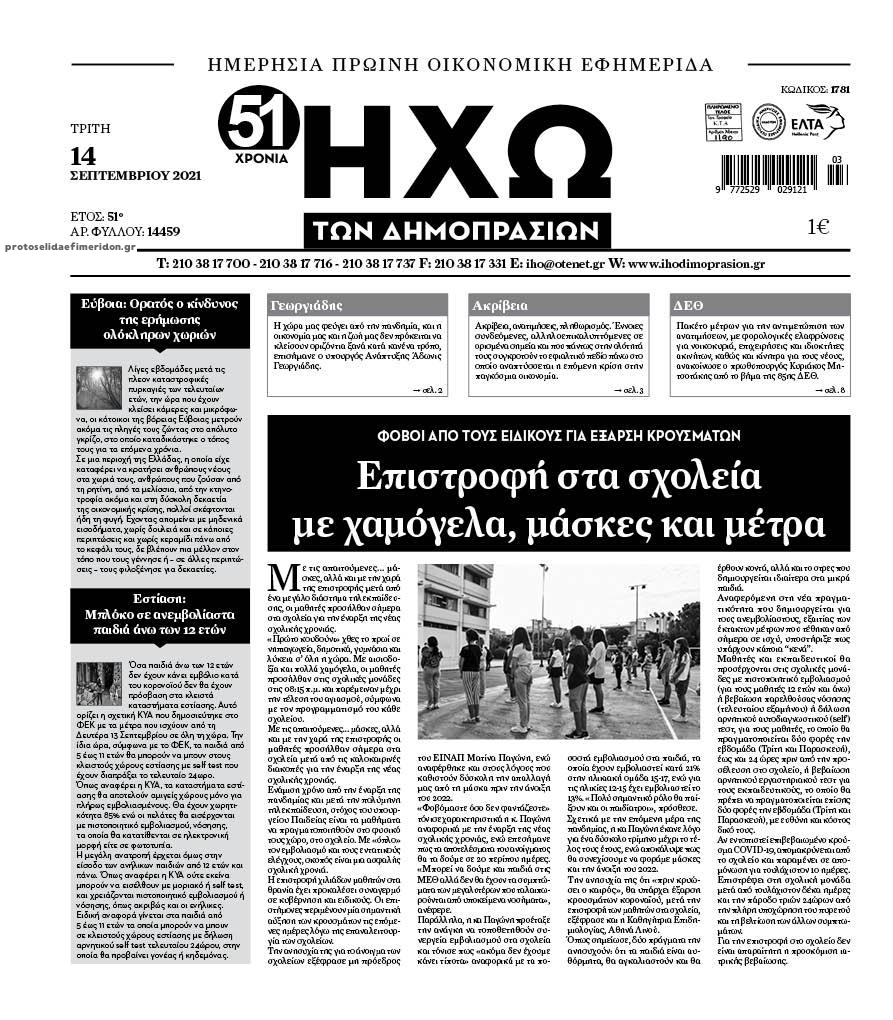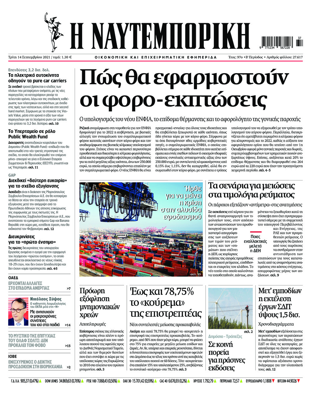 Οι οικονομικές εφημερίδες 14/9/2021 Σήφης Γαρυφαλάκης 06:10, Τρίτη 14 Σεπτεμβρίου 2021 Media Διαβάστε τα πρωτοσέλιδα των οικονομικών εφημερίδων. ΕΦΗΜΕΡΙΔΕΣ ΟΙΚΟΝΟΜΙΚΕΣ ΕΦΗΜΕΡΙΔΕΣ ΠΡΩΤΟΣΕΛΙΔΑ Μοιράσου το: σχολίασε κι εσύ (0 σχόλια) Ακολουθήστε το enikos.gr στο Google News και μάθετε πρώτοι όλες τις ειδήσεις Δείτε όλες τις τελευταίες ειδήσεις από την Ελλάδα και τον Κόσμο στο enikos.gr Ειδήσεις Ροή Ειδήσεων 3 ώρες πριν Χριστούγεννα στα μπλόκα οι αγρότες: Άνοιξαν στα διόδια και μοίρασαν προϊόντα στους πολίτες – Νέα σύσκεψη την Κυριακή στη Νίκαια 3 ώρες πριν Κύκλωμα διακίνησης ναρκωτικών σε σχολεία: Τηλεφωνούσαν στους ανηλίκους την ώρα του μαθήματος – Οι διάλογοι-σοκ, τα «ψευδώνυμα» και τα βασανιστήρια 2 ώρες πριν Αρχεία Επστάιν: Οι 500 σελίδες που λείπουν, τα αναπάντητα ερωτήματα και οι επώνυμοι – Τι έπεται 4 ώρες πριν Ζελένσκι: Μόνο οι ΗΠΑ και ο Τραμπ μπορούν να πιέσουν τη Ρωσία να βάλει τέλος στον πόλεμο 5 ώρες πριν Φοινικούντα: Προφυλακιστέος ο 30χρονος για συνέργεια στη διπλή δολοφονία – Και άλλα πρόσωπα στο «μικροσκόπιο» 2 ώρες πριν Αποκαλύφθηκε το άγνωστο «GPS» της αρχαιότητας – Πώς οι ναοί «φώτιζαν» τον δρόμο των ναυτικών πριν από την εφεύρεση των φάρων 3 ώρες πριν Ύπνος: Η διατροφή που μπορεί να σας βοηθήσει να κοιμάστε καλύτερα και να ζήσετε περισσότερο 4 ώρες πριν Αριθμολογία: Ο αριθμός του φύλακα αγγέλου σας, με βάση τον μήνα γέννησής σας – «Έτσι σας στέλνει σημάδια το σύμπαν» 16 ώρες πριν Enerwave: Το νέο «ρεύμα» στη λιανική ενέργειας που αλλάζει την εμπειρία του καταναλωτή 10 λεπτά πριν Φωτεινή Αθερίδου: «Προσπαθώ να είμαι κάθετη και αυστηρή σαν μαμά πια» 25 λεπτά πριν ΗΠΑ, Αίγυπτος, Κατάρ και Τουρκία συζήτησαν τη δεύτερη φάση του ειρηνευτικού σχεδίου για τη Γάζα 41 λεπτά πριν Γιάννης Αντετοκούνμπο: Έμεινε στην 6η θέση της ψηφοφορίας του ESPN για το βραβείο του MVP του NBA 56 λεπτά πριν Ρετζέπ Ταγίπ Ερντογάν: Δεν έχουμε καμία βλέψη στα εδάφη ή την κυριαρχία κανενός – Δεν θα επιτρέψουμε να παραβιαστούν τα δικαιώματά μας 1 ώρα πριν Γερμανία: Εκδήλωση μνήμης για τα θύματα της επίθεσης στη χριστουγεννιάτικη αγορά του Μαγδεμβούργου ENIKOS NETWORK Οι γυναίκες αποκαλύπτουν το πιο ελκυστικό πράγμα που μπορεί να κάνει ένας άνδρας Ομορφιά και αντιγήρανση: Ειδικοί μιλούν για συσκευές περιποίησης του δέρματος «Πολεμική» προετοιμασία από την ευρωπαϊκή βιομηχανία ενέργειας – Η Eurelectric ζητεί «ομπρέλα» προστασίας για τις υποδομές Ακύρωση ΑΦΜ για απάτες – Ποιους βάζει στο στόχαστρο η ΑΑΔΕ Χαρτογραφώντας το «σημείο χωρίς επιστροφή»: Για πρώτη φορά αποκαλύπτεται με λεπτομέρεια το ακανθώδες όριο της ατμόσφαιρας τ... Η Google καταργεί τη λειτουργία «dark web report» – Πώς θα μπορούν οι χρήστες να διαγράφουν τα δεδομένα τους περισσότερα 00:00 , Κυριακή 21 Δεκεμβρίου 2025 The Voice: Η επιστροφή της Έλενας Παπαρίζου και η ατάκα του Γιώργου Μαζωνάκη μετά τις καταγγελίες Στη φάση των Cross Battles Live μπήκε το The Voice, με την Έλενα Παπαρίζου να επιστρέφει στο π... 20:30 , Σάββατο 20 Δεκεμβρίου 2025 Αυτή την Κυριακή με τη Realnews: Instyle, μαζί Drive και Realnews Geopolitics Αυτή την Κυριακή με τη Realnews: Instyle, μαζί Drive και Realnews Geopolitics Instyle Η Άννα Ρ... 20:28 , Σάββατο 20 Δεκεμβρίου 2025 Ο ΑΝΤ1 γεμίζει τις γιορτές με μουσική – Ποιους καλλιτέχνες θα απολαύσουμε Φέτος στον ΑΝΤ1 γιορτάζουμε τις νύχτες μας παρέα με αγαπημένους καλλιτέχνες και μεγάλες μουσι... 18:19 , Σάββατο 20 Δεκεμβρίου 2025 HOTΕΛ ΕΛVIRA: Η Ελβίρα μαθαίνει πως ο Χάρι μένει κρυφά στο ξενοδοχείο του Παντελή Συνεχίζο