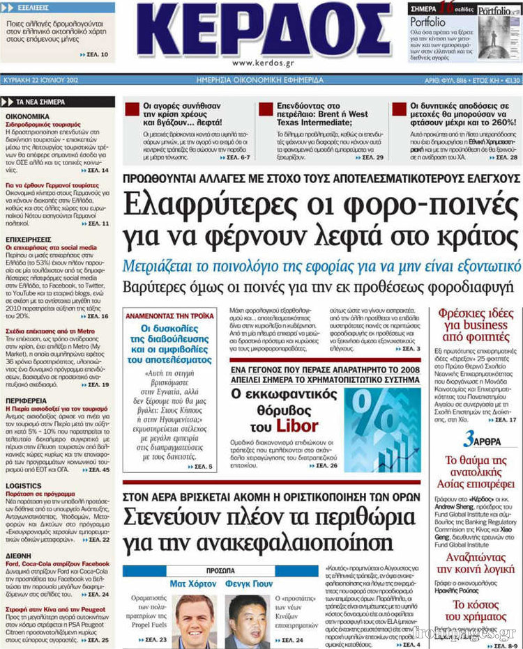 Διαβάστε τα σημερινά πρωτοσέλιδα των οικονομικών εφημερίδων.