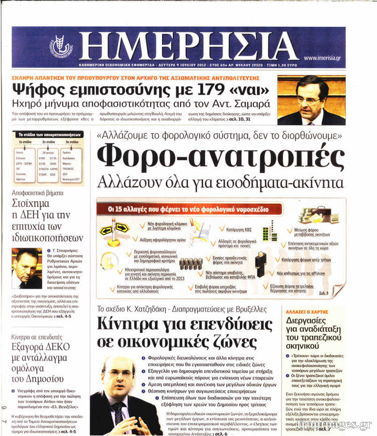 Διαβάστε τα πρωτοσέλιδα των οικονομικών εφημερίδων