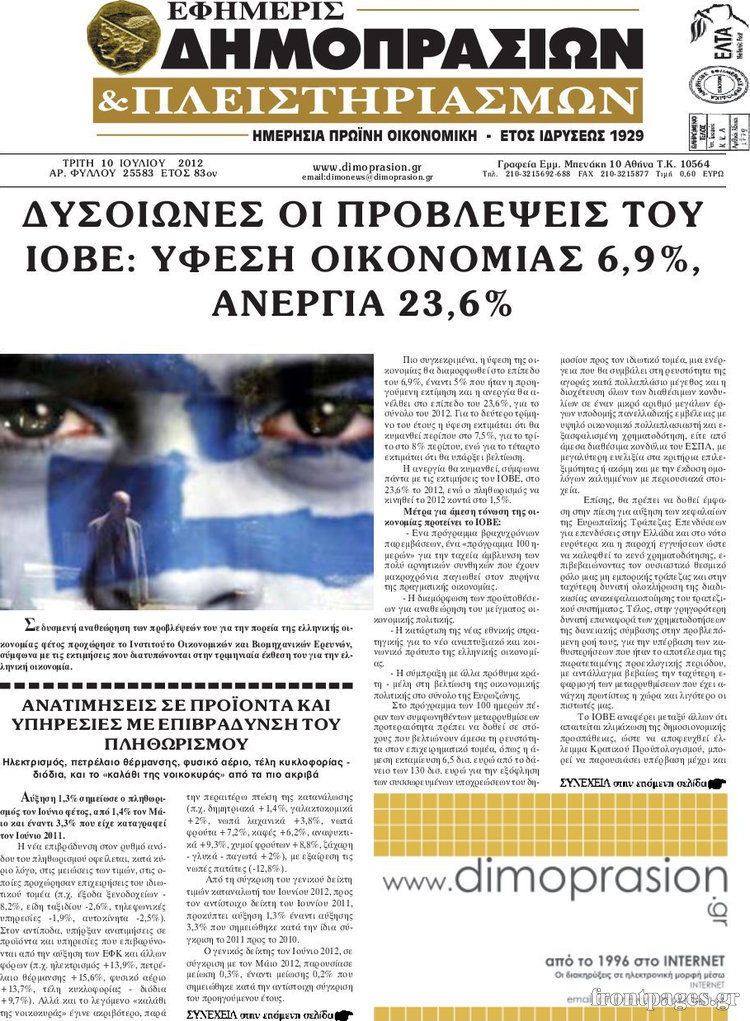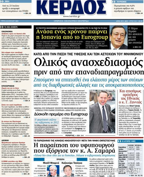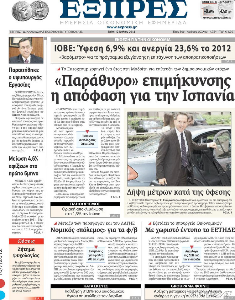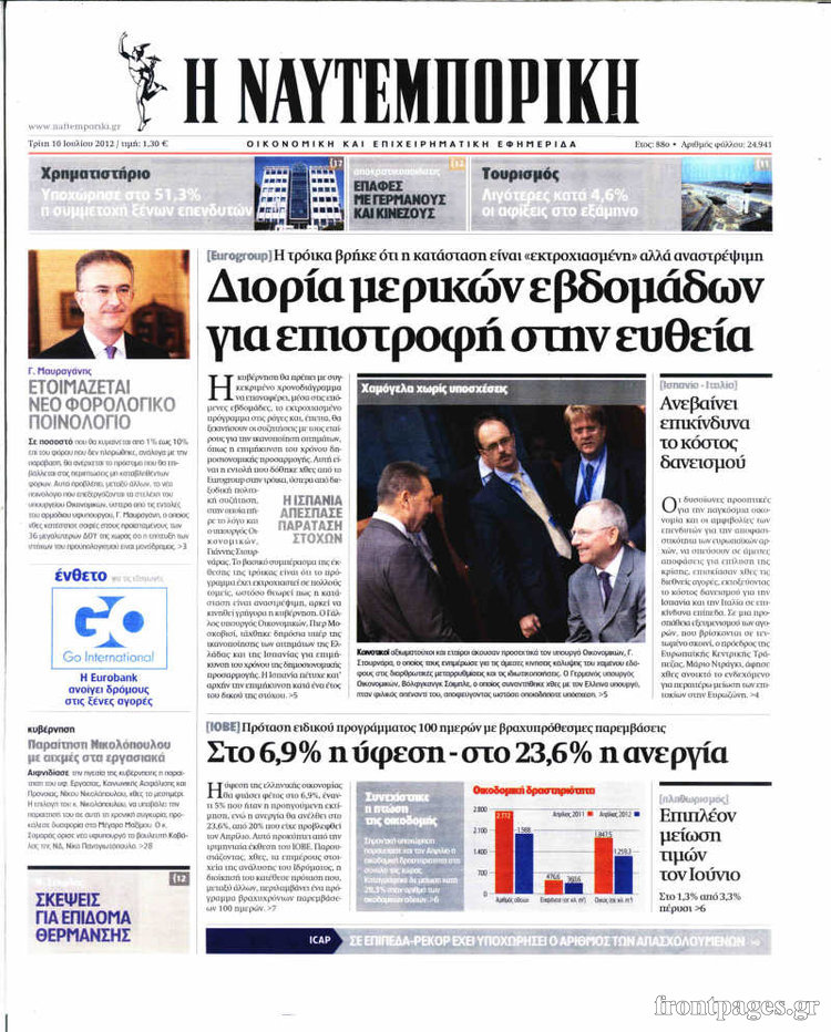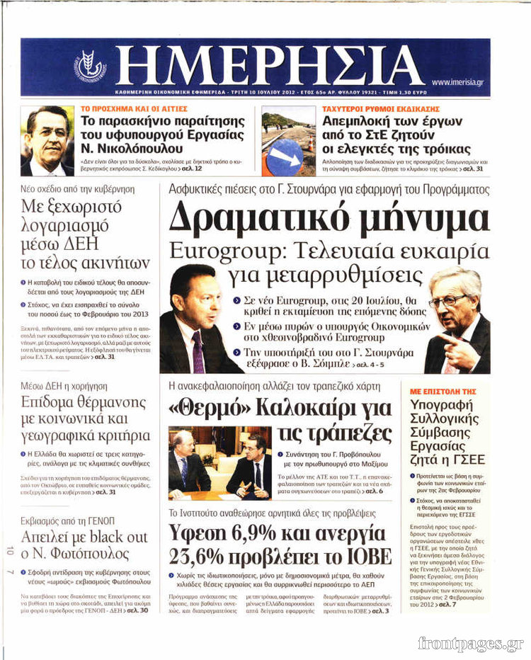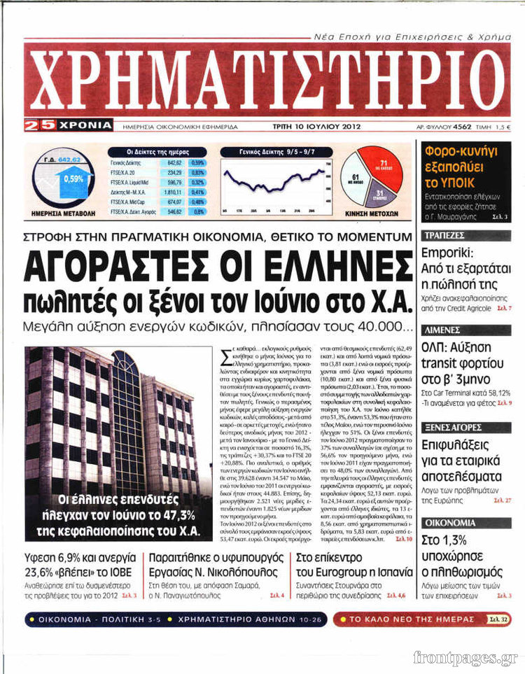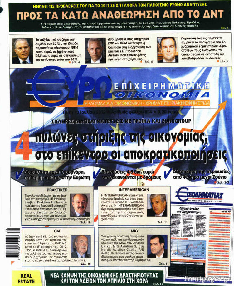 Τα σημερινά πρωτοσέλιδα των οικονομικών εφημερίδων.