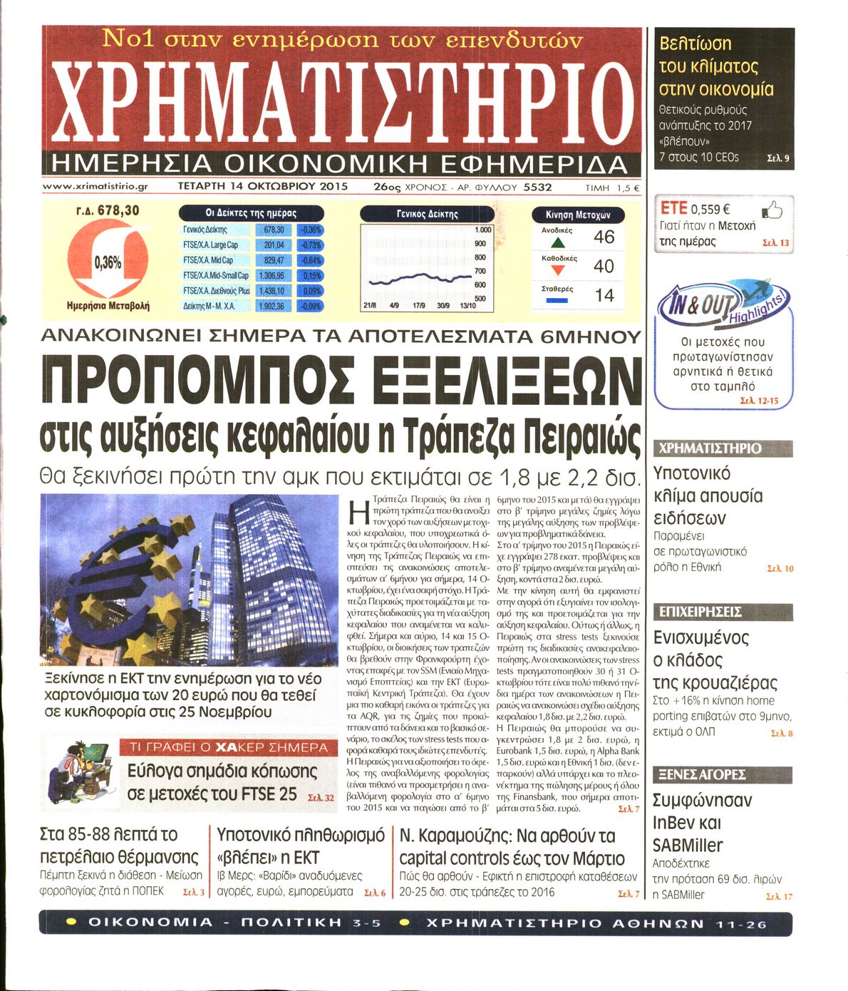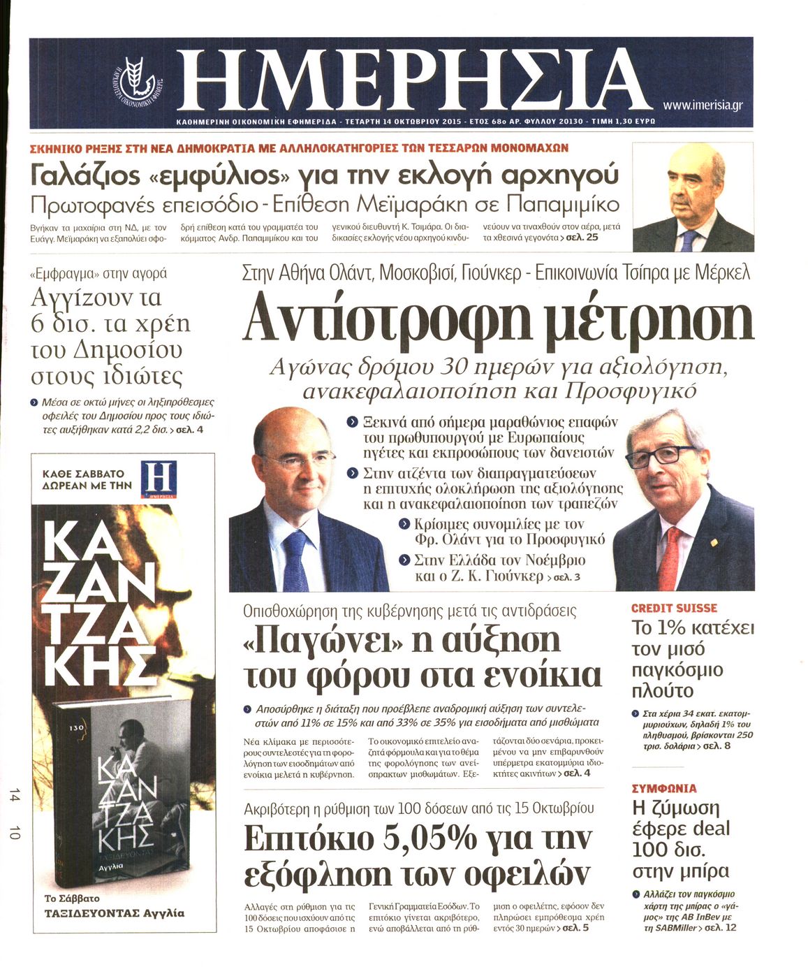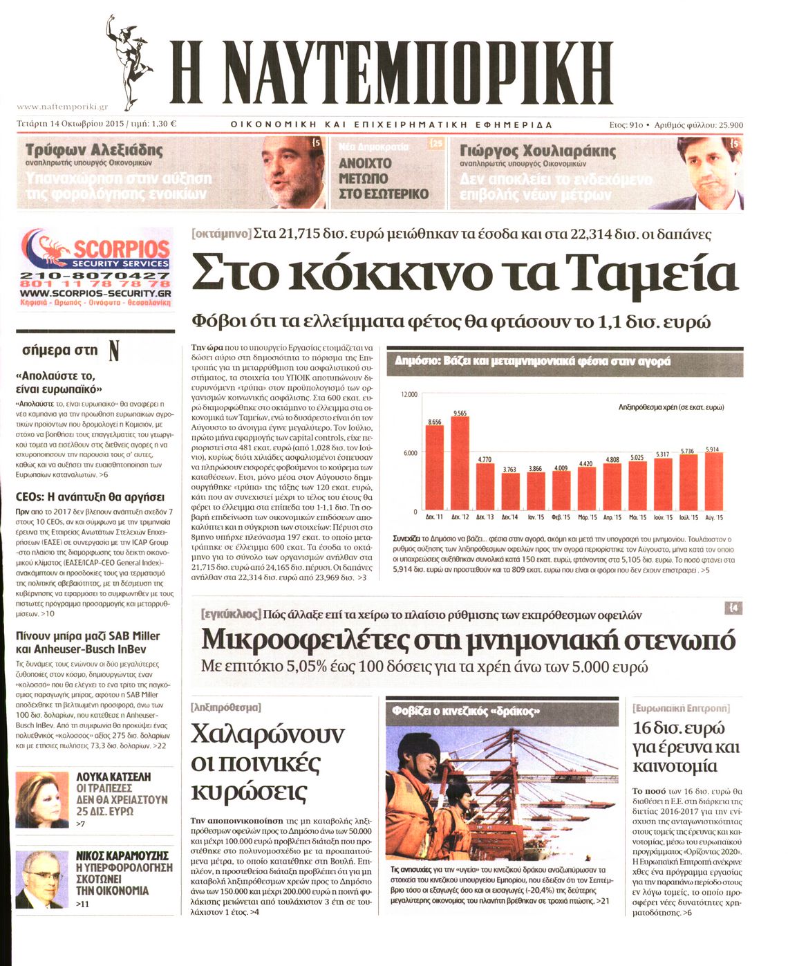 Οι οικονομικές εφημερίδες 14/10/2015 Enikos Newsroom 06:51, Τετάρτη 14 Οκτωβρίου 2015 Media Διαβάστε τα σημερινά πρωτοσέλιδα των οικονομικών εφημερίδων: ΟΙΚΟΝΟΜΙΚΕΣ ΕΦΗΜΕΡΙΔΕΣ ΠΡΩΤΟΣΕΛΙΔΑ Μοιράσου το: σχολίασε κι εσύ (0 σχόλια) Ακολουθήστε το enikos.gr στο Google News και μάθετε πρώτοι όλες τις ειδήσεις Δείτε όλες τις τελευταίες ειδήσεις από την Ελλάδα και τον Κόσμο στο enikos.gr Ειδήσεις Ροή Ειδήσεων 4 ώρες πριν Χριστούγεννα στα μπλόκα: Επιμένουν στις κινητοποιήσεις τους οι αγρότες – Ανοίγουν τα διόδια το Σαββατοκύριακο 4 ώρες πριν Ουκρανία: Η άνευ προηγουμένου επίθεση σε ρωσικό τάνκερ στη Μεσόγειο και το μήνυμα προς στον Πούτιν – Το «μακρύ χέρι» του Κιέβου 4 ώρες πριν Πούτιν: Τα μηνύματα σε Ευρώπη και ΝΑΤΟ από το μαραθώνιο «σόου» του – Η απαίτηση για «σεβασμό» και η ειρήνη «με τους όρους» της Μόσχας 5 ώρες πριν Τραμπ: Δεν αποκλείει την πιθανότητα ενός πολέμου στη Βενεζουέλα – «Ο Μαδούρο ξέρει καλύτερα από τον καθένα τι ακριβώς θέλω» 5 ώρες πριν Συνεχίζει να προκαλεί ο Μίτσκοσκι: «Για μένα το όνομα Μακεδονία είναι ιερό» 4 ώρες πριν Ανακαλύφθηκαν αρχαία χρυσά νομίσματα 2.200 ετών που απεικονίζουν τον θεό Απόλλωνα – Η άγνωστη σύνδεση με τον Φίλιππο Β΄ της Μακεδονίας 5 ώρες πριν Ύπνος: Μια κρυφή κατάσταση του εγκεφάλου πριν από τον ύπνο μπορεί να είναι το “κλειδί” για υψηλή ευφυΐα και δημιουργικότητα 6 ώρες πριν Αριθμολογία: Οι άνθρωποι που έχουν γεννηθεί αυτές τις 4 ημερομηνίες, συχνά παρεξηγούνται – «Η καλοσύνη τους κρύβει τεράστια δύναμη» 7 ώρες πριν Ξεχάστε το καθάρισμα το Σαββατοκύριακο: Ο «κανόνας των 20 λεπτών» που θα σας λύσει τα χέρια 9 λεπτά πριν Θεσσαλονίκη: Εξαφανίστηκε 13χρονος από χώρο φιλοξενίας ασυνόδευτων ανηλίκων στο Ωραιόκαστρο 19 λεπτά πριν Ντόναλντ Τραμπ: «Πολύ βαριά αντίποινα» στη Συρία – «Πλήττουμε πολύ δυνατά οχυρά του Ισλαμικού Κράτους» 34 λεπτά πριν Εξάρχεια: Ένταση με μολότοφ, χημικά και κρότου λάμψης 49 λεπτά πριν ΗΠΑ: Τραγωδία στην Αλαμπάμα – Σκότωσε την δημοσιογράφο σύζυγό του και αυτοκτόνησε μπροστά στον 3χρονο γιο τους 1 ώρα πριν Πρόταση γάμου στο ΣΕΦ κατά την διάρκεια του αγώνα Ολυμπιακός-Βιλερμπάν – Δείτε βίντεο ENIKOS NETWORK Το ΕΚΑΒ τιμήθηκε από την Ακαδημία Αθηνών για τα 40 χρόνια προσφοράς του Έχετε πραγματικά μεγάλη καρδιά; 10 χαρακτηριστικά όσων έχουν καλοσύνη Αναστολή μέτρων αναγκαστικής εκτέλεσης για κτηνοτρόφους που πλήττονται από την ευλογιά των αιγοπροβάτων Πλήρης επάρκεια προϊόντων στις λαϊκές της Αττικής, παρά τις αγροτικές κινητοποιήσεις – Τι απαντούν οι πωλητές Χαρτογραφώντας το «σημείο χωρίς επιστροφή»: Για πρώτη φορά αποκαλύπτεται με λεπτομέρεια το ακανθώδες όριο της ατμόσφαιρας τ... Η Google καταργεί τη λειτουργία «dark web report» – Πώς θα μπορούν οι χρήστες να διαγράφουν τα δεδομένα τους περισσότερα 22:42 , Παρασκευή 19 Δεκεμβρίου 2025 Γιώργος Γιαννόπουλος για “Το σόι σου”: “Είναι ευτυχία και ευλογία αυτή η σειρά” «Είναι ευτυχία και ευλογία η συγκυρία αυτής της σειράς», θα πει ο Γιώργος Γιαννόπουλος -ο αγαπ... 20:37 , Παρασκευή 19 Δεκεμβρίου 2025 Don’t Forget The Lyrics: Η Έλλη Κοκκίνου υποδέχεται 4 παίκτες που θα κάνουν τα πάντα για να μη χάσουν ούτε… μισή λέξη από τους στίχους Το «Don’t Forget The Lyrics» επιστρέφει απόψε, Παρασκευή 19 Δεκεμβρίου, στις 21:00 με νέο επει... 19:31 , Παρασκευή 19 Δεκεμβρίου 2025 GNTM: Απόψε ο μεγάλος τελικός για τους 4 φιναλίστ Έπειτα από μήνες γεμάτους μόδα, δημιουργία και έντονες αναμετρήσεις, το GNTM 2025 κορυφώνεται,... 18:11 , Παρασκευή 19 Δεκεμβρί