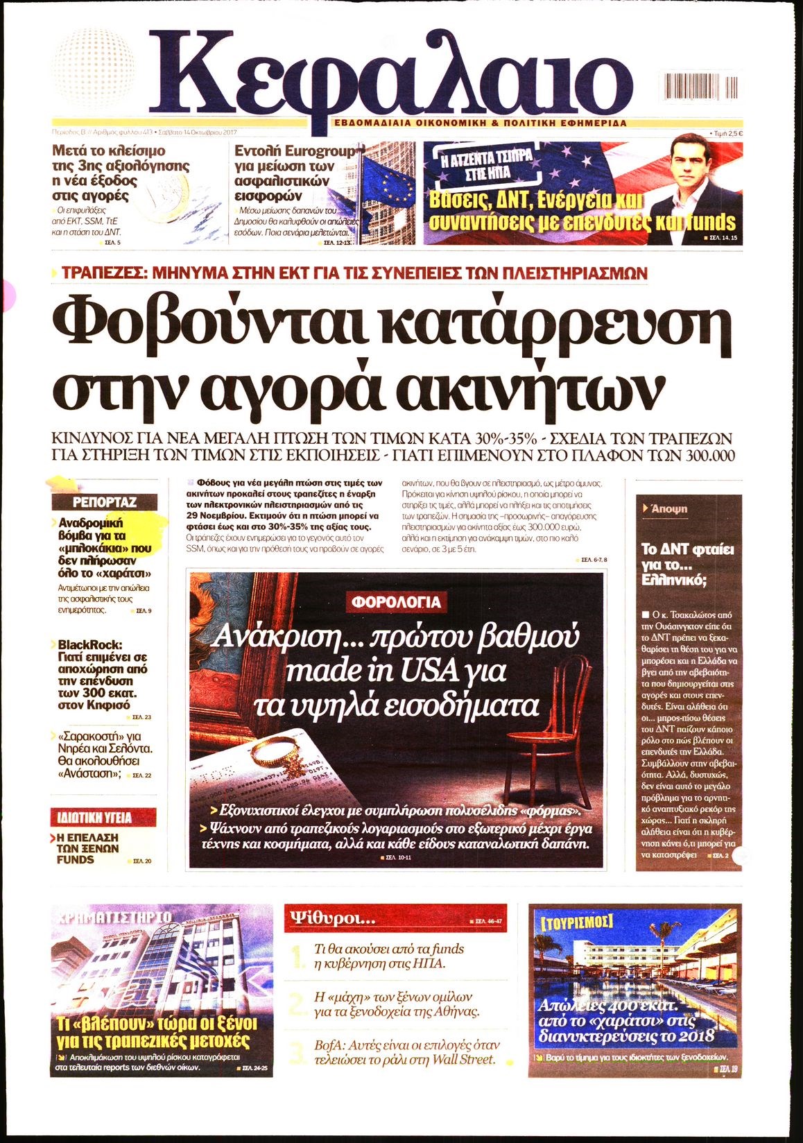 Oι οικονομικές εφημερίδες 14/10/2017 Enikos Newsroom 07:30, Σάββατο 14 Οκτωβρίου 2017 Media Διαβάστε τα σημερινά πρωτοσέλιδα των οικονομικών εφημερίδων: ΟΙΚΟΝΟΜΙΚΕΣ ΕΦΗΜΕΡΙΔΕΣ ΠΡΩΤΟΣΕΛΙΔΑ Μοιράσου το: σχολίασε κι εσύ (0 σχόλια) Ακολουθήστε το enikos.gr στο Google News και μάθετε πρώτοι όλες τις ειδήσεις Δείτε όλες τις τελευταίες ειδήσεις από την Ελλάδα και τον Κόσμο στο enikos.gr Ειδήσεις Ροή Ειδήσεων 2 ώρες πριν Αγρότες: Πολύωροι αποκλεισμοί στα τελωνεία Προμαχώνα, Εξοχής, Ευζώνων και Νίκης – Κλείνουν τον κόμβο Φιλώτα οι παραγωγοί στη Δυτική Μακεδονία 2 ώρες πριν Νίκος Παππάς: Ζητώ συγγνώμη για αυτό το επεισόδιο – Δεν τον γρονθοκόπησα 1 ώρα πριν Πούτιν: Η Ουκρανία δεν είναι έτοιμη για ειρηνευτικές συνομιλίες – ο ρωσικός στρατός προελαύνει σε όλα τα μέτωπα 42 λεπτά πριν Κρήτη: Στο Ρέθυμνο μεταφέρονται οι εκατοντάδες μετανάστες που διασώθηκαν ανοιχτά της Γαύδου 2 ώρες πριν Τρομακτικό βίντεο: Η στιγμή της έκρηξης στο τζετ που μετέφερε τον οδηγό του NASCAR, Γκρεγκ Μπιφλ και την οικογένειά του 3 ώρες πριν Αλλαγή σελίδας για 3 ζώδια – «Μία δύσκολη περίοδος φτάνει στο τέλος της» 2 ημέρες πριν 20 χρόνια τα Χριστούγεννα ξεκινούν στα Public με μεγάλη ποικιλία σε δώρα! 2 ώρες πριν Γεμάτος νεροχύτης; 5 σοβαρές ευθύνες που «φοβίζουν» όσους αφήνουν άπλυτα πιάτα 47 λεπτά πριν Ειδικός μοιράζεται 6 κόλπα για να διατηρείστε σε φόρμα με πάνω από 40 ώρες εργασίας την εβδομάδα: «Προπονηθείτε πριν από τη δουλειά, όχι μετά» 6 λεπτά πριν Αγρότες: Παραμένουν στα μπλόκα και ενισχύουν τις δράσεις τους σε Ημαθία, Πέλλα, Πιερία και Καβάλα 12 λεπτά πριν Γιώργος Μαζωνάκης: «Φοβόταν, θεώρησα ότι έπρεπε να τον προστατεύσω» – Τι λέει η τραγουδίστρια, Νωαίνα για τον Στέφανο Παπαδόπουλο 17 λεπτά πριν Βελόπουλος: Ό,τι και να κάνουν στην κυβέρνηση, όλοι οι υπαίτιοι του εγκλήματος των Τεμπών θα μπουν στην φυλακή 24 λεπτά πριν ΕΥΔΑΠ: 17 ερωτήσεις και απαντήσεις για τις αλλαγές στα τιμολόγια του νερού 30 λεπτά πριν Οδοντιατρικός Σύλλογος Αττικής: Προσοχή στις παραπλανητικές διαφημίσεις οδοντικών εμφυτευμάτων ENIKOS NETWORK Κίνδυνος παραπλάνησης από διαφημίσεις οδοντικών εμφυτευμάτων Καρκίνος του πνεύμονα: Έως 8.000 ζωές μπορούν να σωθούν με την έγκαιρη διάγνωση Αγορά πολυτελών κατοικιών: Αυτές είναι οι προτεραιότητες των αγοραστών – Σε ποιες περιοχές στρέφονται και τι επιλέγουν ΕΥΔΑΠ: Στο τραπέζι αλλαγές στους λογαριασμούς του νερού – Τι θα ισχύσει για ευάλωτα νοικοκυριά και επιχειρήσεις Χαρτογραφώντας το «σημείο χωρίς επιστροφή»: Για πρώτη φορά αποκαλύπτεται με λεπτομέρεια το ακανθώδες όριο της ατμόσφαιρας τ... Η Google καταργεί τη λειτουργία «dark web report» – Πώς θα μπορούν οι χρήστες να διαγράφουν τα δεδομένα τους περισσότερα 08:00 , Παρασκευή 19 Δεκεμβρίου 2025 Την Κυριακή με τη Realnews: Δωροεπιταγή 10€ Δωροεπιταγή αξίας 10€ για αγορές άνω των 60€ από τα πολυκαταστήματα FactoryOutlet H προσφορά ι... 05:48 , Παρασκευή 19 Δεκεμβρίου 2025 Οι οικονομικές εφημερίδες 19/12/2025 Διαβάστε τα πρωτοσέλιδα από τις οικονομικές εφημερίδες, σήμερα 19/12/2025. 05:43 , Παρασκευή 19 Δεκεμβρίου 2025 Οι αθλητικές εφημερίδες 19/12/2025 Διαβάστε τα πρωτοσέλιδα από τις αθλητικές εφημερίδες, σήμερα 19/12/2025. 05:38 , Παρασκευή 19 Δεκεμβρίου 2025 Οι πολιτικές εφημερίδες 19/12/2025 Διαβάστε τα πρωτοσέλιδα από τις πολιτικές εφημερίδες, σήμερα 19/12/2025. ΤΕΛΕΥΤΑΙΕΣ ΕΙΔΗΣΕΙΣ 6 λεπτά πριν Αγρότες: Παραμένουν στα μπλόκα και ενισχύουν τις... 12 λεπτά πριν Γιώργος Μαζωνάκης: «Φοβόταν, θεώρησα ότι έπρεπε να τον... 17 λεπτά π