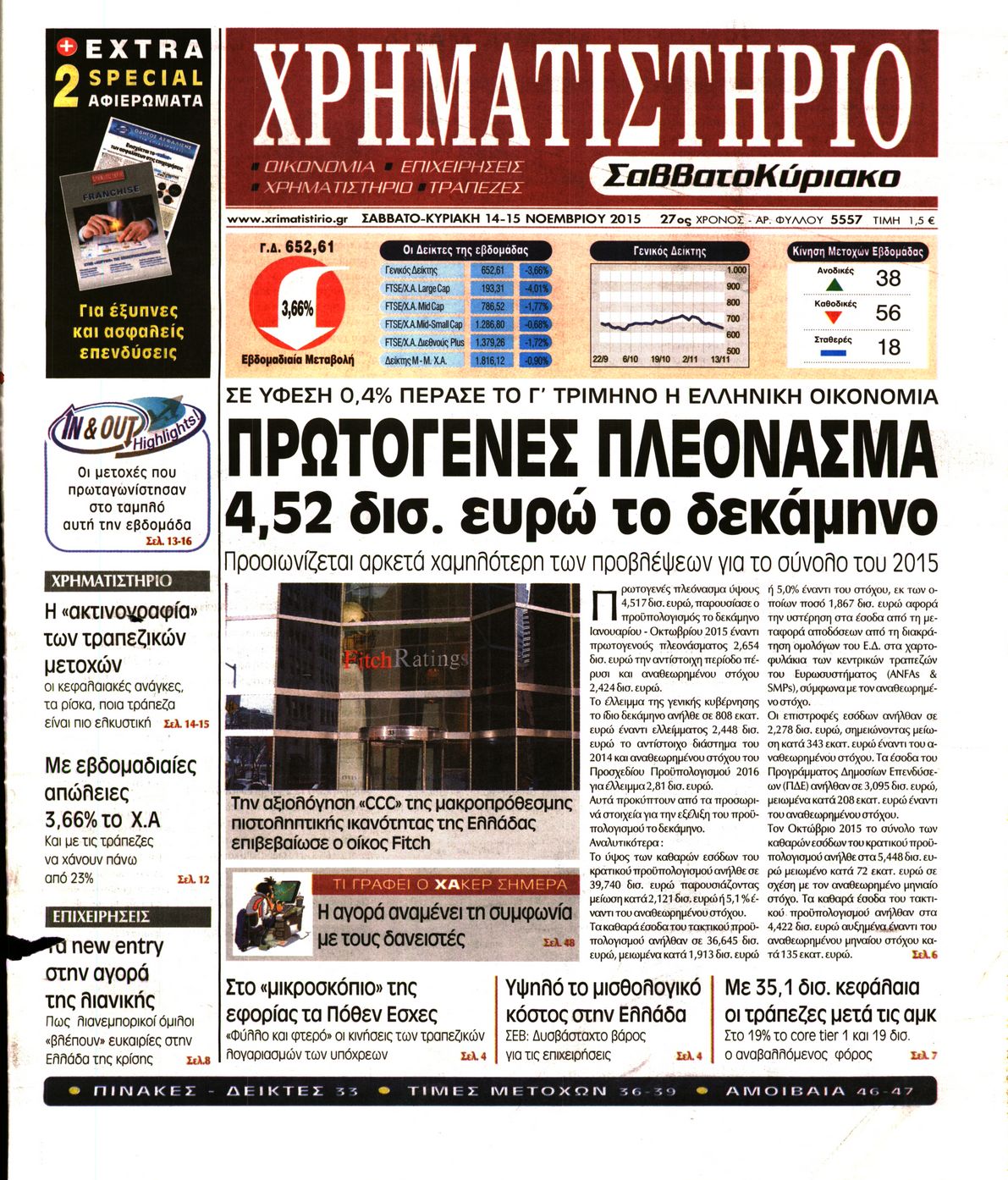 Οι οικονομικές εφημερίδες 14/11/2015 Enikos Newsroom 06:14, Σάββατο 14 Νοεμβρίου 2015 Media Διαβάστε τα σημερινά πρωτοσέλιδα των οικονομικών εφημερίδων: ΟΙΚΟΝΟΜΙΚΕΣ ΕΦΗΜΕΡΙΔΕΣ ΠΡΩΤΟΣΕΛΙΔΑ Μοιράσου το: σχολίασε κι εσύ (0 σχόλια) Ακολουθήστε το enikos.gr στο Google News και μάθετε πρώτοι όλες τις ειδήσεις Δείτε όλες τις τελευταίες ειδήσεις από την Ελλάδα και τον Κόσμο στο enikos.gr Ειδήσεις Ροή Ειδήσεων 57 λεπτά πριν Δίκη Βαλυράκη: Καταθέτει ο βασικός αυτόπτης μάρτυρας – «Δέχτηκα πιέσεις να μη μιλήσω, πήγα να ψωνίσω και αυτοκίνητο με χτύπησε στο πόδι» 2 ώρες πριν Γιώργος Μαζωνάκης: «Δεν ζήτησα χρήματα, παρά μόνο ηθική δικαίωση» – Οι πρώτες δηλώσεις του 22χρονου μετά την κατάθεση της μήνυσης 47 λεπτά πριν Ώρα αποφάσεων για τους αγρότες – Ξεκίνησε η πανελλαδική σύσκεψη μπλόκων στις Σέρρες – ΦΩΤΟ 5 ώρες πριν Συναγερμός και στην Ελλάδα για τη «σούπερ γρίπη»: Πόσο σοβαρή είναι και ποιοι θεωρούνται πιο ευάλωτοι – 3 ειδικοί μιλούν στο enikos.gr 2 ώρες πριν Γαλλία: Η οργή των αγροτών – Αναμένεται η ομιλία του Μακρόν, τα τρακτέρ συγκεντρώνονται μαζικά στις Βρυξέλλες 6 ώρες πριν Τα 4 ζώδια που λαμβάνουν ένα ισχυρό σημάδι από το σύμπαν – «Αποκαλύπτεται κάτι που μπορεί να αλλάξει τη ζωή μας» 5 ώρες πριν Αν κάνετε συνεχώς αυτά τα 8 πράγματα με τα κατοικίδιά σας, σας λείπει η ανθρώπινη επαφή 1 ώρα πριν Αυτό που κρύβεται κάτω από τη Γροιλανδία θα μπορούσε να ανατρέψει όσα γνωρίζουμε για την άνοδο της στάθμης των θαλασσών 1 ημέρα πριν 20 χρόνια τα Χριστούγεννα ξεκινούν στα Public με μεγάλη ποικιλία σε δώρα! 6 λεπτά πριν Ευλογιά αιγοπροβάτων: Νέες αποζημιώσεις ύψους 26 εκατ. ευρώ σε κτηνοτρόφους – Η κατανομή ανά Περιφέρεια 10 λεπτά πριν Το Σπίτι Δίπλα Στο Ποτάμι: Το καθηλωτικό τελευταίο επεισόδιο για το 2025 απόψε στις 22:30 15 λεπτά πριν Βραζιλία: Νεκρή 25χρονη influencer που έπεσε από τον 10ο όροφο έπειτα από καβγά με τον σύζυγό της – Συνελήφθη ο 40χρονος – ΒΙΝΤΕΟ-σοκ 19 λεπτά πριν Μεσολόγγι: Εγκατέλειψαν κουτάβια δίπλα από αυλάκι – Τα έσωσε η Πυροσβεστική – ΒΙΝΤΕΟ 24 λεπτά πριν Τσουκαλάς: Η κυβέρνηση του «δεν ξέρω-δεν είδα-δεν άκουσα» νομίζει ότι θα βυθιστεί σε αμνησία όλη η ελληνική κοινωνία για το σκάνδαλο στον ΟΠΕΚΕΠΕ ENIKOS NETWORK 100 χρόνια ΠΙΣ: Ένας αιώνας προσφοράς στην Ιατρική και την κοινωνία Ένα ποτήρι την ημέρα από αυτόν τον χυμό μειώνει τη χοληστερίνη, τη φλεγμονή και την πίεση Αυτόματη απόδοση ΦΠΑ: Τα δύο σενάρια που επεξεργάζεται η ΑΑΔΕ ΑΑΔΕ: Έρχεται το… ΔΕΟΣ – Όλες οι λεπτομέρειες για τον ενιαίο ελεγκτικό μηχανισμό για το οικονομικό έγκλημα Χαρτογραφώντας το «σημείο χωρίς επιστροφή»: Για πρώτη φορά αποκαλύπτεται με λεπτομέρεια το ακανθώδες όριο της ατμόσφαιρας τ... Η Google καταργεί τη λειτουργία «dark web report» – Πώς θα μπορούν οι χρήστες να διαγράφουν τα δεδομένα τους περισσότερα 15:52 , Πέμπτη 18 Δεκεμβρίου 2025 Το Σπίτι Δίπλα Στο Ποτάμι: Το καθηλωτικό τελευταίο επεισόδιο για το 2025 απόψε στις 22:30 Καθηλώνει το σημερινό επεισόδιο της σειράς “Το Σπίτι Δίπλα Στο Ποτάμι” που έρχεται... 15:20 , Πέμπτη 18 Δεκεμβρίου 2025 Άγιος έρωτας – Η Ελευθερία Αρβανιτάκη τραγουδά και ο Γιάννης Τσορτέκης καθηλώνει με τον χορό του Ο Κλεάνθης χορεύει στους ήχους της Ελευθερίας Αρβανιτάκη στη σειρά “Άγιος Έρωτας“.... 08:00 , Πέμπτη 18 Δεκεμβρίου 2025 Την Κυριακή με τη Realnews: Δωροεπιταγή 10€ Δωροεπιταγή αξίας 10€ για αγορές άνω των 60€ από τα πολυκαταστήματα FactoryOutlet H προσφορά ι... 07:50 , Πέμπτη 18 Δεκεμβρίου 2025 «Το σόι σου»: Backstage στα γυρίσματα για το εορταστ