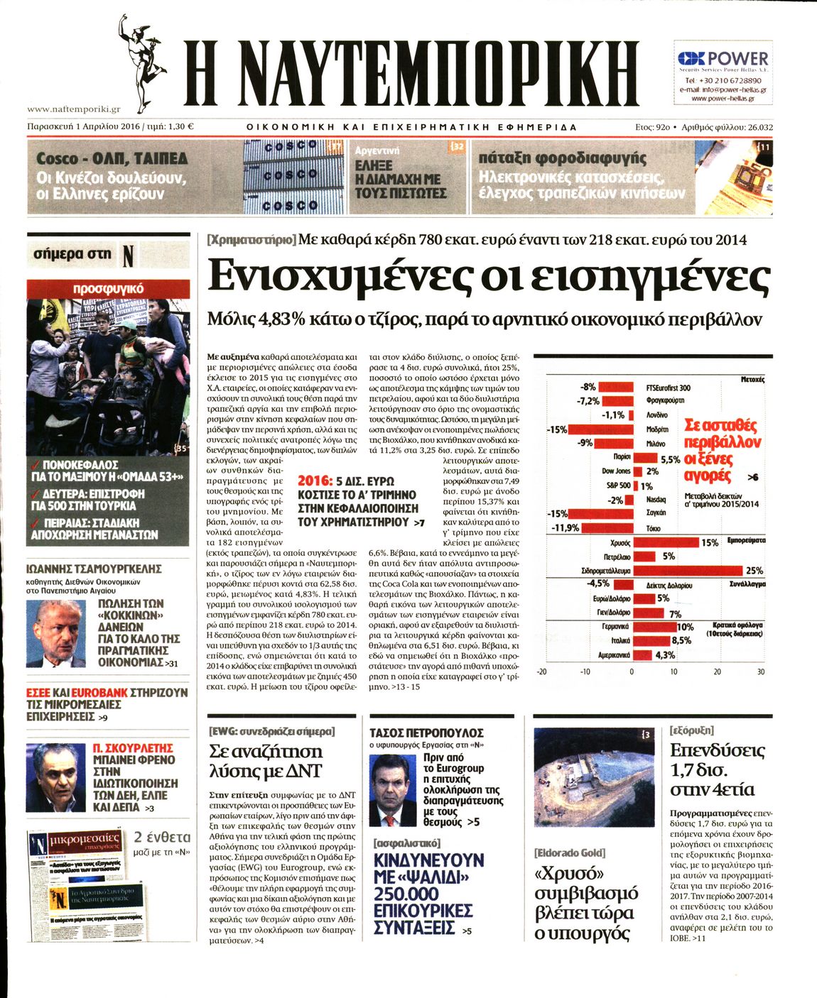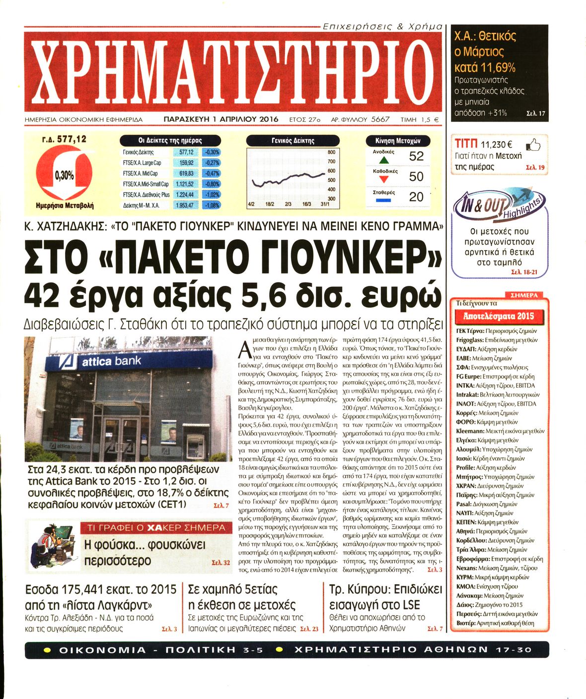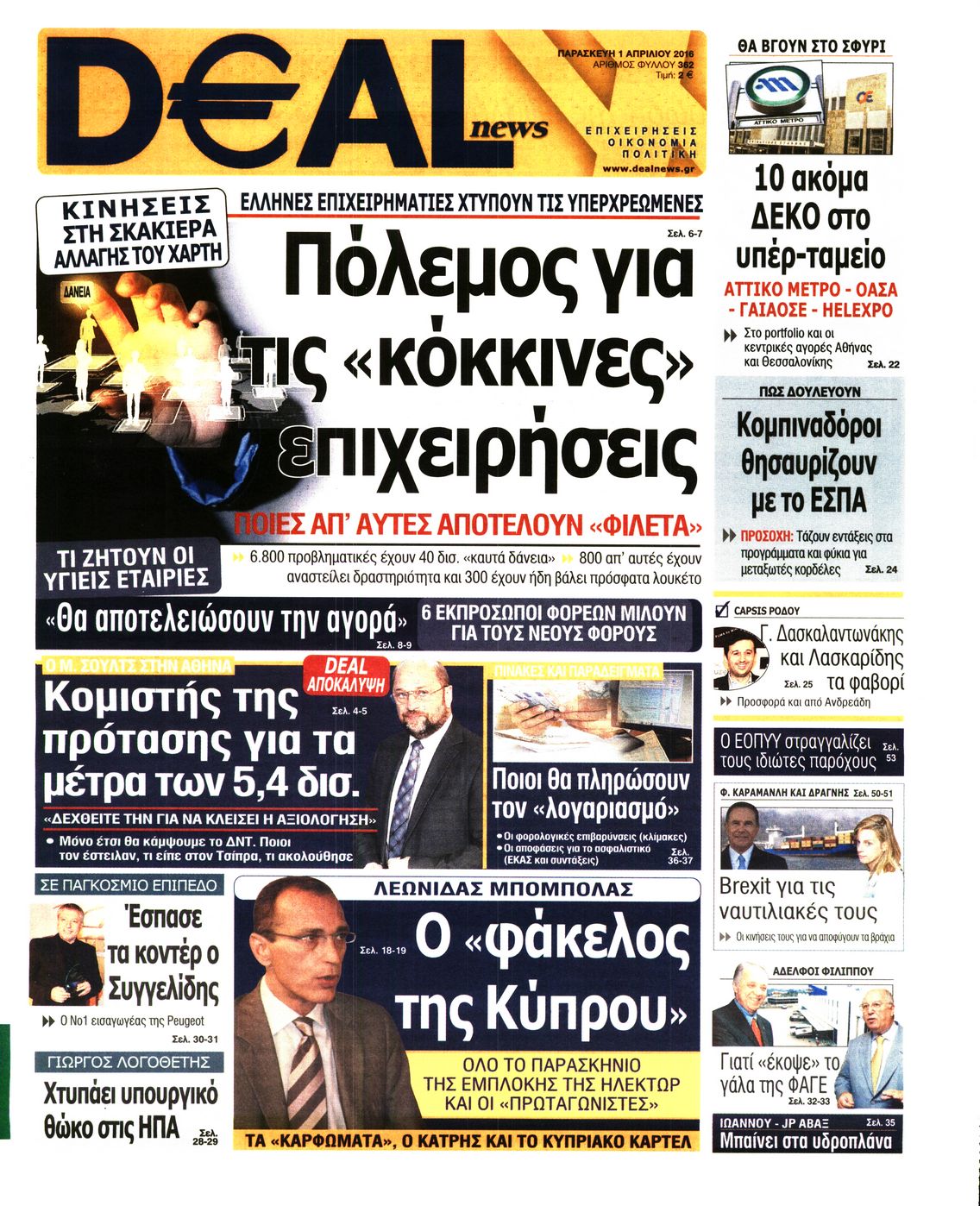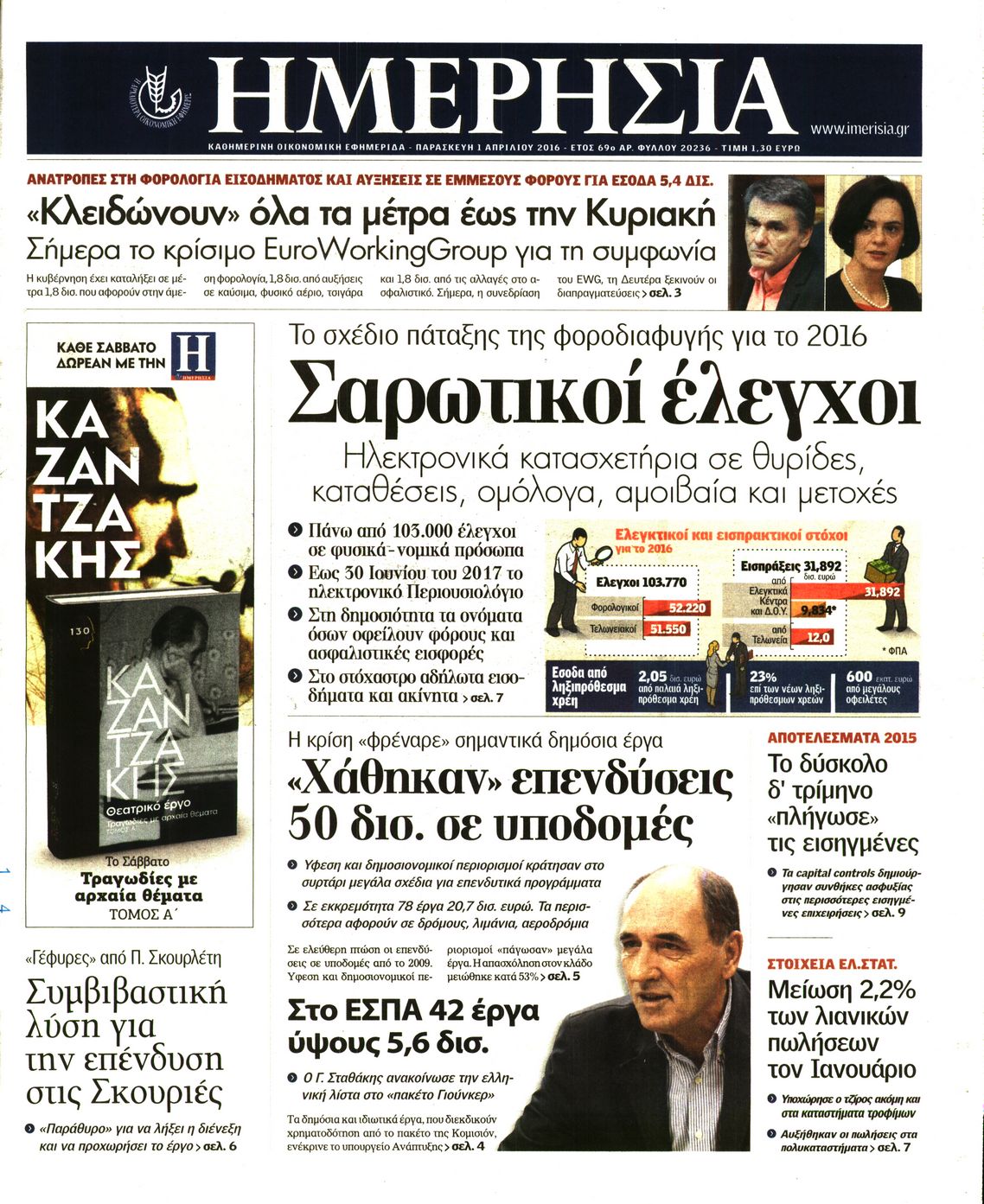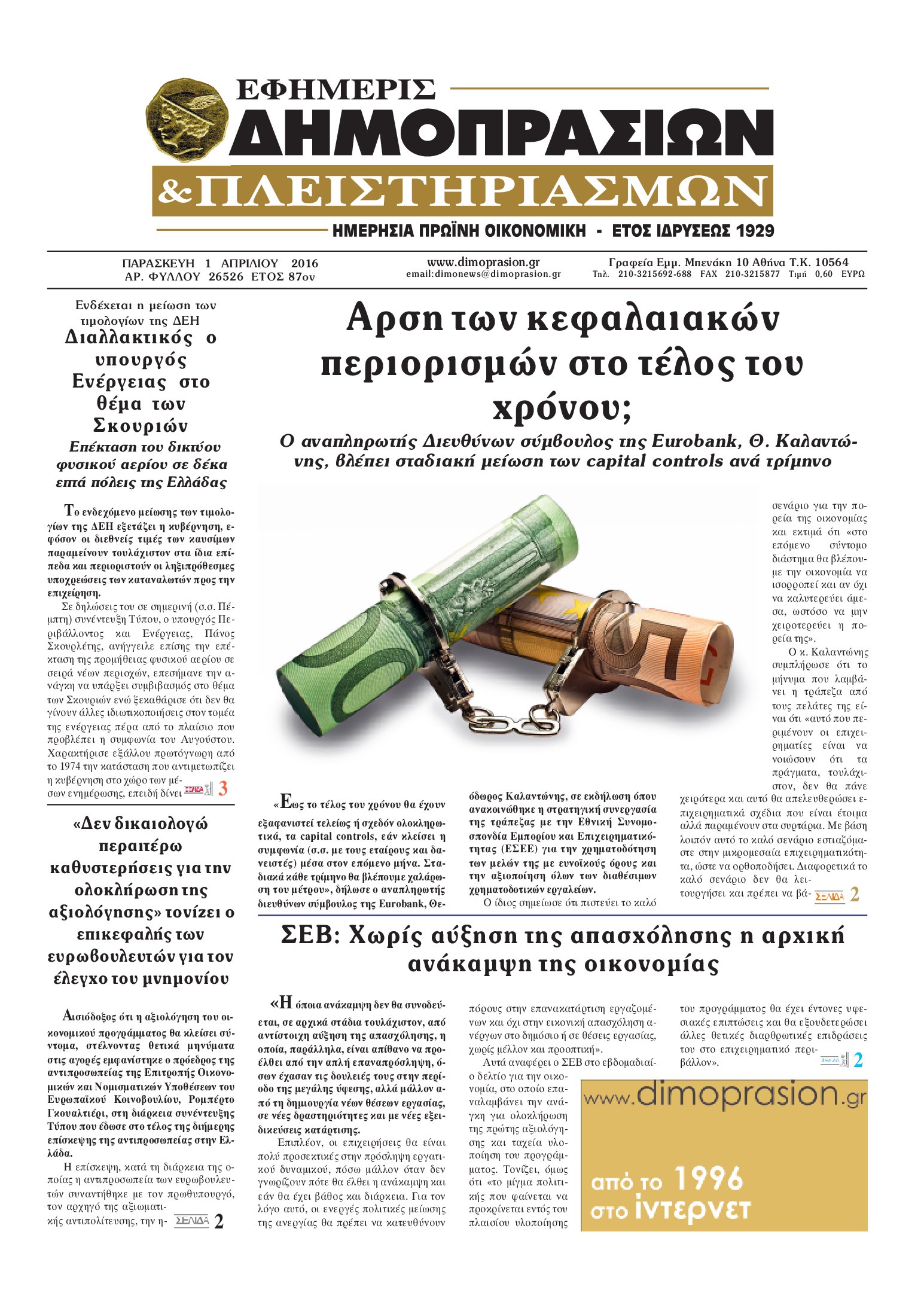 Οι οικονομικές εφημερίδες 1/4/2016 Enikos Newsroom 05:51, Παρασκευή 01 Απριλίου 2016 Media Διαβάστε τα σημερινά πρωτοσέλιδα των οικονομικών εφημερίδων: ΟΙΚΟΝΟΜΙΚΕΣ ΕΦΗΜΕΡΙΔΕΣ ΠΡΩΤΟΣΕΛΙΔΑ Μοιράσου το: σχολίασε κι εσύ (0 σχόλια) Ακολουθήστε το enikos.gr στο Google News και μάθετε πρώτοι όλες τις ειδήσεις Δείτε όλες τις τελευταίες ειδήσεις από την Ελλάδα και τον Κόσμο στο enikos.gr Ειδήσεις Ροή Ειδήσεων 1 ώρα πριν Πούτιν: «Ανοησίες» και «υστερίες» οι ισχυρισμοί της Ευρώπης για πιθανή σύγκρουση με τη Ρωσία – «Κάνουν πλύση εγκεφάλου» 6 ώρες πριν Έρευνα MRB: Η πρόθεση ψήφου και τα σημαντικότερα προβλήματα – Οι «λέξεις» που εκφράζουν τους πολίτες 3 ώρες πριν Αμοργός: «Θα προσπαθήσω να το κάνω κάθε μέρα» – Ποιος είναι ο αγρότης που έστησε μόνος του το πρώτο μπλόκο στο νησί 37 λεπτά πριν Τραγωδία στην Αλεξανδρούπολη: Παιδάκι 3 ετών μεταφέρθηκε νεκρό από τη μητέρα του στο νοσοκομείο 1 ώρα πριν Συνάντηση Μητσοτάκη με την Κ.Ο. της ΝΔ: Οι αφίξεις των βουλευτών, τα γλυκά και τα «πηγαδάκια» 5 ώρες πριν Τα 4 ζώδια που ξαναβρίσκουν τον εαυτό τους – «Μπαίνετε επιτέλους στην ουσία των πραγμάτων» 6 ώρες πριν 20 χρόνια τα Χριστούγεννα ξεκινούν στα Public με μεγάλη ποικιλία σε δώρα! 5 ώρες πριν «Δεν είχα κλάψει από τότε που διαγνώστηκα με καρκίνο, ώσπου ένα τηλεφώνημα με έκανε να λυγίσω» – Η συγκλονιστική εξομολόγηση ενός άνδρα 4 ώρες πριν Τα 7 σπάνια χαρακτηριστικά που κάνουν κάποιους ανθρώπους ακαταμάχητους 4 λεπτά πριν Εξεταστική για ΟΠΕΚΕΠΕ-Μυλωνάκης: Διαχρονικές, διακομματικές οι παθογένειες – Τι είπε για Μπουκώρο και Βάρρα 9 λεπτά πριν Παναθηναϊκός: Θέλει τον Κέπα της Άρσεναλ δανεικό για 6 μήνες 15 λεπτά πριν Το Λαϊκό Λαχείο στον ρυθμό των Χριστουγέννων: Μοιράζει μέχρι και 1.000.000 ευρώ στην ειδική κλήρωση της Παρασκευής 19 Δεκεμβρίου 19 λεπτά πριν Πετράλωνα: Εξαφανίστηκε 13χρονος από χώρο φιλοξενίας ασυνόδευτων ανηλίκων 24 λεπτά πριν Παραμένουν στα μπλόκα οι αγρότες της Μεσσηνίας – Κλειστή η εθνική οδός Καλαμάτας- Αθήνας ENIKOS NETWORK 5 πράγματα που αποφεύγει γαστρεντερολόγος για να μειώσει τον κίνδυνο καρκίνου του εντέρου Ανησυχητική αύξηση της υπέρτασης στα παιδιά – Πώς θα τα προστατέψουμε; ΕΛΕΤΑΕΝ: Πόσα χρήματα θα δοθούν σε δήμους και νοικοκυριά από τις ΑΠΕ «IRIS Παντού»: Στην κορυφή της Ευρώπης η Ελλάδα με 120 εκατ. ευρώ συναλλαγές το 2025 – Η σύγκριση με τις άλλες χώρες της Ευ... Σύγχρονος Νοστράδαμος: Προειδοποιεί για «μεγάλο γεγονός» τους επόμενους μήνες που θα συγκλονίσει τη Βρετανία και τον κόσμο Τεστ παρατηρητικότητας: Μπορείτε να βρείτε τις 3 διαφορές στις εικόνες με έναν πιγκουίνο σε 14 δευτερόλεπτα περισσότερα 12:35 , Τετάρτη 17 Δεκεμβρίου 2025 Μίρκα Παπακωνσταντίνου: «Δεν ήμουν αισιόδοξη για τα νούμερα – Είμαι ρεαλίστρια» Στα γυρίσματα του εορταστικού επεισοδίου της αγαπημένης σειράς “Το Σόι Σου”, βρέθηκε η κάμερα ... 12:12 , Τετάρτη 17 Δεκεμβρίου 2025 Ακούστε την εκπομπή του Νίκου Χατζηνικολάου 17/12/2025 Ακούστε την εκπομπή του Νίκου Χατζηνικολάου στον ραδιοφωνικό σταθμό RealFm 97,8, την Τετάρτη 1... 11:35 , Τετάρτη 17 Δεκεμβρίου 2025 Home Alone: Το σπίτι της ταινίας θα ανακαινιστεί – Επιστροφή στην αισθητική της δεκαετίας του ’90 Οι νέοι ιδιοκτήτες του πραγματικού σπιτιού που παρουσιάζεται στην κλασική ταινία του 1990 «Hom... 11:25 , Τετάρτη 17 Δεκεμβρίου 2025 Grand Hotel: Απόψε το τελευταίο επεισόδιο της χρονιάς – Όλα τα μυστικά μένουν εδώ Το τελευταίο επεισόδιο της χρονιάς της σειράς «Grand Hotel» θα προβληθεί απόψε στις 21:00. Ο Ά... ΤΕΛΕΥΤΑΙ