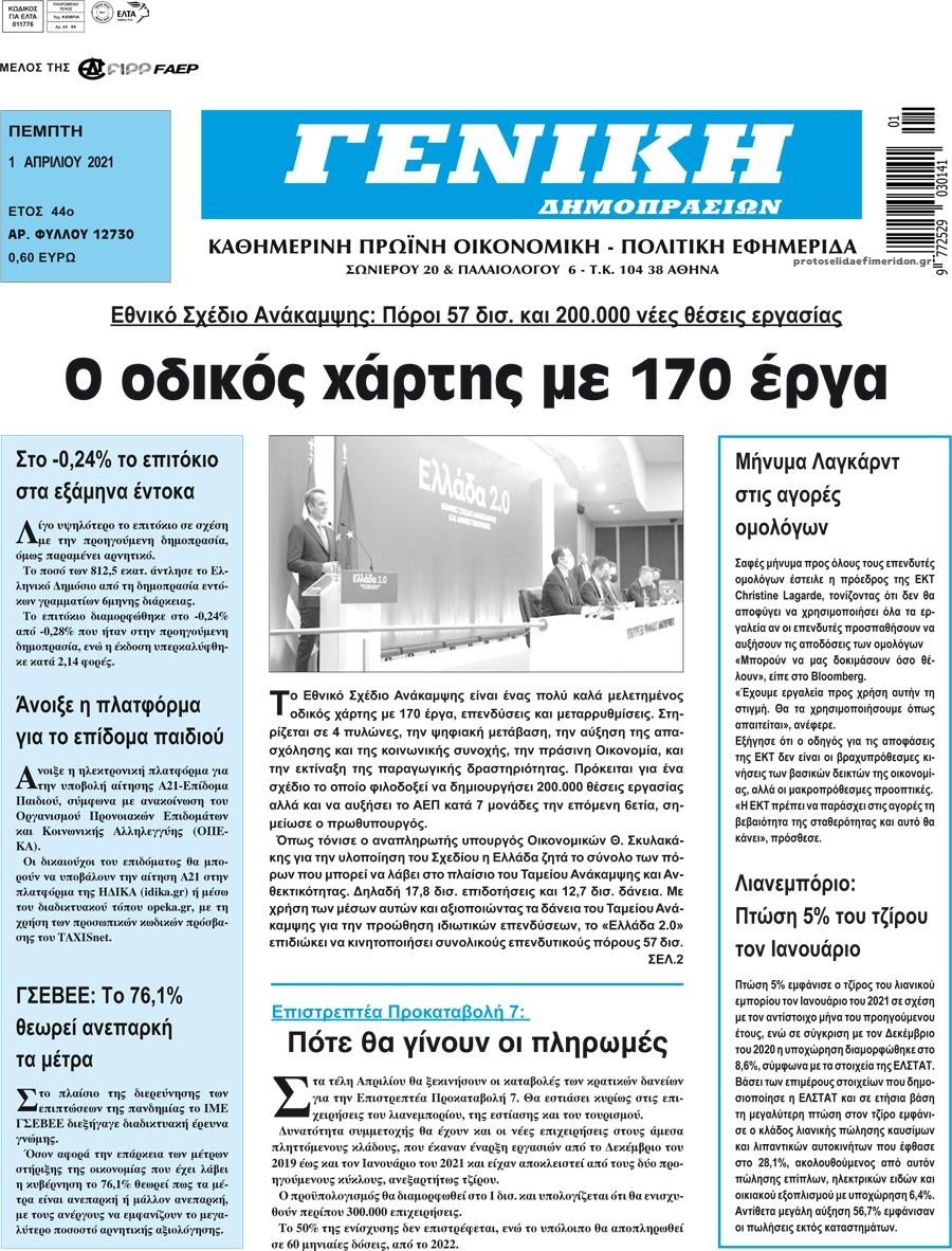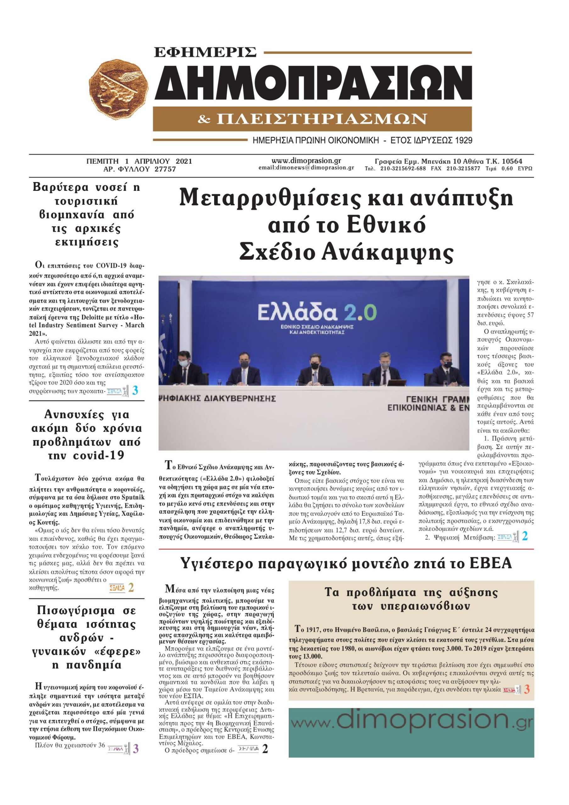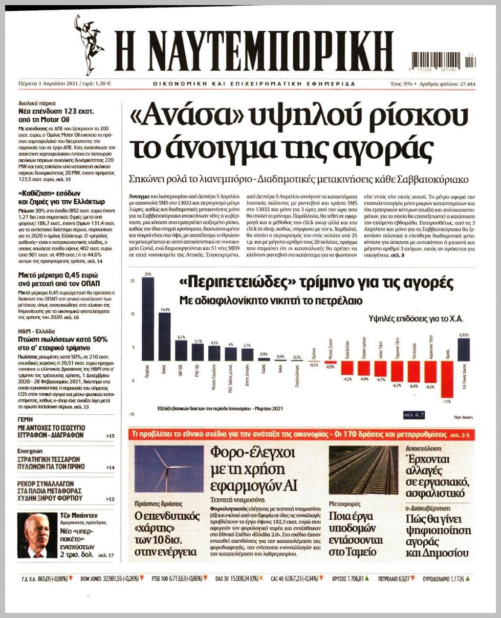 Οι οικονομικές εφημερίδες 1/4/2021 Διονύσης Νίκκας 06:44, Πέμπτη 01 Απριλίου 2021 Media Διαβάστε τα πρωτοσέλιδα των οικονομικών εφημερίδων… ΟΙΚΟΝΟΜΙΚΕΣ ΕΦΗΜΕΡΙΔΕΣ Μοιράσου το: σχολίασε κι εσύ (0 σχόλια) Ακολουθήστε το enikos.gr στο Google News και μάθετε πρώτοι όλες τις ειδήσεις Δείτε όλες τις τελευταίες ειδήσεις από την Ελλάδα και τον Κόσμο στο enikos.gr Ειδήσεις Ροή Ειδήσεων 3 ώρες πριν Αυξάνουν την πίεση προς την κυβέρνηση οι αγρότες: Κλείνουν παρακαμπτήριους και ανοίγουν διόδια – Τι θα γίνει τις γιορτές 1 ώρα πριν ΟΠΕΚΕΠΕ: Προφυλακιστέος ο φερόμενος αρχηγός και ο λογιστής της εγκληματικής οργάνωσης 2 ώρες πριν Φοινικούντα: Το Σάββατο απολογείται ο 30χρονος γιος γνωστού επιχειρηματία της Πλάκας που παραδόθηκε – Όσα είπε στους αστυνομικούς και ο ρόλος του στο έγκλημα 2 ώρες πριν Μπορεί ο Μαδούρο να αντέξει τον αποκλεισμό του Τραμπ; Τι θα χρειαστεί η Ουάσινγκτον για να τον ανατρέψει 4 ώρες πριν Πρίγκιπας Ουίλιαμ – Κέιτ: Η νέα οικογενειακή φωτογραφία για τις Χριστουγεννιάτικες κάρτες του 2025 3 ώρες πριν Ύπνος: Η απλή βραδινή ρουτίνα για να προστατεύσετε τα μαλλιά σας από το κρύο κατά τη διάρκεια του χειμώνα 4 ώρες πριν Manifesting: Πώς να συναντήσετε τον σύντροφο της ζωής σας, ανάλογα με τον μήνα γέννησής σας 2 ημέρες πριν 20 χρόνια τα Χριστούγεννα ξεκινούν στα Public με μεγάλη ποικιλία σε δώρα! 2 ώρες πριν Αρχαιολόγοι ανακάλυψαν ρωμαϊκά τεχνουργήματα από μια πόλη που δεν υπήρξε ποτέ – Τα τρία εντυπωσιακά κτίρια και ο αμφορέας με τις… σαρδέλες 3 λεπτά πριν Νέος πρέσβης της Μεγάλης Βρετανίας στις ΗΠΑ ο Κρίστιαν Τέρνερ 7 λεπτά πριν Conference League: Με Νόα, Ντρίτα, Άλκμααρ ή Τσέλιε στους «16» η ΑΕΚ 15 λεπτά πριν Conference League: Απευθείας στους «16» η ΑΕΚ Λάρνακας και η Ρακόβ των Σβάρνα και Κωνσταντόπουλου – Τα αποτελέσματα και η βαθμολογία, 3η η ΑΕΚ 25 λεπτά πριν Σε ομάδες που συνδέονται με το ρωσικό κράτος αποδίδει η Δανία δύο κυβερνοεπιθέσεις που δέχθηκε 40 λεπτά πριν Βαθμολογία UEFA: Η Πολωνία προσπέρασε την Ελλάδα ENIKOS NETWORK Σε περίοδο αυξημένης δραστηριότητας η γρίπη στην Ελλάδα-Μέτρα προστασίας από τον ΕΟΔΥ Σκέφτεστε συνέχεια συζητήσεις που έχετε κάνει; Τι σημαίνει αυτό, σύμφωνα με ειδικό Στεγαστικό: Τι λέει η ΠΟΜΙΔΑ για τα νέα μέτρα που ανακοίνωσε ο Κυριάκος Μητσοτάκης Λαγκάρντ: Αισιόδοξη για την ανάπτυξη της Ευρωζώνης, αβέβαιη για τον πληθωρισμό Χαρτογραφώντας το «σημείο χωρίς επιστροφή»: Για πρώτη φορά αποκαλύπτεται με λεπτομέρεια το ακανθώδες όριο της ατμόσφαιρας τ... Η Google καταργεί τη λειτουργία «dark web report» – Πώς θα μπορούν οι χρήστες να διαγράφουν τα δεδομένα τους περισσότερα 17:45 , Πέμπτη 18 Δεκεμβρίου 2025 ROUK ZOUK: Εορταστικό επεισόδιο με καλεσμένους τους πρωταγωνιστές του «Γιατί ρε πατέρα» Το Σάββατο 20 Δεκεμβρίου στις 21:00, η Ζέτα Μακρυπούλια υποδέχεται εκλεκτούς ηθοποιούς που όλο... 17:20 , Πέμπτη 18 Δεκεμβρίου 2025 Άγιος έρωτας: Η Χριστίνα εξομολογείται στον πατέρα Νικόλαο, απόψε στις 21:00 στον Alpha Η Νότα αποφασίζει να εκδικηθεί τον Πέτρο και τον Στέφανο, για χάρη του Λούη, όμως τα πράγματα ... 16:50 , Πέμπτη 18 Δεκεμβρίου 2025 Να μ’ αγαπάς: Ζωή και Φωτεινή συμφιλιώνονται ως μάνα με κόρη, απόψε στις 20:00 Η ταυτότητα του Άγγελου αποκαλύπτεται στο νέο επεισόδιο της σειράς “Να μ’ αγαπάς... 15:52 , Πέμπτη 18 Δεκεμβρίου 2025 Το Σπίτι Δίπλα Στο Ποτάμι: Το καθηλωτικό τελευταίο επεισόδιο για το 2025 απόψε στις 22:30 Καθηλώνει το σημερινό επεισόδιο της σειράς “Το Σπίτι Δίπλα Στο Ποτάμι” που έρχεται... ΤΕΛΕΥΤΑΙΕΣ ΕΙΔΗΣΕΙΣ 3 λ