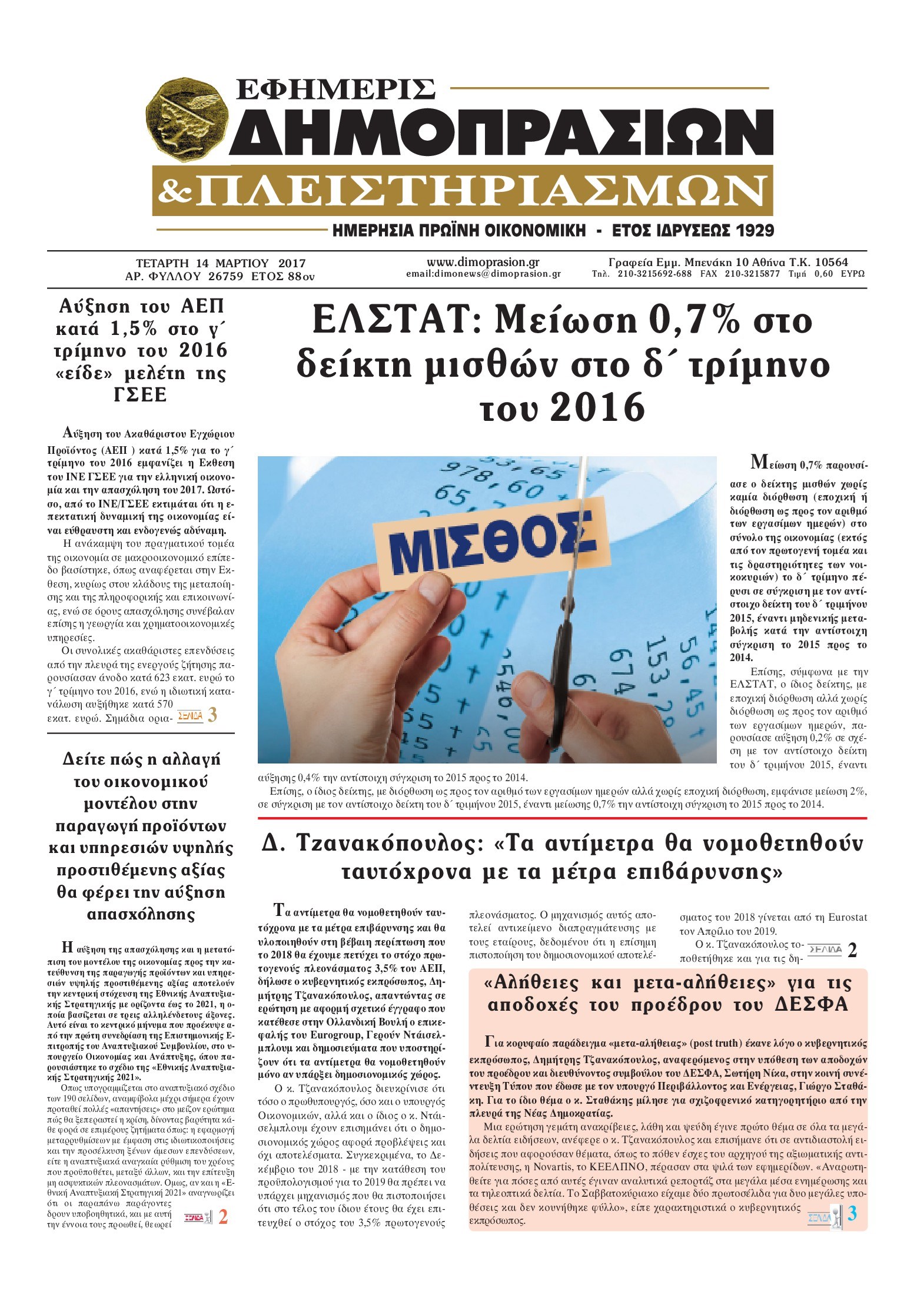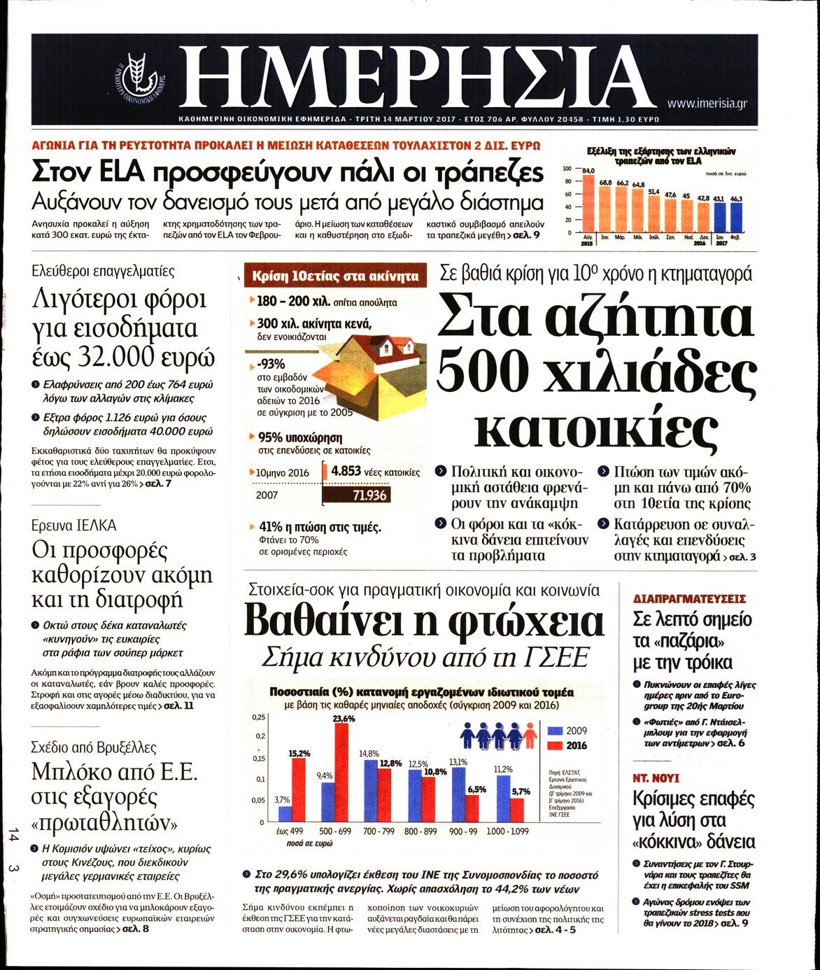 Διαβάστε τα σημερινά πρωτοσέλιδα των οικονομικών εφημερίδων: