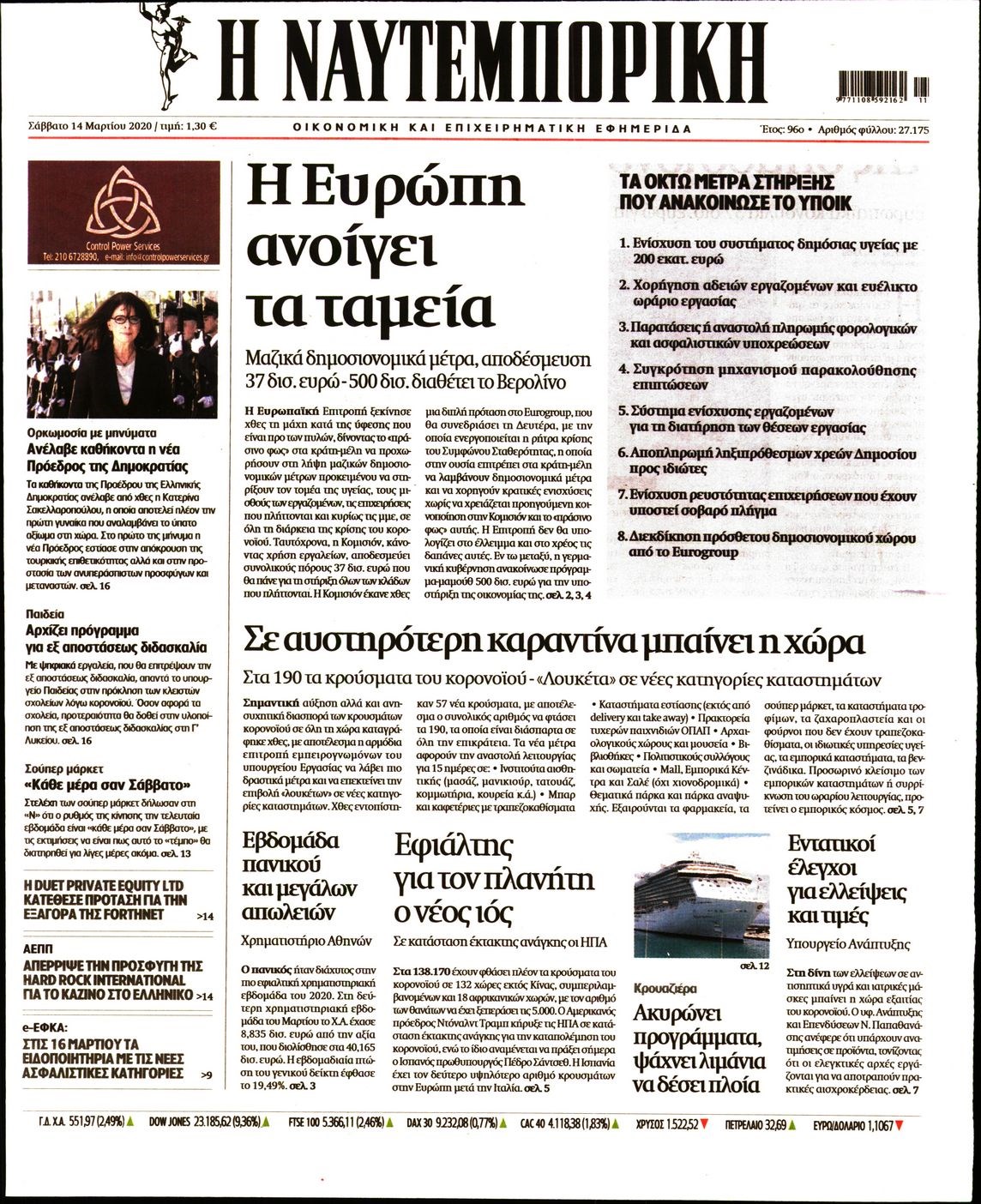 Οι οικονομικές εφημερίδες 14/3/2020 Διονύσης Νίκκας 07:40, Σάββατο 14 Μαρτίου 2020 Media Διαβάστε τα πρωτοσέλιδα των οικονομικών εφημερίδων… ΟΙΚΟΝΟΜΙΚΕΣ ΕΦΗΜΕΡΙΔΕΣ ΠΡΩΤΟΣΕΛΙΔΑ Μοιράσου το: σχολίασε κι εσύ (0 σχόλια) Ακολουθήστε το enikos.gr στο Google News και μάθετε πρώτοι όλες τις ειδήσεις Δείτε όλες τις τελευταίες ειδήσεις από την Ελλάδα και τον Κόσμο στο enikos.gr Ειδήσεις Ροή Ειδήσεων 3 ώρες πριν Υπόθεση Έπσταϊν: Το Υπουργείο Δικαιοσύνης δημοσιοποίησε μια σειρά από εξαιρετικά επεξεργασμένα αρχεία – «Λείπουν τα πιο σημαντικά έγγραφα», λένε οι Δημοκρατικοί 6 λεπτά πριν Γιορτές με μπλόκα για τους αγρότες: Ανοίγουν διόδια και μοιράζουν προϊόντα στους ταξιδιώτες 39 λεπτά πριν Εξαφάνιση 33χρονου γιατρού στην Κρήτη: «Άναψα τα φώτα, τρόμαξε και άρχισε να τρέχει στα χωράφια» – Η τελευταία διαδρομή και η μαρτυρία «κλειδί» 2 ώρες πριν Ο «χάρτης» με τις αυξήσεις και τις φοροελαφρύνσεις του 2026 – Ποιοι και πόσα κερδίζουν 22 λεπτά πριν Τα αρχεία του Έπσταϊν αποκαλύπτουν φωτογραφία του έκπτωτου πρίγκιπα Άντριου – Είναι ξαπλωμένος στην αγκαλιά 5 γυναικών 29 λεπτά πριν Μία νέα «χρυσή» περίοδος αρχίζει για 3 ζώδια από σήμερα – «Μία αναπάντεχη ευκαιρία οδηγεί στην επιτυχία» 5 ώρες πριν Αυγά: Πόσα μπορείτε να τρώτε την ημέρα με ασφάλεια για μέγιστη πρόσληψη πρωτεΐνης 3 ώρες πριν Αρχαιολόγοι ανακάλυψαν σε χωράφι απεικόνιση 600 ετών ενός Αγίου – Τα στοιχεία που δείχνουν ότι μαρτύρησε 2 ώρες πριν Αγχώνεται για το χριστουγεννιάτικο δώρο που πήρε στην πλούσια σύντροφό του – «Φοβάμαι πως θα το βρει φθηνιάρικο, φοράει βραχιόλια Cartier» 6 λεπτά πριν Συνελήφθη οδηγός μηχανής που έτρεχε με 161 χλμ στη Συγγρού – Τον έπιασε το ραντάρ της Τροχαίας 6 λεπτά πριν Γιορτές με μπλόκα για τους αγρότες: Ανοίγουν διόδια και μοιράζουν προϊόντα στους ταξιδιώτες 14 λεπτά πριν Τηλεθέαση (19/12): Κυριάρχησε η σειρά «Το σόι σου» – Τι νούμερα έκανε ο τελικός του GNTM 22 λεπτά πριν Τα αρχεία του Έπσταϊν αποκαλύπτουν φωτογραφία του έκπτωτου πρίγκιπα Άντριου – Είναι ξαπλωμένος στην αγκαλιά 5 γυναικών 29 λεπτά πριν Μία νέα «χρυσή» περίοδος αρχίζει για 3 ζώδια από σήμερα – «Μία αναπάντεχη ευκαιρία οδηγεί στην επιτυχία» ENIKOS NETWORK Είστε μόνιμα απρόσεκτοι; 3 σημάδια που δείχνουν ότι μπορεί να είναι σύμπτωμα πάθησης Πόσα κιλά παίρνουμε πραγματικά τα Χριστούγεννα, σύμφωνα με την επιστήμη – Πώς να το αποτρέψουμε; Επίδομα παιδιού: Τι αλλάζει από το 2026 – Το όφελος από τις φορολογικές ελαφρύνσεις Mega χριστουγεννιάτικη φορολοταρία: «Κλείδωσε» η ημερομηνία για την κλήρωση – Ερωτήσεις και απαντήσεις Χαρτογραφώντας το «σημείο χωρίς επιστροφή»: Για πρώτη φορά αποκαλύπτεται με λεπτομέρεια το ακανθώδες όριο της ατμόσφαιρας τ... Η Google καταργεί τη λειτουργία «dark web report» – Πώς θα μπορούν οι χρήστες να διαγράφουν τα δεδομένα τους περισσότερα 09:30 , Σάββατο 20 Δεκεμβρίου 2025 «Porto Leone: Στη γειτονιά με τα κόκκινα φανάρια» – Ο Χρόνης αποκαλύπτει στην Αλεξάνδρα το μυστικό για το παιδί της Λένας Η μεγάλη δραματική σειρά του Apha «Porto Leone: Στη γειτονιά με τα κόκκινα φανάρια» μας μεταφέ... 08:14 , Σάββατο 20 Δεκεμβρίου 2025 Τρομεροί γονείς: Η Μαρία Καβογιάννη εισβάλλει στο σπίτι της οικογένειας Στεφανίδη Όσα θα δούμε στο νέο διπλό επεισόδιο της σειράς «Τρομεροί γονείς», σήμερα Σάββατο 20 Δεκεμβρίο... 05:48 , Σάββατο 20 Δεκεμβρίου 2025 Οι οικονομικές εφημερίδες 20/12/2025 Διαβάστε τα πρωτοσέλιδα από τις οικονομικές εφημερίδες, σήμερα 20/12/2025. 05:43 , Σάββατο 20 Δεκεμβρίου 2025 
