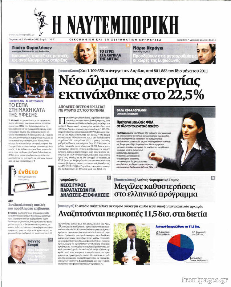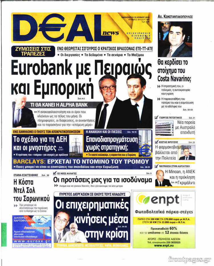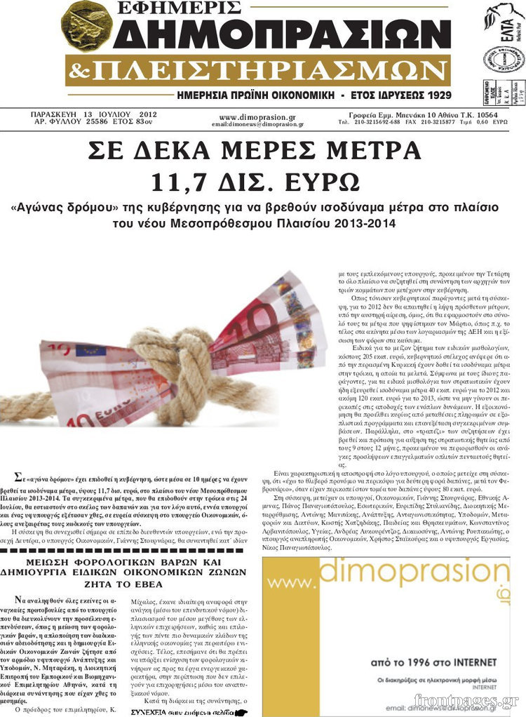 Τα πρωτοσέλιδα των οικονομικών εφημερίδων.