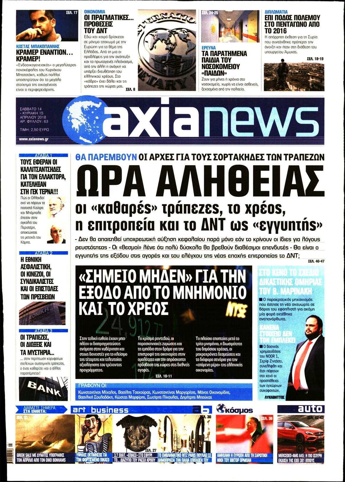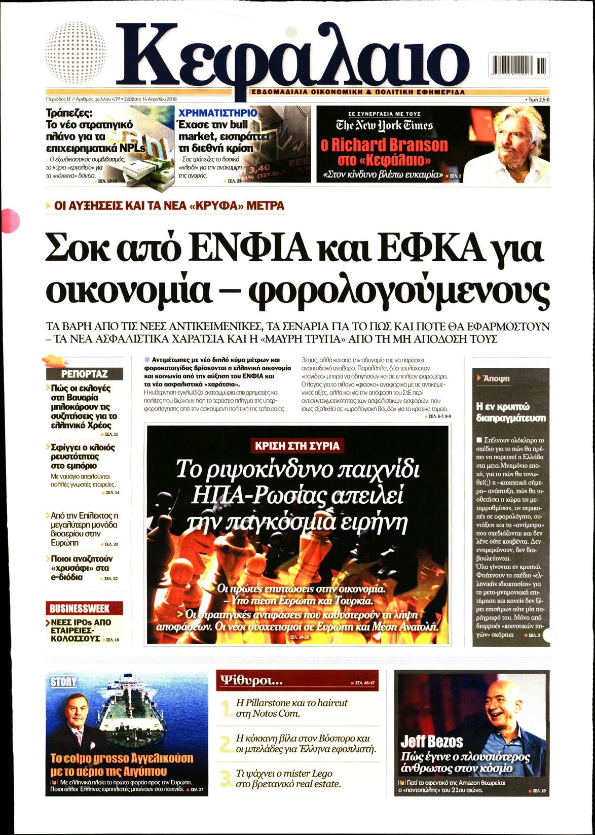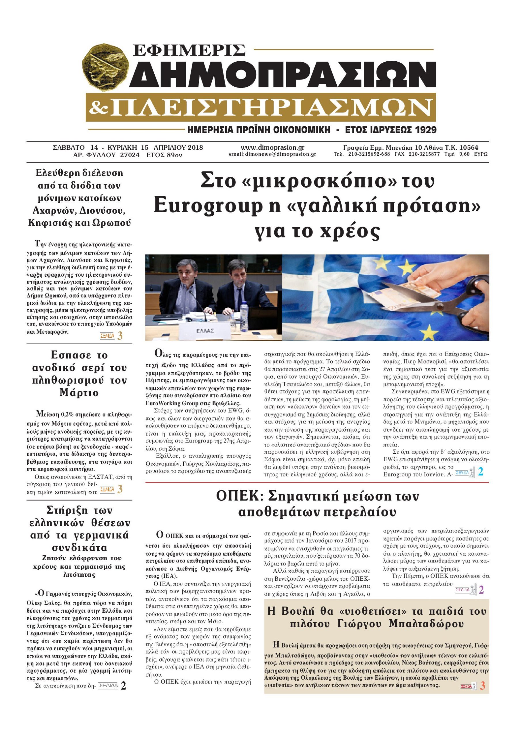 Οι οικονομικές εφημερίδες 14/4/2018 Enikos Newsroom 07:14, Σάββατο 14 Απριλίου 2018 Media Διαβάστε τα σημερινά πρωτοσέλιδα των οικονομικών εφημερίδων: ΟΙΚΟΝΟΜΙΚΕΣ ΕΦΗΜΕΡΙΔΕΣ ΠΡΩΤΟΣΕΛΙΔΑ Μοιράσου το: σχολίασε κι εσύ (0 σχόλια) Ακολουθήστε το enikos.gr στο Google News και μάθετε πρώτοι όλες τις ειδήσεις Δείτε όλες τις τελευταίες ειδήσεις από την Ελλάδα και τον Κόσμο στο enikos.gr Ειδήσεις Ροή Ειδήσεων 1 ώρα πριν Γιορτές με μπλόκα για τους αγρότες: Ανοίγουν διόδια και μοιράζουν προϊόντα στους ταξιδιώτες 2 ώρες πριν Τα αρχεία του Έπσταϊν αποκαλύπτουν φωτογραφία του έκπτωτου πρίγκιπα Άντριου – Είναι ξαπλωμένος στην αγκαλιά 5 γυναικών 42 λεπτά πριν Νέες ταυτότητες: Μεγάλη αναμονή για ραντεβού στην Αττική – Τέλος τα ταξίδια εκτός Ελλάδος από τον Αύγουστο για όσους δεν έχουν αλλάξει 2 ώρες πριν Εξαφάνιση 33χρονου γιατρού στην Κρήτη: «Άναψα τα φώτα, τρόμαξε και άρχισε να τρέχει στα χωράφια» – Η τελευταία διαδρομή και η μαρτυρία «κλειδί» 3 ώρες πριν Ο «χάρτης» με τις αυξήσεις και τις φοροελαφρύνσεις του 2026 – Ποιοι και πόσα κερδίζουν 2 ώρες πριν Μία νέα «χρυσή» περίοδος αρχίζει για 3 ζώδια από σήμερα – «Μία αναπάντεχη ευκαιρία οδηγεί στην επιτυχία» 6 ώρες πριν Αυγά: Πόσα μπορείτε να τρώτε την ημέρα με ασφάλεια για μέγιστη πρόσληψη πρωτεΐνης 4 ώρες πριν Αρχαιολόγοι ανακάλυψαν σε χωράφι απεικόνιση 600 ετών ενός Αγίου – Τα στοιχεία που δείχνουν ότι μαρτύρησε 3 ώρες πριν Αγχώνεται για το χριστουγεννιάτικο δώρο που πήρε στην πλούσια σύντροφό του – «Φοβάμαι πως θα το βρει φθηνιάρικο, φοράει βραχιόλια Cartier» 3 λεπτά πριν Βούλα: Συνελήφθη 24χρονος με 69 κιλά ακατέργαστης κάνναβης – Κυκλοφορούσε με κλεμμένο αυτοκίνητο 11 λεπτά πριν «Η αγάπη δεν χάνεται ποτέ»: Η μικρού μήκους ταινία κινουμένων σχεδίων που θέτει ερωτήματα για τη ζωή και τον θάνατο 19 λεπτά πριν Στέφανος Παπαδόπουλος: Η συνέντευξη μετά τη μήνυση στον Γιώργο Μαζωνάκη – «Δεν θέλω να τα βρούμε εξωδικαστικά» 26 λεπτά πριν Τραγωδία στην άσφαλτο στα Χανιά: Νεκρός 37χρονος οδηγός ΙΧ – Τον βρήκαν ώρες μετά το τροχαίο 34 λεπτά πριν Τα Labubu «μετακομίζουν» στο Χόλιγουντ: Η Sony Pictures ετοιμάζει live-action ταινία με τον σκηνοθέτη του «Wonka» ENIKOS NETWORK Είστε μόνιμα απρόσεκτοι; 3 σημάδια που δείχνουν ότι μπορεί να είναι σύμπτωμα πάθησης Πόσα κιλά παίρνουμε πραγματικά τα Χριστούγεννα, σύμφωνα με την επιστήμη – Πώς να το αποτρέψουμε; e-ΕΦΚΑ και ΔΥΠΑ: Έρχονται νέες πληρωμές έως τις 24 Δεκεμβρίου – Ποιοι πάνε ταμείο Επίδομα παιδιού: Τι αλλάζει από το 2026 – Το όφελος από τις φορολογικές ελαφρύνσεις Χαρτογραφώντας το «σημείο χωρίς επιστροφή»: Για πρώτη φορά αποκαλύπτεται με λεπτομέρεια το ακανθώδες όριο της ατμόσφαιρας τ... Η Google καταργεί τη λειτουργία «dark web report» – Πώς θα μπορούν οι χρήστες να διαγράφουν τα δεδομένα τους περισσότερα 11:41 , Σάββατο 20 Δεκεμβρίου 2025 «Η αγάπη δεν χάνεται ποτέ»: Η μικρού μήκους ταινία κινουμένων σχεδίων που θέτει ερωτήματα για τη ζωή και τον θάνατο Ο θάνατος είναι ένα από τα πιο σκληρά θέματα που καλείται να διαχειριστεί κάποιος στη διάρκεια... 09:30 , Σάββατο 20 Δεκεμβρίου 2025 «Porto Leone: Στη γειτονιά με τα κόκκινα φανάρια» – Ο Χρόνης αποκαλύπτει στην Αλεξάνδρα το μυστικό για το παιδί της Λένας Η μεγάλη δραματική σειρά του Apha «Porto Leone: Στη γειτονιά με τα κόκκινα φανάρια» μας μεταφέ... 08:14 , Σάββατο 20 Δεκεμβρίου 2025 Τρομεροί γονείς: Η Μαρία Καβογιάννη εισβάλλει στο σπίτι της οικογένειας Στεφανίδη Όσα θα δούμε στο νέο διπλό επεισόδιο της σειράς «Τρομ