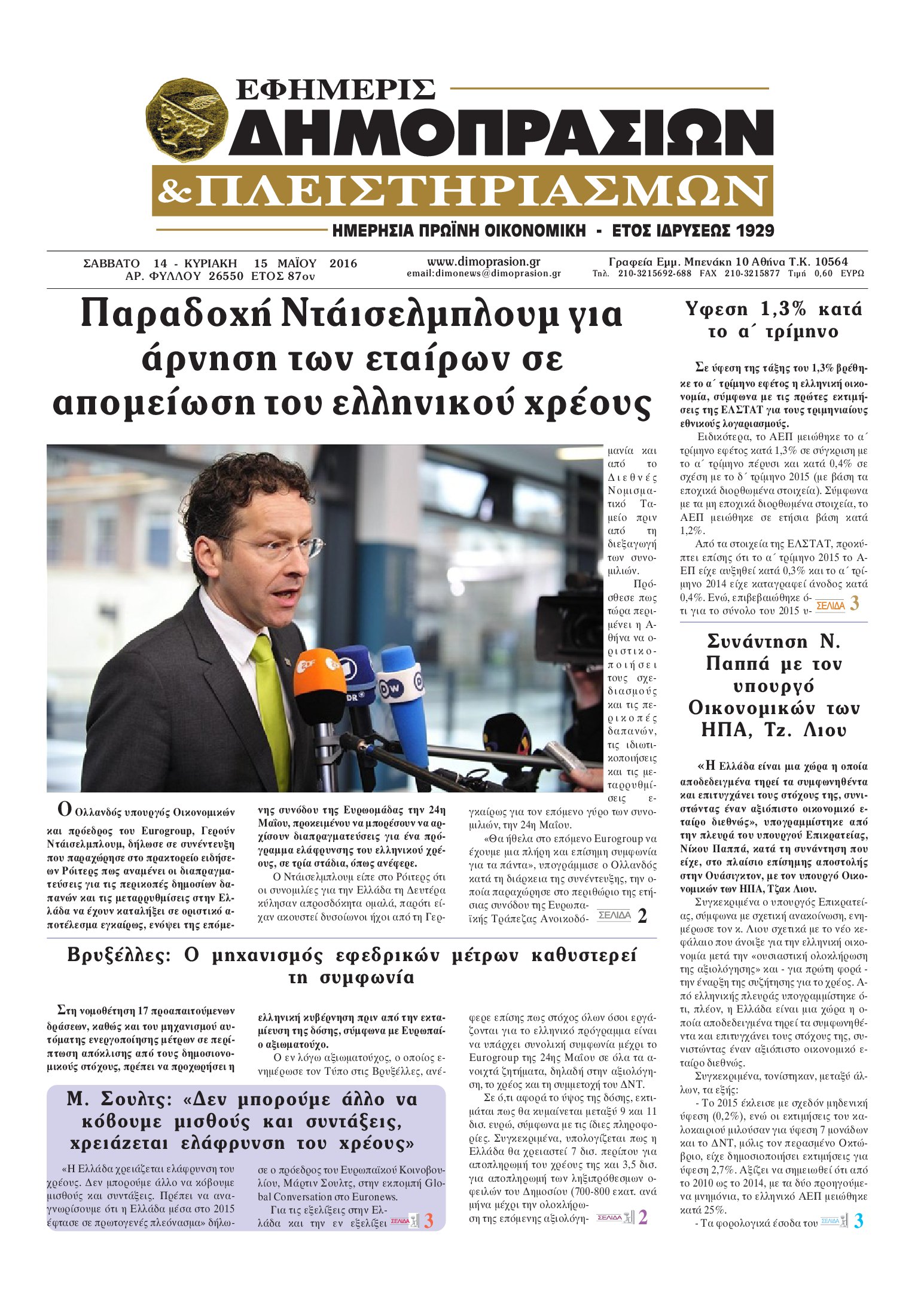 Oι οικονομικές εφημερίδες 14/5/2016 Enikos Newsroom 05:02, Σάββατο 14 Μαΐου 2016 Media Διαβάστε τα σημερινά πρωτοσέλιδα των οικονομικών εφημερίδων: ΟΙΚΟΝΟΜΙΚΕΣ ΕΦΗΜΕΡΙΔΕΣ ΠΡΩΤΟΣΕΛΙΔΑ Μοιράσου το: σχολίασε κι εσύ (0 σχόλια) Ακολουθήστε το enikos.gr στο Google News και μάθετε πρώτοι όλες τις ειδήσεις Δείτε όλες τις τελευταίες ειδήσεις από την Ελλάδα και τον Κόσμο στο enikos.gr Ειδήσεις Ροή Ειδήσεων 4 ώρες πριν Αυξάνουν την πίεση προς την κυβέρνηση οι αγρότες: Κλείνουν παρακαμπτήριους και ανοίγουν διόδια – Τι θα γίνει τις γιορτές 3 ώρες πριν ΟΠΕΚΕΠΕ: Προφυλακιστέος ο φερόμενος αρχηγός και ο λογιστής της εγκληματικής οργάνωσης 4 ώρες πριν Φοινικούντα: Το Σάββατο απολογείται ο 30χρονος γιος γνωστού επιχειρηματία της Πλάκας που παραδόθηκε – Όσα είπε στους αστυνομικούς και ο ρόλος του στο έγκλημα 3 ώρες πριν Μπορεί ο Μαδούρο να αντέξει τον αποκλεισμό του Τραμπ; Τι θα χρειαστεί η Ουάσινγκτον για να τον ανατρέψει 2 ώρες πριν ΑΕΚ – Κραϊόβα 3-2: Επική ανατροπή και πρόκριση στους «16» του Conference League η Ένωση 3 ώρες πριν Αρχαιολόγοι ανακάλυψαν ρωμαϊκά τεχνουργήματα από μια πόλη που δεν υπήρξε ποτέ – Τα τρία εντυπωσιακά κτίρια και ο αμφορέας με τις… σαρδέλες 4 ώρες πριν Ύπνος: Η απλή βραδινή ρουτίνα για να προστατεύσετε τα μαλλιά σας από το κρύο κατά τη διάρκεια του χειμώνα 5 ώρες πριν Manifesting: Πώς να συναντήσετε τον σύντροφο της ζωής σας, ανάλογα με τον μήνα γέννησής σας 2 ημέρες πριν 20 χρόνια τα Χριστούγεννα ξεκινούν στα Public με μεγάλη ποικιλία σε δώρα! 7 λεπτά πριν Πόλεμος στην Ουκρανία: Ρωσικά drones έπληξαν την Οδησσό – Μία νεκρή και ζημιές σε ενεργειακές υποδομές 14 λεπτά πριν ΑΕΚ-Κραϊόβα: Τα highlights της μυθικής ανατροπής της «Ένωσης» 29 λεπτά πριν Μιχάλης Χρυσοχοΐδης από την Κωνσταντινούπολη: Κοινές επιχειρήσεις Ελλάδας – Τουρκίας ενάντια στο οργανωμένο έγκλημα 52 λεπτά πριν Μάρκο Νίκολιτς: «Είμαι περήφανος για τους παίκτες μου, όποιος αντίπαλος και να έρθει θα προετοιμαστούμε» 1 ώρα πριν ΟΗΕ: Την εκλογή του νέου ύπατου αρμοστή για τους Πρόσφυγες Μπαρχάμ Άχμεντ Σαλίχ χαιρέτησε ο Αντόνιο Γκουτέρες ENIKOS NETWORK Σε περίοδο αυξημένης δραστηριότητας η γρίπη στην Ελλάδα-Μέτρα προστασίας από τον ΕΟΔΥ Σκέφτεστε συνέχεια συζητήσεις που έχετε κάνει; Τι σημαίνει αυτό, σύμφωνα με ειδικό Στεγαστικό: Τι λέει η ΠΟΜΙΔΑ για τα νέα μέτρα που ανακοίνωσε ο Κυριάκος Μητσοτάκης Λαγκάρντ: Αισιόδοξη για την ανάπτυξη της Ευρωζώνης, αβέβαιη για τον πληθωρισμό Χαρτογραφώντας το «σημείο χωρίς επιστροφή»: Για πρώτη φορά αποκαλύπτεται με λεπτομέρεια το ακανθώδες όριο της ατμόσφαιρας τ... Η Google καταργεί τη λειτουργία «dark web report» – Πώς θα μπορούν οι χρήστες να διαγράφουν τα δεδομένα τους περισσότερα 17:45 , Πέμπτη 18 Δεκεμβρίου 2025 ROUK ZOUK: Εορταστικό επεισόδιο με καλεσμένους τους πρωταγωνιστές του «Γιατί ρε πατέρα» Το Σάββατο 20 Δεκεμβρίου στις 21:00, η Ζέτα Μακρυπούλια υποδέχεται εκλεκτούς ηθοποιούς που όλο... 17:20 , Πέμπτη 18 Δεκεμβρίου 2025 Άγιος έρωτας: Η Χριστίνα εξομολογείται στον πατέρα Νικόλαο, απόψε στις 21:00 στον Alpha Η Νότα αποφασίζει να εκδικηθεί τον Πέτρο και τον Στέφανο, για χάρη του Λούη, όμως τα πράγματα ... 16:50 , Πέμπτη 18 Δεκεμβρίου 2025 Να μ’ αγαπάς: Ζωή και Φωτεινή συμφιλιώνονται ως μάνα με κόρη, απόψε στις 20:00 Η ταυτότητα του Άγγελου αποκαλύπτεται στο νέο επεισόδιο της σειράς “Να μ’ αγαπάς... 15:52 , Πέμπτη 18 Δεκεμβρίου 2025 Το Σπίτι Δίπλα Στο Ποτάμι: Το καθηλωτικό τελευταίο επεισόδιο για το 2025 απόψε στις 22:30 Καθηλώνει το σημερινό ε