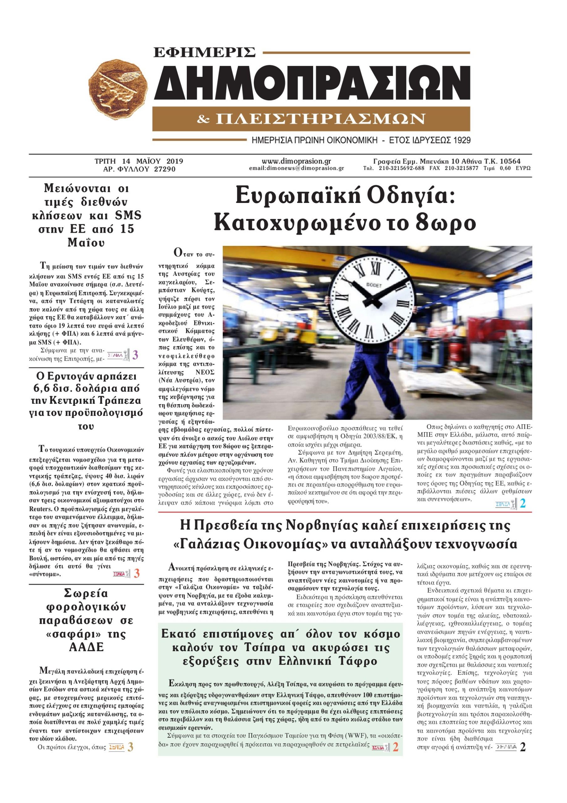 Οι οικονομικές εφημερίδες 14/5/2019 Enikos Newsroom 06:55, Τρίτη 14 Μαΐου 2019 Media Διαβάστε τα πρωτοσέλιδα των οικονομικών εφημερίδων: ΟΙΚΟΝΟΜΙΚΕΣ ΕΦΗΜΕΡΙΔΕΣ ΠΡΩΤΟΣΕΛΙΔΑ Μοιράσου το: σχολίασε κι εσύ (0 σχόλια) Ακολουθήστε το enikos.gr στο Google News και μάθετε πρώτοι όλες τις ειδήσεις Δείτε όλες τις τελευταίες ειδήσεις από την Ελλάδα και τον Κόσμο στο enikos.gr Ειδήσεις Ροή Ειδήσεων 3 ώρες πριν Από το Ορμένιο ως τα Μάλγαρα κι από τη Σιάτιστα μέχρι τη Νίκαια: Μπλόκα σε όλη την Ελλάδα – Το Σάββατο ανοίγουν τα διόδια οι αγρότες 37 λεπτά πριν Εμπλοκή και αερομαχίες με οπλισμένα τουρκικά F-16 στο Αιγαίο 2 ώρες πριν Αττική: Θρίλερ με νεκρό βρέφος 5 μηνών – Κοιμόταν στο ίδιο κρεβάτι με τους γονείς του 27 λεπτά πριν Πούτιν: «Ναι, είμαι ερωτευμένος» – Βίντεο από τη σπάνια προσωπική παραδοχή του 2 ώρες πριν Μεσόγειος: Η διαδρομή του ρωσικού τάνκερ «Qendil» και η στοχευμένη επίθεση της Ουκρανίας με drone – Ο Πούτιν προειδοποίησε για αντίποινα 4 ώρες πριν Τα 5 ζώδια που ευνοούνται στην ερωτική ζωή τους την επόμενη εβδομάδα – «Η ενέργεια του Αιγόκερου φέρνει αγάπη και σταθερότητα» 5 ώρες πριν Αυτό το έξυπνο μαθηματικό κόλπο θα μπορούσε να αλλάξει τον τρόπο με τον οποίο οι επιστήμονες μελετούν τους σεισμούς 1 ώρα πριν Μήπως έχετε χάσει τον εαυτό σας στη σχέση σας; 7 «αθόρυβες» υποχωρήσεις που μάλλον κάνατε, χωρίς να το συνειδητοποιήσετε 3 ώρες πριν Κουίζ για την παλιά Αθήνα: Αναγνωρίζετε την περιοχή; Έχετε περάσει 100% από εκεί 8 λεπτά πριν Γιώργος Τράγκας: Ανατροπή από το Πριγκιπάτο του Μονακό για την υπόθεση της κληρονομιάς – Η ανακοίνωση της δικηγόρου της Μαρίας Καρρά 15 λεπτά πριν Ξεχάστε το καθάρισμα το Σαββατοκύριακο: Ο «κανόνας των 20 λεπτών» που θα σας λύσει τα χέρια 16 λεπτά πριν Αγρότες: Έκλεισαν την υψηλή γέφυρα της Χαλκίδας – ΒΙΝΤΕΟ 20 λεπτά πριν Ρούμπιο: Έχει υπάρξει πρόοδος στις συνομιλίες για την Ουκρανία – Τα τελευταία ζητήματα είναι τα πιο δύσκολα 27 λεπτά πριν Πούτιν: «Ναι, είμαι ερωτευμένος» – Βίντεο από τη σπάνια προσωπική παραδοχή του ENIKOS NETWORK Έχετε πραγματικά μεγάλη καρδιά; 10 χαρακτηριστικά όσων έχουν καλοσύνη «Η σούπερ» γρίπη εξαπλώνεται στην Ευρώπη-Στοιχεία από το ECDC για την αποτελεσματικότητα του εμβολίου Επίδομα παιδιού: Πότε ανοίγει ξανά η πλατφόρμα για τις αιτήσεις Προκήρυξη ΑΣΕΠ για 397 μόνιμες προσλήψεις στο Δημόσιο: Βγήκαν τα προσωρινά αποτελέσματα – Πότε αρχίζει η υποβολή ενστάσεων Χαρτογραφώντας το «σημείο χωρίς επιστροφή»: Για πρώτη φορά αποκαλύπτεται με λεπτομέρεια το ακανθώδες όριο της ατμόσφαιρας τ... Η Google καταργεί τη λειτουργία «dark web report» – Πώς θα μπορούν οι χρήστες να διαγράφουν τα δεδομένα τους περισσότερα 19:31 , Παρασκευή 19 Δεκεμβρίου 2025 GNTM: Απόψε ο μεγάλος τελικός για τους 4 φιναλίστ Έπειτα από μήνες γεμάτους μόδα, δημιουργία και έντονες αναμετρήσεις, το GNTM 2025 κορυφώνεται,... 18:11 , Παρασκευή 19 Δεκεμβρίου 2025 Το σόι σου: Ο Άρης έρχεται στην Ελλάδα για τις γιορτές των Χριστουγέννων – Τι θα δούμε στο αποψινό εορταστικό επεισόδιο Ένα απολαυστικό, εορταστικό επεισόδιο της σειράς “Το σόι σου”, γεμάτο ευτράπελα αλ... 15:15 , Παρασκευή 19 Δεκεμβρίου 2025 Την Κυριακή με τη Realnews: Ό,τι και αν αγοράσεις, σκανάρεις και κερδίζεις! Την Κυριακή με τη Realnews: Ό,τι και αν αγοράσεις, σκανάρεις και κερδίζεις! Με το PADU app, το... 08:00 , Παρασκευή 19 Δεκεμβρίου 2025 Την Κυριακή με τη Realnews: Δωροεπιταγή 10€ Δωροεπιταγή αξίας 10€ για αγορές άνω των 60€ από τα πολυκαταστήματα FactoryOutlet H προσφορά ι... ΤΕΛΕΥΤΑΙ