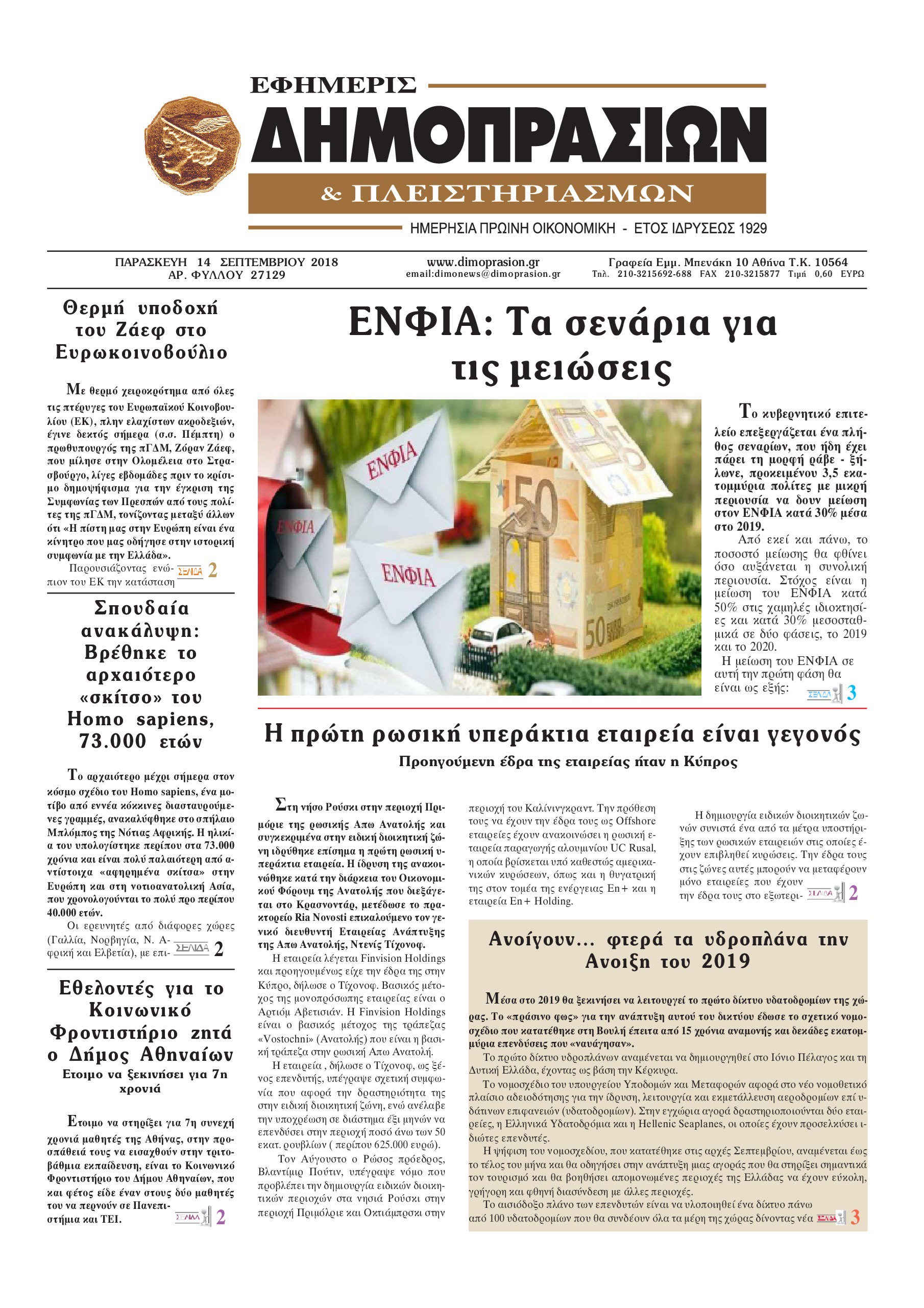 Οι οικονομικές εφημερίδες 14/9/18 Enikos Newsroom 06:24, Παρασκευή 14 Σεπτεμβρίου 2018 Media Διαβάστε τα πρωτοσέλιδα: ΟΙΚΟΝΟΜΙΚΕΣ ΕΦΗΜΕΡΙΔΕΣ ΠΡΩΤΟΣΕΛΙΔΑ Μοιράσου το: σχολίασε κι εσύ (0 σχόλια) Ακολουθήστε το enikos.gr στο Google News και μάθετε πρώτοι όλες τις ειδήσεις Δείτε όλες τις τελευταίες ειδήσεις από την Ελλάδα και τον Κόσμο στο enikos.gr Ειδήσεις Ροή Ειδήσεων 1 ώρα πριν Ευρωπαϊκή Ένωση: Συμφωνία για δάνειο 90 δισ. ευρώ στην Ουκρανία τη διετία 2026-2027 6 ώρες πριν ΟΠΕΚΕΠΕ: Προφυλακιστέος ο φερόμενος αρχηγός και ο λογιστής της εγκληματικής οργάνωσης 7 ώρες πριν Αυξάνουν την πίεση προς την κυβέρνηση οι αγρότες: Κλείνουν παρακαμπτήριους και ανοίγουν διόδια – Τι θα γίνει τις γιορτές 7 ώρες πριν Φοινικούντα: Το Σάββατο απολογείται ο 30χρονος γιος γνωστού επιχειρηματία της Πλάκας που παραδόθηκε – Όσα είπε στους αστυνομικούς και ο ρόλος του στο έγκλημα 5 ώρες πριν ΑΕΚ – Κραϊόβα 3-2: Επική ανατροπή και πρόκριση στους «16» του Conference League η Ένωση 6 ώρες πριν Αρχαιολόγοι ανακάλυψαν ρωμαϊκά τεχνουργήματα από μια πόλη που δεν υπήρξε ποτέ – Τα τρία εντυπωσιακά κτίρια και ο αμφορέας με τις… σαρδέλες 7 ώρες πριν Ύπνος: Η απλή βραδινή ρουτίνα για να προστατεύσετε τα μαλλιά σας από το κρύο κατά τη διάρκεια του χειμώνα 8 ώρες πριν Manifesting: Πώς να συναντήσετε τον σύντροφο της ζωής σας, ανάλογα με τον μήνα γέννησής σας 2 ημέρες πριν 20 χρόνια τα Χριστούγεννα ξεκινούν στα Public με μεγάλη ποικιλία σε δώρα! 33 δευτερόλεπτα πριν Εφημερεύοντα φαρμακεία σε Αθήνα και Θεσσαλονίκη (19/12) 7 λεπτά πριν Η TikTok στις ΗΠΑ πωλείται σε Oracle, Silver Lake και MGX – Οι λεπτομέρειες του «deal» 16 λεπτά πριν Αλεξάντερ Λουκασένκο: Η Λευκορωσία βρίσκεται κοντά στην αποκατάσταση των σχέσεών της με τις ΗΠΑ 31 λεπτά πριν Αυστραλία: Κήρυξε την Κυριακή (21/12) ημέρα εθνικού πένθους για τη φονική επίθεση στην παραλία Μπόνταϊ 41 λεπτά πριν Ρόδος: Δάσκαλος καράτε καταδικάστηκε για ασέλγεια σε ανήλικες αθλήτριες – Μαρτυρίες για αγγίγματα σε ευαίσθητα σημεία ENIKOS NETWORK Σε περίοδο αυξημένης δραστηριότητας η γρίπη στην Ελλάδα-Μέτρα προστασίας από τον ΕΟΔΥ Σκέφτεστε συνέχεια συζητήσεις που έχετε κάνει; Τι σημαίνει αυτό, σύμφωνα με ειδικό Στεγαστικό: Τι λέει η ΠΟΜΙΔΑ για τα νέα μέτρα που ανακοίνωσε ο Κυριάκος Μητσοτάκης Λαγκάρντ: Αισιόδοξη για την ανάπτυξη της Ευρωζώνης, αβέβαιη για τον πληθωρισμό Χαρτογραφώντας το «σημείο χωρίς επιστροφή»: Για πρώτη φορά αποκαλύπτεται με λεπτομέρεια το ακανθώδες όριο της ατμόσφαιρας τ... Η Google καταργεί τη λειτουργία «dark web report» – Πώς θα μπορούν οι χρήστες να διαγράφουν τα δεδομένα τους περισσότερα 02:50 , Παρασκευή 19 Δεκεμβρίου 2025 GNTM: «Κλείδωσαν» οι τέσσερις φιναλίστ – Μεγάλη ανατροπή στις τελευταίες αποχωρήσεις Για προτελευταία φορά εμφανίστηκαν στο πλατό του GNTM οι φιναλίστ του φετινού κύκλου, το βράδυ... 17:45 , Πέμπτη 18 Δεκεμβρίου 2025 ROUK ZOUK: Εορταστικό επεισόδιο με καλεσμένους τους πρωταγωνιστές του «Γιατί ρε πατέρα» Το Σάββατο 20 Δεκεμβρίου στις 21:00, η Ζέτα Μακρυπούλια υποδέχεται εκλεκτούς ηθοποιούς που όλο... 17:20 , Πέμπτη 18 Δεκεμβρίου 2025 Άγιος έρωτας: Η Χριστίνα εξομολογείται στον πατέρα Νικόλαο, απόψε στις 21:00 στον Alpha Η Νότα αποφασίζει να εκδικηθεί τον Πέτρο και τον Στέφανο, για χάρη του Λούη, όμως τα πράγματα ... 16:50 , Πέμπτη 18 Δεκεμβρίου 2025 Να μ’ αγαπάς: Ζωή και Φωτεινή συμφιλιώνονται ως μάνα με κόρη, απόψε στις 20:00 Η ταυτότητα του Άγγελου αποκαλύπτεται στο νέο επεισόδιο της σειράς “Να μ’ αγαπάς... ΤΕΛΕΥΤΑΙΕΣ ΕΙΔΗΣΕΙΣ 7 λε
