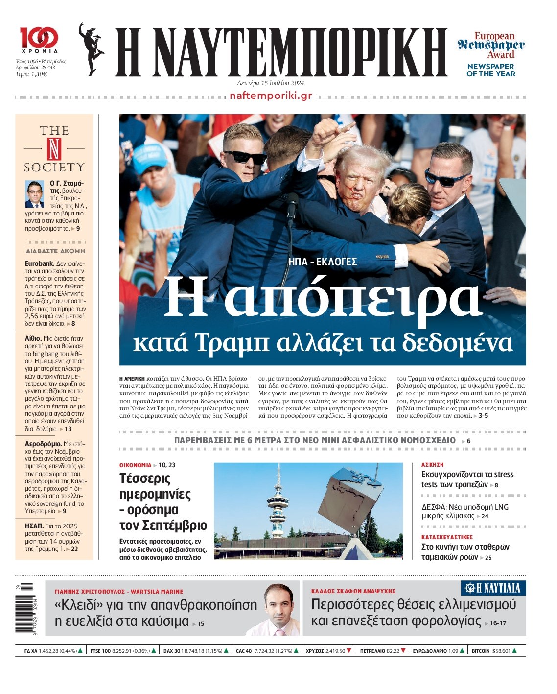 Διαβάστε τα πρωτοσέλιδα από τις οικονομικές εφημερίδες, σήμερα 15/7/2024.