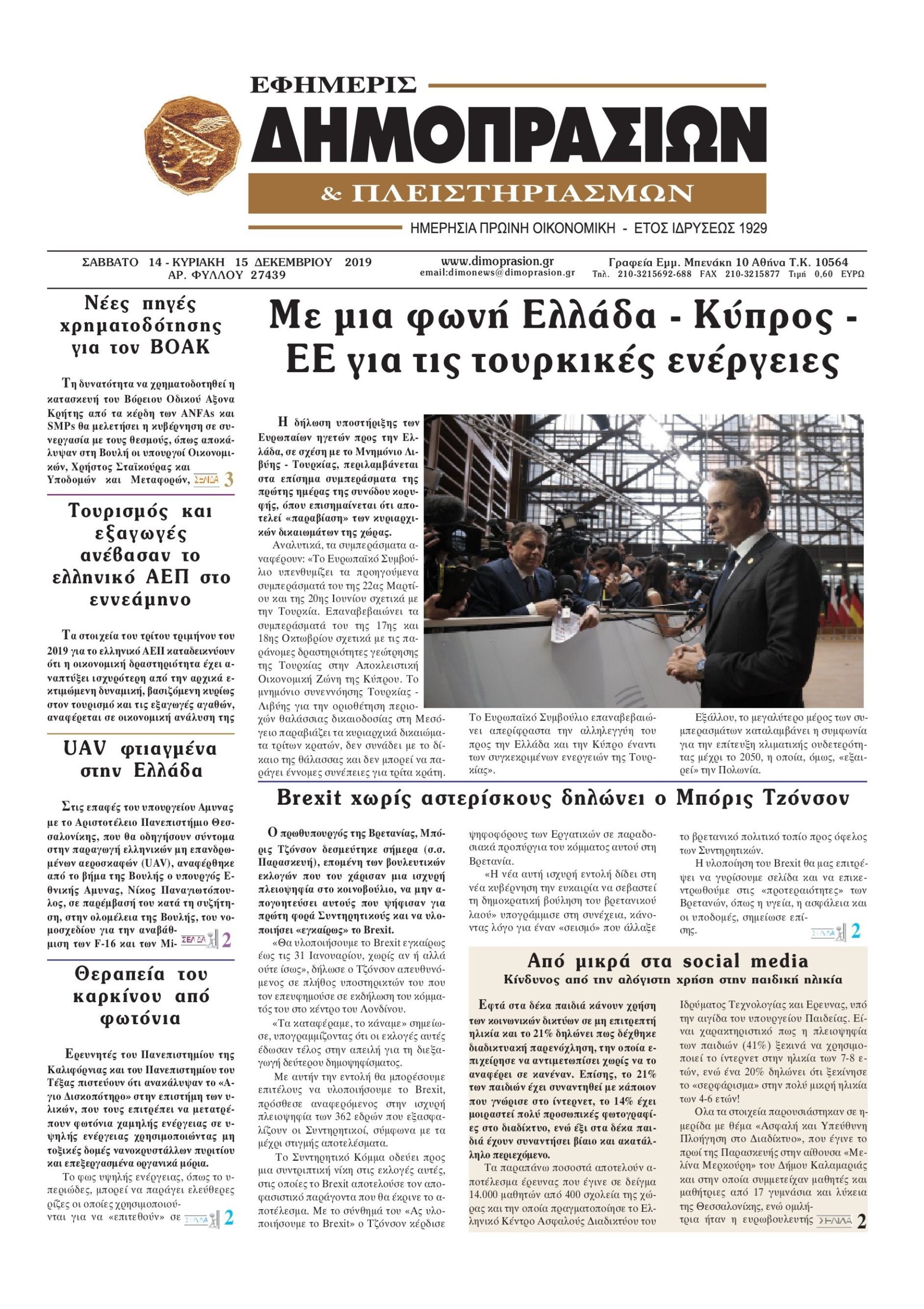 Οι οικονομικές εφημερίδες 15/12/19 Διονύσης Νίκκας 07:30, Κυριακή 15 Δεκεμβρίου 2019 Media Διαβάστε τα πρωτοσέλιδα των οικονομικών εφημερίδων… ΕΦΗΜΕΡΙΔΕΣ ΟΙΚΟΝΟΜΙΚΕΣ ΠΡΩΤΟΣΕΛΙΔΑ Μοιράσου το: σχολίασε κι εσύ (0 σχόλια) Ακολουθήστε το enikos.gr στο Google News και μάθετε πρώτοι όλες τις ειδήσεις Δείτε όλες τις τελευταίες ειδήσεις από την Ελλάδα και τον Κόσμο στο enikos.gr Ειδήσεις Ροή Ειδήσεων 53 λεπτά πριν ΣΥΡΙΖΑ: Διαγράφεται ο ευρωβουλευτής Νίκος Παππάς μετά την μήνυση δημοσιογράφου για ξυλοδαρμό 2 ώρες πριν Πώς στήθηκε η επιχείρηση «Ίπαλλος» που οδήγησε στη σύλληψη του «Έλληνα Εσκομπάρ» – «Ο πόλεμος ενάντια στους εμπόρους ναρκωτικών θα συνεχιστεί» 2 ώρες πριν Δίκη Χρυσής Αυγής: Την ενοχή και των 42 κατηγορουμένων ζητά η εισαγγελέας 2 ώρες πριν Κυψέλη: Στη φυλακή η 16χρονη που μαχαίρωσε συμμαθήτριά της 5 ώρες πριν Αμοργός: «Θα προσπαθήσω να το κάνω κάθε μέρα» – Ποιος είναι ο αγρότης που έστησε μόνος του το πρώτο μπλόκο στο νησί 2 ώρες πριν Τα 3 ζώδια που θα δουν τη ζωή τους να αλλάζει ριζικά το 2026 – «Όλα γίνονται καλύτερα σταδιακά» 7 ώρες πριν «Δεν είχα κλάψει από τότε που διαγνώστηκα με καρκίνο, ώσπου ένα τηλεφώνημα με έκανε να λυγίσω» – Η συγκλονιστική εξομολόγηση ενός άνδρα 3 ώρες πριν Ο σπάνιος σεισμός που έλυσε τα χέρια των επιστημόνων – Αποκάλυψε ακριβώς όσα αναζητούσαν 9 ώρες πριν 20 χρόνια τα Χριστούγεννα ξεκινούν στα Public με μεγάλη ποικιλία σε δώρα! 2 λεπτά πριν Καβάλα: Βίντεο ντοκουμέντο από διάρρηξη σε καφετέρια – Έσπασαν την τζαμαρία, άρπαξαν το συρτάρι του ταμείου και έγιναν καπνός 7 λεπτά πριν ΑΣΕΠ: Οι προσωρινοί πίνακες για 4.276 θέσεις επιτυχόντων του πρώτου γραπτού διαγωνισμού – Η διαδικασία για τις ενστάσεις 12 λεπτά πριν Αίγινα: Βλάβη στον υποθαλάσσιο αγωγό του νησιού – «Προσωρινά από τις γεωτρήσεις του Δήμου η κάλυψη των αναγκών ύδρευσης» 19 λεπτά πριν Βασιλιάς Κάρολος: Η κίνηση απομόνωσης προς τον αδελφό του Άντριου, στο γεύμα των Χριστουγέννων 24 λεπτά πριν Παύλος Μαρινάκης για Νίκο Παππά: Έπρεπε να χειροδικήσει για να αναγκαστεί ο ΣΥΡΙΖΑ να τον διαγράψει ENIKOS NETWORK Γιατί αναζητούμε τα Χριστούγεννα όλο και νωρίτερα; Ποιοι οι ψυχολογικοί και οι συναισθηματικοί λόγοι Σοβαροί κίνδυνοι από τη λάθος χορήγηση φαρμάκου για τις αιμορραγίες-Συστάσεις προς τους γιατρούς «Αναταράξεις» στην εφοδιαστική αλυσίδα από τα μπλόκα: Επιστολή του Συνδέσμου Θεσσαλικών Βιομηχανιών στον πρωθυπουργό -Τι αν... Δάνεια σε ελβετικό φράγκο: Αύριο η κατάθεση της τροπολογίας στη Βουλή – Όλες οι λεπτομέρειες Χαρτογραφώντας το «σημείο χωρίς επιστροφή»: Για πρώτη φορά αποκαλύπτεται με λεπτομέρεια το ακανθώδες όριο της ατμόσφαιρας τ... Η Google καταργεί τη λειτουργία «dark web report» – Πώς θα μπορούν οι χρήστες να διαγράφουν τα δεδομένα τους περισσότερα 12:35 , Τετάρτη 17 Δεκεμβρίου 2025 Μίρκα Παπακωνσταντίνου: «Δεν ήμουν αισιόδοξη για τα νούμερα – Είμαι ρεαλίστρια» Στα γυρίσματα του εορταστικού επεισοδίου της αγαπημένης σειράς “Το Σόι Σου”, βρέθηκε η κάμερα ... 12:12 , Τετάρτη 17 Δεκεμβρίου 2025 Ακούστε την εκπομπή του Νίκου Χατζηνικολάου 17/12/2025 Ακούστε την εκπομπή του Νίκου Χατζηνικολάου στον ραδιοφωνικό σταθμό RealFm 97,8, την Τετάρτη 1... 11:35 , Τετάρτη 17 Δεκεμβρίου 2025 Home Alone: Το σπίτι της ταινίας θα ανακαινιστεί – Επιστροφή στην αισθητική της δεκαετίας του ’90 Οι νέοι ιδιοκτήτες του πραγματικού σπιτιού που παρουσιάζεται στην κλασική ταινία του 1990 «Hom... 11:25 , Τετάρτη 17 Δεκεμβρίου 2025 Grand Hotel: Απόψε το τελ