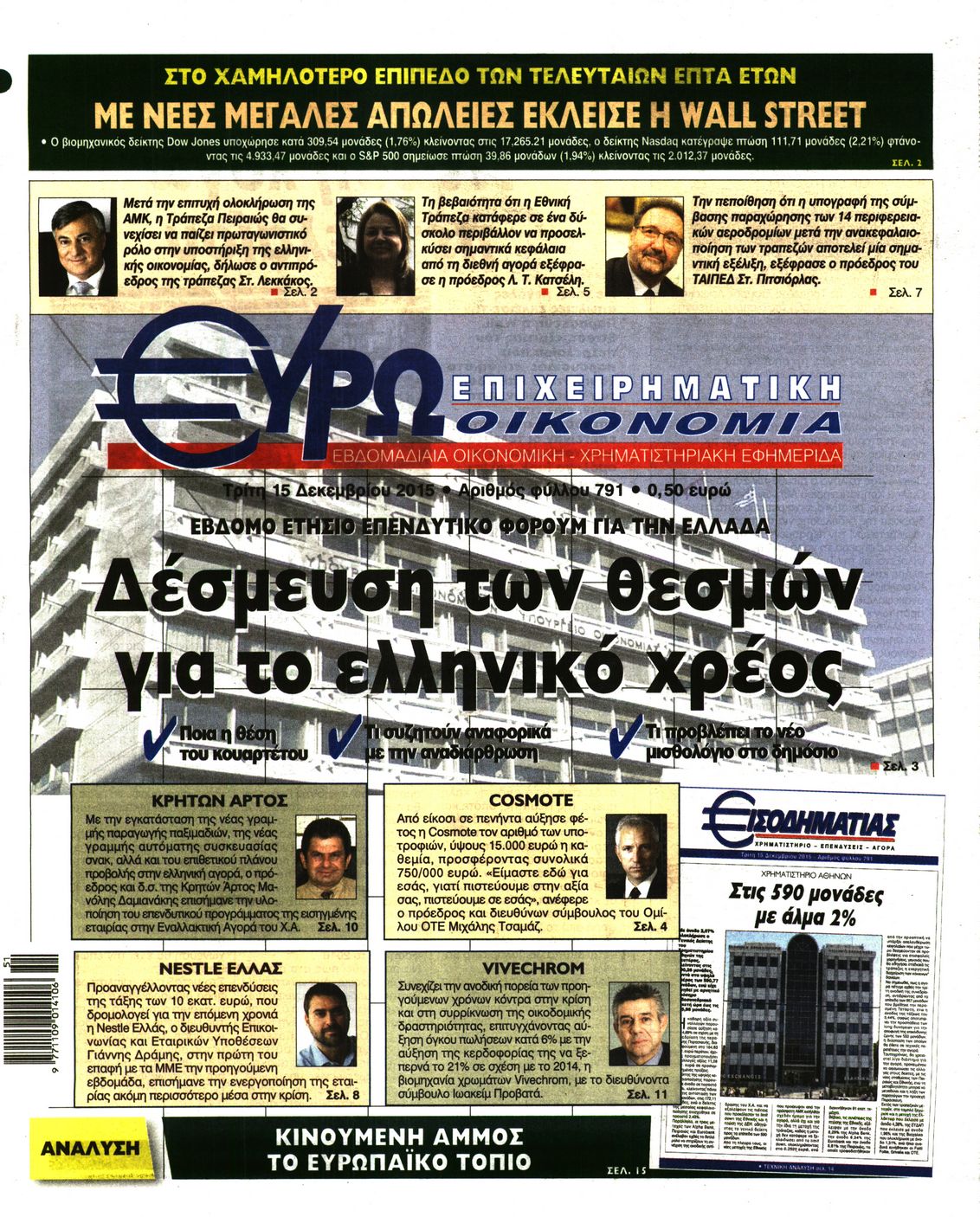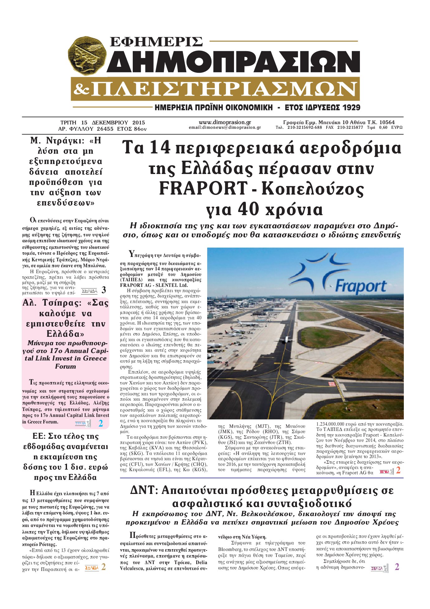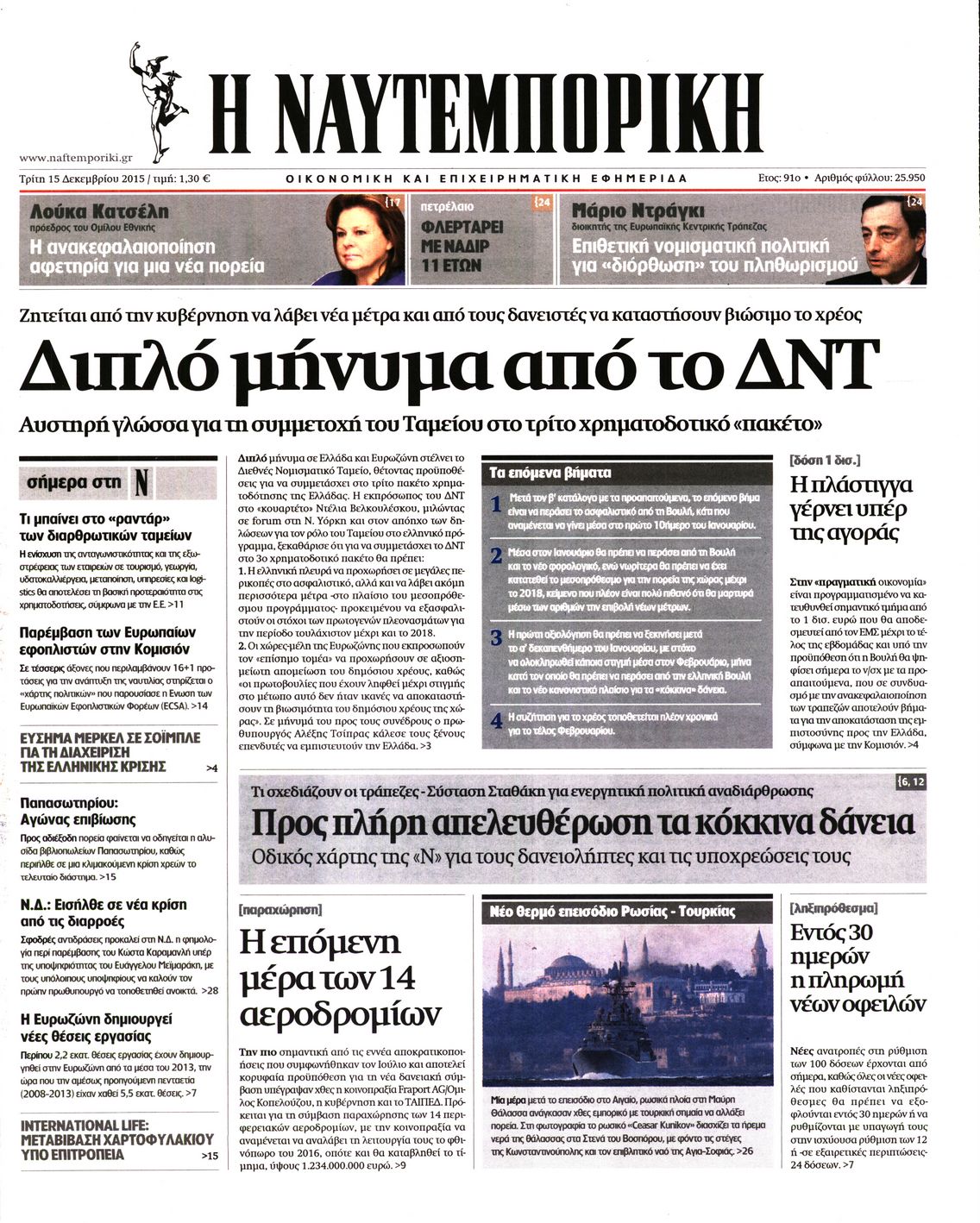 Οι οικονομικές εφημερίδες 15/12/2015 Enikos Newsroom 06:32, Τρίτη 15 Δεκεμβρίου 2015 Media Διαβάστε τα σημερινά πρωτοσέλιδα των οικονομικών εφημερίδων. ΕΦΗΜΕΡΙΔΕΣ ΟΙΚΟΝΟΜΙΚΕΣ ΕΦΗΜΕΡΙΔΕΣ Μοιράσου το: σχολίασε κι εσύ (0 σχόλια) Ακολουθήστε το enikos.gr στο Google News και μάθετε πρώτοι όλες τις ειδήσεις Δείτε όλες τις τελευταίες ειδήσεις από την Ελλάδα και τον Κόσμο στο enikos.gr Ειδήσεις Ροή Ειδήσεων 45 λεπτά πριν Ευρωπαϊκή Ένωση: Χωρίς συμφωνία, για την μακροπρόθεσμη χρηματοδότηση της Ουκρανίας, ολοκληρώθηκε η Σύνοδος Κορυφής στις Βρυξέλλες 4 ώρες πριν ΟΠΕΚΕΠΕ: Προφυλακιστέος ο φερόμενος αρχηγός και ο λογιστής της εγκληματικής οργάνωσης 5 ώρες πριν Αυξάνουν την πίεση προς την κυβέρνηση οι αγρότες: Κλείνουν παρακαμπτήριους και ανοίγουν διόδια – Τι θα γίνει τις γιορτές 5 ώρες πριν Φοινικούντα: Το Σάββατο απολογείται ο 30χρονος γιος γνωστού επιχειρηματία της Πλάκας που παραδόθηκε – Όσα είπε στους αστυνομικούς και ο ρόλος του στο έγκλημα 4 ώρες πριν ΑΕΚ – Κραϊόβα 3-2: Επική ανατροπή και πρόκριση στους «16» του Conference League η Ένωση 5 ώρες πριν Αρχαιολόγοι ανακάλυψαν ρωμαϊκά τεχνουργήματα από μια πόλη που δεν υπήρξε ποτέ – Τα τρία εντυπωσιακά κτίρια και ο αμφορέας με τις… σαρδέλες 6 ώρες πριν Ύπνος: Η απλή βραδινή ρουτίνα για να προστατεύσετε τα μαλλιά σας από το κρύο κατά τη διάρκεια του χειμώνα 7 ώρες πριν Manifesting: Πώς να συναντήσετε τον σύντροφο της ζωής σας, ανάλογα με τον μήνα γέννησής σας 2 ημέρες πριν 20 χρόνια τα Χριστούγεννα ξεκινούν στα Public με μεγάλη ποικιλία σε δώρα! 1 λεπτό πριν Στη Φλόριντα σήμερα οι διαβουλεύσεις σχετικά με τα επόμενα στάδια για τη Λωρίδα της Γάζας 6 λεπτά πριν Σίσσυ Τουμάση: «Είμαι ασθενοφοβική πάρα πολύ και με πιάνει μια παράνοια μ’ αυτό» 30 λεπτά πριν Ντόναλντ Τραμπ: Δεν χρειάζομαι την έγκριση του Κογκρέσου για να διατάξω στρατιωτικά πλήγματα στη Βενεζουέλα 45 λεπτά πριν Ευρωπαϊκή Ένωση: Χωρίς συμφωνία, για την μακροπρόθεσμη χρηματοδότηση της Ουκρανίας, ολοκληρώθηκε η Σύνοδος Κορυφής στις Βρυξέλλες 1 ώρα πριν GNTM: «Κλείδωσαν» οι τέσσερις φιναλίστ – Μεγάλη ανατροπή στις τελευταίες αποχωρήσεις ENIKOS NETWORK Σε περίοδο αυξημένης δραστηριότητας η γρίπη στην Ελλάδα-Μέτρα προστασίας από τον ΕΟΔΥ Σκέφτεστε συνέχεια συζητήσεις που έχετε κάνει; Τι σημαίνει αυτό, σύμφωνα με ειδικό Στεγαστικό: Τι λέει η ΠΟΜΙΔΑ για τα νέα μέτρα που ανακοίνωσε ο Κυριάκος Μητσοτάκης Λαγκάρντ: Αισιόδοξη για την ανάπτυξη της Ευρωζώνης, αβέβαιη για τον πληθωρισμό Χαρτογραφώντας το «σημείο χωρίς επιστροφή»: Για πρώτη φορά αποκαλύπτεται με λεπτομέρεια το ακανθώδες όριο της ατμόσφαιρας τ... Η Google καταργεί τη λειτουργία «dark web report» – Πώς θα μπορούν οι χρήστες να διαγράφουν τα δεδομένα τους περισσότερα 02:50 , Παρασκευή 19 Δεκεμβρίου 2025 GNTM: «Κλείδωσαν» οι τέσσερις φιναλίστ – Μεγάλη ανατροπή στις τελευταίες αποχωρήσεις Για προτελευταία φορά εμφανίστηκαν στο πλατό του GNTM οι φιναλίστ του φετινού κύκλου, το βράδυ... 17:45 , Πέμπτη 18 Δεκεμβρίου 2025 ROUK ZOUK: Εορταστικό επεισόδιο με καλεσμένους τους πρωταγωνιστές του «Γιατί ρε πατέρα» Το Σάββατο 20 Δεκεμβρίου στις 21:00, η Ζέτα Μακρυπούλια υποδέχεται εκλεκτούς ηθοποιούς που όλο... 17:20 , Πέμπτη 18 Δεκεμβρίου 2025 Άγιος έρωτας: Η Χριστίνα εξομολογείται στον πατέρα Νικόλαο, απόψε στις 21:00 στον Alpha Η Νότα αποφασίζει να εκδικηθεί τον Πέτρο και τον Στέφανο, για χάρη του Λούη, όμως τα πράγματα ... 16:50 , Πέμπτη 18 Δεκεμβρίου 2025 Να μ’ αγαπάς: Ζωή και Φωτεινή συμφιλιώνονται ως μ