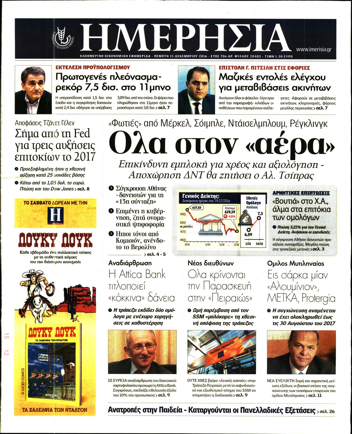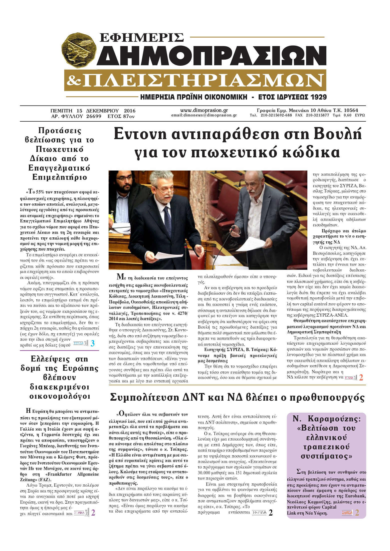 Οι οικονομικές εφημερίδες 15/12/2016 Enikos Newsroom 02:13, Πέμπτη 15 Δεκεμβρίου 2016 Media Διαβάστε τα σημερινά πρωτοσέλιδα των οικονομικών εφημερίδων: ΟΙΚΟΝΟΜΙΚΕΣ ΕΦΗΜΕΡΙΔΕΣ ΠΡΩΤΟΣΕΛΙΔΑ Μοιράσου το: σχολίασε κι εσύ (0 σχόλια) Ακολουθήστε το enikos.gr στο Google News και μάθετε πρώτοι όλες τις ειδήσεις Δείτε όλες τις τελευταίες ειδήσεις από την Ελλάδα και τον Κόσμο στο enikos.gr Ειδήσεις Ροή Ειδήσεων 1 ώρα πριν Ρομπ και Μισέλ Ράινερ: Φωτογραφίες από τη στιγμή που οι αρχές συλλαμβάνουν τον γιο τους – Ο «μεγάλος καβγάς» πριν από την τραγωδία 51 λεπτά πριν Προϋπολογισμός 2026: Σήμερα η ομιλία Μητσοτάκη στη Βουλή – Μέτρα για νέους, μεσαία τάξη και στεγαστικό 2 ώρες πριν Χριστούγεννα: Τι περιμένουν οι έμποροι για να «ζεσταθεί» η αγορά 2 ώρες πριν Κρίσιμη ημέρα για τους αγρότες: Σήμερα θα δώσουν την απάντησή τους στην κυβέρνηση μετά το νέο κάλεσμα για διάλογο 2 ώρες πριν Οι Τούρκοι θέλουν να παρακολουθούν την Αθήνα από την Σμύρνη με Drones – Δείτε βίντεο 3 ώρες πριν Οπτική ψευδαίσθηση: Μόνο 1 στους 10 ανθρώπους θα βρει το κόκκινο αυγό σε 7 δευτερόλεπτα 3 ώρες πριν Υψηλή χοληστερίνη: Γιατρός αποκαλύπτει δύο τρόπους για να την μειώσετε χωρίς φαρμακευτική αγωγή 4 ώρες πριν Τα ζώδια σήμερα, Τρίτη 16 Δεκεμβρίου: Ιχθύες, δεν χρειάζεται να έχετε όλες τις απαντήσεις 1 ώρα πριν Ανακαλύφθηκε περίτεχνη μαρμάρινη μπανιέρα που επαναχρησιμοποιήθηκε ως κρήνη 5 λεπτά πριν «Το θαύμα των Χριστουγέννων»: Σκύλος που εξαφανίστηκε το 2021 βρέθηκε σε καταφύγιο ζώων σε απόσταση 3.200 χιλιομέτρων – ΒΙΝΤΕΟ 10 λεπτά πριν Ευγενία Σαμαρά – Οδυσσέας Παπασπηλιόπουλος: Τίτλοι τέλους 16 λεπτά πριν Η πεθερά της την κατηγορεί πως δεν την ταΐζει σωστά – «Δεν παραπονιέται όμως στον γιο της» 19 λεπτά πριν Δολοφονία στο Νέο Ψυχικό: «Δεν είχαμε κόντρα με τον τοπογράφο» λέει ο μεσίτης της Μυκόνου 25 λεπτά πριν Σίδνεϊ: Βίντεο με ηλικιωμένο ζευγάρι που όρμησε για να σταματήσει τον έναν δράστη – Συγκλονιστικές μαρτυρίες για τους «ήρωες μέχρι τέλους» ENIKOS NETWORK Η Νο1 άσκηση για σμιλεμένους γλουτούς – Την κάνετε στο σπίτι και διαρκεί 1 λεπτό 54χρονη που νόμιζε ότι είχε ιγμορίτιδα έλαβε διάγνωση για σπάνιο καρκίνο – Η συγκλονιστική μαρτυρία της Φορολογικές δηλώσεις 2026: Στις 16 Μαρτίου αρχίζει η υποβολή – Νέες κατηγορίες στις προσυμπληρωμένες Χριστούγεννα: Τι περιμένουν οι έμποροι για να «ζεσταθεί» η αγορά Σύγχρονος Νοστράδαμος: Προειδοποιεί για «μεγάλο γεγονός» τους επόμενους μήνες που θα συγκλονίσει τη Βρετανία και τον κόσμο Τεστ παρατηρητικότητας: Μπορείτε να βρείτε τις 3 διαφορές στις εικόνες με έναν πιγκουίνο σε 14 δευτερόλεπτα περισσότερα 08:00 , Τρίτη 16 Δεκεμβρίου 2025 Την Κυριακή με τη Realnews: Δωροεπιταγή 10€ Δωροεπιταγή αξίας 10€ για αγορές άνω των 60€ από τα πολυκαταστήματα FactoryOutlet H προσφορά ι... 05:48 , Τρίτη 16 Δεκεμβρίου 2025 Οι οικονομικές εφημερίδες 16/12/2025 Διαβάστε τα πρωτοσέλιδα από τις οικονομικές εφημερίδες, σήμερα 16/12/2025. 05:43 , Τρίτη 16 Δεκεμβρίου 2025 Οι αθλητικές εφημερίδες 16/12/2025 Διαβάστε τα πρωτοσέλιδα από τις αθλητικές εφημερίδες, σήμερα 16/12/2025. 05:38 , Τρίτη 16 Δεκεμβρίου 2025 Οι πολιτικές εφημερίδες 16/12/2025 Διαβάστε τα πρωτοσέλιδα από τις πολιτικές εφημερίδες, σήμερα 16/12/2025. ΤΕΛΕΥΤΑΙΕΣ ΕΙΔΗΣΕΙΣ 5 λεπτά πριν «Το θαύμα των Χριστουγέννων»: Σκύλος που εξαφανίστηκε... 10 λεπτά πριν Ευγενία Σαμαρά – Οδυσσέας Παπασπηλιόπουλος: Τίτλοι... 16 λεπτά πριν Η πεθερά της την κατηγορεί πως δεν την ταΐζει σωστά... 19 λεπτά πριν Δολοφονία στο Νέο Ψυχικό: «Δεν είχ