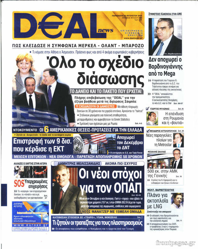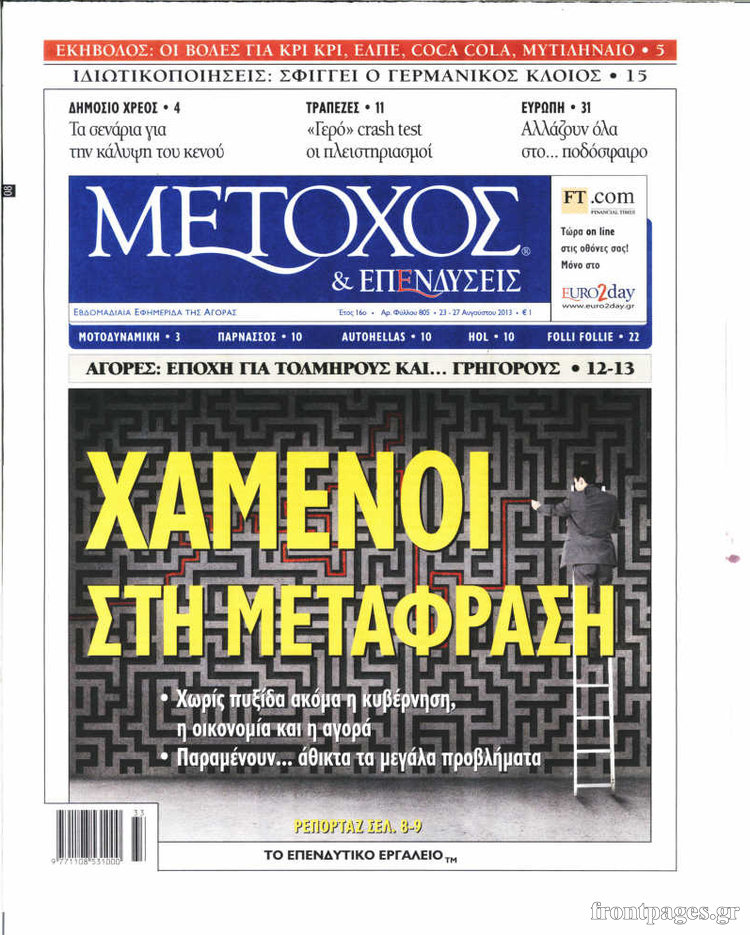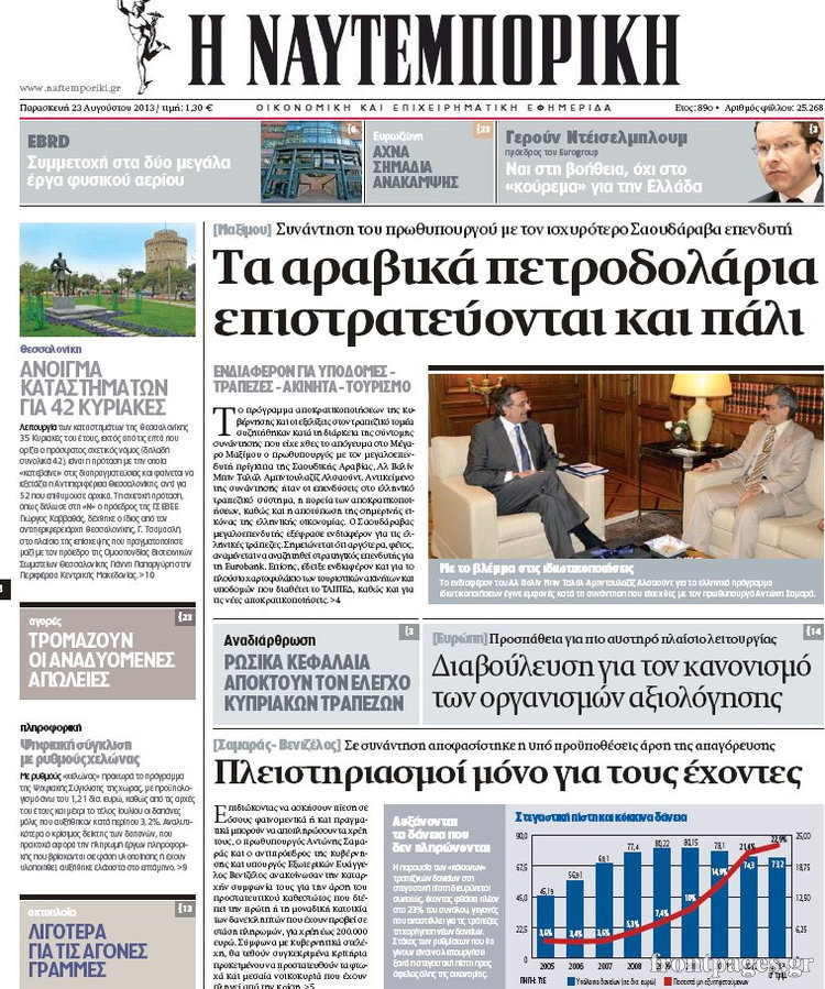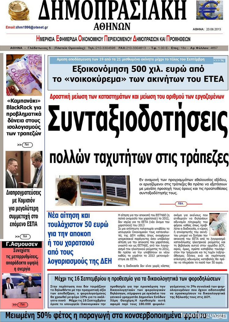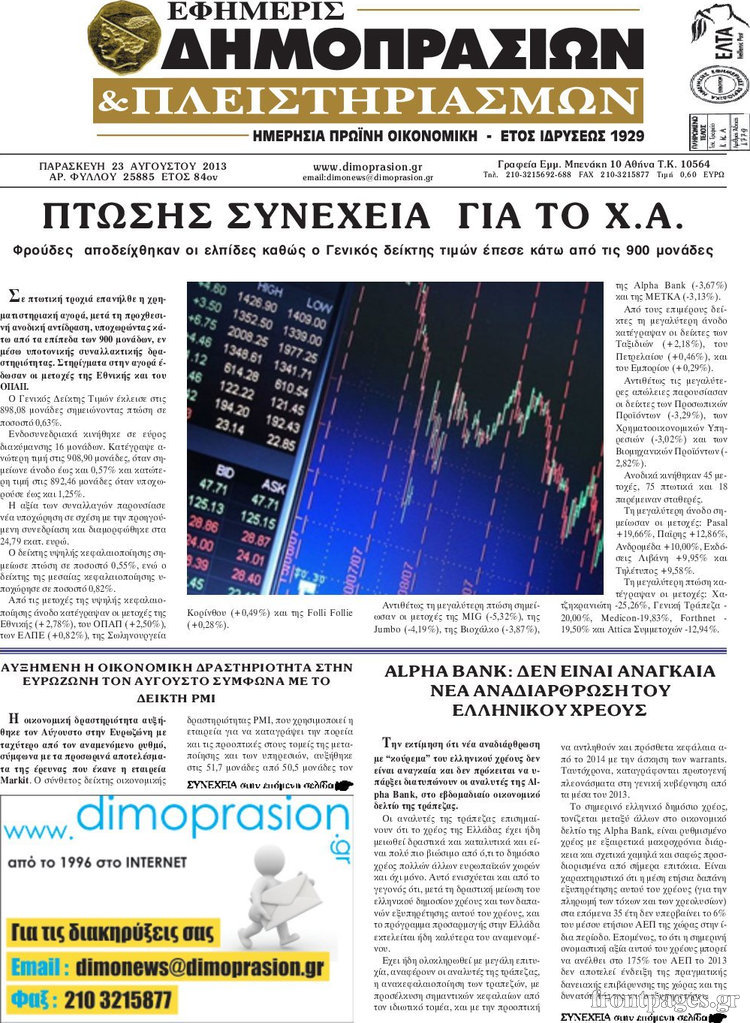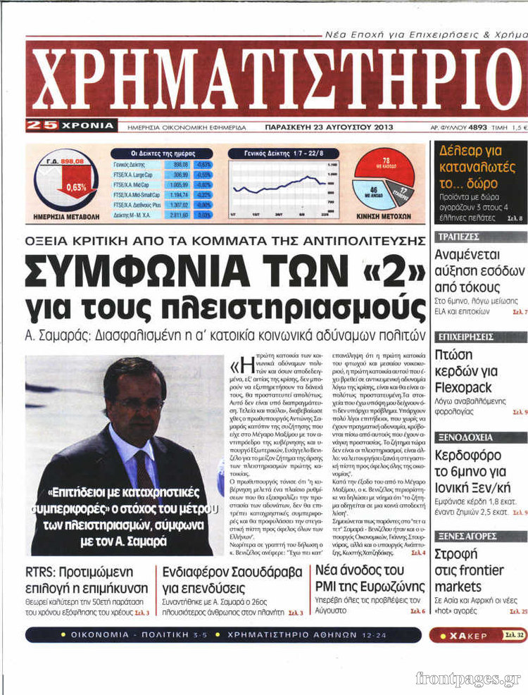 Οι oικονομικές εφημερίδες Enikos Newsroom 09:30, Παρασκευή 23 Αυγούστου 2013 Media Οι oικονομικές εφημερίδες Διαβάστε τα πρωτοσέλιδα των οικονομικών εφημερίδων: ΕΦΗΜΕΡΙΔΕΣ ΠΡΩΤΟΣΕΛΙΔΑ Μοιράσου το: σχολίασε κι εσύ (0 σχόλια) Ακολουθήστε το enikos.gr στο Google News και μάθετε πρώτοι όλες τις ειδήσεις Δείτε όλες τις τελευταίες ειδήσεις από την Ελλάδα και τον Κόσμο στο enikos.gr Ειδήσεις Ροή Ειδήσεων 9 λεπτά πριν ΣΥΡΙΖΑ: Διέγραψε τον ευρωβουλευτή Νίκο Παππά μετά την μήνυση δημοσιογράφου για ξυλοδαρμό 1 ώρα πριν Πώς στήθηκε η επιχείρηση «Ίπαλλος» που οδήγησε στη σύλληψη του «Έλληνα Εσκομπάρ» – «Ο πόλεμος ενάντια στους εμπόρους ναρκωτικών θα συνεχιστεί» 52 λεπτά πριν Δίκη Χρυσής Αυγής: Την ενοχή και των 42 κατηγορουμένων ζητά η εισαγγελέας 1 ώρα πριν Κυψέλη: Στη φυλακή η 16χρονη που μαχαίρωσε συμμαθήτριά της 4 ώρες πριν Αμοργός: «Θα προσπαθήσω να το κάνω κάθε μέρα» – Ποιος είναι ο αγρότης που έστησε μόνος του το πρώτο μπλόκο στο νησί 1 ώρα πριν Τα 3 ζώδια που θα δουν τη ζωή τους να αλλάζει ριζικά το 2026 – «Όλα γίνονται καλύτερα σταδιακά» 6 ώρες πριν «Δεν είχα κλάψει από τότε που διαγνώστηκα με καρκίνο, ώσπου ένα τηλεφώνημα με έκανε να λυγίσω» – Η συγκλονιστική εξομολόγηση ενός άνδρα 2 ώρες πριν Ο σπάνιος σεισμός που έλυσε τα χέρια των επιστημόνων – Αποκάλυψε ακριβώς όσα αναζητούσαν 8 ώρες πριν 20 χρόνια τα Χριστούγεννα ξεκινούν στα Public με μεγάλη ποικιλία σε δώρα! 4 λεπτά πριν Γέννησε η Ευάννα Ζουμπούρογλου: «Είμαστε και οι δύο πολύ καλά – Είναι η πιο όμορφη όλου του κόσμου» 9 λεπτά πριν ΣΥΡΙΖΑ: Διέγραψε τον ευρωβουλευτή Νίκο Παππά μετά την μήνυση δημοσιογράφου για ξυλοδαρμό 10 λεπτά πριν Απολαυστικό «Ρουκ…Σουτ» με παίκτες του Παναθηναϊκού AKTOR – ΒΙΝΤΕΟ 14 λεπτά πριν Κουίζ για την παλιά Αθήνα: Αναγνωρίζετε την οδό; Είναι από τις πιο γνωστές 17 λεπτά πριν Δημοσιογράφος μήνυσε τον ευρωβουλευτή Νίκο Παππά για ξυλοδαρμό – Αναζητείται στο πλαίσιο του αυτοφώρου ENIKOS NETWORK Γιατί αναζητούμε τα Χριστούγεννα όλο και νωρίτερα; Ποιοι οι ψυχολογικοί και οι συναισθηματικοί λόγοι Σοβαροί κίνδυνοι από τη λάθος χορήγηση φαρμάκου για τις αιμορραγίες-Συστάσεις προς τους γιατρούς Επίδομα παιδιού: Πότε θα δοθεί η τελευταία δόση για το 2025 από τον ΟΠΕΚΑ και τι πρέπει να γνωρίζετε Eurostat: Κάτω από την αρχική εκτίμηση της Υπηρεσίας ο πληθωρισμός στην Ελλάδα τον Νοέμβριο του 2025 – Tα στοιχεία για την ... Χαρτογραφώντας το «σημείο χωρίς επιστροφή»: Για πρώτη φορά αποκαλύπτεται με λεπτομέρεια το ακανθώδες όριο της ατμόσφαιρας τ... Η Google καταργεί τη λειτουργία «dark web report» – Πώς θα μπορούν οι χρήστες να διαγράφουν τα δεδομένα τους περισσότερα 12:35 , Τετάρτη 17 Δεκεμβρίου 2025 Μίρκα Παπακωνσταντίνου: «Δεν ήμουν αισιόδοξη για τα νούμερα – Είμαι ρεαλίστρια» Στα γυρίσματα του εορταστικού επεισοδίου της αγαπημένης σειράς “Το Σόι Σου”, βρέθηκε η κάμερα ... 12:12 , Τετάρτη 17 Δεκεμβρίου 2025 Ακούστε την εκπομπή του Νίκου Χατζηνικολάου 17/12/2025 Ακούστε την εκπομπή του Νίκου Χατζηνικολάου στον ραδιοφωνικό σταθμό RealFm 97,8, την Τετάρτη 1... 11:35 , Τετάρτη 17 Δεκεμβρίου 2025 Home Alone: Το σπίτι της ταινίας θα ανακαινιστεί – Επιστροφή στην αισθητική της δεκαετίας του ’90 Οι νέοι ιδιοκτήτες του πραγματικού σπιτιού που παρουσιάζεται στην κλασική ταινία του 1990 «Hom... 11:25 , Τετάρτη 17 Δεκεμβρίου 2025 Grand Hotel: Απόψε το τελευταίο επεισόδιο της χρονιάς – Όλα τα μυστικά μένουν εδώ Το τελευταίο επεισόδιο της χρονιάς της σειράς «Grand Hotel» θα προβληθεί απόψε στις 21:00