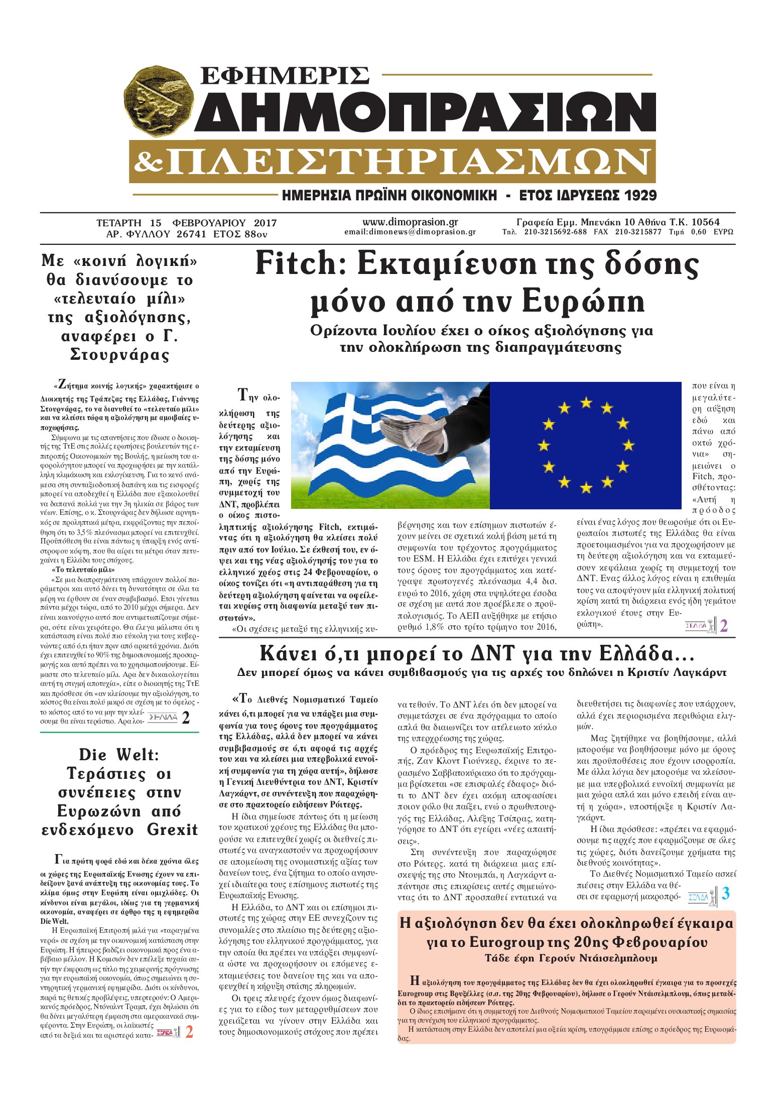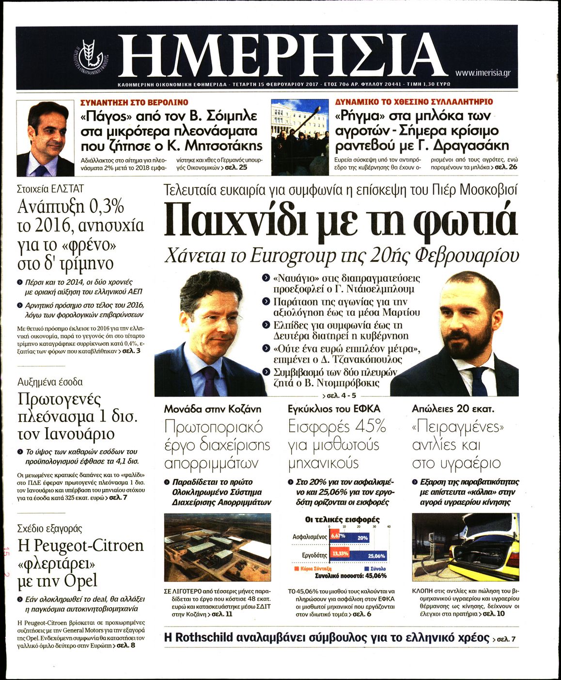 Οι οικονομικές εφημερίδες 15/2/2017 Enikos Newsroom 01:08, Τετάρτη 15 Φεβρουαρίου 2017 Media Διαβάστε τα σημερινά πρωτοσέλιδα των οικονομικών εφημερίδων: ΟΙΚΟΝΟΜΙΚΕΣ ΕΦΗΜΕΡΙΔΕΣ ΠΡΩΤΟΣΕΛΙΔΑ Μοιράσου το: σχολίασε κι εσύ (0 σχόλια) Ακολουθήστε το enikos.gr στο Google News και μάθετε πρώτοι όλες τις ειδήσεις Δείτε όλες τις τελευταίες ειδήσεις από την Ελλάδα και τον Κόσμο στο enikos.gr Ειδήσεις Ροή Ειδήσεων 2 ώρες πριν Νίκος Παππάς: «Είχα λάθος αντίδραση στη δική του δράση-πρόκληση – Δεν θα αναλύσω σε τι κατάσταση ήταν ο δημοσιογράφος» 35 λεπτά πριν Νίκος Γιαννόπουλος για Νίκο Παππά: «Είναι επικίνδυνος, θα του κάνω ασφαλιστικά» – ΒΙΝΤΕΟ 1 ώρα πριν Αλεξανδρούπολη: Πολυοργανική ανεπάρκεια λόγω υποσιτισμού η αιτία θανάτου του 3χρονου αγοριού 2 ώρες πριν Δημοσκόπηση Pulse: Η διαφορά ΝΔ-ΠΑΣΟΚ – Με ποια κριτήρια θα ψηφίσουν οι πολίτες στις επόμενες εκλογές 3 ώρες πριν Συγκλονιστικό βίντεο: Τρόμος για τουρίστες που σώθηκαν την τελευταία στιγμή από λεωφορείο που κατρακυλούσε σε φαράγγι 50 λεπτά πριν Ύπνος: Ειδικός εξηγεί τον πραγματικό λόγο που ξυπνάτε στις 4 τα ξημερώματα – Ο ρόλος των ορμονών και του κιρκάδιου ρυθμού 2 ώρες πριν Αριθμολογία: Οι άνθρωποι που έχουν γεννηθεί αυτές τις 4 ημερομηνίες, είναι τρυφεροί και αγαπούν ανιδιοτελώς 3 ώρες πριν Καθρέφτες μπάνιου: Το απλό κόλπο με την οδοντόκρεμα για να μην θολώνουν 13 ώρες πριν 20 χρόνια τα Χριστούγεννα ξεκινούν στα Public με μεγάλη ποικιλία σε δώρα! 6 λεπτά πριν «Αγριεύουν» οι αγρότες: «Δεν συντρέχει λόγος συνάντησης με τον πρωθυπουργό» – Ώρα αποφάσεων στη σύσκεψη της Πέμπτης 11 λεπτά πριν Χρίστος Αντωνιάδης: «Όποιος δεν έχει κάνει δίδυμα, δεν δικαιούται διά να ομιλεί» 20 λεπτά πριν Ρούτε: Η μεγαλύτερη επιτυχία εξωτερικής πολιτικής του Τραμπ είναι η δέσμευση των χωρών του ΝΑΤΟ για τις αμυντικές δαπάνες 26 λεπτά πριν Το Σπίτι Δίπλα Στο Ποτάμι: Σε κίνδυνο η υγεία του Απόστολου – Τι θα δούμε απόψε 35 λεπτά πριν Νίκος Γιαννόπουλος για Νίκο Παππά: «Είναι επικίνδυνος, θα του κάνω ασφαλιστικά» – ΒΙΝΤΕΟ ENIKOS NETWORK Αϋπνία: Το κόλπο που θα σας βοηθήσει να κοιμηθείτε απόψε – Είναι απλό και έχει αποτέλεσμα 2,6 εκατομμύρια πολίτες έχουν ήδη εμβολιαστεί κατά της γρίπης Χειμερινές εκπτώσεις: Πότε αρχίζουν και τι πρέπει να προσέξουν οι καταναλωτές ΑΑΔΕ: Καταβλήθηκε η τέταρτη δόση επιστροφής ΕΦΚ αγροτικού πετρελαίου – Οδηγίες για τη διόρθωση παραστατικών Χαρτογραφώντας το «σημείο χωρίς επιστροφή»: Για πρώτη φορά αποκαλύπτεται με λεπτομέρεια το ακανθώδες όριο της ατμόσφαιρας τ... Η Google καταργεί τη λειτουργία «dark web report» – Πώς θα μπορούν οι χρήστες να διαγράφουν τα δεδομένα τους περισσότερα 22:24 , Τετάρτη 17 Δεκεμβρίου 2025 Το Σπίτι Δίπλα Στο Ποτάμι: Σε κίνδυνο η υγεία του Απόστολου – Τι θα δούμε απόψε “Το Σπίτι Δίπλα στο Ποτάμι” ξετυλίγει το νήμα της ζωής των πέντε αδελφών με καταισ... 21:14 , Τετάρτη 17 Δεκεμβρίου 2025 Παιχνίδια Εκδίκησης: Θα καταφέρει ο Χρήστος να κλονίσει την εμπιστοσύνη της Μάγιας απέναντι στον Άγη; Τα «Παιχνίδια Εκδίκησης» έρχονται απόψε στις 22:30, στον Αντ1, με το τελευταίο επεισόδιο της χ... 20:57 , Τετάρτη 17 Δεκεμβρίου 2025 Άγιος Έρωτας: Η Χλόη καταθέτει εναντίον του πατέρα της και ο Χάρης αποκαλύπτει στον Κλεάνθη ότι δεν είναι ο βιολογικός του πατέρας. Γεμάτο αποκαλύψεις είναι το νέο επεισόδιο της σειράς “Άγιος Έρωτας” απόψε στις 21:... 20:15 , Τετάρτη 17 Δεκεμβρίου 2025 Η ανακοίνωση της ΕΣΗΕΑ για την επίθεση του Ευρωβουλευτή Νίκου Παππά κατά του δημοσιογ
