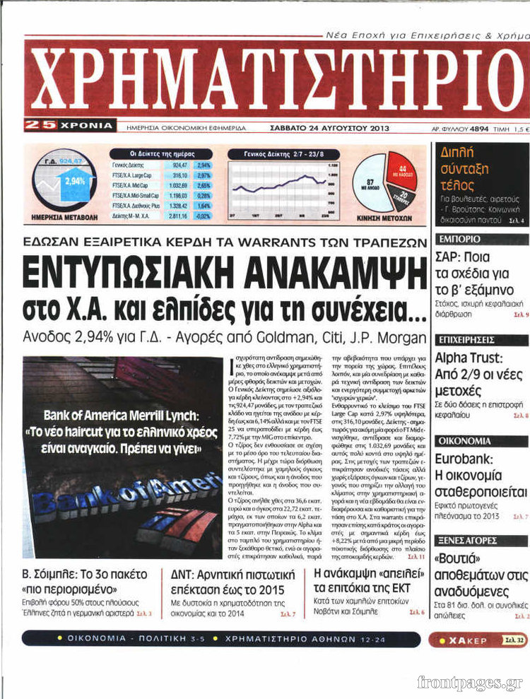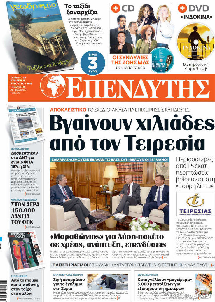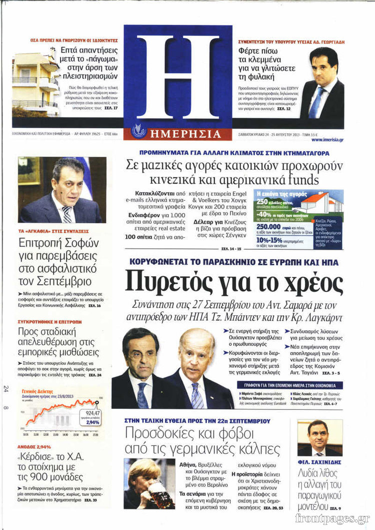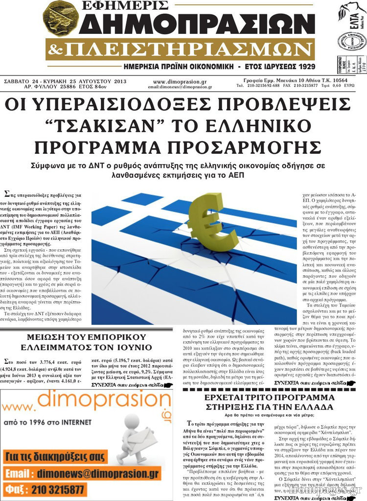 Οι oικονομικές εφημερίδες Enikos Newsroom 11:07, Σάββατο 24 Αυγούστου 2013 Media Οι oικονομικές εφημερίδες Διαβάστε τα πρωτοσέλιδα των οικονομικών εφημερίδων: ΕΦΗΜΕΡΙΔΕΣ ΟΙΚΟΝΟΜΙΚΕΣ ΕΦΗΜΕΡΙΔΕΣ ΠΡΩΤΟΣΕΛΙΔΑ Μοιράσου το: σχολίασε κι εσύ (0 σχόλια) Ακολουθήστε το enikos.gr στο Google News και μάθετε πρώτοι όλες τις ειδήσεις Δείτε όλες τις τελευταίες ειδήσεις από την Ελλάδα και τον Κόσμο στο enikos.gr Ειδήσεις Ροή Ειδήσεων 4 ώρες πριν Εκτός ευρωομάδας ΣΥΡΙΖΑ ο Νίκος Παππάς μετά την επίθεση στον δημοσιογράφο Νίκο Γιαννόπουλο – Η μήνυση και οι νέες δηλώσεις 4 ώρες πριν «Αγριεύουν» οι αγρότες: «Δεν συντρέχει λόγος συνάντησης με τον πρωθυπουργό» – Ώρα αποφάσεων στη σύσκεψη της Πέμπτης 4 ώρες πριν Κυψέλη: Χωρίς την οικογένειά της δίπλα της απολογήθηκε η 16χρονη – «Της είχε επιτεθεί κάποιος για να την βιάσει, φοβήθηκε και κυκλοφορούσε με μαχαίρι» 4 ώρες πριν Politico: Το πρόβλημα της Ευρώπης δεν είναι το Βέλγιο αλλά ο Ντόναλντ Τραμπ 5 ώρες πριν Αλεξανδρούπολη: Πολυοργανική ανεπάρκεια λόγω υποσιτισμού η αιτία θανάτου του 3χρονου αγοριού 4 ώρες πριν Μυστήριο με τεράστιες κυκλικές πέτρες 200 κιλών – Ανακαλύφθηκαν τυχαία κατά τη διάρκεια οδικών έργων και κανείς δεν ξέρει από πού προέρχονται 5 ώρες πριν Ύπνος: Ειδικός εξηγεί τον πραγματικό λόγο που ξυπνάτε στις 4 τα ξημερώματα – Ο ρόλος των ορμονών και του κιρκάδιου ρυθμού 6 ώρες πριν Αριθμολογία: Οι άνθρωποι που έχουν γεννηθεί αυτές τις 4 ημερομηνίες, είναι τρυφεροί και αγαπούν ανιδιοτελώς 18 ώρες πριν 20 χρόνια τα Χριστούγεννα ξεκινούν στα Public με μεγάλη ποικιλία σε δώρα! 9 λεπτά πριν Σουδάν: Επιδρομή drone σε χωριό του Νότιου Κορντοφάν – Οκτώ νεκροί 25 λεπτά πριν Αλ Τσαντίρι Νιουζ: Η κόρη της Πάολα στο κοινό – Η ατάκα Λαζόπουλου που την έκανε να «κοκκινήσει» 39 λεπτά πριν Ρωσία: Ουκρανικές δυνάμεις έπληξαν πλοίο στο λιμάνι του Ροστόφ – Αναφορές για θύματα 55 λεπτά πριν Βρυξέλλες: Νυχτερινό… μπλόκο αγροτών μπροστά από το κτίριο της Ευρωπαϊκής Επιτροπής – Πάνω από 100 τρακτέρ απέκλεισαν την λεωφόρο 1 ώρα πριν Euroleague: Απρόσμενη ήττα για την Μονακό του Βασίλη Σπανούλη – Η βαθμολογία μετά το τέλος της 16ης αγωνιστικής ENIKOS NETWORK Αϋπνία: Το κόλπο που θα σας βοηθήσει να κοιμηθείτε απόψε – Είναι απλό και έχει αποτέλεσμα 2,6 εκατομμύρια πολίτες έχουν ήδη εμβολιαστεί κατά της γρίπης ΕΛΣΤΑΤ: Τι δείχνουν τα νέα στοιχεία για τις ηλεκτρονικές παραγγελίες των επιχειρήσεων ΚΕΠΕ: Οι 3 διακριτές συμβολές των ΜμΕ και της μεταποίησης στην ελληνική οικονομία Χαρτογραφώντας το «σημείο χωρίς επιστροφή»: Για πρώτη φορά αποκαλύπτεται με λεπτομέρεια το ακανθώδες όριο της ατμόσφαιρας τ... Η Google καταργεί τη λειτουργία «dark web report» – Πώς θα μπορούν οι χρήστες να διαγράφουν τα δεδομένα τους περισσότερα 02:30 , Πέμπτη 18 Δεκεμβρίου 2025 Αλ Τσαντίρι Νιουζ: Η κόρη της Πάολα στο κοινό – Η ατάκα Λαζόπουλου που την έκανε να «κοκκινήσει» Γιορτινή διάθεση και ευχάριστες στιγμές γέμισε η αποψινή, τελευταία για το 2025, εκπομπή του «... 22:24 , Τετάρτη 17 Δεκεμβρίου 2025 Το Σπίτι Δίπλα Στο Ποτάμι: Σε κίνδυνο η υγεία του Απόστολου – Τι θα δούμε απόψε “Το Σπίτι Δίπλα στο Ποτάμι” ξετυλίγει το νήμα της ζωής των πέντε αδελφών με καταισ... 21:14 , Τετάρτη 17 Δεκεμβρίου 2025 Παιχνίδια Εκδίκησης: Θα καταφέρει ο Χρήστος να κλονίσει την εμπιστοσύνη της Μάγιας απέναντι στον Άγη; Τα «Παιχνίδια Εκδίκησης» έρχονται απόψε στις 22:30, στον Αντ1, με το τελευταίο επεισόδιο της χ... 20:57 , Τετάρτη 17 Δεκεμβρίου 2025 Άγιος Έρωτας: Η Χλ