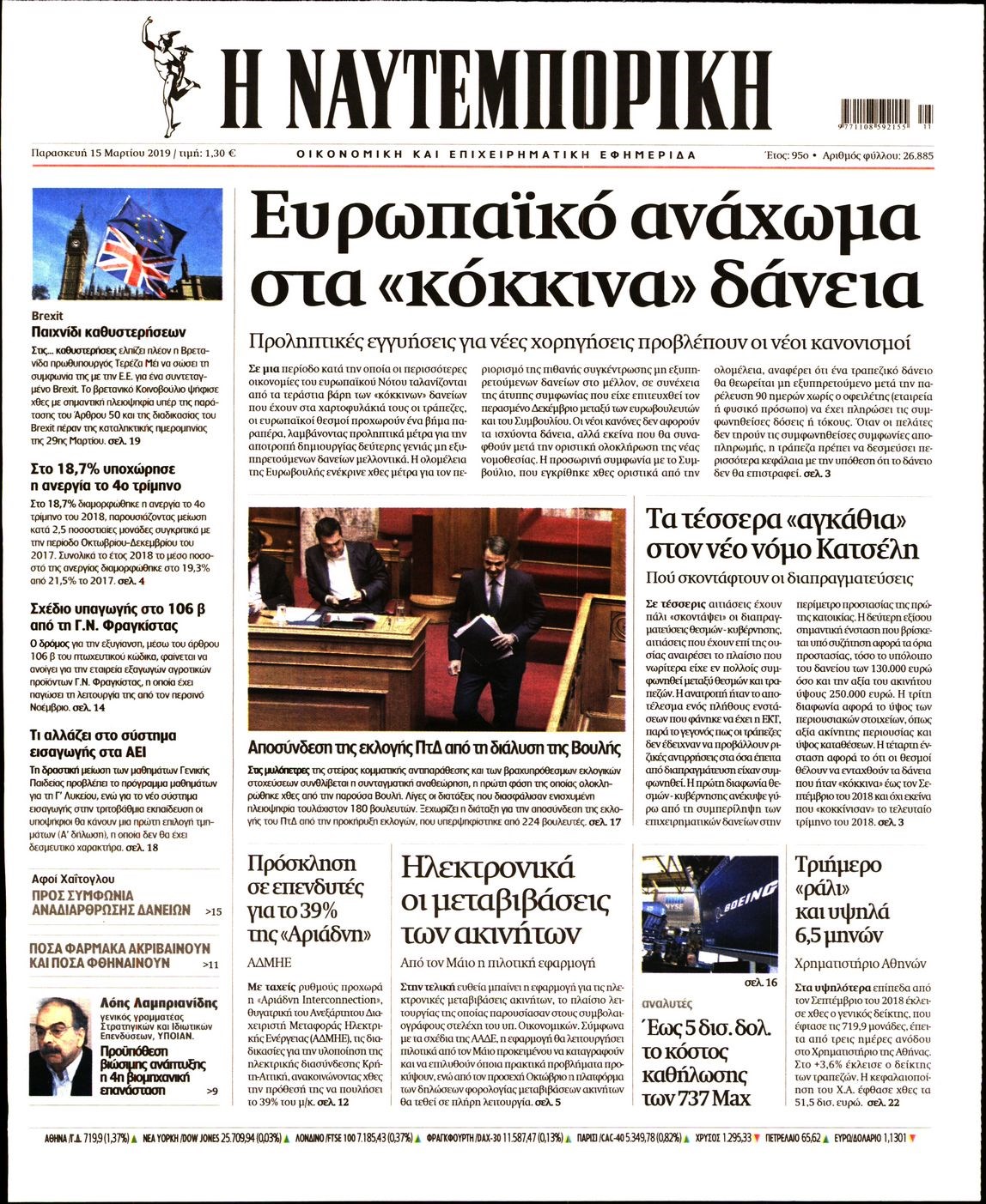 Οι οικονομικές εφημερίδες 15/3/2019 Enikos Newsroom 07:00, Παρασκευή 15 Μαρτίου 2019 Media Διαβάστε τα πρωτοσέλιδα των οικονομικών εφημερίδων: ΟΙΚΟΝΟΜΙΚΕΣ ΕΦΗΜΕΡΙΔΕΣ ΠΡΩΤΟΣΕΛΙΔΑ Μοιράσου το: σχολίασε κι εσύ (0 σχόλια) Ακολουθήστε το enikos.gr στο Google News και μάθετε πρώτοι όλες τις ειδήσεις Δείτε όλες τις τελευταίες ειδήσεις από την Ελλάδα και τον Κόσμο στο enikos.gr Ειδήσεις Ροή Ειδήσεων 3 ώρες πριν Χριστούγεννα στα μπλόκα: Επιμένουν στις κινητοποιήσεις τους οι αγρότες – Ανοίγουν τα διόδια το Σαββατοκύριακο 4 ώρες πριν Ουκρανία: Η άνευ προηγουμένου επίθεση σε ρωσικό τάνκερ στη Μεσόγειο και το μήνυμα προς στον Πούτιν – Το «μακρύ χέρι» του Κιέβου 3 ώρες πριν Πούτιν: Τα μηνύματα σε Ευρώπη και ΝΑΤΟ από το μαραθώνιο «σόου» του – Η απαίτηση για «σεβασμό» και η ειρήνη «με τους όρους» της Μόσχας 4 ώρες πριν Τραμπ: Δεν αποκλείει την πιθανότητα ενός πολέμου στη Βενεζουέλα – «Ο Μαδούρο ξέρει καλύτερα από τον καθένα τι ακριβώς θέλω» 4 ώρες πριν Συνεχίζει να προκαλεί ο Μίτσκοσκι: «Για μένα το όνομα Μακεδονία είναι ιερό» 3 ώρες πριν Ανακαλύφθηκαν αρχαία χρυσά νομίσματα 2.200 ετών που απεικονίζουν τον θεό Απόλλωνα – Η άγνωστη σύνδεση με τον Φίλιππο Β΄ της Μακεδονίας 4 ώρες πριν Ύπνος: Μια κρυφή κατάσταση του εγκεφάλου πριν από τον ύπνο μπορεί να είναι το “κλειδί” για υψηλή ευφυΐα και δημιουργικότητα 5 ώρες πριν Αριθμολογία: Οι άνθρωποι που έχουν γεννηθεί αυτές τις 4 ημερομηνίες, συχνά παρεξηγούνται – «Η καλοσύνη τους κρύβει τεράστια δύναμη» 6 ώρες πριν Ξεχάστε το καθάρισμα το Σαββατοκύριακο: Ο «κανόνας των 20 λεπτών» που θα σας λύσει τα χέρια 10 λεπτά πριν Πρόταση γάμου στο ΣΕΦ κατά την διάρκεια του αγώνα Ολυμπιακός-Βιλερμπάν – Δείτε βίντεο 25 λεπτά πριν Euroleague: Επέστρεψε στις νίκες ο Ολυμπιακός, πήρε την ματσάρα της χρονιάς η Μπάρτσα – Τα αποτελέσματα και η βαθμολογία 40 λεπτά πριν Συρία: Μαζικά πλήγματα των ΗΠΑ σε θέσεις του Ισλαμικού Κράτους – Χέγκσεθ: «Δεν είναι αρχή πολέμου, είναι μια δήλωση εκδίκησης» για το θάνατο των στρατιωτών μας 53 λεπτά πριν Ουκρανία: Ολοκληρώθηκαν οι συνομιλίες με τους Αμερικανούς κι Ευρωπαίους διαπραγματευτές 1 ώρα πριν Μπαρτσελόνα – Μπασκόνια 134-124: Οι «μπλαουγκράνα» πήραν το ματς της χρονιάς ύστερα από τρεις παρατάσεις ENIKOS NETWORK Το ΕΚΑΒ τιμήθηκε από την Ακαδημία Αθηνών για τα 40 χρόνια προσφοράς του Έχετε πραγματικά μεγάλη καρδιά; 10 χαρακτηριστικά όσων έχουν καλοσύνη Αναστολή μέτρων αναγκαστικής εκτέλεσης για κτηνοτρόφους που πλήττονται από την ευλογιά των αιγοπροβάτων Πλήρης επάρκεια προϊόντων στις λαϊκές της Αττικής, παρά τις αγροτικές κινητοποιήσεις – Τι απαντούν οι πωλητές Χαρτογραφώντας το «σημείο χωρίς επιστροφή»: Για πρώτη φορά αποκαλύπτεται με λεπτομέρεια το ακανθώδες όριο της ατμόσφαιρας τ... Η Google καταργεί τη λειτουργία «dark web report» – Πώς θα μπορούν οι χρήστες να διαγράφουν τα δεδομένα τους περισσότερα 22:42 , Παρασκευή 19 Δεκεμβρίου 2025 Γιώργος Γιαννόπουλος για “Το σόι σου”: “Είναι ευτυχία και ευλογία αυτή η σειρά” «Είναι ευτυχία και ευλογία η συγκυρία αυτής της σειράς», θα πει ο Γιώργος Γιαννόπουλος -ο αγαπ... 20:37 , Παρασκευή 19 Δεκεμβρίου 2025 Don’t Forget The Lyrics: Η Έλλη Κοκκίνου υποδέχεται 4 παίκτες που θα κάνουν τα πάντα για να μη χάσουν ούτε… μισή λέξη από τους στίχους Το «Don’t Forget The Lyrics» επιστρέφει απόψε, Παρασκευή 19 Δεκεμβρίου, στις 21:00 με νέο επει... 19:31 , Παρασκευή 19 Δεκεμβρίου 2025 GNTM: Απόψε ο μεγάλος τελικός για τους 4 φιναλίστ Έπειτα από μήνες γεμά