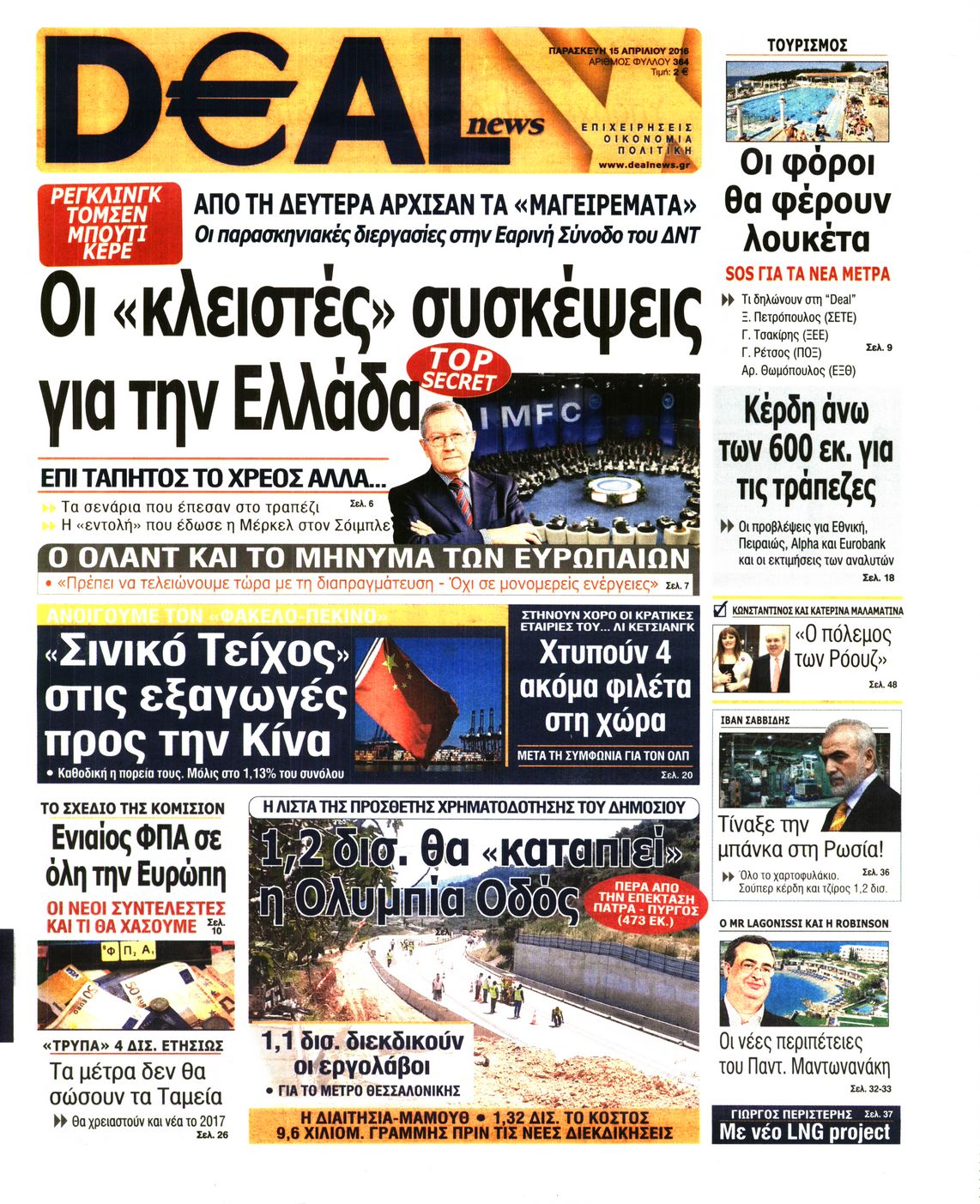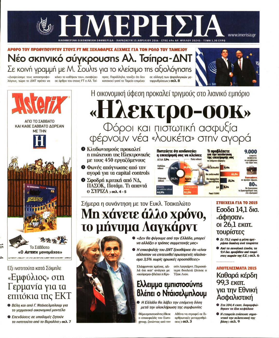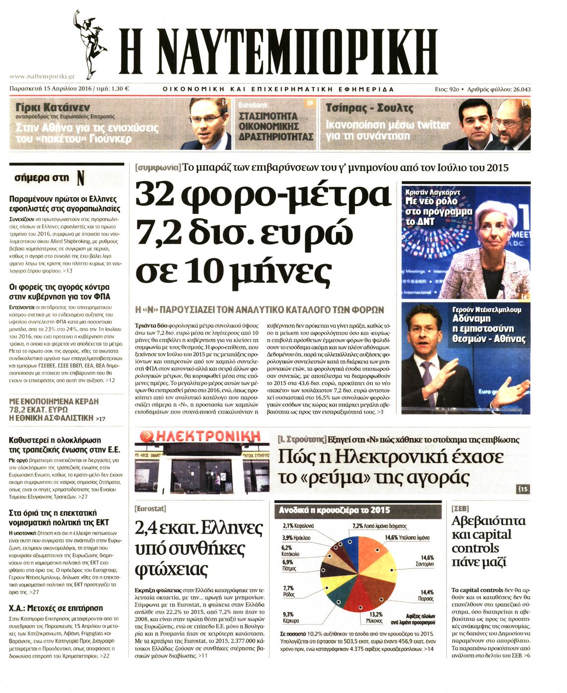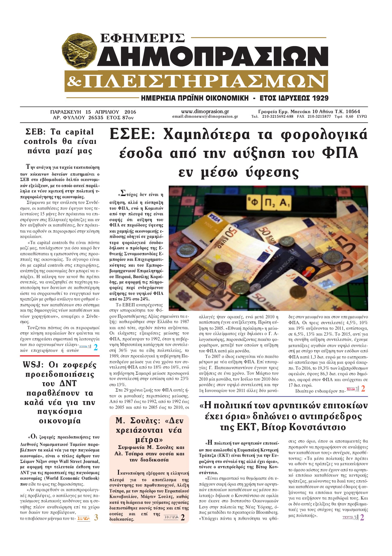 Οι οικονομικές εφημερίδες 15/4/2016 Enikos Newsroom 05:09, Παρασκευή 15 Απριλίου 2016 Media Διαβάστε τα σημερινά πρωτοσέλιδα των οικονομικών εφημερίδων: ΟΙΚΟΝΟΜΙΚΕΣ ΕΦΗΜΕΡΙΔΕΣ ΠΡΩΤΟΣΕΛΙΔΑ Μοιράσου το: σχολίασε κι εσύ (0 σχόλια) Ακολουθήστε το enikos.gr στο Google News και μάθετε πρώτοι όλες τις ειδήσεις Δείτε όλες τις τελευταίες ειδήσεις από την Ελλάδα και τον Κόσμο στο enikos.gr Ειδήσεις Ροή Ειδήσεων 1 ώρα πριν Φοροδιαφυγή: Ποιοι φορολογούμενοι κινδυνεύουν να πληρώσουν «τσουχτερά» πρόστιμα 22 λεπτά πριν Φοινικούντα: Παραδόθηκε 30χρονος στην Καλαμάτα για τη διπλή δολοφονία 38 λεπτά πριν Αγρότες: Ανυποχώρητοι στα μπλόκα – Στις Σέρρες σήμερα η κρίσιμη συνεδρίαση της Πανελλαδικής Επιτροπής 50 λεπτά πριν Τα επίσημα χρονοδιαγράμματα που η Τουρκία θα παραλάβει τα Eurofighter 9 ώρες πριν «Θύελλα» αντιδράσεων για τον Νίκο Παππά μετά την επίθεση στον δημοσιογράφο Νίκο Γιαννόπουλο – Η μήνυση, οι δηλώσεις και η έξοδος από την ευρωομάδα του ΣΥΡΙΖΑ 2 ώρες πριν Καούρα: Το μπαχαρικό που είναι «εξίσου αποτελεσματικό» με την ομεπραζόλη, σύμφωνα με ειδικούς 3 ώρες πριν Τα ζώδια σήμερα, Πέμπτη 18 Δεκεμβρίου: Λέοντες, η καρδιά σας θέλει να εκφραστεί 2 ώρες πριν Οπτική ψευδαίσθηση: Μόνο οι πιο έξυπνοι άνθρωποι θα βρουν 7 ξωτικά 15 δευτερόλεπτα 23 ώρες πριν 20 χρόνια τα Χριστούγεννα ξεκινούν στα Public με μεγάλη ποικιλία σε δώρα! 4 λεπτά πριν Αλμπέρτο Εσκενάζυ: Το μεσημέρι το «τελευταίο αντίο» στο αποτεφρωτήριο της Ριτσώνας – Η απόφαση της οικογένειάς του 9 λεπτά πριν Τραγωδία στη Θεσσαλονίκη: Νεκρή η 57χρονη που παρασύρθηκε από αυτοκίνητο στον Εύοσμο 13 λεπτά πριν Ανακαλύφθηκαν σπάνια λυχνία λαδιού και μια γραφίδα 2.000 ετών 18 λεπτά πριν Την Κυριακή με τη Realnews: Δωροεπιταγή 10€ 22 λεπτά πριν Φοινικούντα: Παραδόθηκε 30χρονος στην Καλαμάτα για τη διπλή δολοφονία ENIKOS NETWORK Ουρική αρθρίτιδα: Μεγάλη μελέτη αποκαλύπτει τι μπορεί να προκαλεί τη νόσο Τι σημαίνει όταν ο σκύλος σας σάς φέρνει τυχαία αντικείμενα, σύμφωνα με εκπαιδεύτρια Οφειλές προς το Δημόσιο: «Φρένο» στα σενάρια για νέα ρύθμιση – Τι απαντά το υπουργείο Εθνικής Οικονομίας και Οικονομικών Φοροδιαφυγή: Ποιοι φορολογούμενοι κινδυνεύουν να πληρώσουν «τσουχτερά» πρόστιμα Χαρτογραφώντας το «σημείο χωρίς επιστροφή»: Για πρώτη φορά αποκαλύπτεται με λεπτομέρεια το ακανθώδες όριο της ατμόσφαιρας τ... Η Google καταργεί τη λειτουργία «dark web report» – Πώς θα μπορούν οι χρήστες να διαγράφουν τα δεδομένα τους περισσότερα 08:00 , Πέμπτη 18 Δεκεμβρίου 2025 Την Κυριακή με τη Realnews: Δωροεπιταγή 10€ Δωροεπιταγή αξίας 10€ για αγορές άνω των 60€ από τα πολυκαταστήματα FactoryOutlet H προσφορά ι... 07:50 , Πέμπτη 18 Δεκεμβρίου 2025 «Το σόι σου»: Backstage στα γυρίσματα για το εορταστικό επεισόδιο «Το σόι σου» φορά τα γιορτινά του για τα Χριστούγεννα και η Όλγα Λαφαζάνη, με την κάμερα του «... 07:36 , Πέμπτη 18 Δεκεμβρίου 2025 Οι αθλητικές μεταδόσεις 18/12/2025 – Πού θα δείτε τον αγώνα της ΑΕΚ με την Κραϊόβα για το Conference League Τα ματς ΑΕΚ – Ουνιβερσιτάτεα Κραϊόβα για το Conference League και Παναθηναϊκός – Χάποελ Τελ Αβ... 05:48 , Πέμπτη 18 Δεκεμβρίου 2025 Οι οικονομικές εφημερίδες 18/12/2025 Διαβάστε τα πρωτοσέλιδα από τις οικονομικές εφημερίδες, σήμερα 18/12/2025. ΤΕΛΕΥΤΑΙΕΣ ΕΙΔΗΣΕΙΣ 4 λεπτά πριν Αλμπέρτο Εσκενάζυ: Το μεσημέρι το «τελευταίο αντίο»... 9 λεπτά πριν Τραγωδία στη Θεσσαλονίκη: Νεκρή η 57χρονη που... 13 λεπτά πριν Ανακαλύφθηκαν σπάνια λυχνία λαδιού και μια γραφίδα... 18 λεπτά πριν Την Κυριακή με τη Realnews: Δωροεπιταγή 10€ 22 λεπτά πριν Φοιν