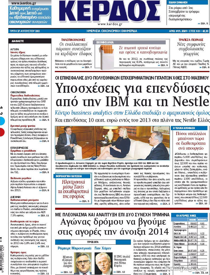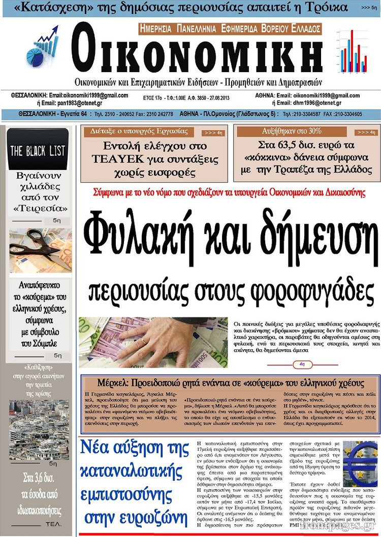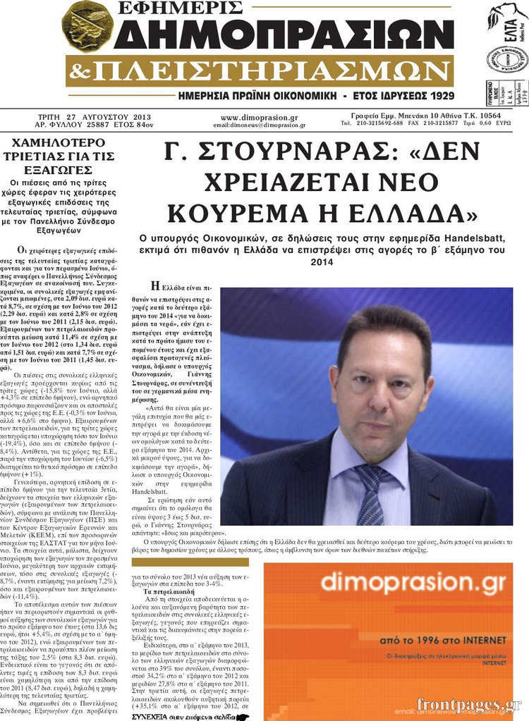 Οι oικονομικές εφημερίδες Enikos Newsroom 09:57, Τρίτη 27 Αυγούστου 2013 Media Οι oικονομικές εφημερίδες Διαβάστε τα πρωτοσέλιδα των οικονομικών εφημερίδων: ΕΦΗΜΕΡΙΔΕΣ ΟΙΚΟΝΟΜΙΚΕΣ ΕΦΗΜΕΡΙΔΕΣ ΠΡΩΤΟΣΕΛΙΔΑ Μοιράσου το: σχολίασε κι εσύ (0 σχόλια) Ακολουθήστε το enikos.gr στο Google News και μάθετε πρώτοι όλες τις ειδήσεις Δείτε όλες τις τελευταίες ειδήσεις από την Ελλάδα και τον Κόσμο στο enikos.gr Ειδήσεις Ροή Ειδήσεων 3 ώρες πριν ΣΥΡΙΖΑ: Διαγράφεται ο ευρωβουλευτής Νίκος Παππάς μετά την μήνυση δημοσιογράφου για ξυλοδαρμό 13 λεπτά πριν Δημοσκόπηση Opinion Poll: Στις 12,9 μονάδες η διαφορά ΝΔ-ΠΑΣΟΚ – Τι λένε οι πολίτες για αγρότες, ΟΠΕΚΕΠΕ, Τσίπρα και Σαμαρά 2 ώρες πριν ΟΠΕΚΕΠΕ: Ελεύθερες με όρους η σύζυγος και η αδελφή του φερόμενου αρχηγού – Τι υποστήριξαν 4 ώρες πριν Πώς στήθηκε η επιχείρηση «Ίπαλλος» που οδήγησε στη σύλληψη του «Έλληνα Εσκομπάρ» – «Ο πόλεμος ενάντια στους εμπόρους ναρκωτικών θα συνεχιστεί» 4 ώρες πριν Κυψέλη: Στη φυλακή η 16χρονη που μαχαίρωσε συμμαθήτριά της 1 ώρα πριν Οι άνθρωποι που θυμούνται τα όνειρά τους, συνήθως μοιράζονται αυτά τα 6 σπάνια χαρακτηριστικά 4 ώρες πριν Τα 3 ζώδια που θα δουν τη ζωή τους να αλλάζει ριζικά το 2026 – «Όλα γίνονται καλύτερα σταδιακά» 5 ώρες πριν Ο σπάνιος σεισμός που έλυσε τα χέρια των επιστημόνων – Αποκάλυψε ακριβώς όσα αναζητούσαν 11 ώρες πριν 20 χρόνια τα Χριστούγεννα ξεκινούν στα Public με μεγάλη ποικιλία σε δώρα! 11 δευτερόλεπτα πριν «Η αξιοπρέπεια δεν είναι διαπραγματεύσιμη» έγραψε στα social media o 21χρονος που αναμένεται να καταγγείλει τον πασίγνωστο τραγουδιστή 5 λεπτά πριν Καθρέφτες μπάνιου: Το απλό κόλπο με την οδοντόκρεμα για να μην θολώνουν 9 λεπτά πριν Στη ΜΕΘ του νοσοκομείου Ζακύνθου ο Μητροπολίτης Δωδώνης 13 λεπτά πριν Δημοσκόπηση Opinion Poll: Στις 12,9 μονάδες η διαφορά ΝΔ-ΠΑΣΟΚ – Τι λένε οι πολίτες για αγρότες, ΟΠΕΚΕΠΕ, Τσίπρα και Σαμαρά 20 λεπτά πριν ΠΑΣΟΚ: Καταδικάζουμε τον ξυλοδαρμό και την τραμπούκικη συμπεριφορά του ευρωβουλευτή Νίκου Παππά σε βάρος του δημοσιογράφου Νίκου Γιαννόπουλου ENIKOS NETWORK Αϋπνία: Το κόλπο που θα σας βοηθήσει να κοιμηθείτε απόψε – Είναι απλό και έχει αποτέλεσμα 2,6 εκατομμύρια πολίτες έχουν ήδη εμβολιαστεί κατά της γρίπης Ελληνικά ομόλογα: Τι λέει η S&P Global Προκήρυξη ΑΣΕΠ για 4.276 μόνιμες προσλήψεις στο Δημόσιο: Βγήκαν τα προσωρινά αποτελέσματα – Ποιοι μπορούν να υποβάλουν ένσ... Χαρτογραφώντας το «σημείο χωρίς επιστροφή»: Για πρώτη φορά αποκαλύπτεται με λεπτομέρεια το ακανθώδες όριο της ατμόσφαιρας τ... Η Google καταργεί τη λειτουργία «dark web report» – Πώς θα μπορούν οι χρήστες να διαγράφουν τα δεδομένα τους περισσότερα 12:35 , Τετάρτη 17 Δεκεμβρίου 2025 Μίρκα Παπακωνσταντίνου: «Δεν ήμουν αισιόδοξη για τα νούμερα – Είμαι ρεαλίστρια» Στα γυρίσματα του εορταστικού επεισοδίου της αγαπημένης σειράς “Το Σόι Σου”, βρέθηκε η κάμερα ... 12:12 , Τετάρτη 17 Δεκεμβρίου 2025 Ακούστε την εκπομπή του Νίκου Χατζηνικολάου 17/12/2025 Ακούστε την εκπομπή του Νίκου Χατζηνικολάου στον ραδιοφωνικό σταθμό RealFm 97,8, την Τετάρτη 1... 11:35 , Τετάρτη 17 Δεκεμβρίου 2025 Home Alone: Το σπίτι της ταινίας θα ανακαινιστεί – Επιστροφή στην αισθητική της δεκαετίας του ’90 Οι νέοι ιδιοκτήτες του πραγματικού σπιτιού που παρουσιάζεται στην κλασική ταινία του 1990 «Hom... 11:25 , Τετάρτη 17 Δεκεμβρίου 2025 Grand Hotel: Απόψε το τελευταίο επεισόδιο της χρονιάς – Όλα τα μυστικά μένουν εδώ Το τελευταίο επεισόδιο της χρονιάς της σειράς «Grand Hotel» θα προβληθεί απόψε στις 21:00. Ο Ά... ΤΕΛΕΥΤΑΙΕΣ 
