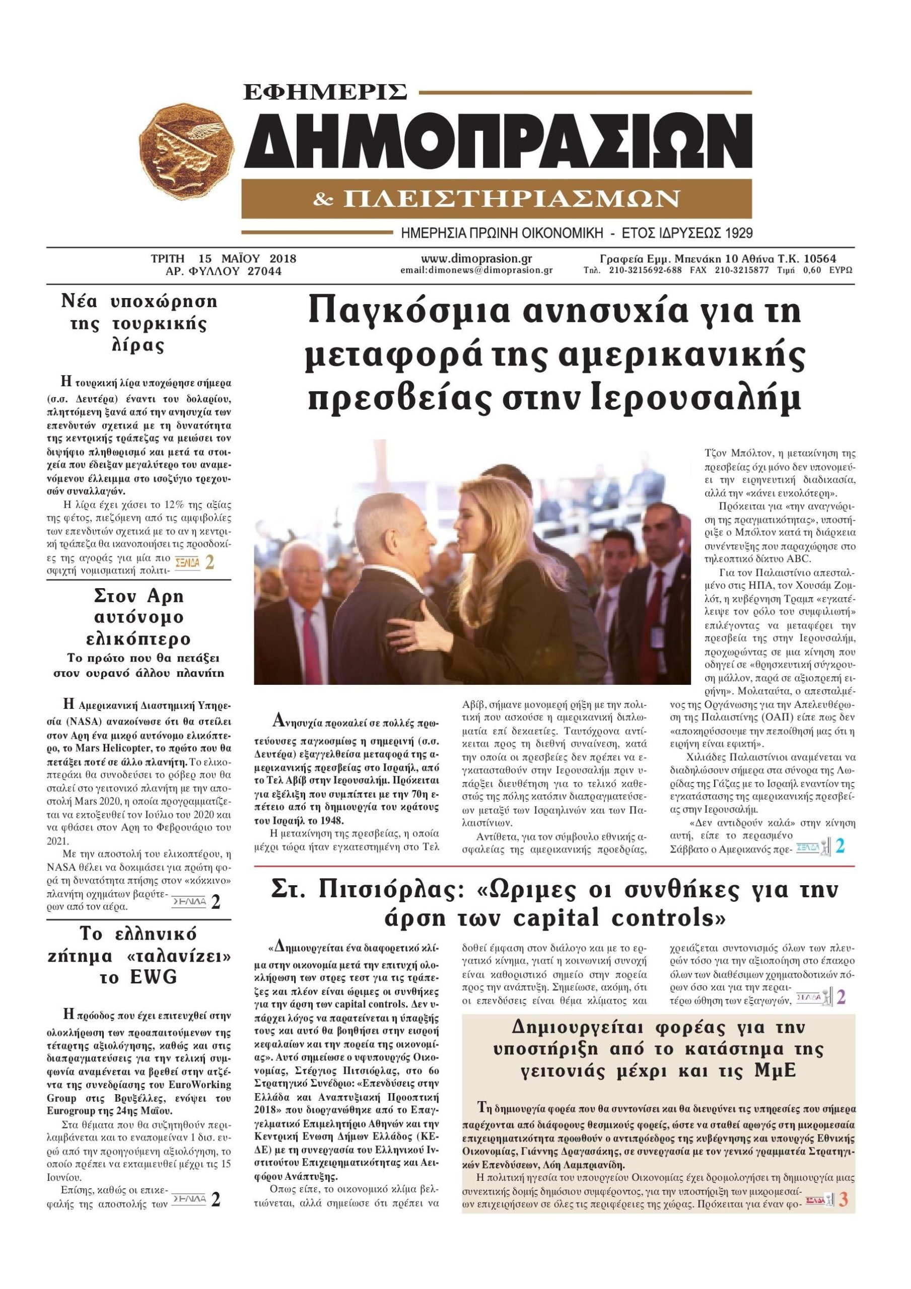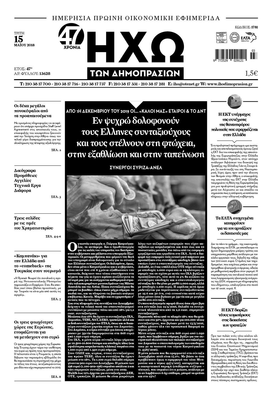 Οι οικονομικές εφημερίδες 15/5/2018 Κώστας Τεό 06:45, Τρίτη 15 Μαΐου 2018 Media Διαβάστε τα σημερινά πρωτοσέλιδα των οικονομικών εφημερίδων: ΟΙΚΟΝΟΜΙΚΕΣ ΕΦΗΜΕΡΙΔΕΣ ΠΡΩΤΟΣΕΛΙΔΑ Μοιράσου το: σχολίασε κι εσύ (0 σχόλια) Ακολουθήστε το enikos.gr στο Google News και μάθετε πρώτοι όλες τις ειδήσεις Δείτε όλες τις τελευταίες ειδήσεις από την Ελλάδα και τον Κόσμο στο enikos.gr Ειδήσεις Ροή Ειδήσεων 4 ώρες πριν Αγρότες: «Όχι στον διάλογο, μας εμπαίζει η κυβέρνηση» – Αποφάσισαν κλιμάκωση των κινητοποιήσεων, τι θα γίνει τα Χριστούγεννα 1 ώρα πριν Αθήνα: Εξαρθρώθηκε εγκληματική οργάνωση που διακινούσε ναρκωτικά σε μορφή σοκολάτας – Δύο τράπερ ανάμεσα στους 4 συλληφθέντες – ΒΙΝΤΕΟ 2 ώρες πριν Στη φυλακή ο «Έλληνας Εσκομπάρ» και τρεις συνεργοί του για το φορτίο με την κοκαΐνη – Τι υποστήριξε στην απολογία του 3 ώρες πριν Γιώργος Μαζωνάκης: «Έχει υποστεί ένα σωρό εκβιαστικές πρακτικές – Του είπαν ότι θα του βάλουν τον συγκεκριμένο άνθρωπο να τον καταγγείλει» 1 ώρα πριν Γεωργιάδης για Κωνσταντοπούλου: «Έχει καταφέρει να ξεπεράσει ακόμη και τον εαυτό της – Το ερώτημα είναι “γιατί τώρα;”» 5 ώρες πριν Τα 5 ζώδια που θα ευνοηθούν στα οικονομικά τους το 2026 – «Τραβούν το χρήμα σαν μαγνήτες» 2 ώρες πριν Γάμος: 11 ψυχρές αλλά ευγενικές φράσεις, που λέει ένας άνδρας όταν σκέφτεται τον χωρισμό 1 ώρα πριν Σφουγγάρισμα: Η συνήθεια που θα σας βοηθήσει να διατηρήσετε το σπίτι σας καθαρό και τακτοποιημένο 1 ημέρα πριν 20 χρόνια τα Χριστούγεννα ξεκινούν στα Public με μεγάλη ποικιλία σε δώρα! 6 λεπτά πριν Δημοσκόπηση Metron Analysis: Στις 10 μονάδες η διαφορά ΝΔ-ΠΑΣΟΚ, στην 3η θέση η Πλεύση Ελευθερίας – 8 στους 10 στηρίζουν τον αγώνα των αγροτών 11 λεπτά πριν Ολυμπιακός: Τι ζήτησε από τον Άγιο Βασίλη ο Χοσέ Λουίς Μεντιλίμπαρ 17 λεπτά πριν Manifesting: Πώς να συναντήσετε τον σύντροφο της ζωής σας, ανάλογα με τον μήνα γέννησής σας 26 λεπτά πριν Hellenic Train: Καθυστερήσεις στον Προαστιακό λόγω φωτιάς κοντά στη σιδηροδρομική γραμμή 38 λεπτά πριν ΗΠΑ: Νέες φωτογραφίες από τον φάκελο Επστάιν έδωσαν στην δημοσιότητα οι Δημοκρατικοί ENIKOS NETWORK Σε περίοδο αυξημένης δραστηριότητας η γρίπη στην Ελλάδα-Μέτρα προστασίας από τον ΕΟΔΥ Σκέφτεστε συνέχεια συζητήσεις που έχετε κάνει; Τι σημαίνει αυτό, σύμφωνα με ειδικό Servicers: Μικρή μείωση στα κόκκινα δάνεια που διαχειρίζονται – Αναλυτικά τα στοιχεία ΑΑΔΕ: “Αλλάζει πρόσωπο” το Φορολογικό Μητρώο για πολίτες και επιχειρήσεις – Όλες οι λεπτομέρειες Χαρτογραφώντας το «σημείο χωρίς επιστροφή»: Για πρώτη φορά αποκαλύπτεται με λεπτομέρεια το ακανθώδες όριο της ατμόσφαιρας τ... Η Google καταργεί τη λειτουργία «dark web report» – Πώς θα μπορούν οι χρήστες να διαγράφουν τα δεδομένα τους περισσότερα 17:45 , Πέμπτη 18 Δεκεμβρίου 2025 ROUK ZOUK: Εορταστικό επεισόδιο με καλεσμένους τους πρωταγωνιστές του «Γιατί ρε πατέρα» Το Σάββατο 20 Δεκεμβρίου στις 21:00, η Ζέτα Μακρυπούλια υποδέχεται εκλεκτούς ηθοποιούς που όλο... 17:20 , Πέμπτη 18 Δεκεμβρίου 2025 Άγιος έρωτας: Η Χριστίνα εξομολογείται στον πατέρα Νικόλαο, απόψε στις 21:00 στον Alpha Η Νότα αποφασίζει να εκδικηθεί τον Πέτρο και τον Στέφανο, για χάρη του Λούη, όμως τα πράγματα ... 16:50 , Πέμπτη 18 Δεκεμβρίου 2025 Να μ’ αγαπάς: Ζωή και Φωτεινή συμφιλιώνονται ως μάνα με κόρη, απόψε στις 20:00 Η ταυτότητα του Άγγελου αποκαλύπτεται στο νέο επεισόδιο της σειράς “Να μ’ αγαπάς... 15:52 , Πέμπτη 18 Δεκεμβρίου 2025 Το Σπίτι Δίπλα Στο Ποτάμι: Το καθηλωτικό τελευταίο επεισόδιο για το 2025 απόψε στις 22:30 Καθηλώνει