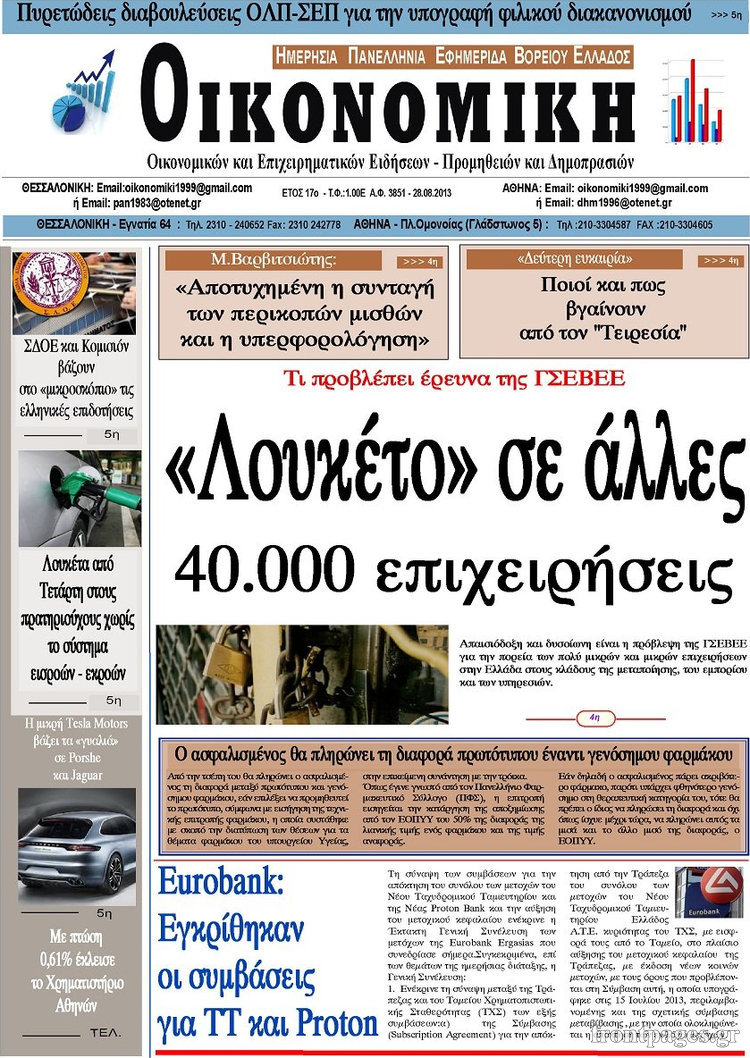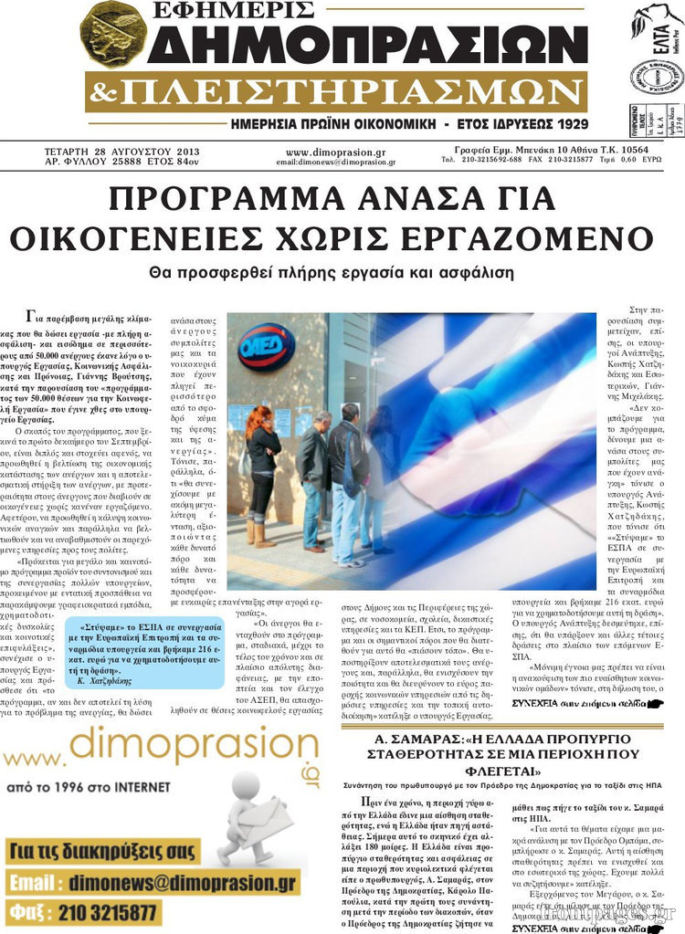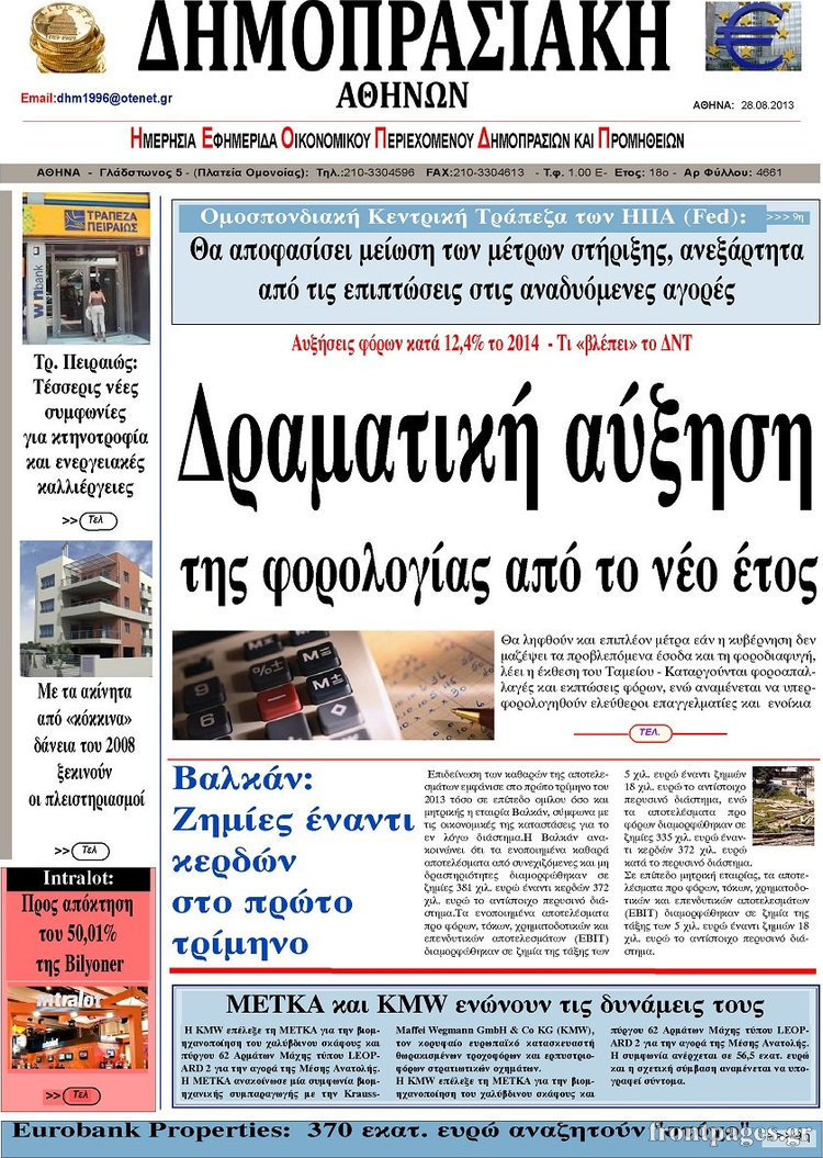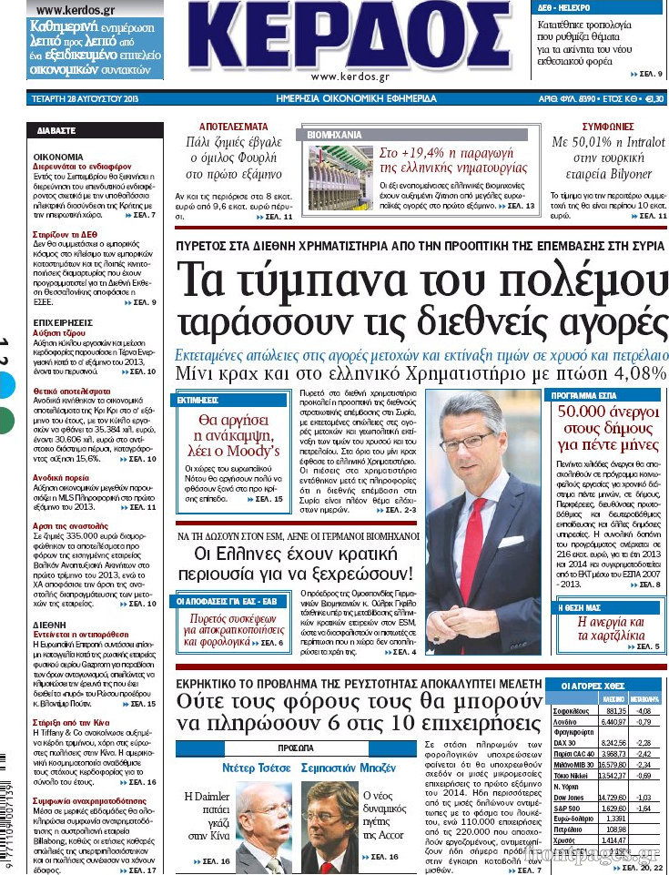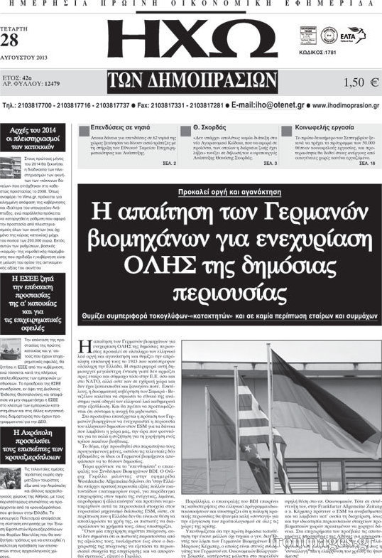 Οι oικονομικές εφημερίδες Enikos Newsroom 09:22, Τετάρτη 28 Αυγούστου 2013 Media Οι oικονομικές εφημερίδες Διαβάστε τα πρωτοσέλιδα των οικονομικών εφημερίδων: ΕΦΗΜΕΡΙΔΕΣ ΟΙΚΟΝΟΜΙΚΕΣ ΕΦΗΜΕΡΙΔΕΣ ΠΡΩΤΟΣΕΛΙΔΑ Μοιράσου το: σχολίασε κι εσύ (0 σχόλια) Ακολουθήστε το enikos.gr στο Google News και μάθετε πρώτοι όλες τις ειδήσεις Δείτε όλες τις τελευταίες ειδήσεις από την Ελλάδα και τον Κόσμο στο enikos.gr Ειδήσεις Ροή Ειδήσεων 8 ώρες πριν Μητσοτάκης: Αναγκαία η μεταρρύθμιση του πρωτογενούς τομέα – Τα 6 νέα μέτρα για το στεγαστικό και οι αναφορές σε «Ιθάκη» και «πολιτικούς του καναπέ» 7 ώρες πριν Δάνεια σε ελβετικό φράγκο: Τα βασικά σημεία της ρύθμισης – ανάσας για 40.000 δανειολήπτες – Αναλυτικός οδηγός με ερωτήσεις και απαντήσεις 7 ώρες πριν Κυψέλη: Εξιτήριο πήρε η 14χρονη μαθήτρια που μαχαιρώθηκε από την 16χρονη σε σχολείο – «Θέλω να βοηθήσω το παιδί, έχει μπλέξει με κακές παρέες» 7 ώρες πριν Τραμπ: Γιατί κατέθεσε τώρα την αγωγή κατά του BBC – Πώς η κίνησή του εξυπηρετεί το νέο δόγμα του για «αντίσταση» στην Ευρώπη, υπέρ των συντηρητικών 8 ώρες πριν ΟΠΕΚΕΠΕ – Παράνομες επιδοτήσεις: Ελεύθεροι με περιοριστικούς όρους και οι 7 κατηγορούμενοι που απολογήθηκαν σήμερα 7 ώρες πριν Ανακαλύφθηκε βυθισμένη πέτρινη κατασκευή ανοιχτά της Κριμαίας – Αποτελεί μέρος αρχαίας ελληνικής αποικίας 8 ώρες πριν Ύπνος: Αυτό μπορεί να είναι το χειρότερο λάθος για το βιολογικό ρολόι σας, σύμφωνα με ειδικό 9 ώρες πριν Αριθμολογία: Οι άνθρωποι που έχουν γεννηθεί αυτές τις 3 ημερομηνίες, προσελκύουν μεγάλη τύχη πριν από το τέλος του 2025 11 ώρες πριν Οι 7 συμπεριφορές που μαρτυρούν ότι ένας άνδρας επενδύει μακροπρόθεσμα σε μια σχέση 1 λεπτό πριν Σαν σήμερα 17 Δεκεμβρίου: Τα σημαντικότερα γεγονότα της ημέρας 7 λεπτά πριν Οι οικονομικές εφημερίδες 17/12/2025 12 λεπτά πριν Οι αθλητικές εφημερίδες 17/12/2025 17 λεπτά πριν Οι πολιτικές εφημερίδες 17/12/2025 25 λεπτά πριν Τα ζώδια σήμερα, Τετάρτη 17 Δεκεμβρίου: Κριοί, η αυτοπεποίθησή σας ενισχύεται ENIKOS NETWORK Αίτημα ΙΣΑ για την εξαίρεση των προσωπικών γιατρών από τις κατ’ οίκον επισκέψεις Η σκανδιναβική μέθοδος στον ύπνο που μπορεί να σώσει έναν γάμο Πιερρακάκης: Ο προϋπολογισμός συμβάλλει ουσιαστικά στην ενίσχυση της αγοραστικής δύναμης της πλειονότητας των εργαζομένων e-ΕΦΚΑ: Παρατείνεται η προθεσμία για την υποβολή ΑΠΔ – Ποιους αφορά Σύγχρονος Νοστράδαμος: Προειδοποιεί για «μεγάλο γεγονός» τους επόμενους μήνες που θα συγκλονίσει τη Βρετανία και τον κόσμο Τεστ παρατηρητικότητας: Μπορείτε να βρείτε τις 3 διαφορές στις εικόνες με έναν πιγκουίνο σε 14 δευτερόλεπτα περισσότερα 05:48 , Τετάρτη 17 Δεκεμβρίου 2025 Οι οικονομικές εφημερίδες 17/12/2025 Διαβάστε τα πρωτοσέλιδα από τις οικονομικές εφημερίδες, σήμερα 17/12/2025. 05:43 , Τετάρτη 17 Δεκεμβρίου 2025 Οι αθλητικές εφημερίδες 17/12/2025 Διαβάστε τα πρωτοσέλιδα από τις αθλητικές εφημερίδες, σήμερα 17/12/2025. 05:38 , Τετάρτη 17 Δεκεμβρίου 2025 Οι πολιτικές εφημερίδες 17/12/2025 Διαβάστε τα πρωτοσέλιδα από τις πολιτικές εφημερίδες, σήμερα 17/12/2025. 20:06 , Τρίτη 16 Δεκεμβρίου 2025 Ο ΣΚΑΙ καταγγέλλει τον ΕΚΚΟΜΕΔ Επιστολή με την οποία καταγράφει την έντονη διαμαρτυρία του προς τον διευθύνοντα σύμβουλο του... ΤΕΛΕΥΤΑΙΕΣ ΕΙΔΗΣΕΙΣ 7 λεπτά πριν Οι οικονομικές εφημερίδες 17/12/2025 12 λεπτά πριν Οι αθλητικές εφημερίδες 17/12/2025 17 λεπτά πριν Οι πολιτικές εφημερίδες 17/12/2025 25 λεπτά πριν Τα ζώδια σήμερα, Τετάρτη 17 Δεκεμβρίου: Κριοί, η... 33 λεπτά πριν Εφημερεύοντα φαρμακεία σε Αθήνα και Θεσσαλονίκ