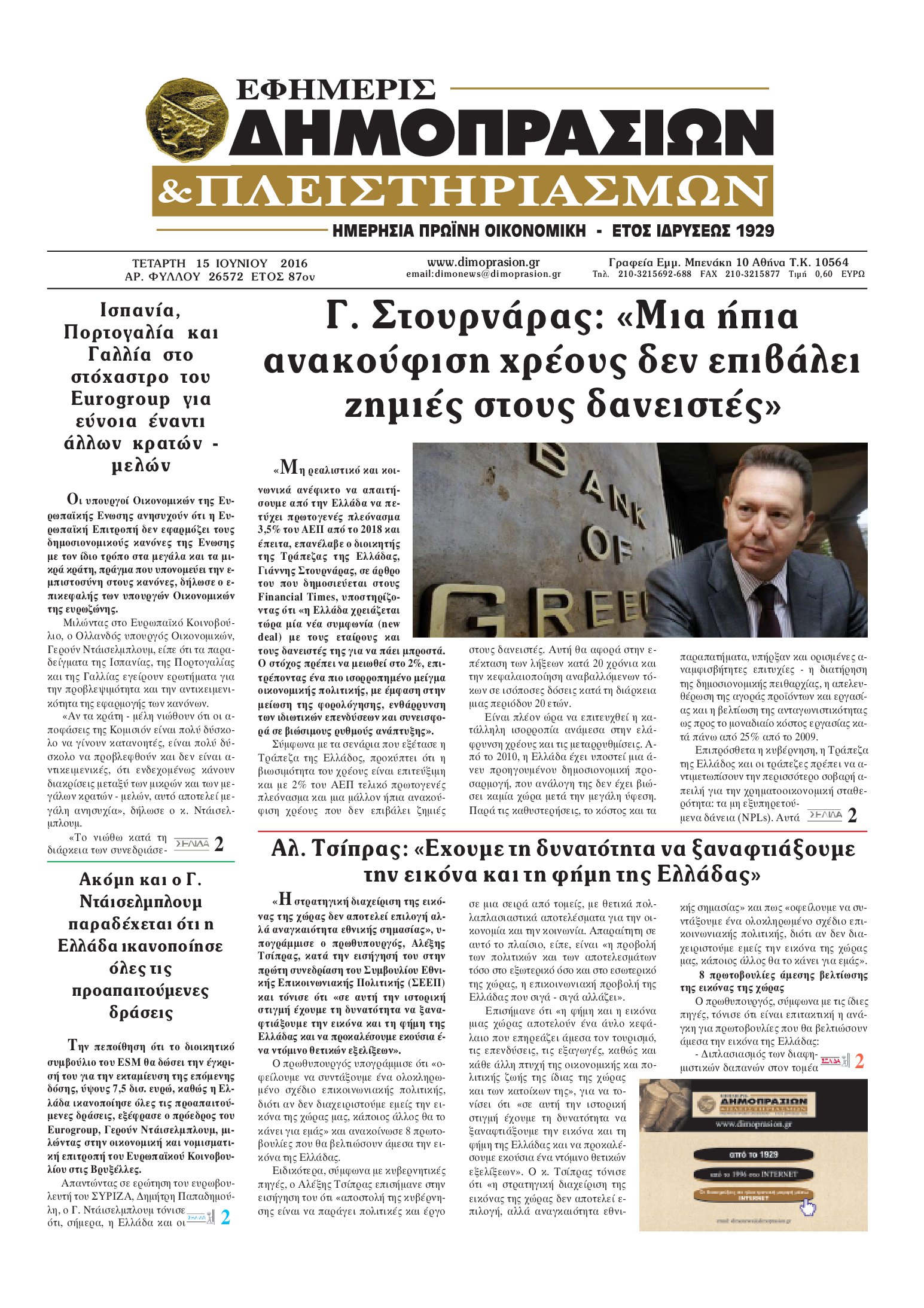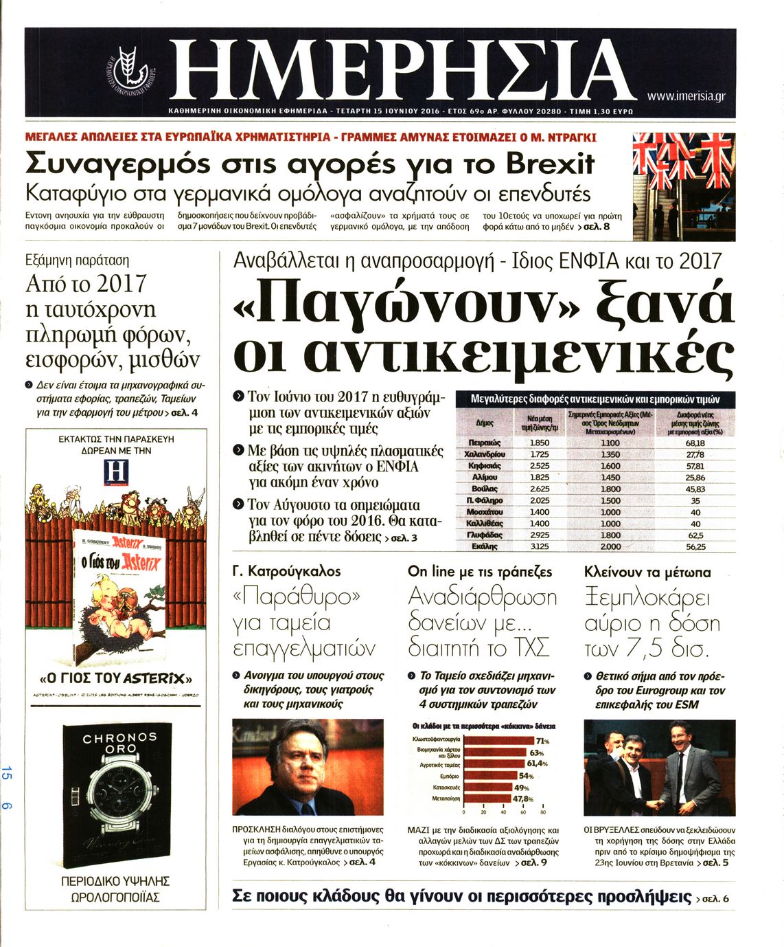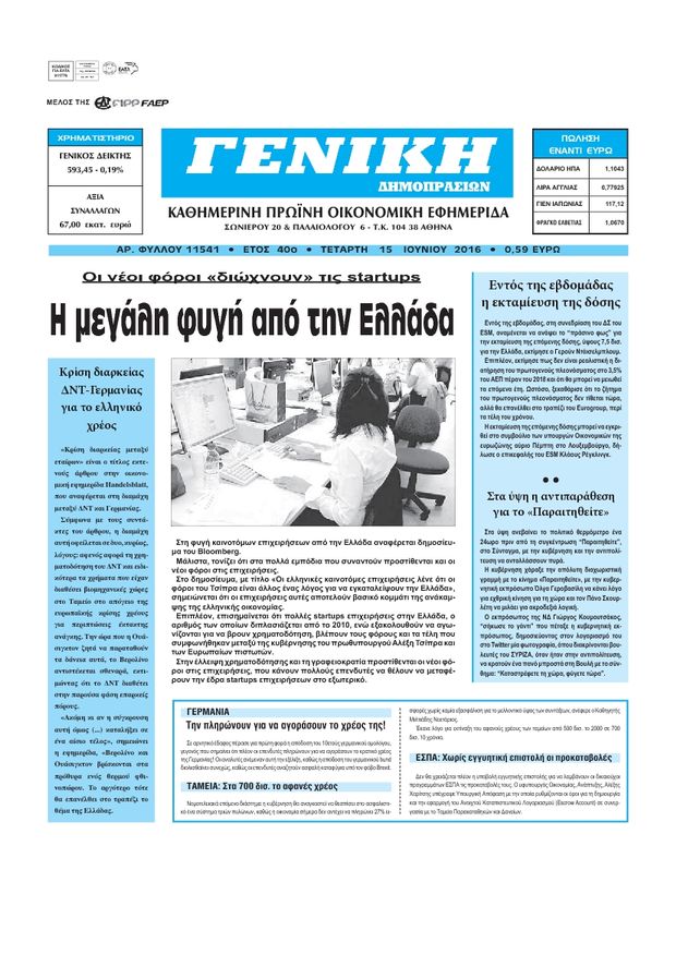 Oι οικονομικές εφημερίδες 15/6/2016 Enikos Newsroom 05:51, Τετάρτη 15 Ιουνίου 2016 Media Διαβάστε τα σημερινά πρωτοσέλιδα των οικονομικών εφημερίδων: ΟΙΚΟΝΟΜΙΚΕΣ ΕΦΗΜΕΡΙΔΕΣ ΠΡΩΤΟΣΕΛΙΔΑ Μοιράσου το: σχολίασε κι εσύ (0 σχόλια) Ακολουθήστε το enikos.gr στο Google News και μάθετε πρώτοι όλες τις ειδήσεις Δείτε όλες τις τελευταίες ειδήσεις από την Ελλάδα και τον Κόσμο στο enikos.gr Ειδήσεις Ροή Ειδήσεων 5 ώρες πριν Αγρότες: «Όχι στον διάλογο, μας εμπαίζει η κυβέρνηση» – Αποφάσισαν κλιμάκωση των κινητοποιήσεων, τι θα γίνει τα Χριστούγεννα 2 ώρες πριν Αθήνα: Εξαρθρώθηκε εγκληματική οργάνωση που διακινούσε ναρκωτικά σε μορφή σοκολάτας – Δύο τράπερ ανάμεσα στους 4 συλληφθέντες – ΒΙΝΤΕΟ 2 ώρες πριν Στη φυλακή ο «Έλληνας Εσκομπάρ» και τρεις συνεργοί του για το φορτίο με την κοκαΐνη – Τι υποστήριξε στην απολογία του 3 ώρες πριν Γιώργος Μαζωνάκης: «Έχει υποστεί ένα σωρό εκβιαστικές πρακτικές – Του είπαν ότι θα του βάλουν τον συγκεκριμένο άνθρωπο να τον καταγγείλει» 1 ώρα πριν Γεωργιάδης για Κωνσταντοπούλου: «Έχει καταφέρει να ξεπεράσει ακόμη και τον εαυτό της – Το ερώτημα είναι “γιατί τώρα;”» 5 ώρες πριν Τα 5 ζώδια που θα ευνοηθούν στα οικονομικά τους το 2026 – «Τραβούν το χρήμα σαν μαγνήτες» 2 ώρες πριν Γάμος: 11 ψυχρές αλλά ευγενικές φράσεις, που λέει ένας άνδρας όταν σκέφτεται τον χωρισμό 1 ώρα πριν Σφουγγάρισμα: Η συνήθεια που θα σας βοηθήσει να διατηρήσετε το σπίτι σας καθαρό και τακτοποιημένο 2 ημέρες πριν 20 χρόνια τα Χριστούγεννα ξεκινούν στα Public με μεγάλη ποικιλία σε δώρα! 4 λεπτά πριν Νίκος Παππάς στον ΑΝΤ1: «Δεν κρύβομαι – Μετά το συμβάν ακολούθησα κανονικά το πρόγραμμά μου» – ΒΙΝΤΕΟ 7 λεπτά πριν Αγρότες: Άνοιξε ο μεθοριακός σταθμός του Προμαχώνα για τα φορτηγά 16 λεπτά πριν Δημοσκόπηση Metron Analysis: Στις 10 μονάδες η διαφορά ΝΔ-ΠΑΣΟΚ, στην 3η θέση η Πλεύση Ελευθερίας – 8 στους 10 στηρίζουν τον αγώνα των αγροτών 21 λεπτά πριν Ολυμπιακός: Τι ζήτησε από τον Άγιο Βασίλη ο Χοσέ Λουίς Μεντιλίμπαρ 27 λεπτά πριν Manifesting: Πώς να συναντήσετε τον σύντροφο της ζωής σας, ανάλογα με τον μήνα γέννησής σας ENIKOS NETWORK Σε περίοδο αυξημένης δραστηριότητας η γρίπη στην Ελλάδα-Μέτρα προστασίας από τον ΕΟΔΥ Σκέφτεστε συνέχεια συζητήσεις που έχετε κάνει; Τι σημαίνει αυτό, σύμφωνα με ειδικό ΕΛΣΤΑΤ: Τι δείχνουν τα νέα στοιχεία για τον μόνιμο πληθυσμό στην Ελλάδα Servicers: Μικρή μείωση στα κόκκινα δάνεια που διαχειρίζονται – Αναλυτικά τα στοιχεία Χαρτογραφώντας το «σημείο χωρίς επιστροφή»: Για πρώτη φορά αποκαλύπτεται με λεπτομέρεια το ακανθώδες όριο της ατμόσφαιρας τ... Η Google καταργεί τη λειτουργία «dark web report» – Πώς θα μπορούν οι χρήστες να διαγράφουν τα δεδομένα τους περισσότερα 17:45 , Πέμπτη 18 Δεκεμβρίου 2025 ROUK ZOUK: Εορταστικό επεισόδιο με καλεσμένους τους πρωταγωνιστές του «Γιατί ρε πατέρα» Το Σάββατο 20 Δεκεμβρίου στις 21:00, η Ζέτα Μακρυπούλια υποδέχεται εκλεκτούς ηθοποιούς που όλο... 17:20 , Πέμπτη 18 Δεκεμβρίου 2025 Άγιος έρωτας: Η Χριστίνα εξομολογείται στον πατέρα Νικόλαο, απόψε στις 21:00 στον Alpha Η Νότα αποφασίζει να εκδικηθεί τον Πέτρο και τον Στέφανο, για χάρη του Λούη, όμως τα πράγματα ... 16:50 , Πέμπτη 18 Δεκεμβρίου 2025 Να μ’ αγαπάς: Ζωή και Φωτεινή συμφιλιώνονται ως μάνα με κόρη, απόψε στις 20:00 Η ταυτότητα του Άγγελου αποκαλύπτεται στο νέο επεισόδιο της σειράς “Να μ’ αγαπάς... 15:52 , Πέμπτη 18 Δεκεμβρίου 2025 Το Σπίτι Δίπλα Στο Ποτάμι: Το καθηλωτικό τελευταίο επεισόδιο για το 2025 απόψε στις 22:30 Καθηλώνει το σημερινό επεισόδιο τη